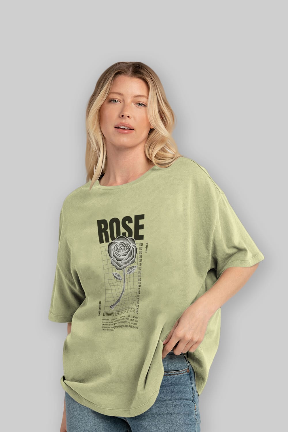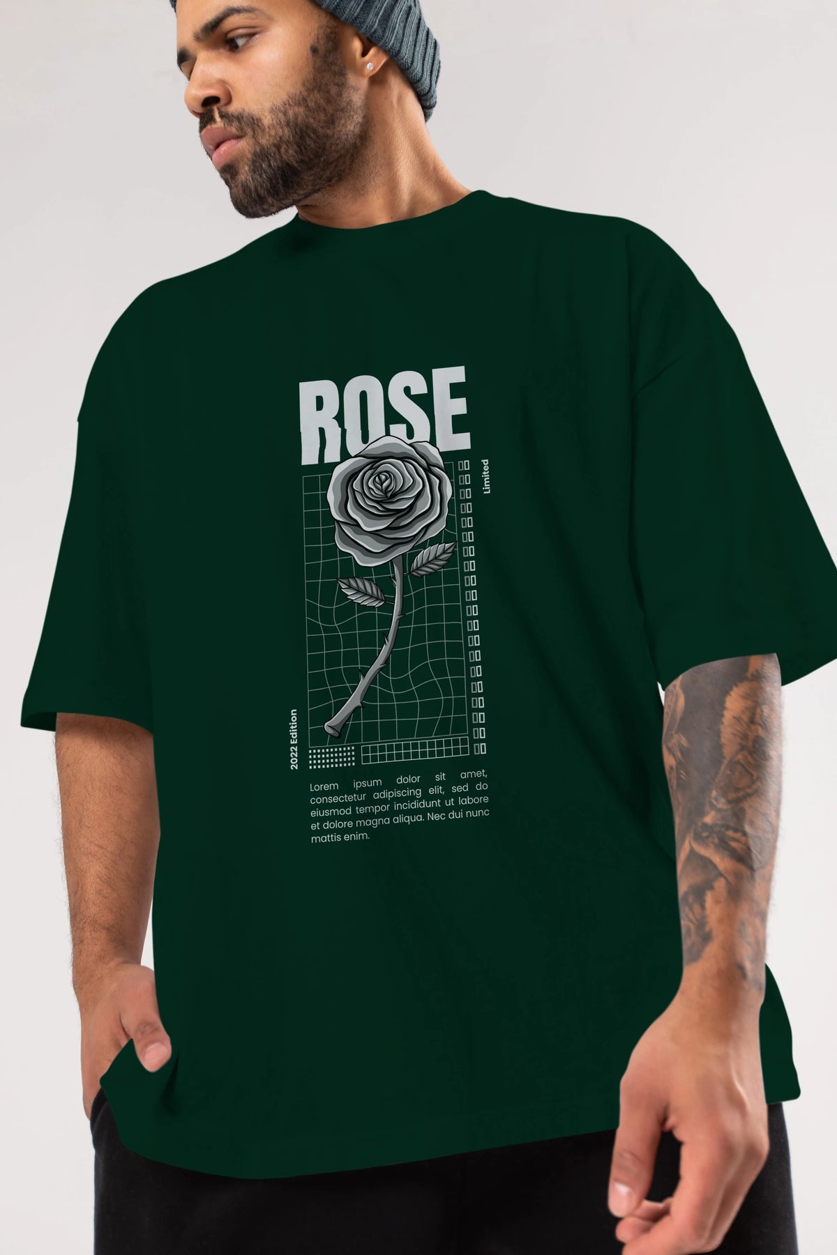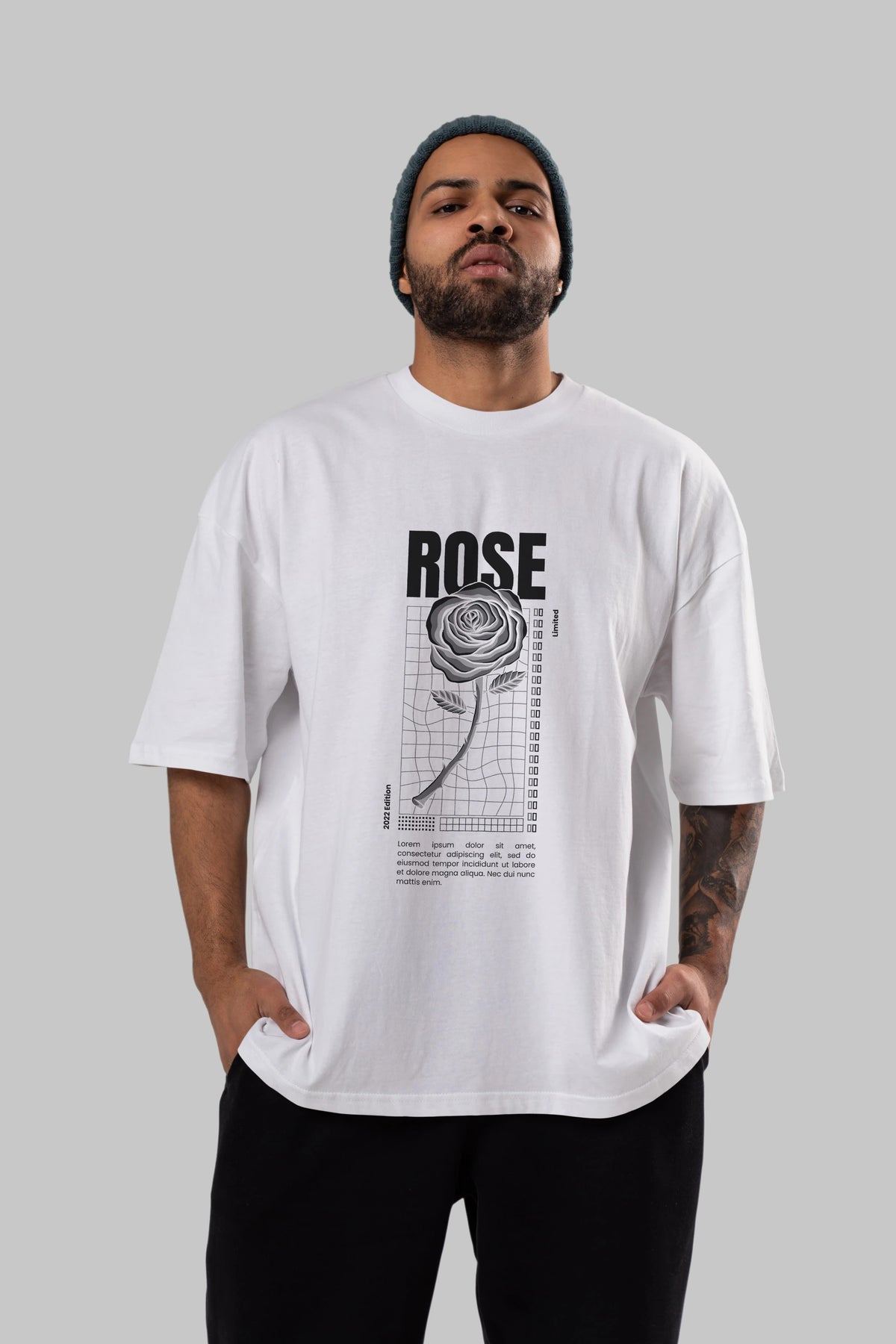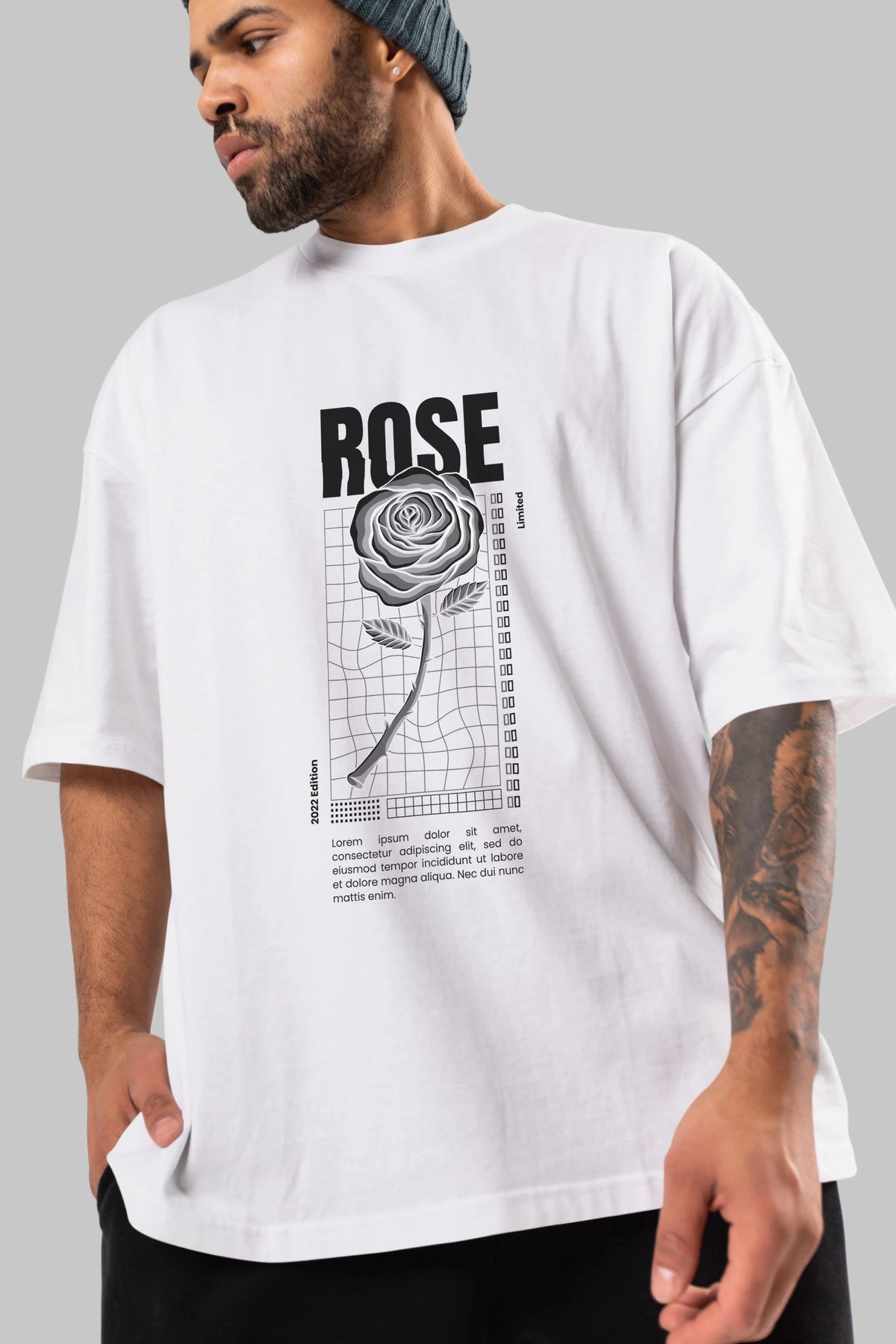 Rose Streetwear Ön Baskılı Oversize t-shirt Erkek Kadın Unisex
