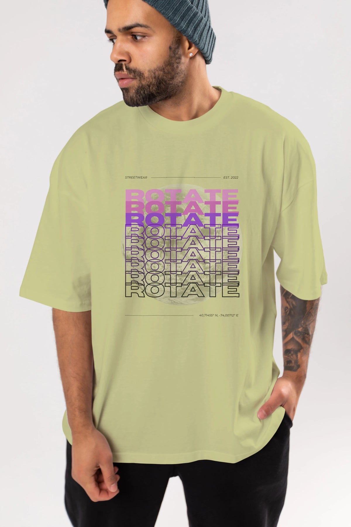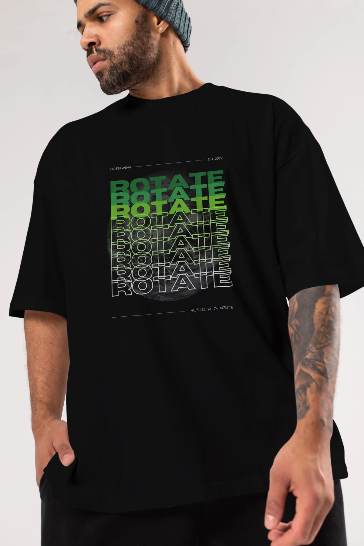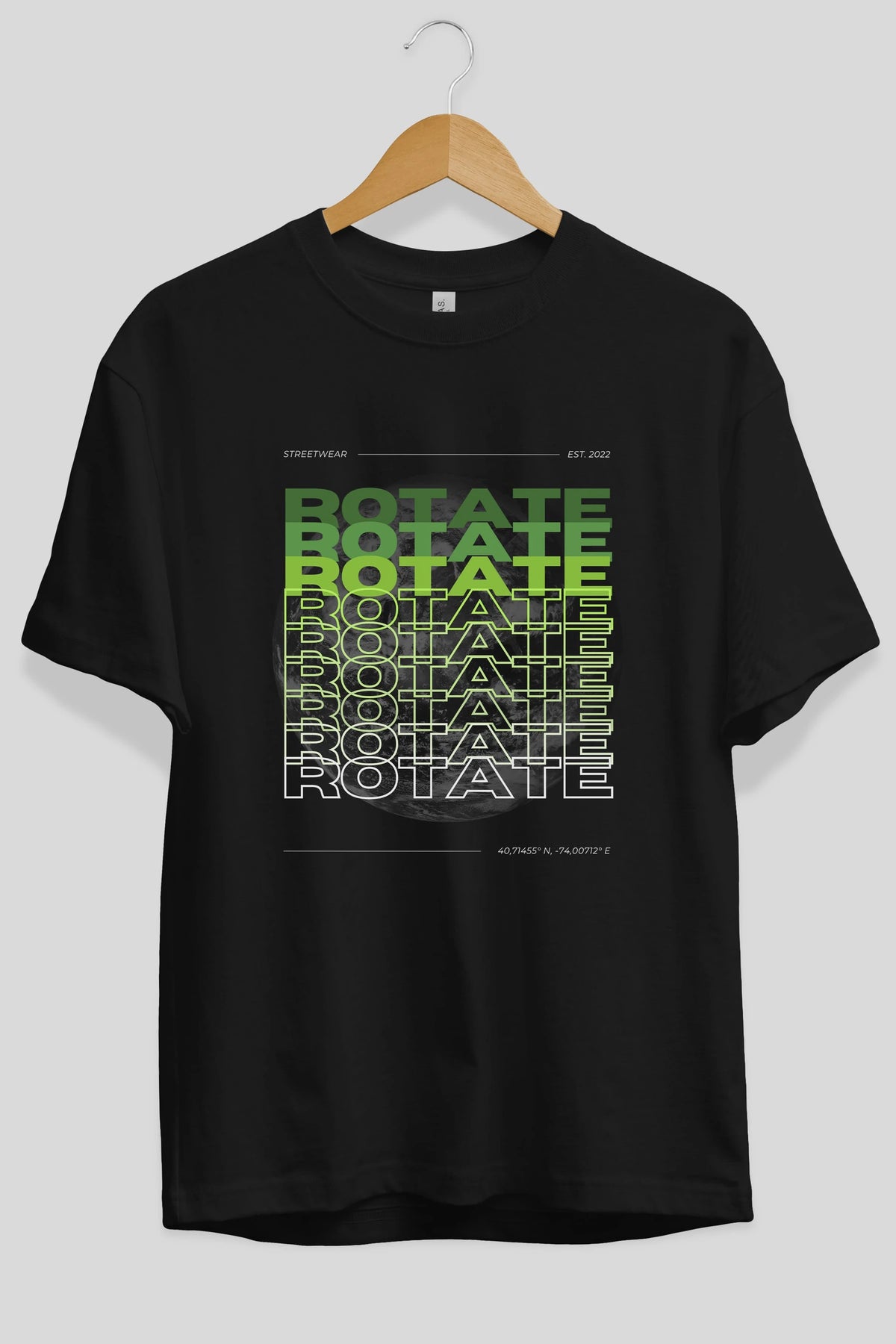 Rotate Yazılı Ön Baskılı Oversize t-shirt Erkek Kadın Unisex