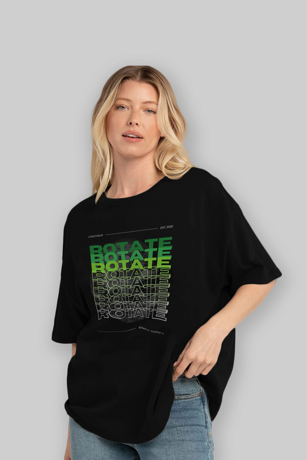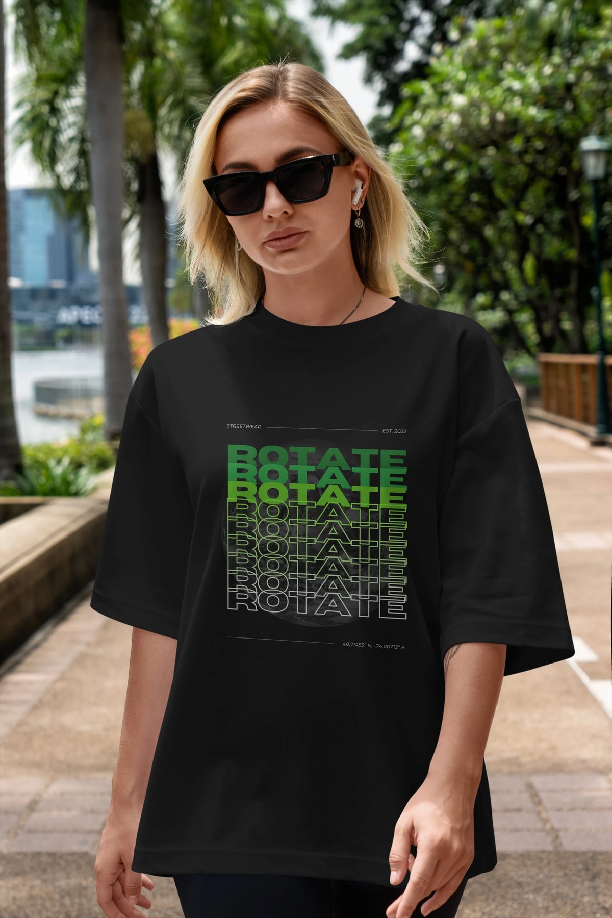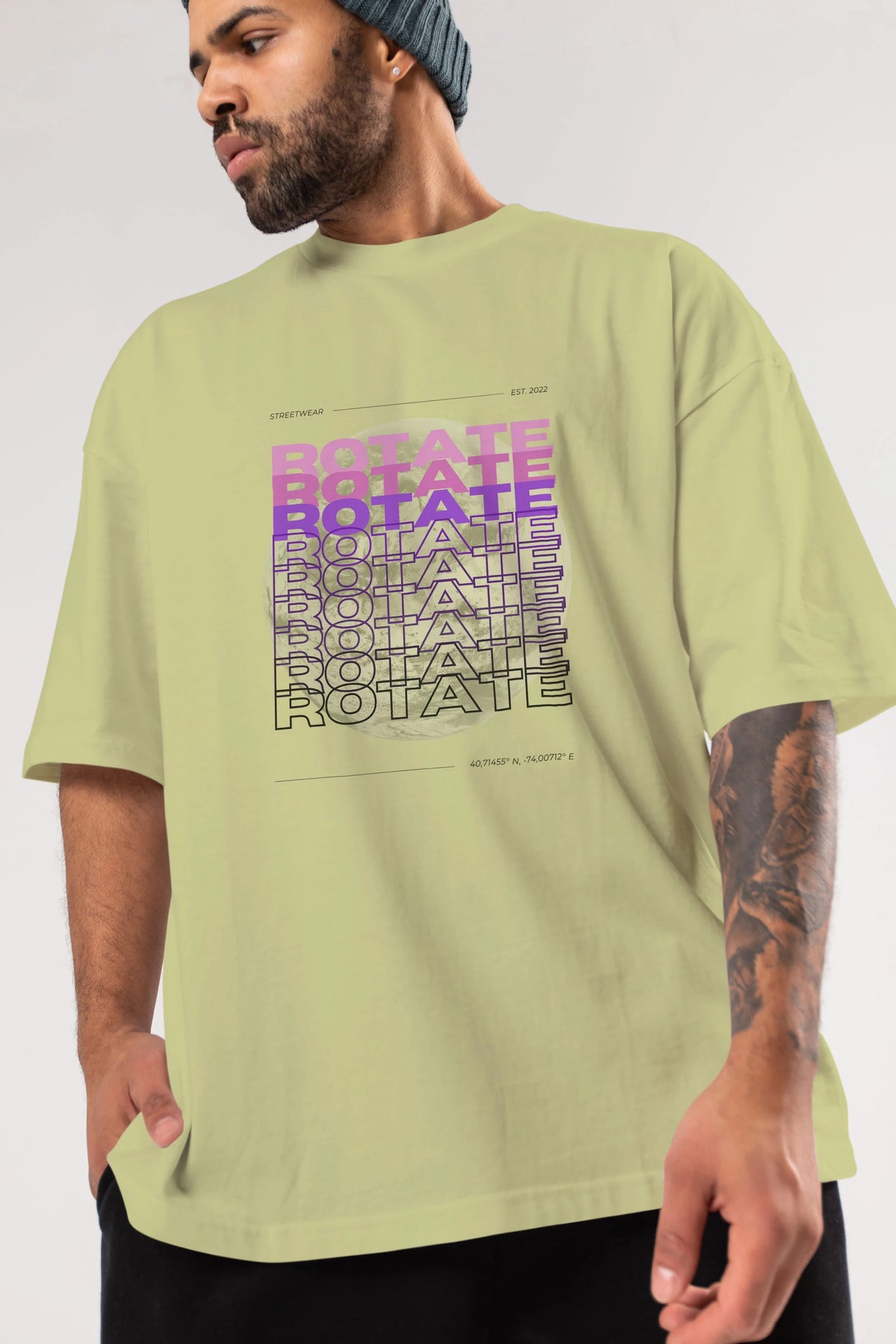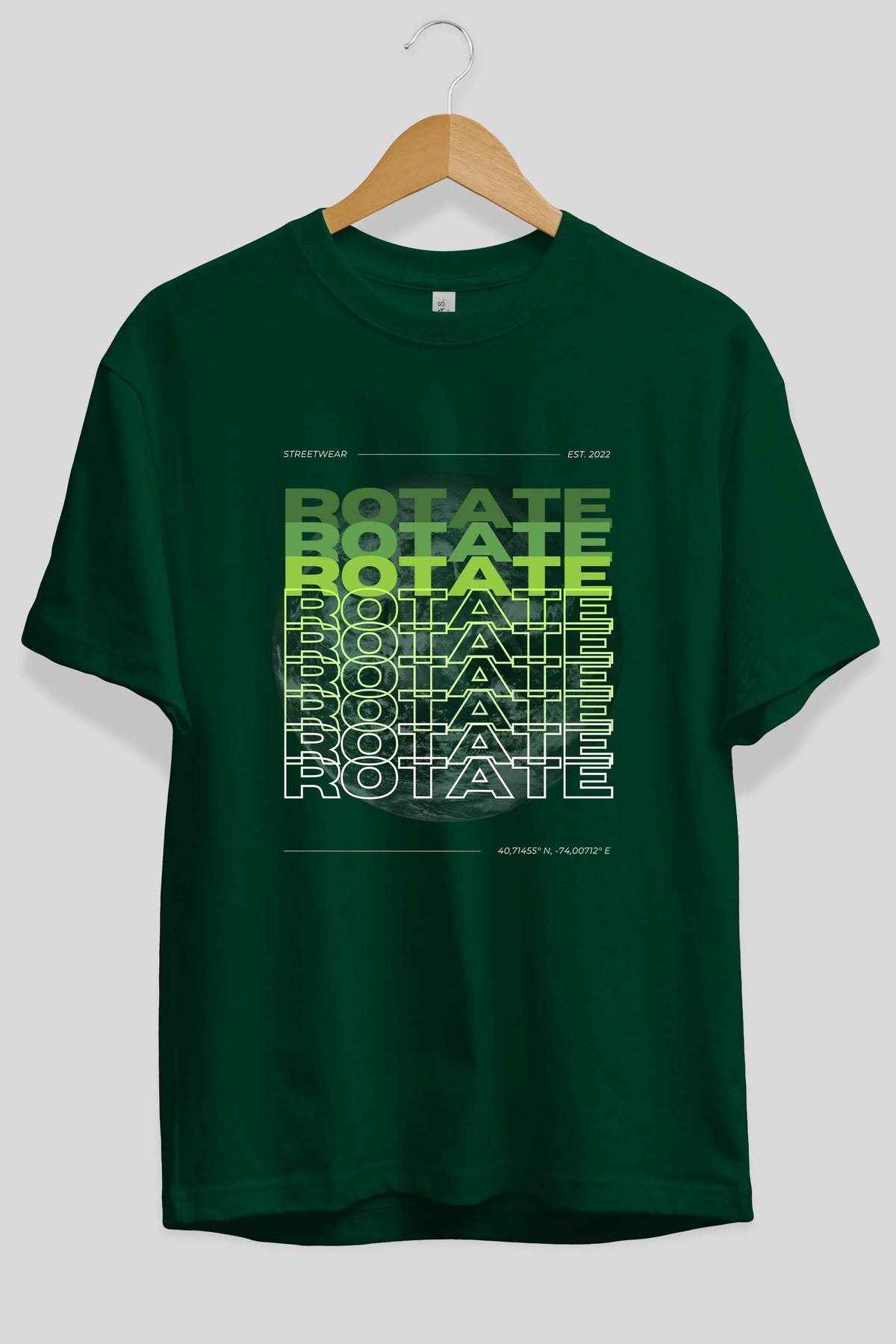 Rotate Yazılı Ön Baskılı Oversize t-shirt Erkek Kadın Unisex