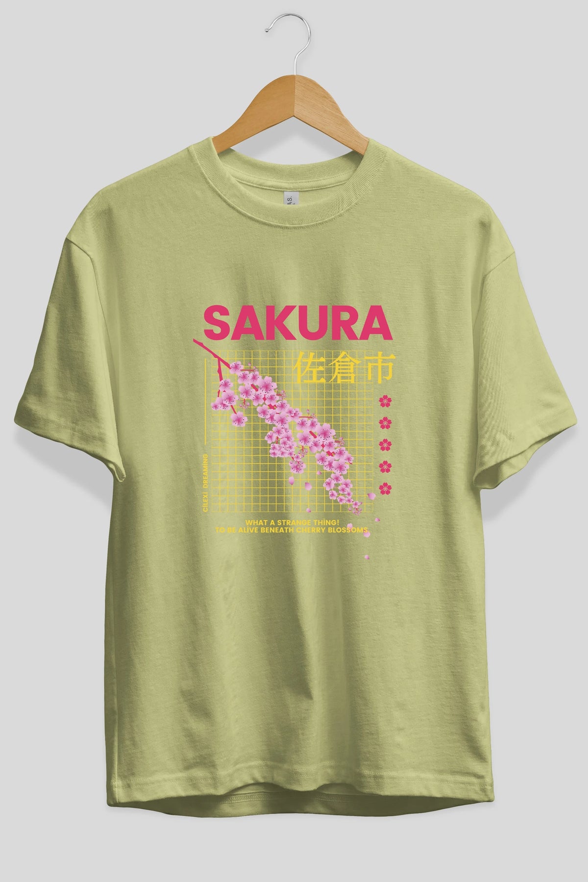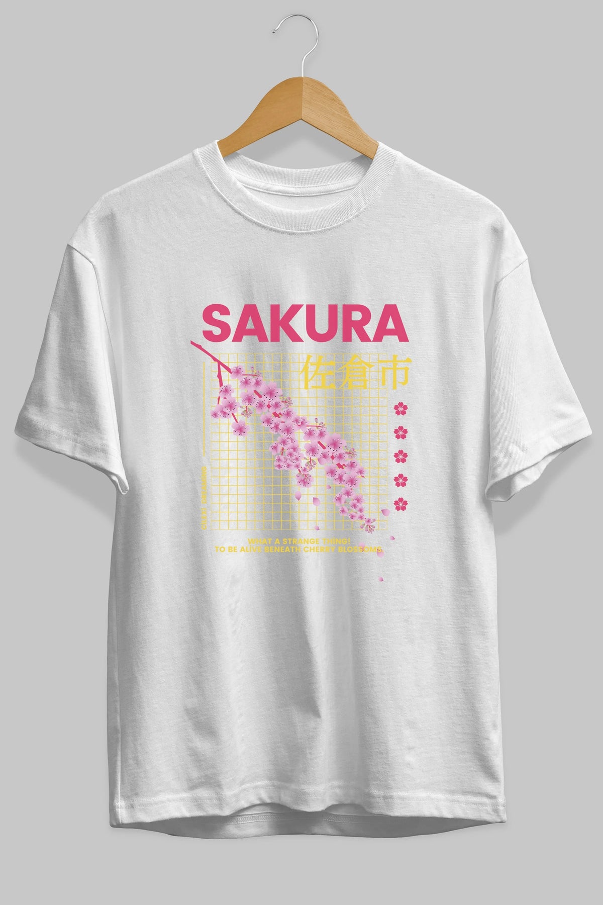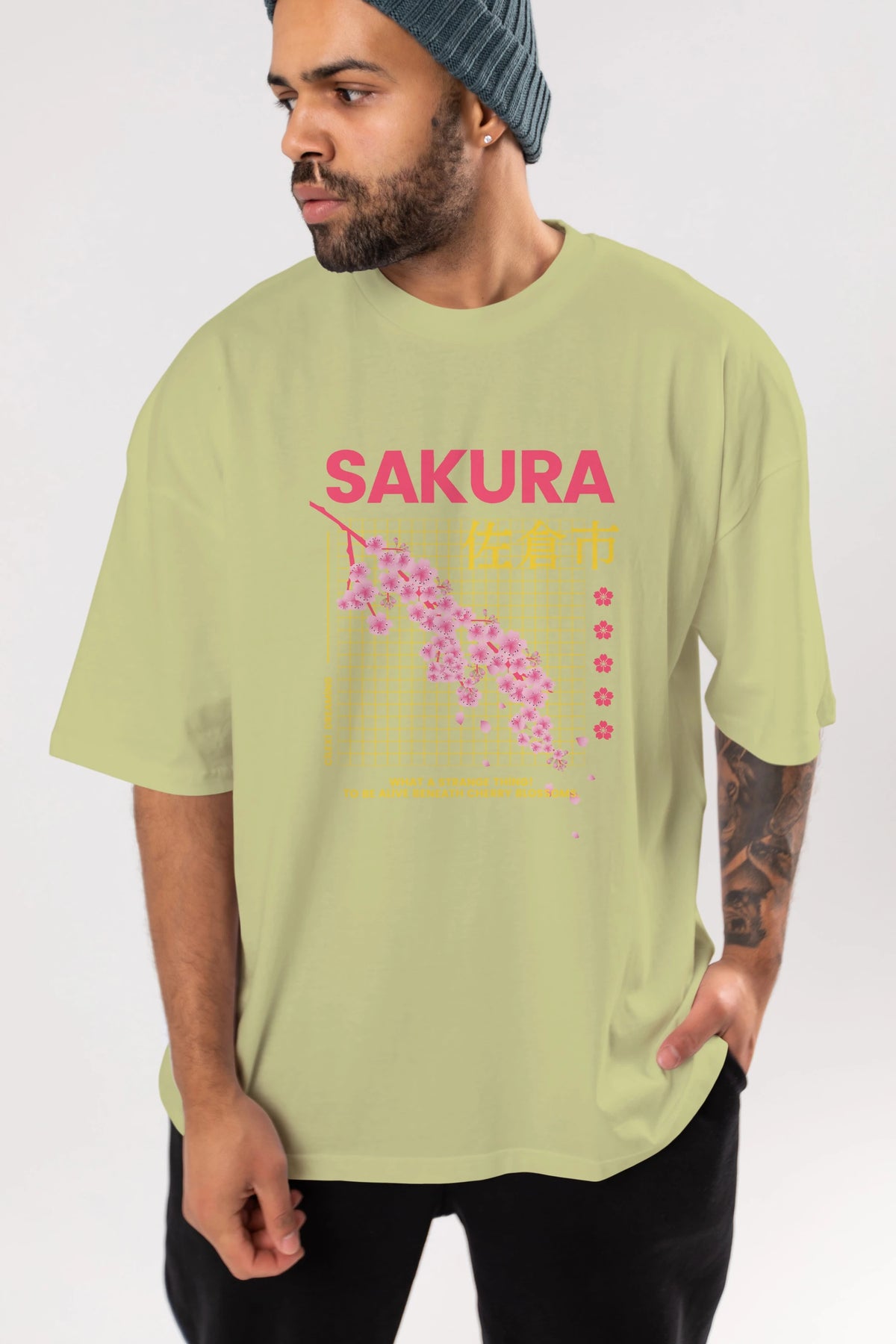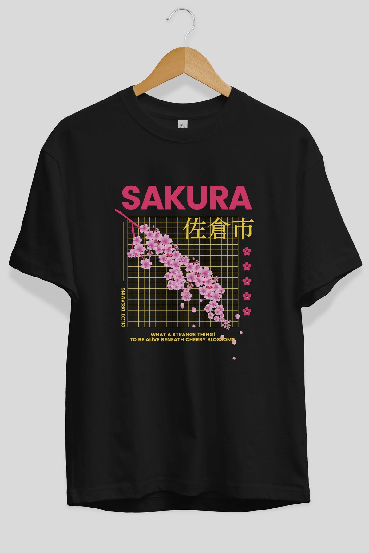 Sakura Streetwear Ön Baskılı Oversize t-shirt Erkek Kadın Unisex