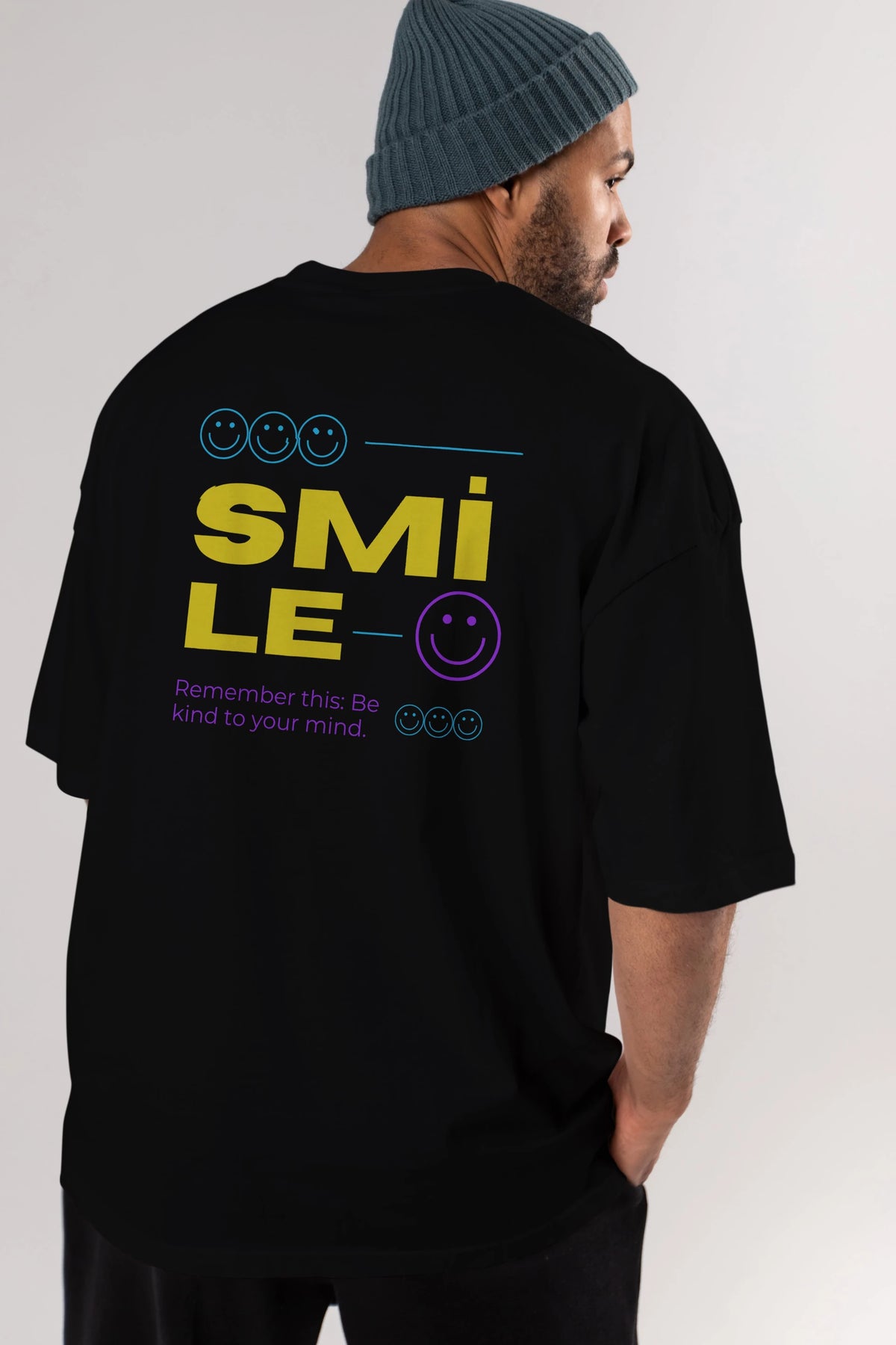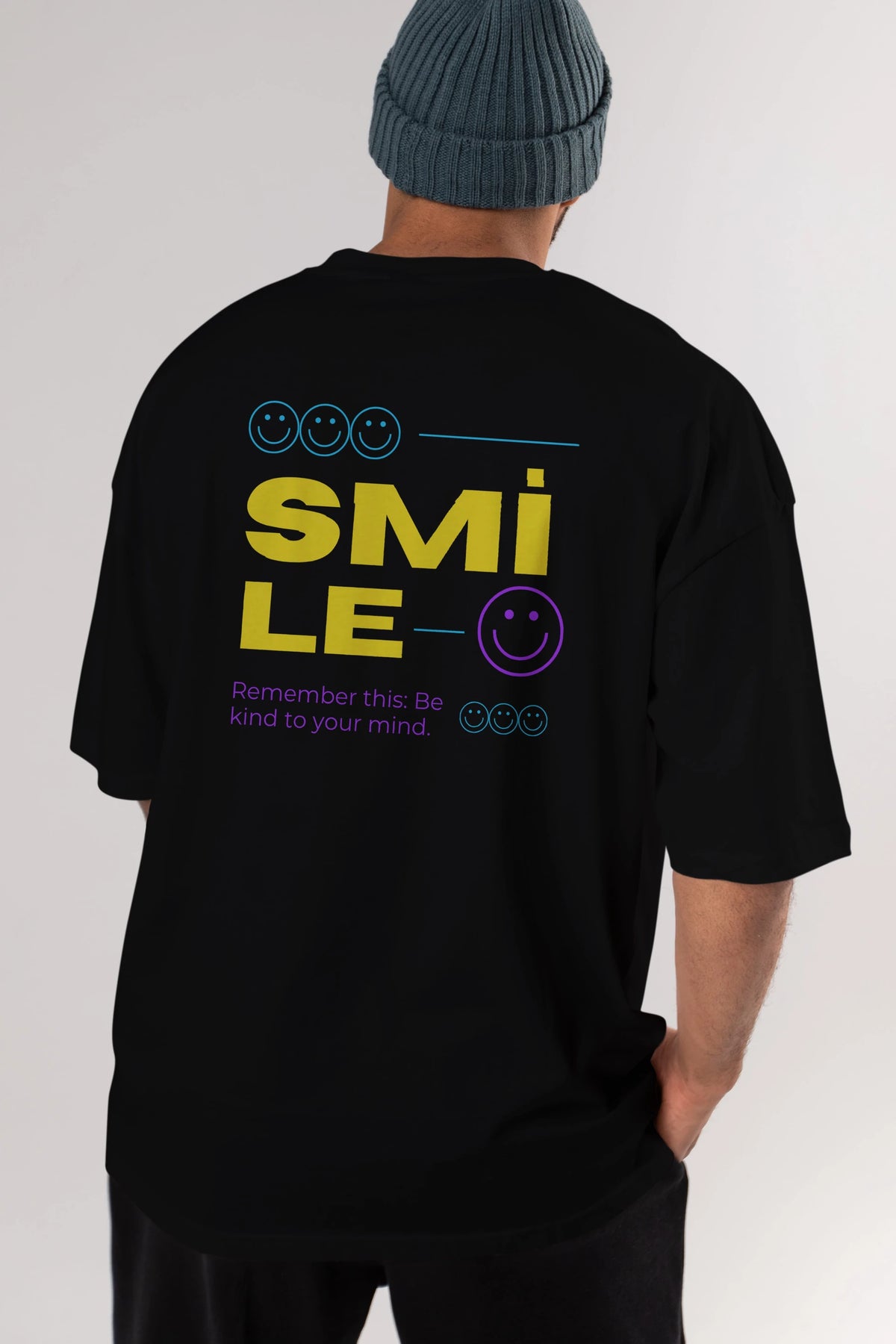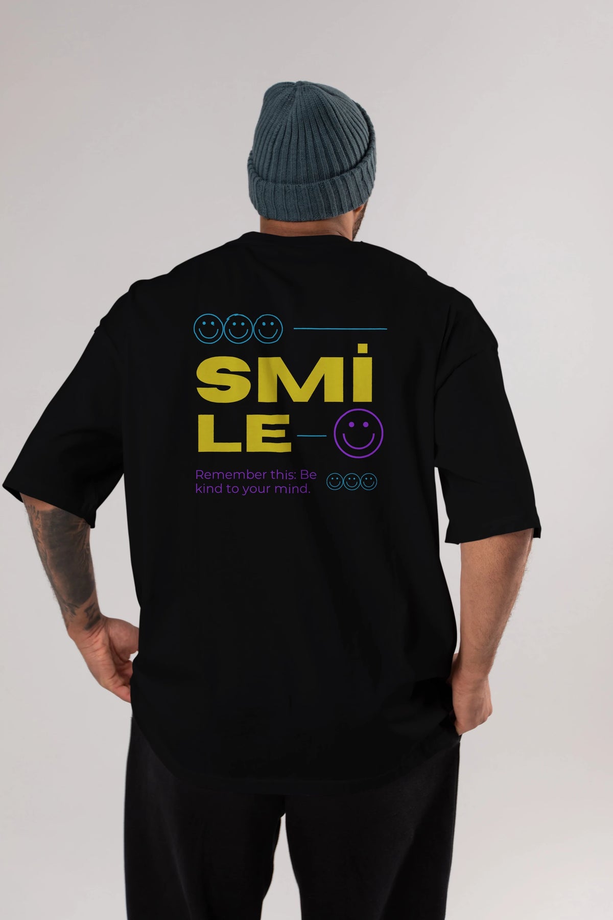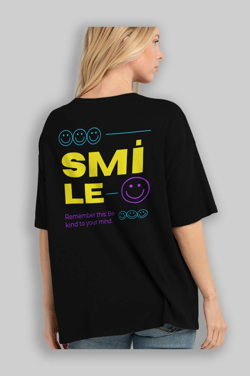 Smile Yazılı 2 Arka Baskılı Oversize t-shirt Erkek Kadın Unisex