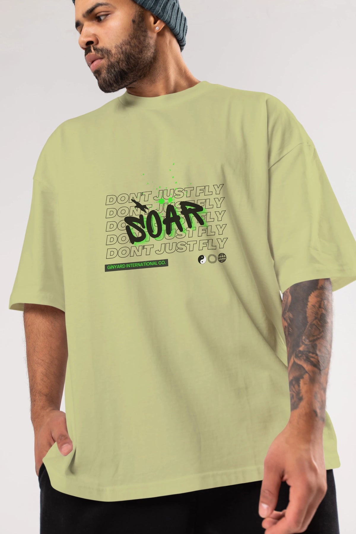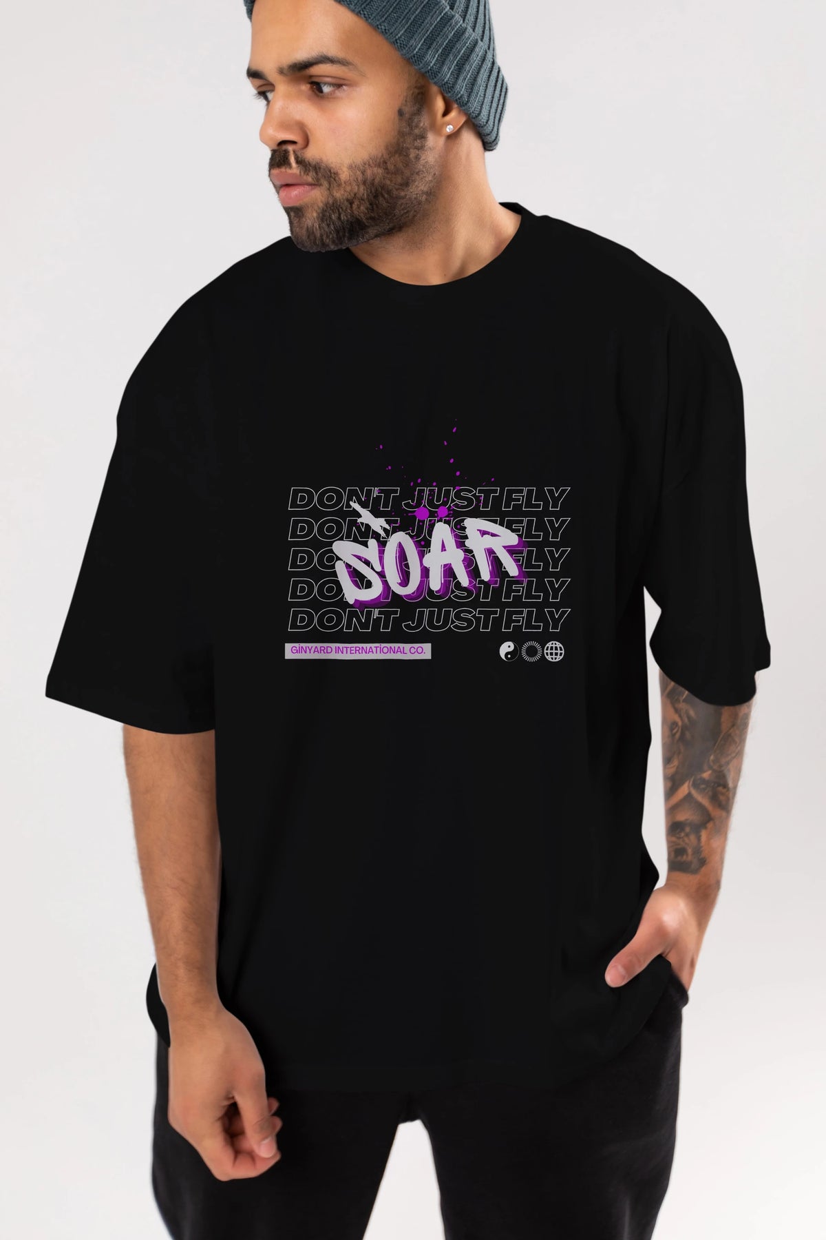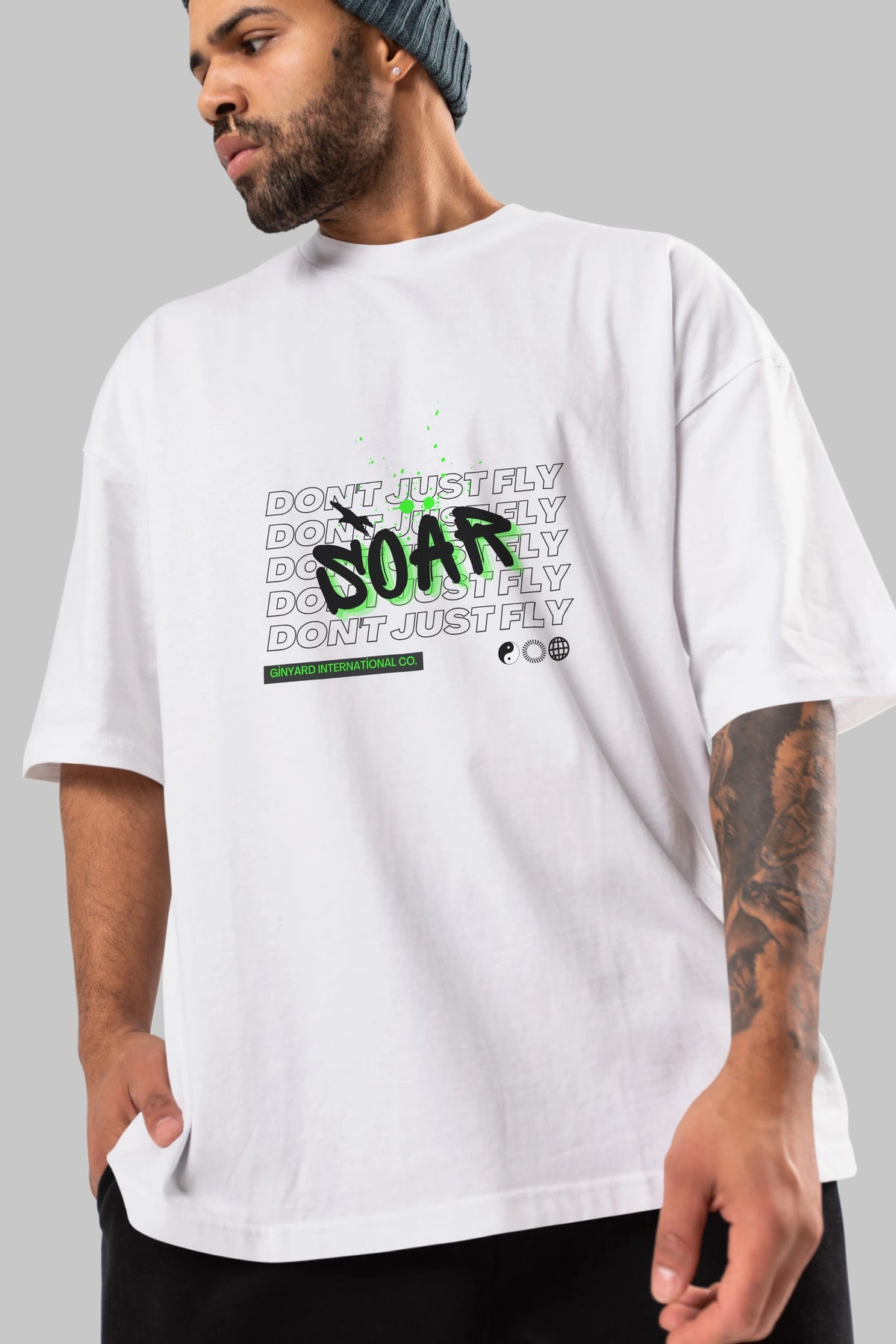 Soar Dont Just Fly Yazılı Ön Baskılı Oversize t-shirt Erkek Kadın Unisex