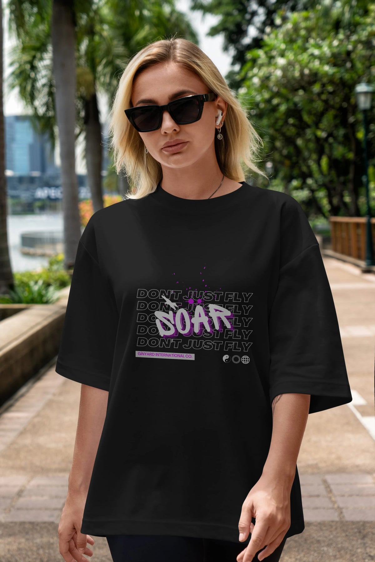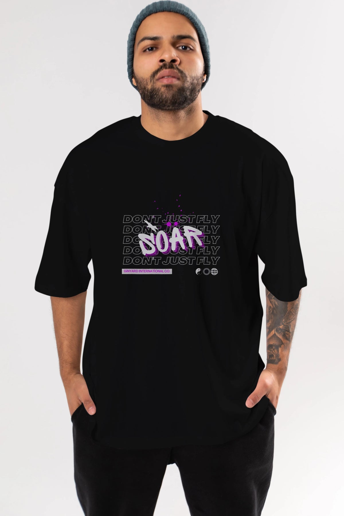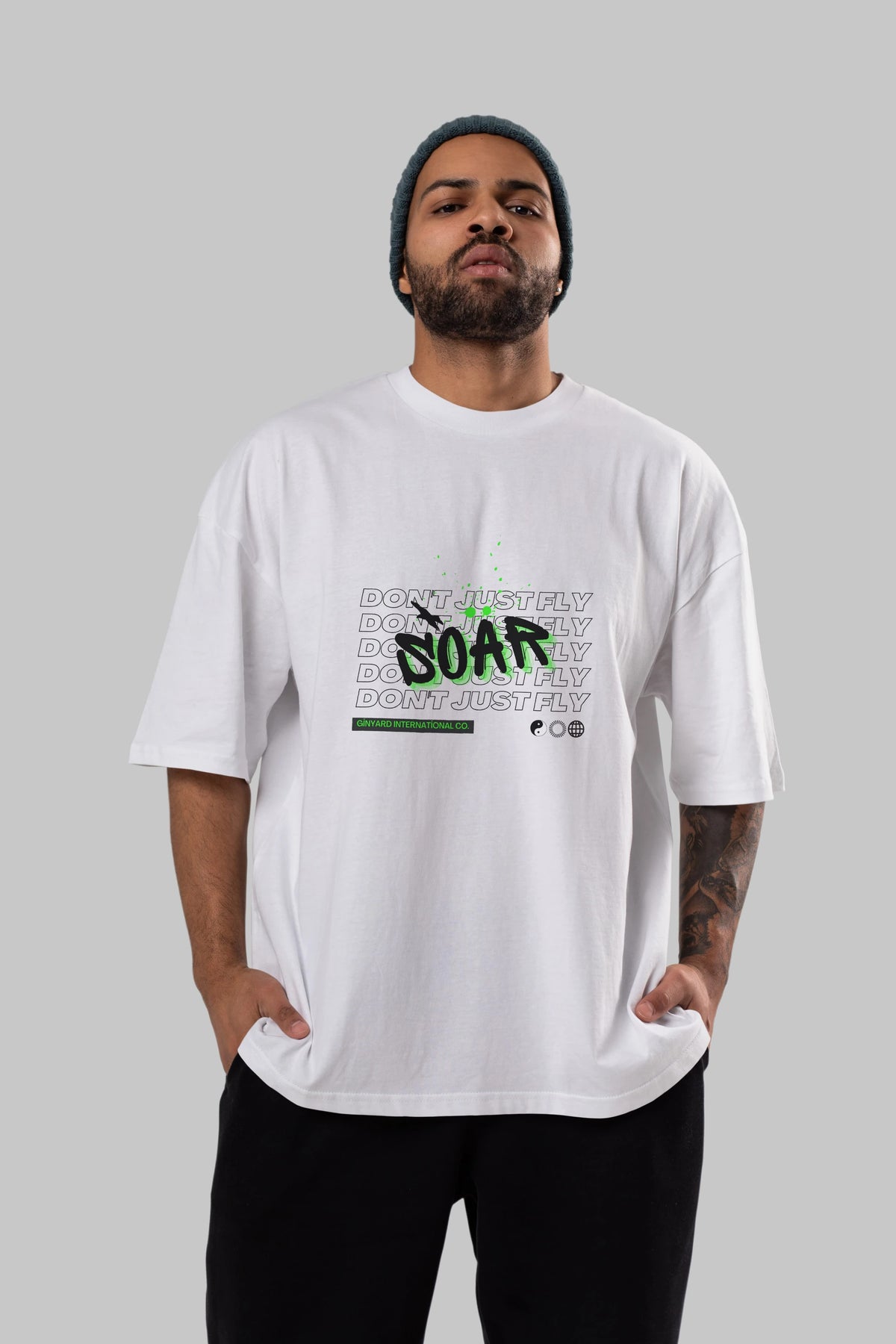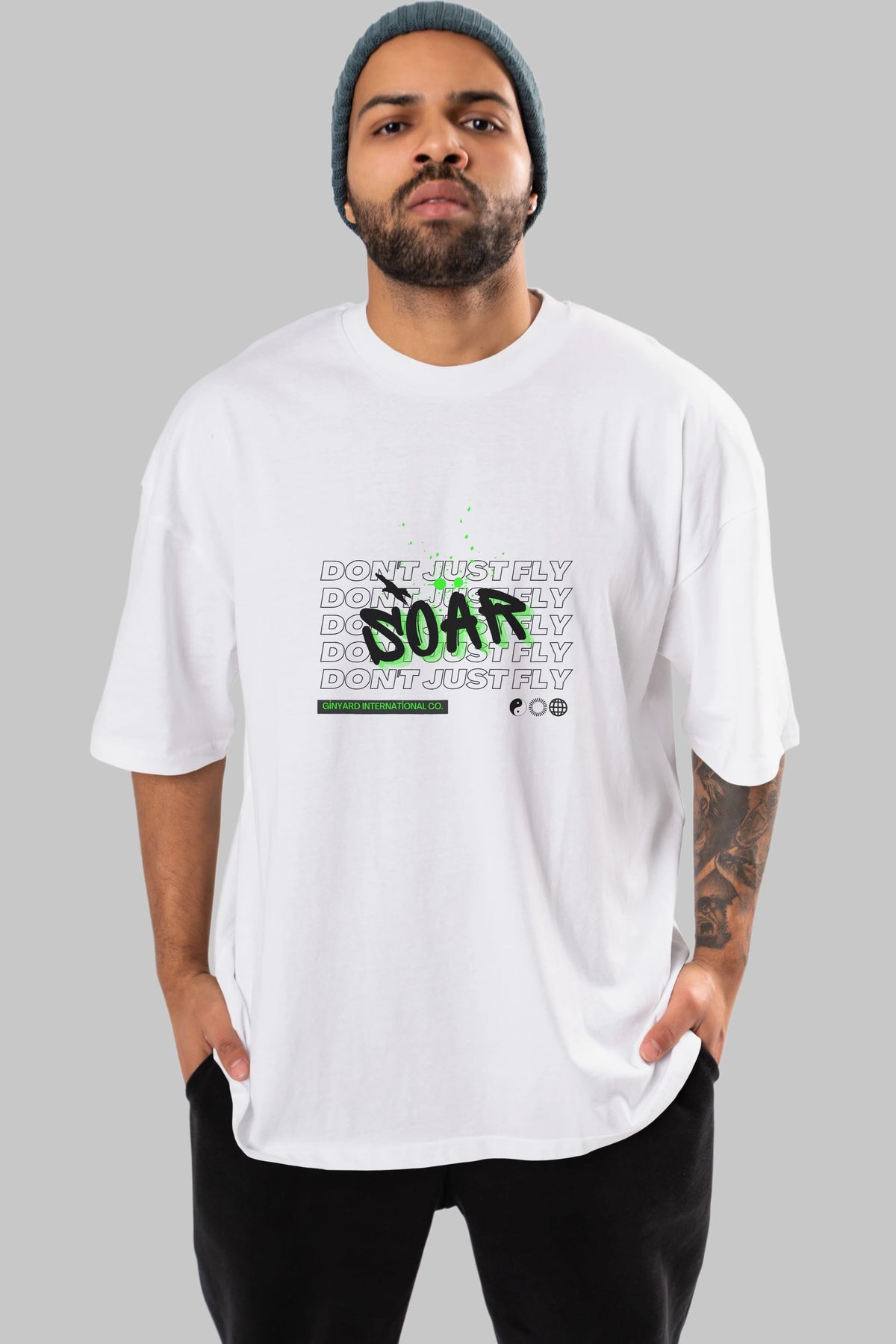 Soar Dont Just Fly Yazılı Ön Baskılı Oversize t-shirt Erkek Kadın Unisex