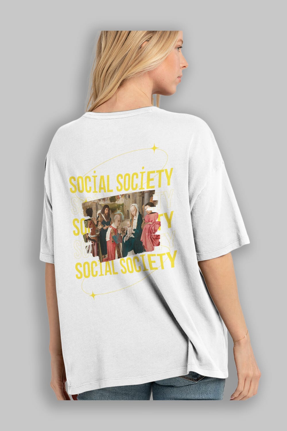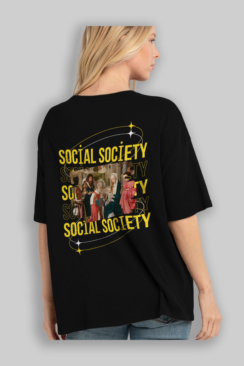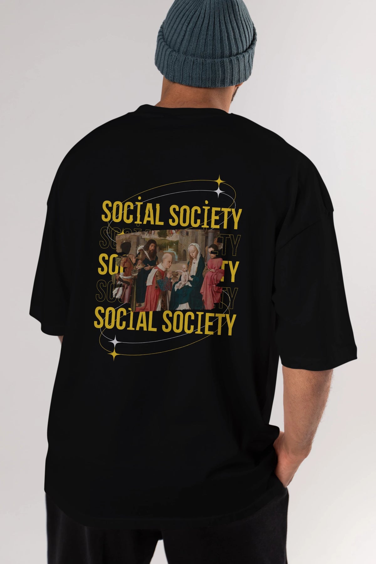 Social Society Yazılı Arka Baskılı Oversize t-shirt Erkek Kadın Unisex