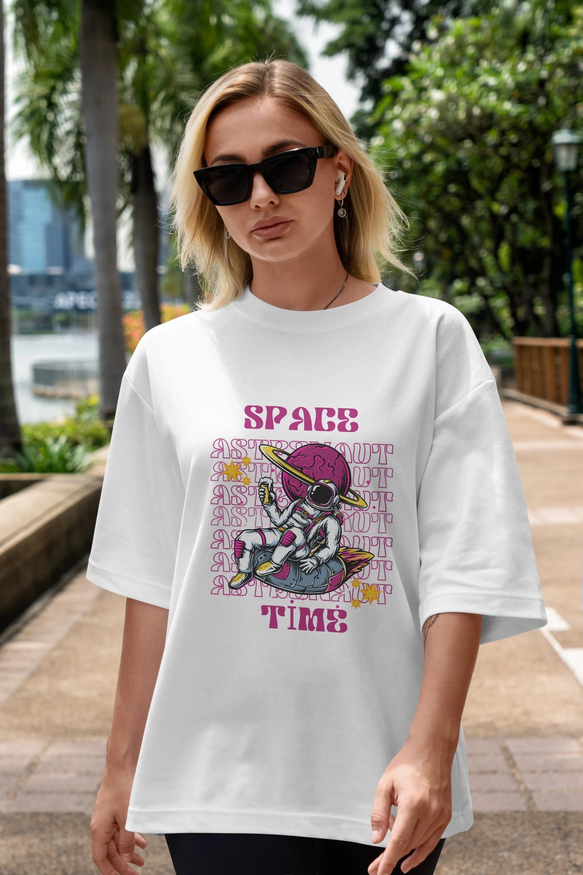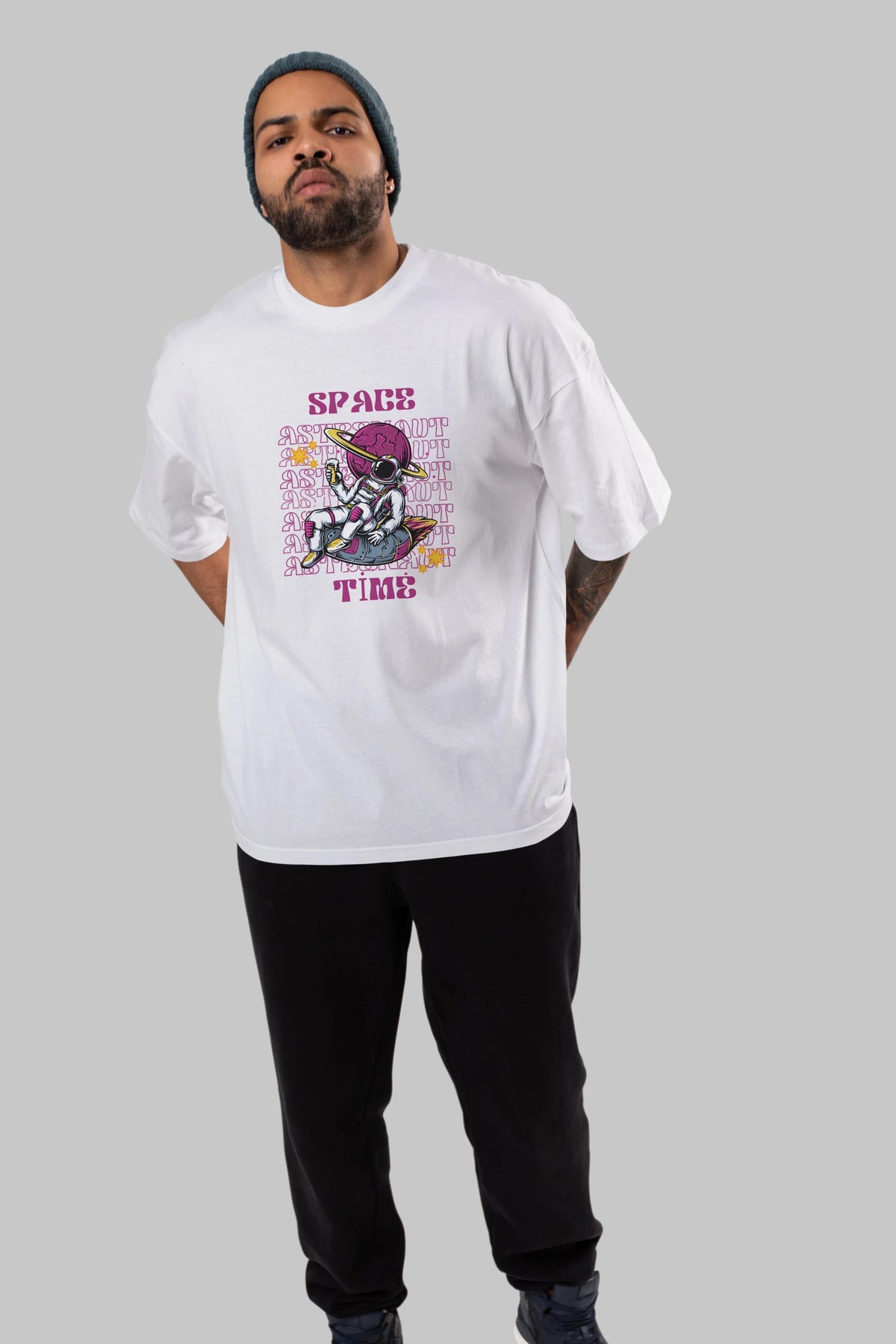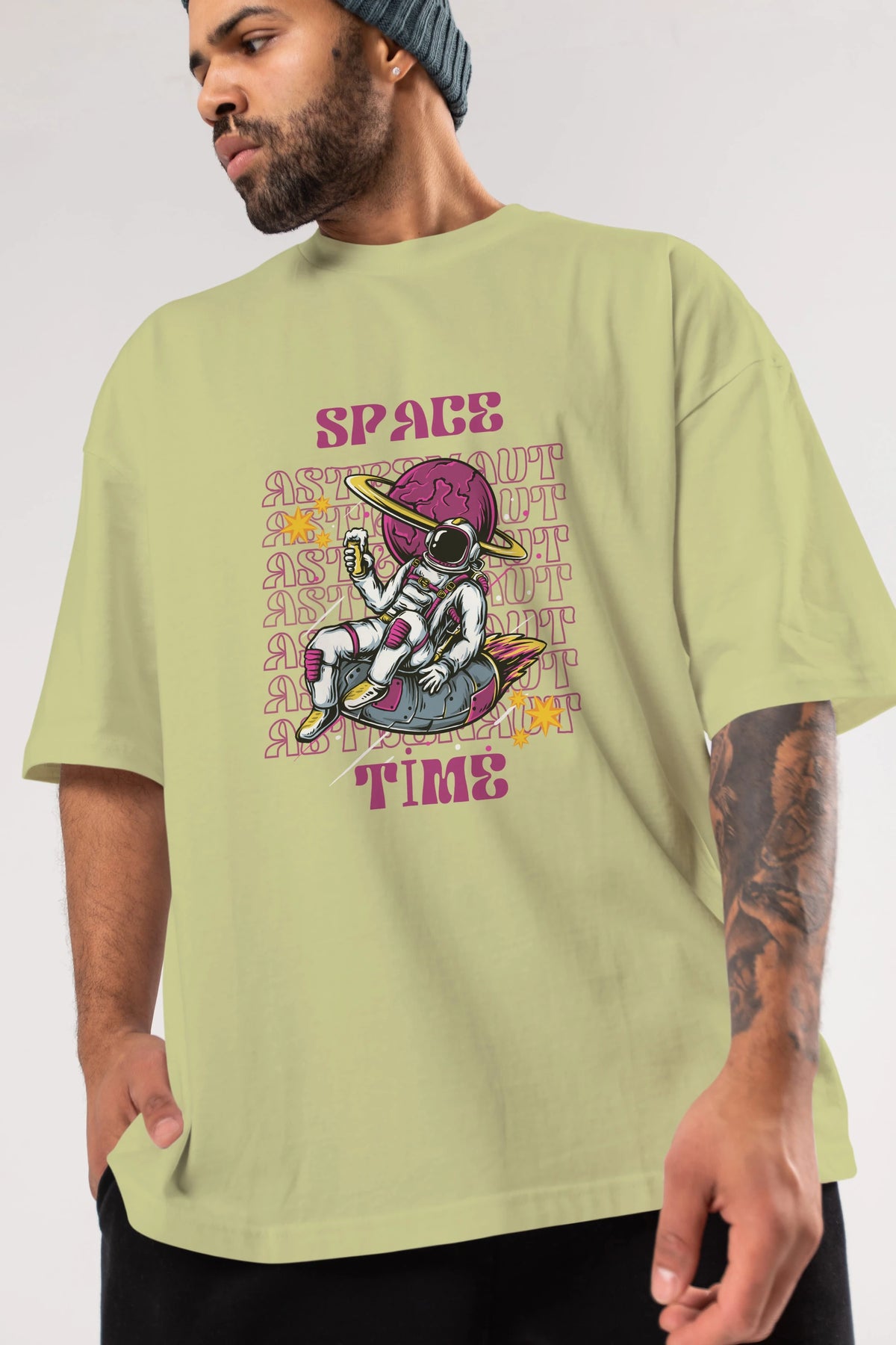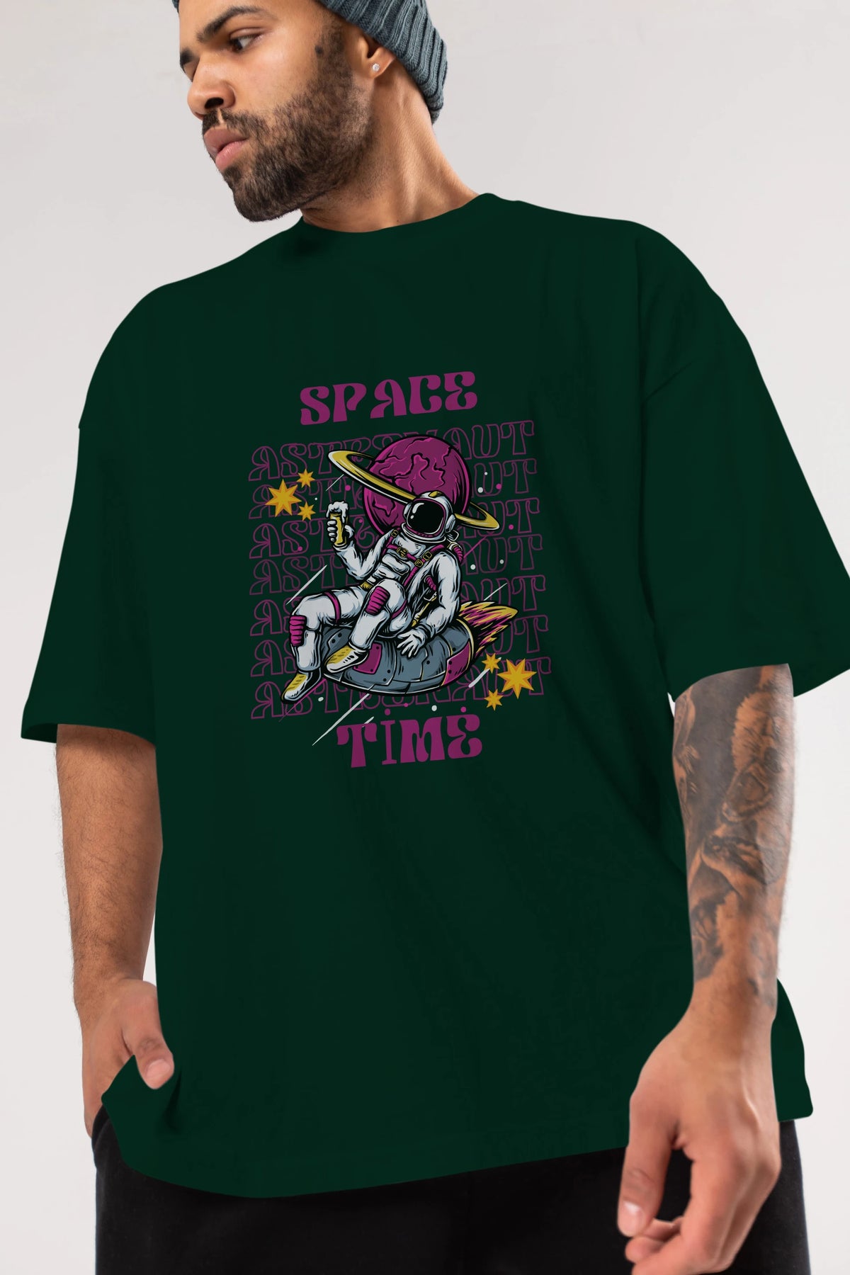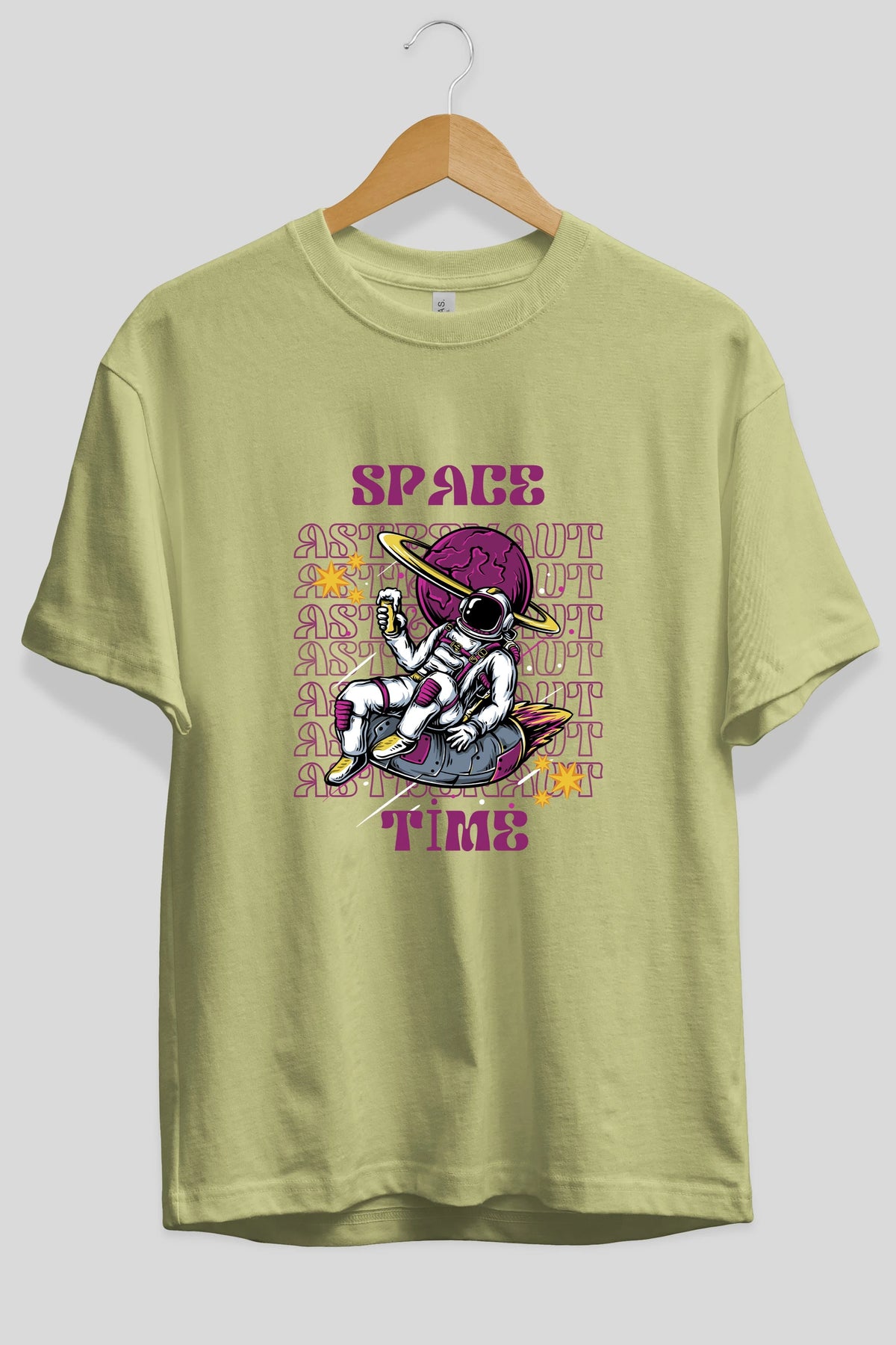 Space Time Astronaut Yazılı Ön Baskılı Oversize t-shirt Erkek Kadın Unisex