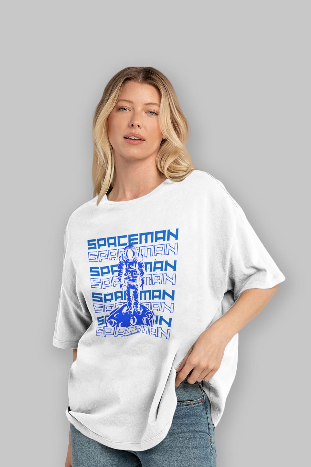 Spaceman Yazılı Ön Baskılı Oversize t-shirt Erkek Kadın Unisex