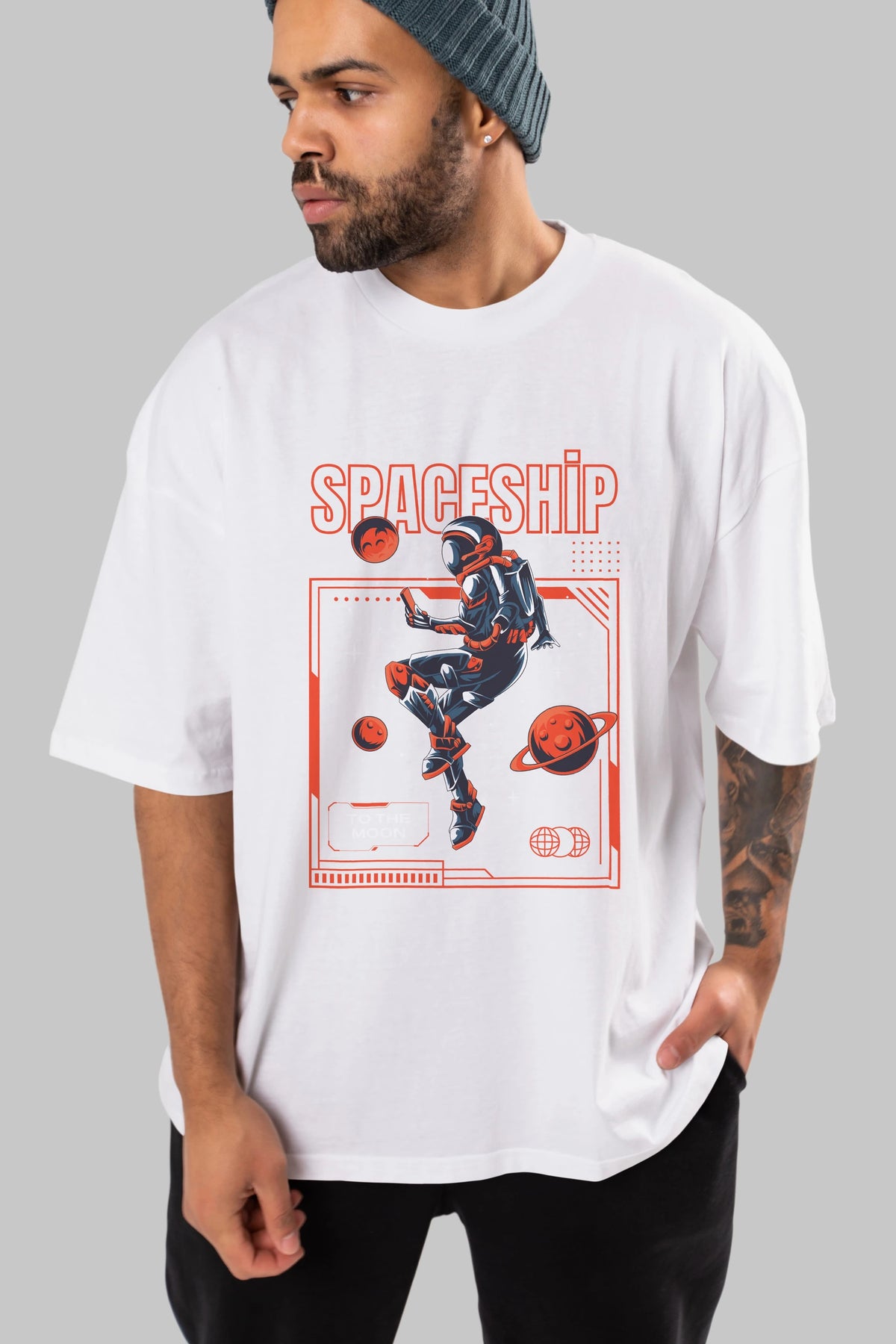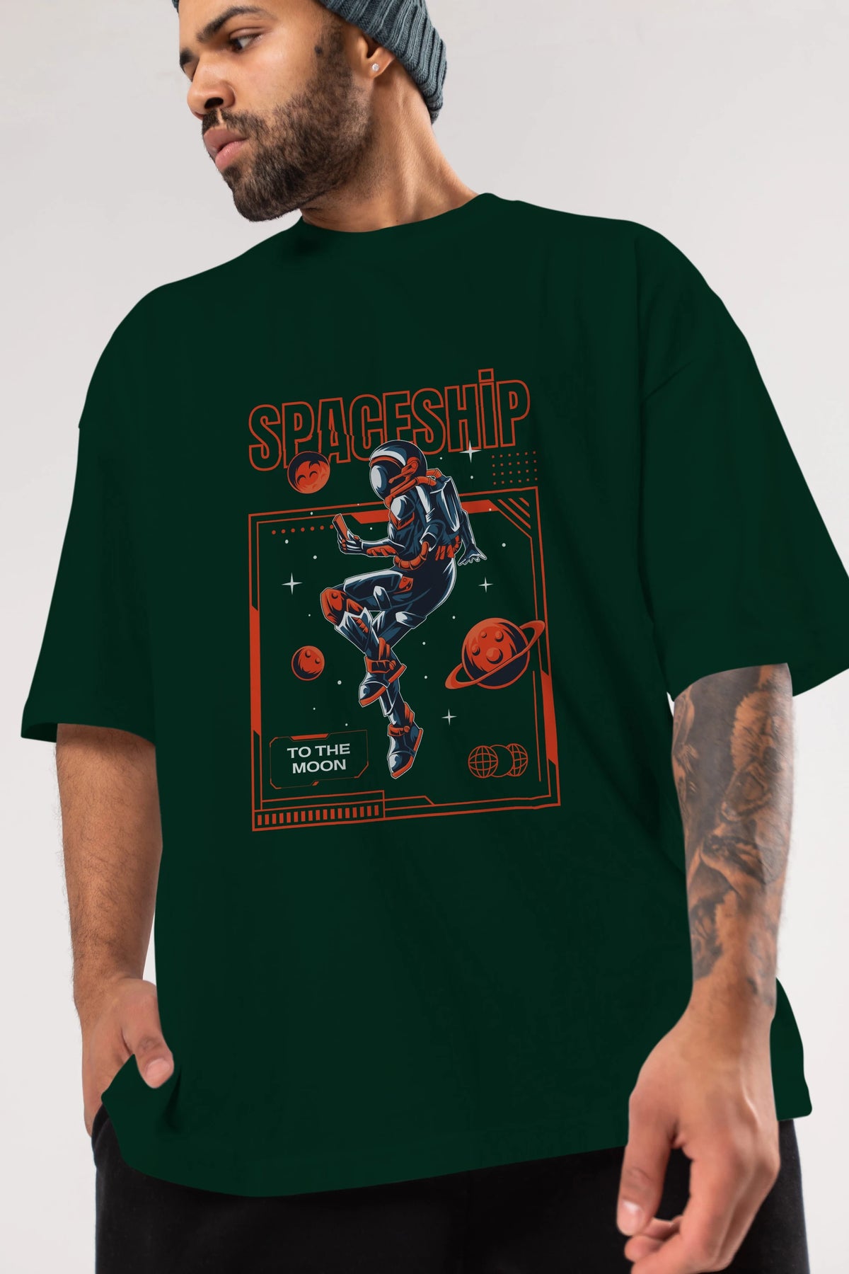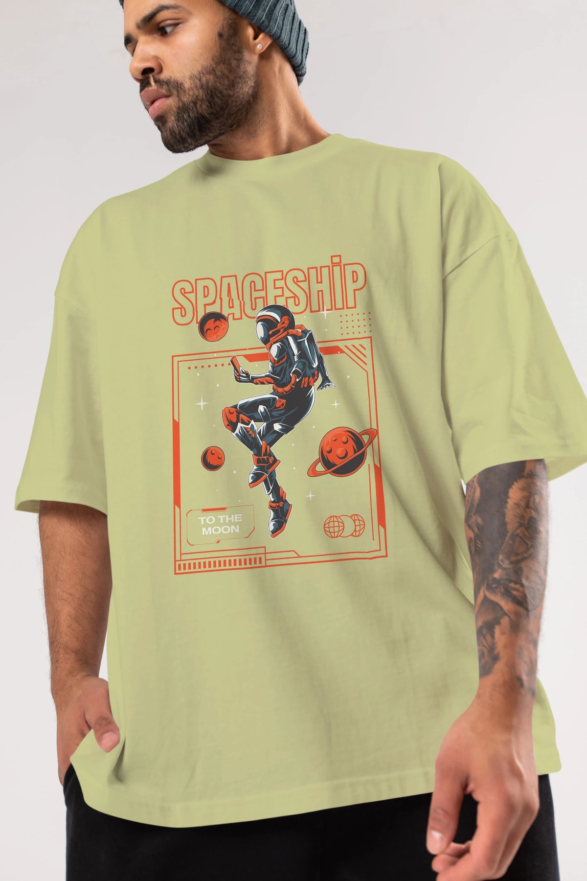 Spaceship Ön Baskılı Oversize t-shirt Erkek Kadın Unisex