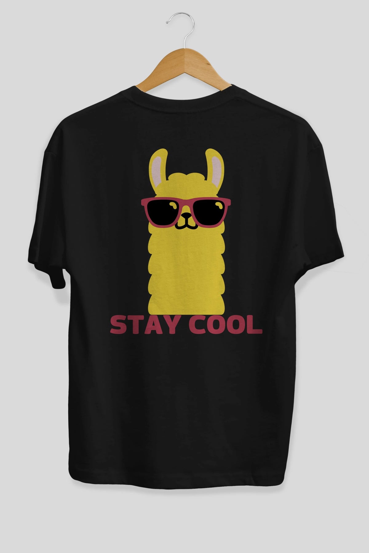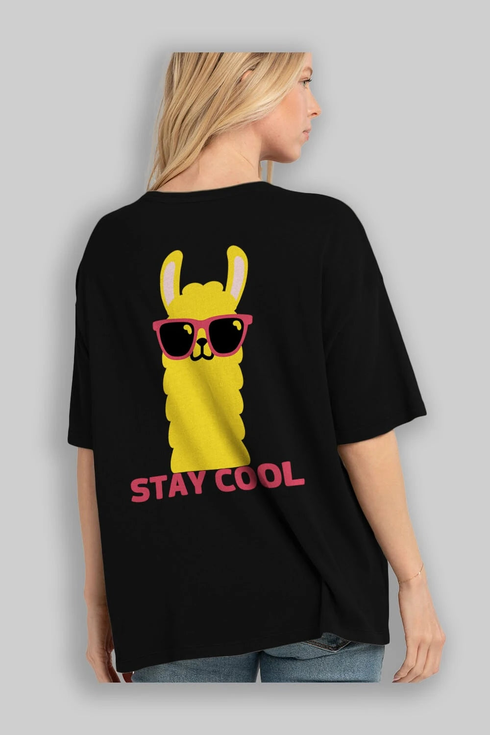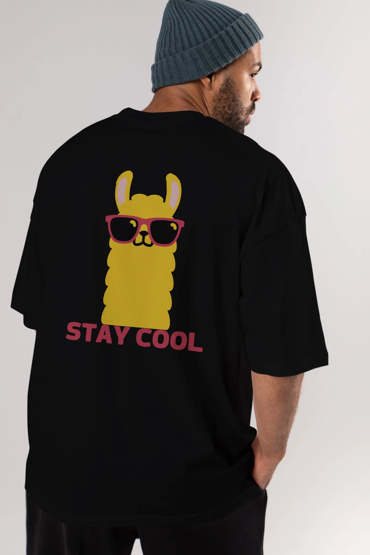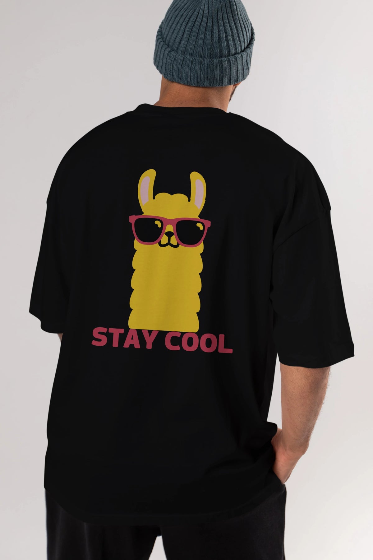 Stay Cool Yazılı Lama Arka Baskılı Oversize t-shirt Erkek Kadın Unisex