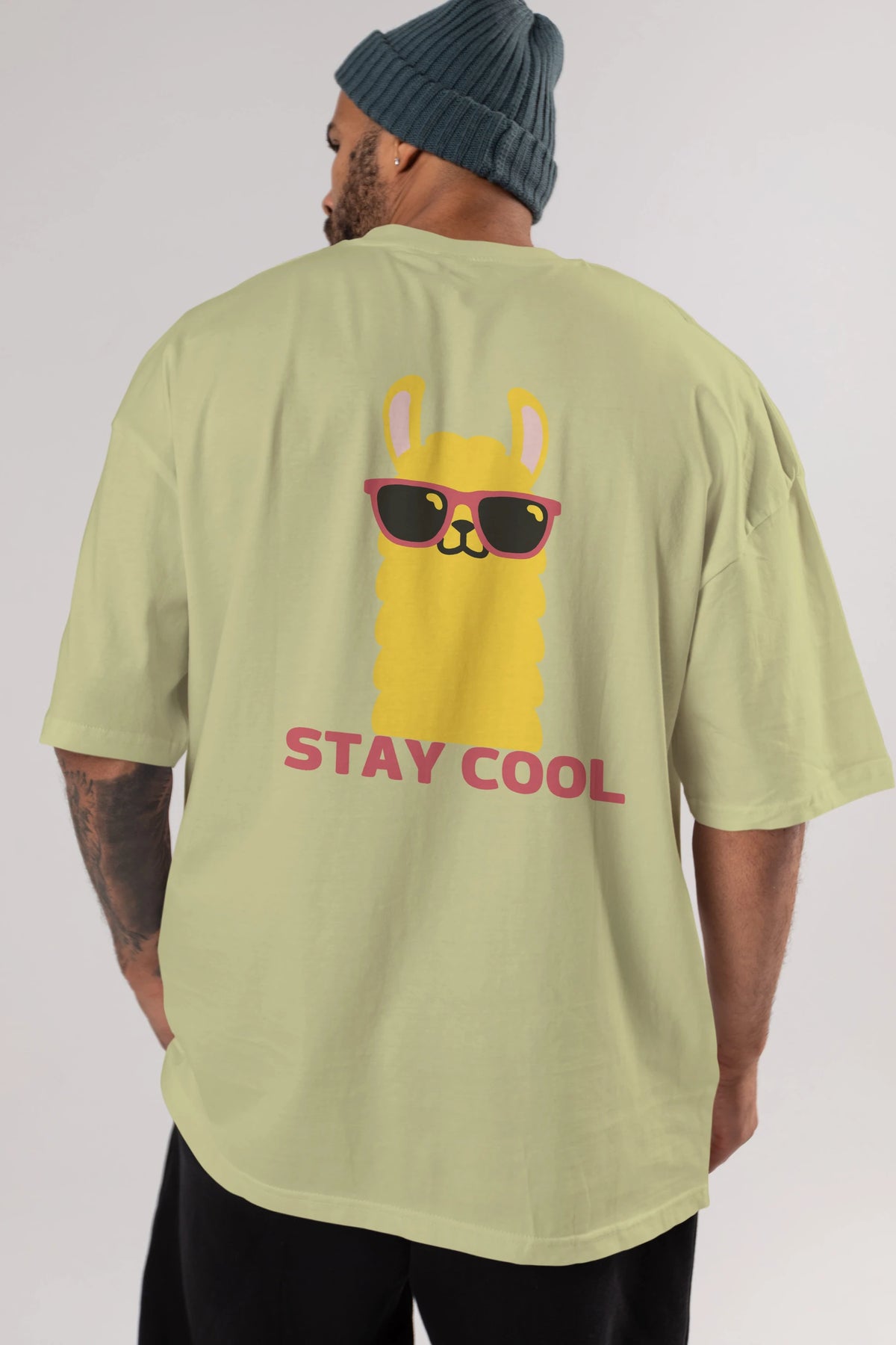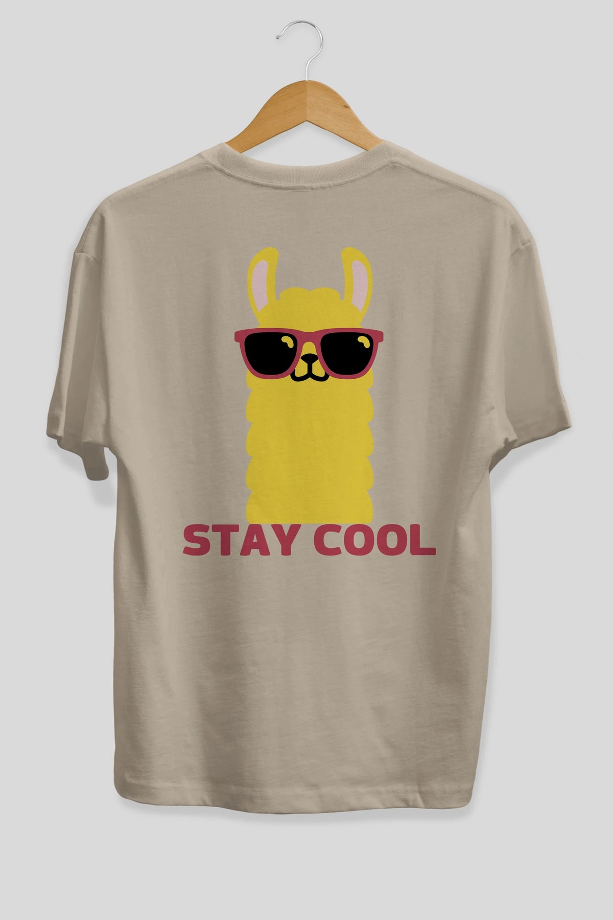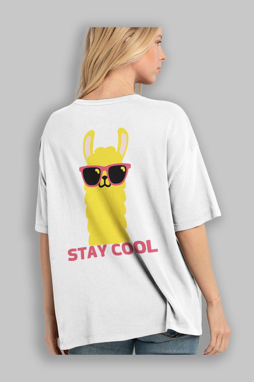 Stay Cool Yazılı Lama Arka Baskılı Oversize t-shirt Erkek Kadın Unisex