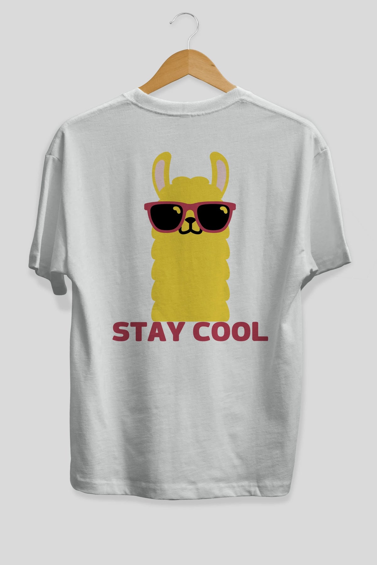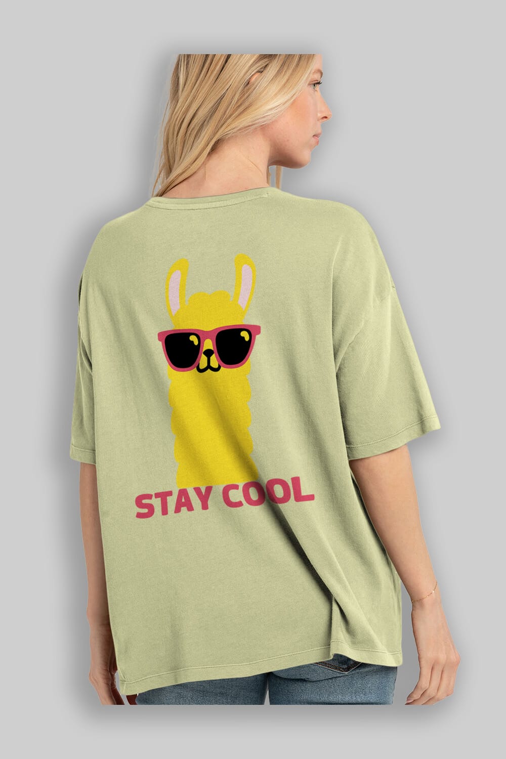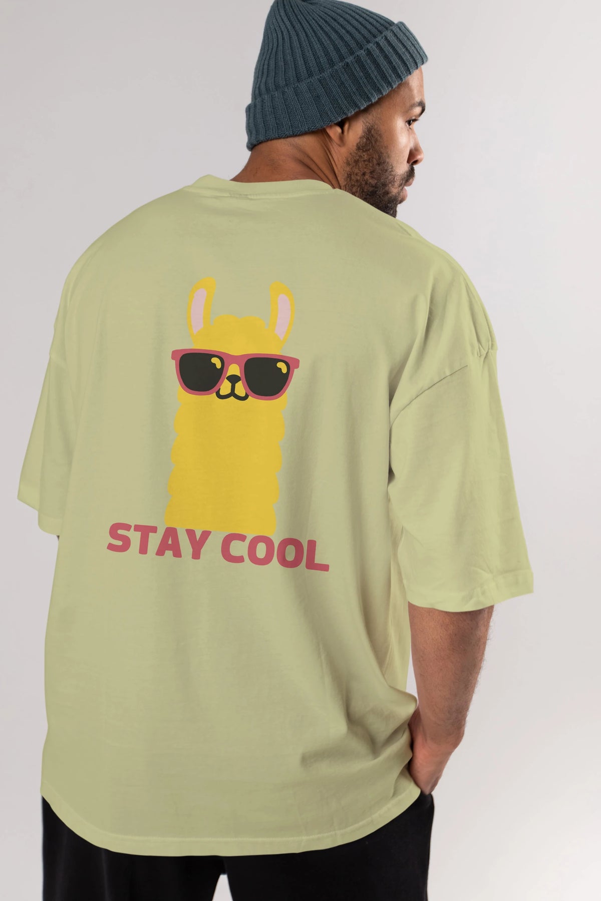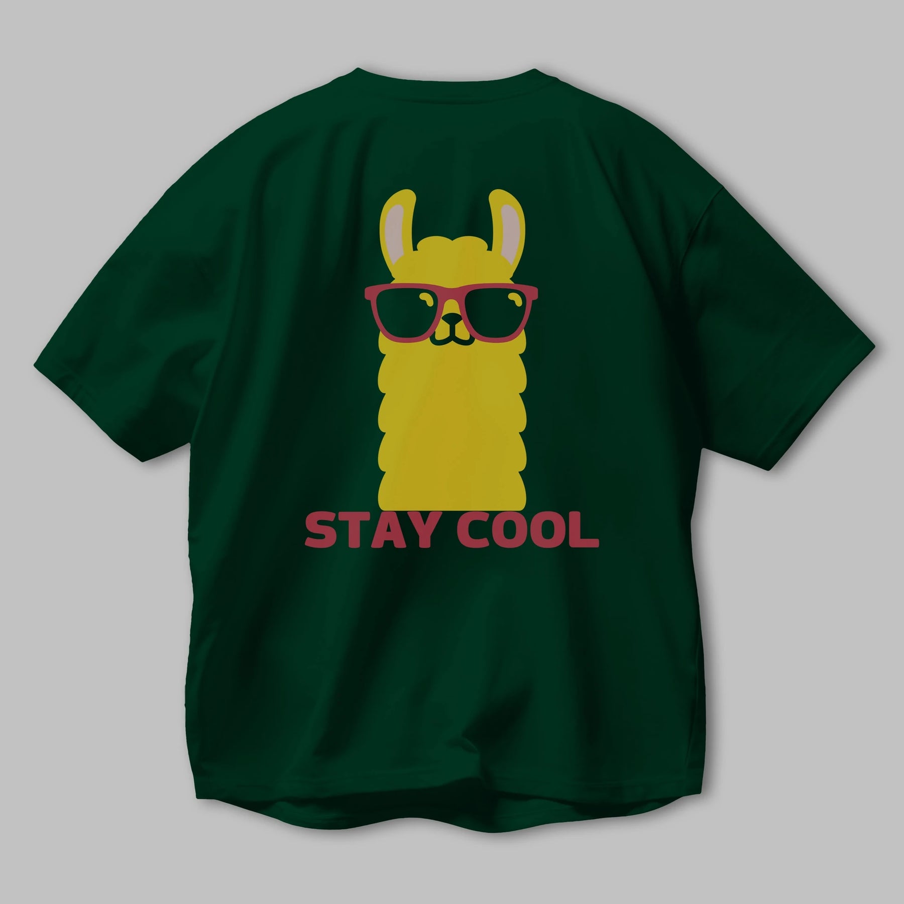 Stay Cool Yazılı Lama Arka Baskılı Oversize t-shirt Erkek Kadın Unisex