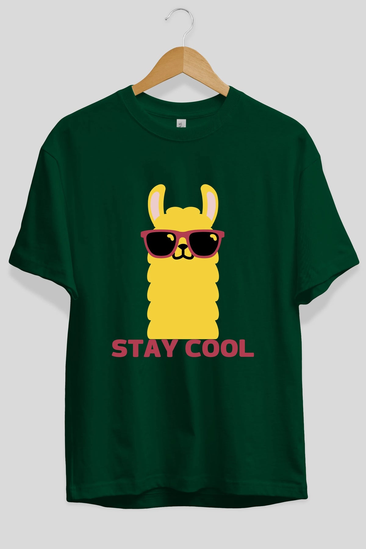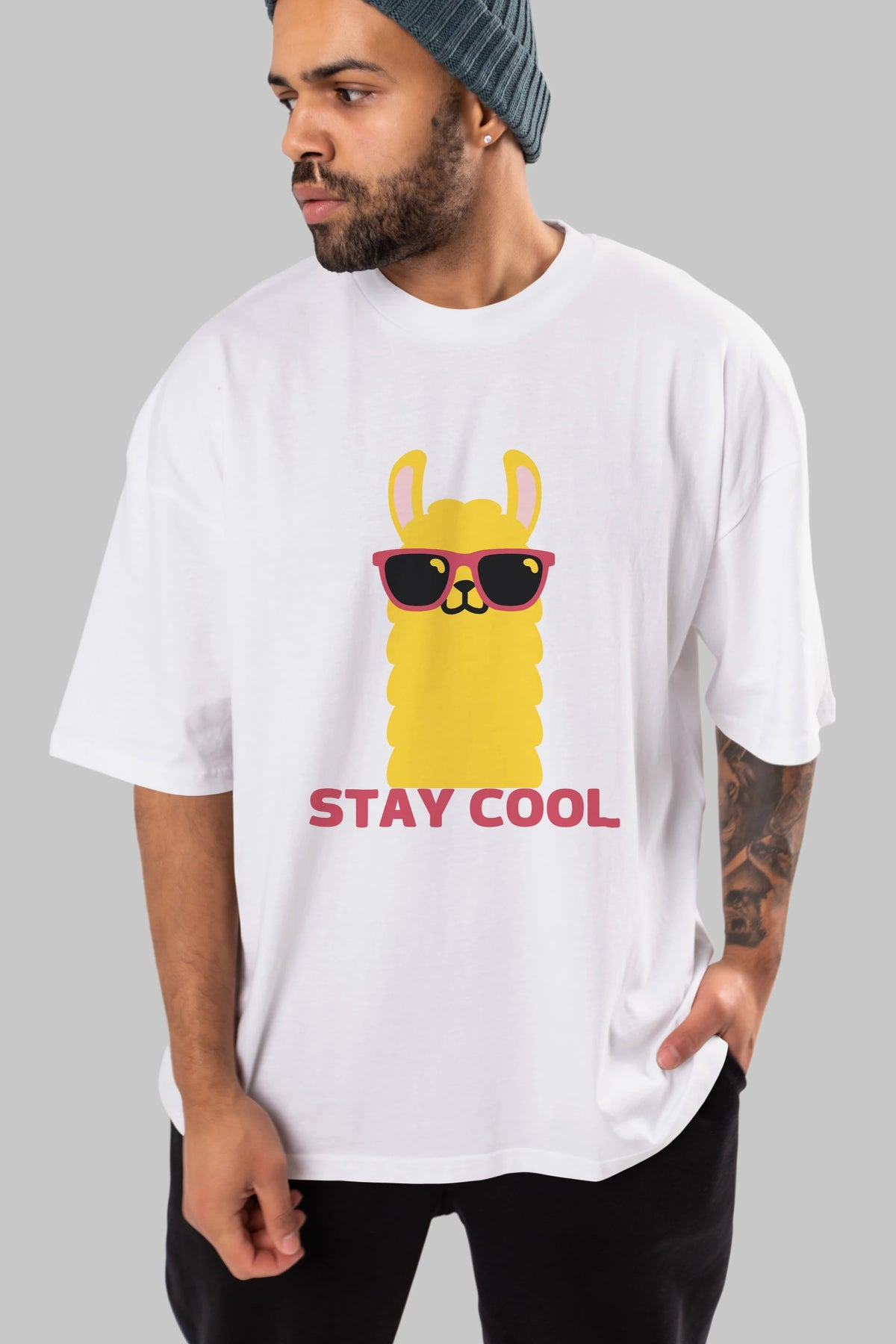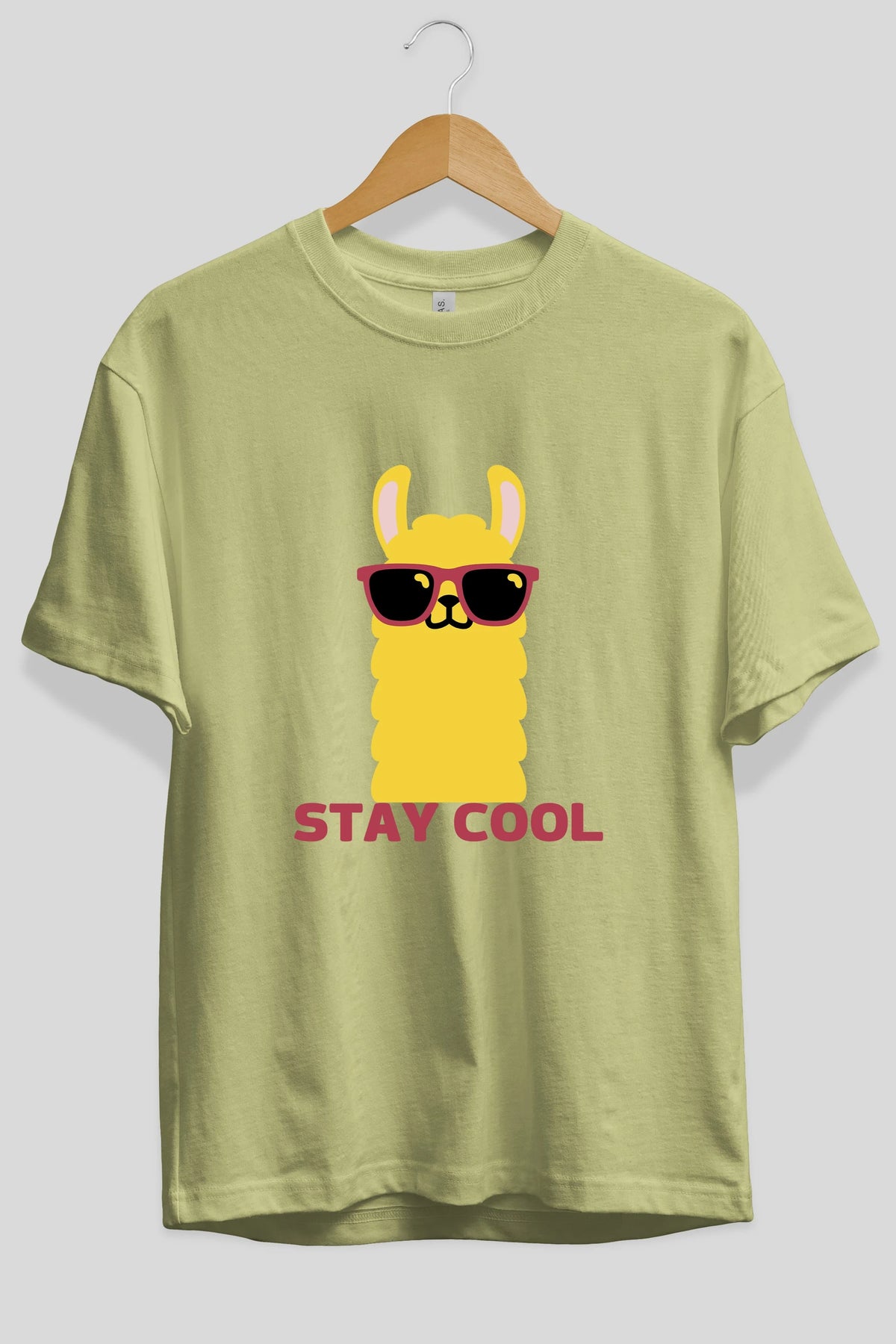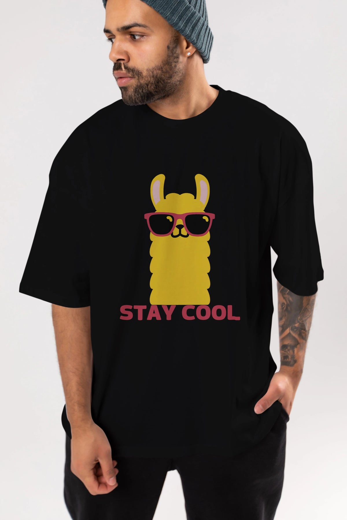 Stay Cool Yazılı Lama Ön Baskılı Oversize t-shirt Erkek Kadın Unisex