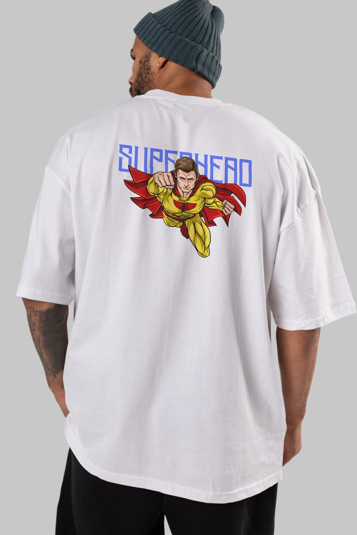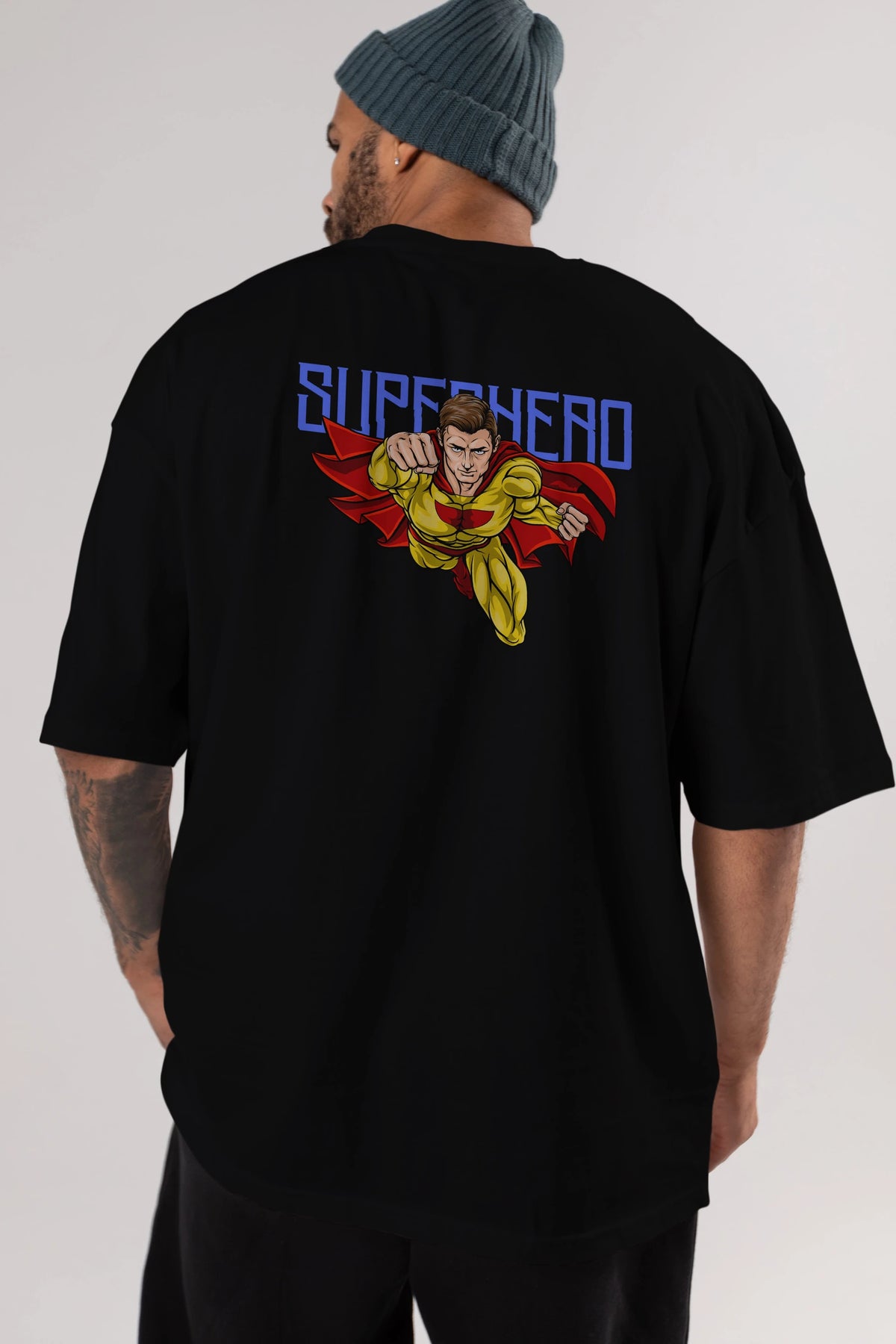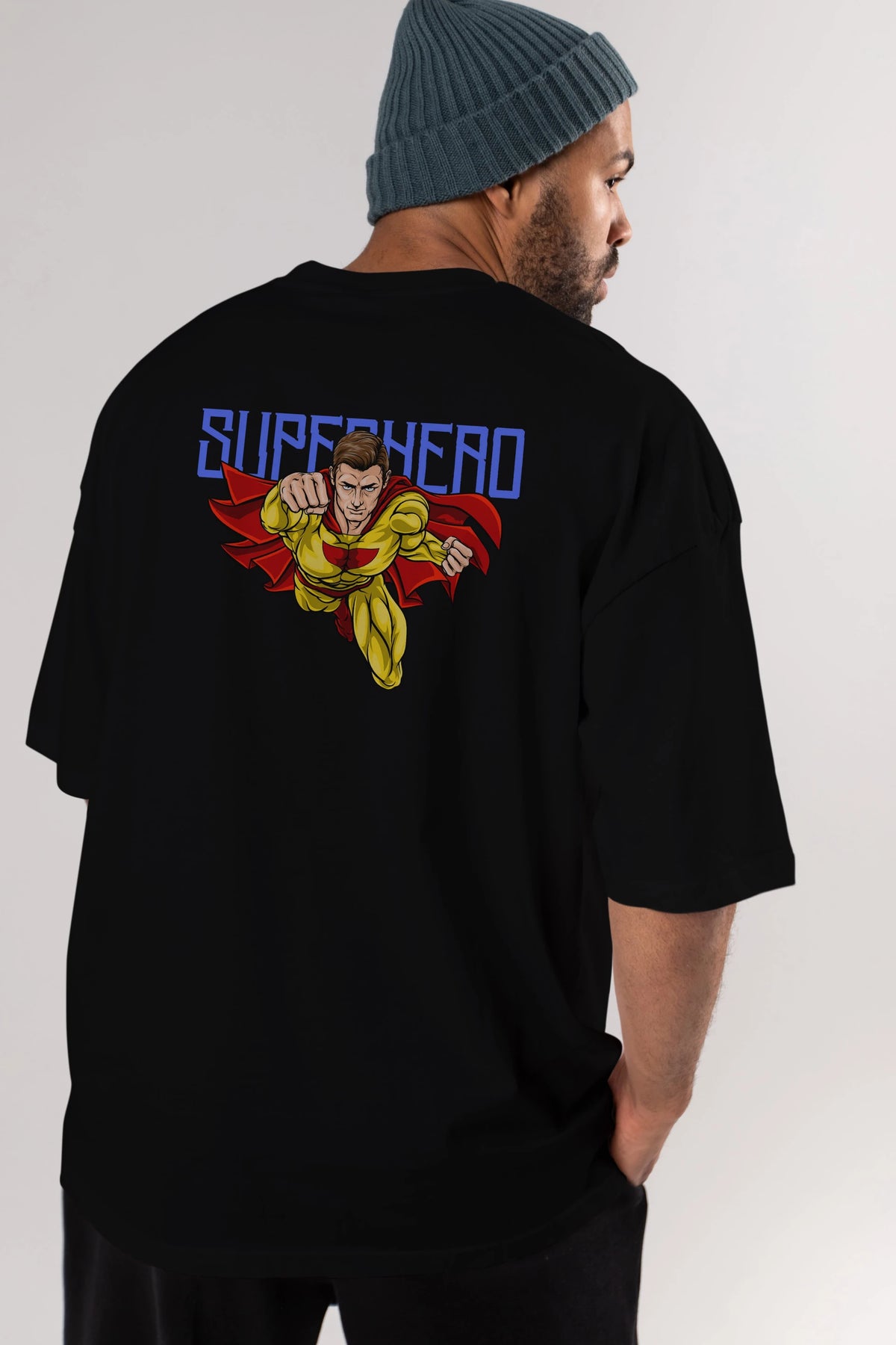 Super Hero Arka Baskılı Oversize t-shirt Erkek Kadın Unisex