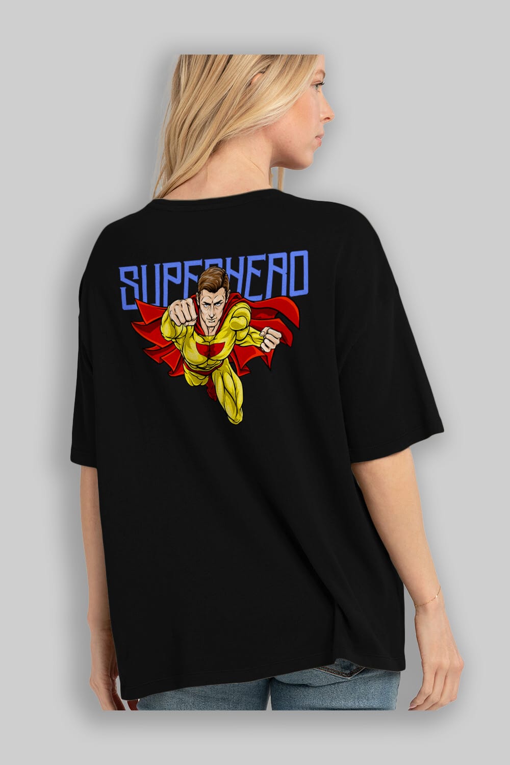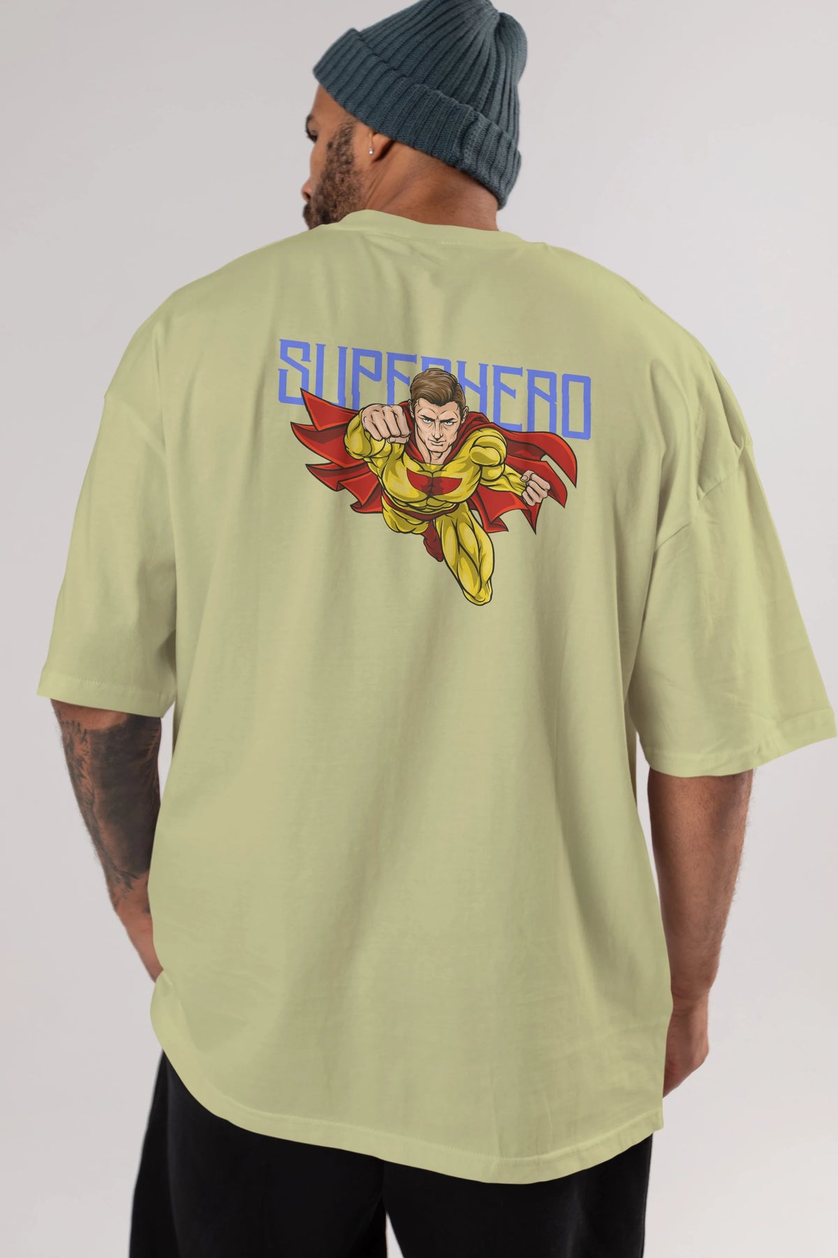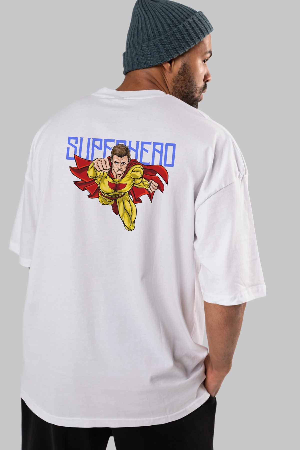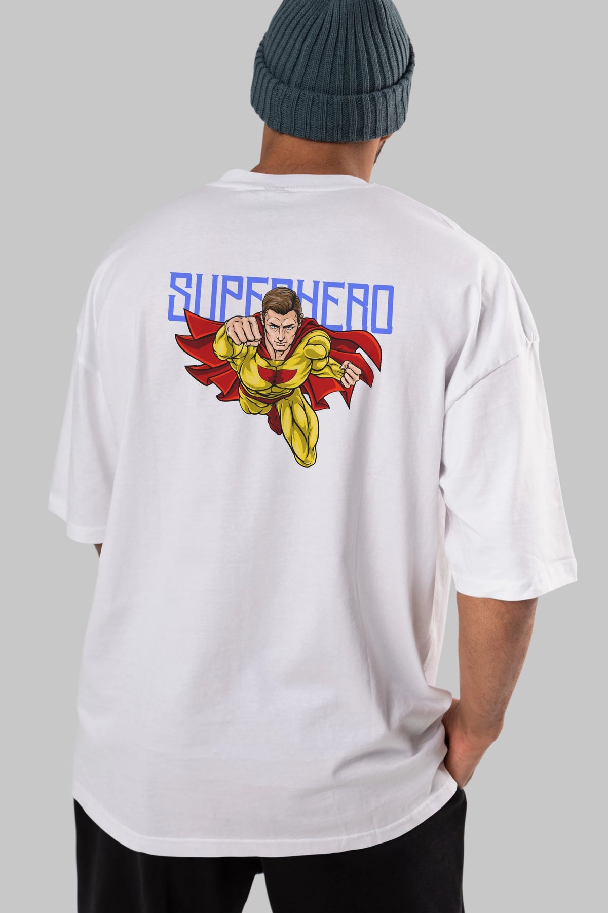 Super Hero Arka Baskılı Oversize t-shirt Erkek Kadın Unisex