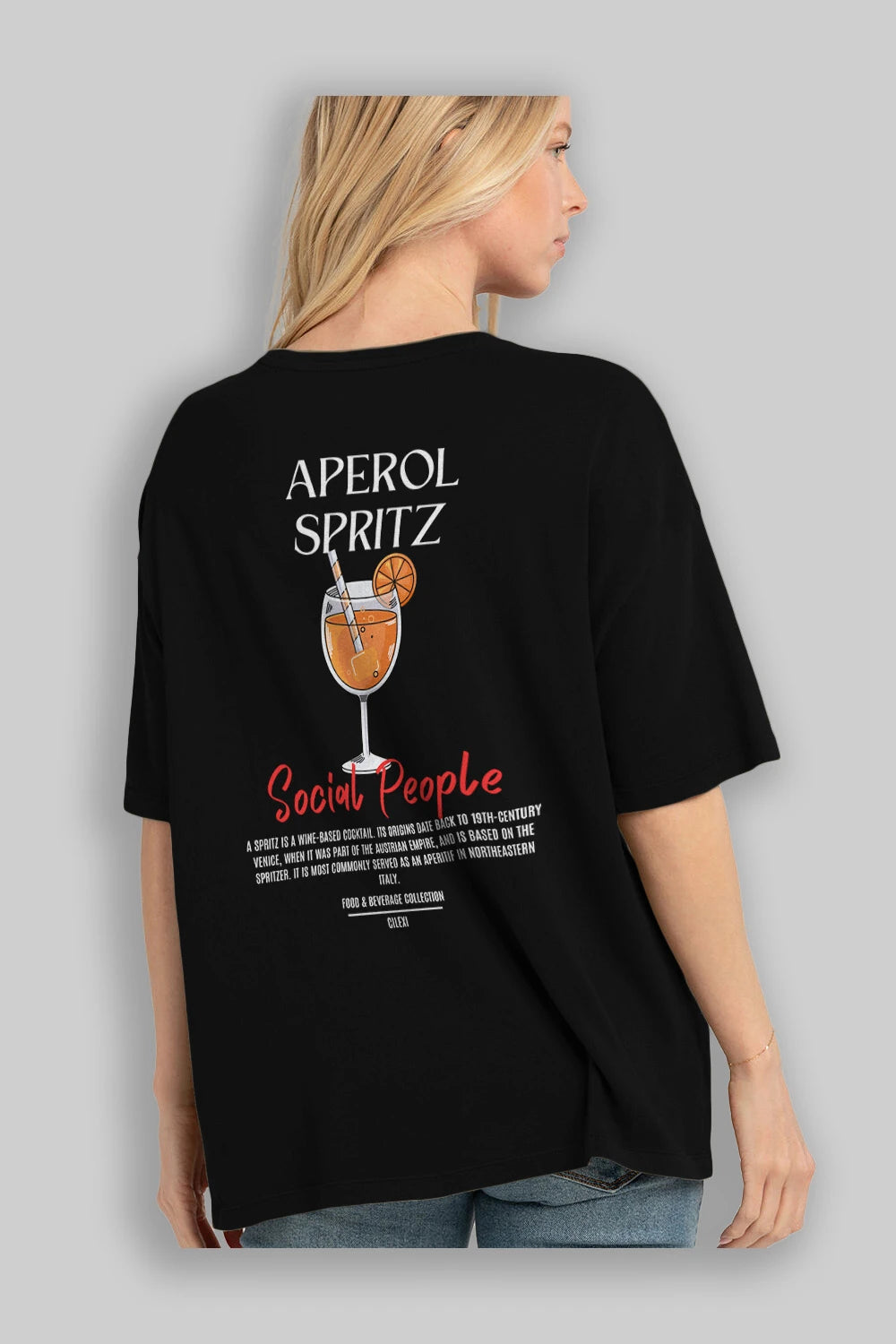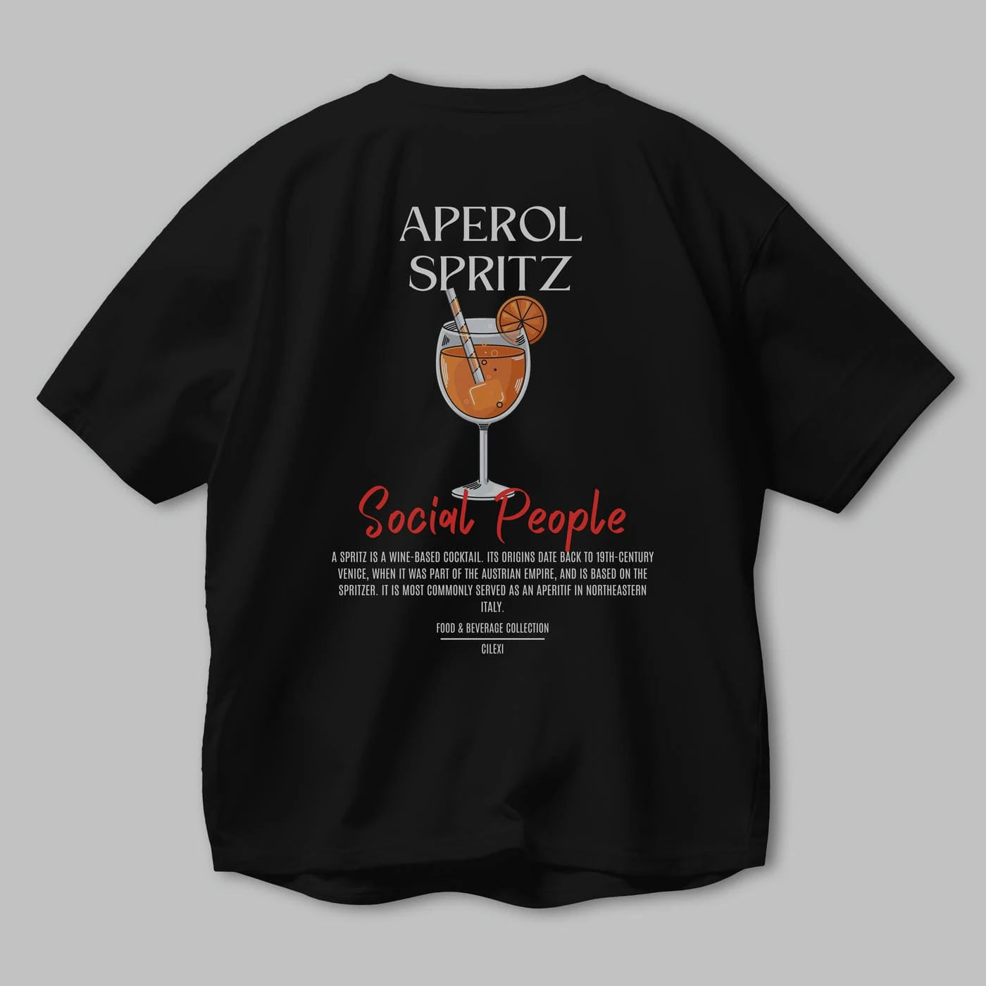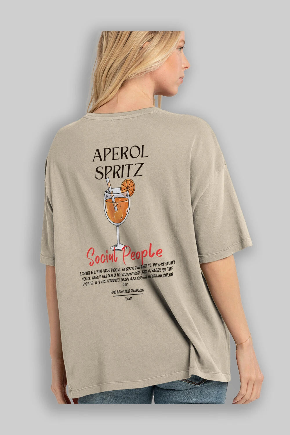 Aperol Sprıtz Kokteyl Serisi Baskılı Oversize t-shirt Erkek Kadın Unisex %100 Pamuk Bisiklet Yaka tişort