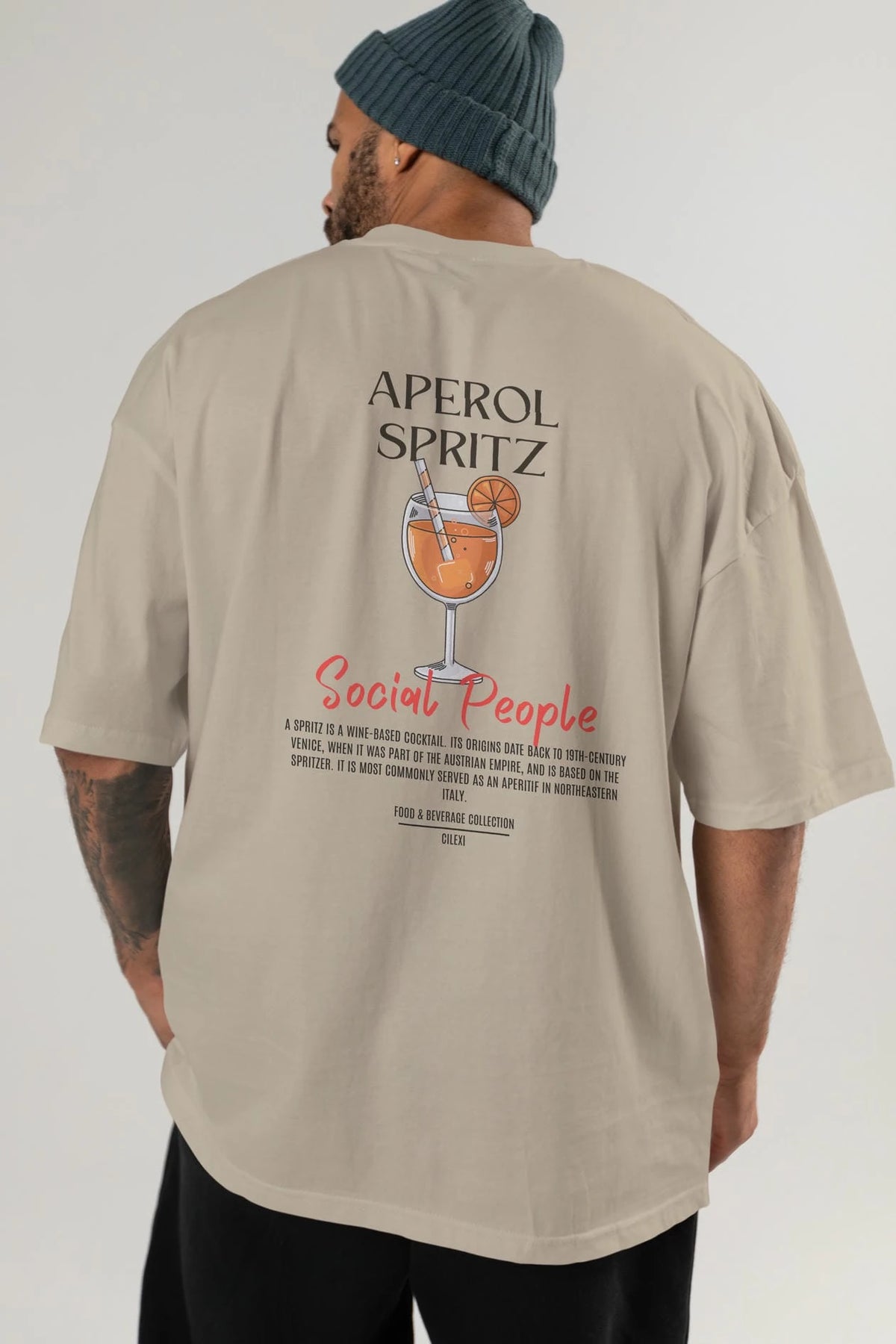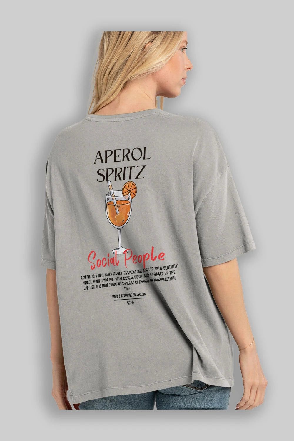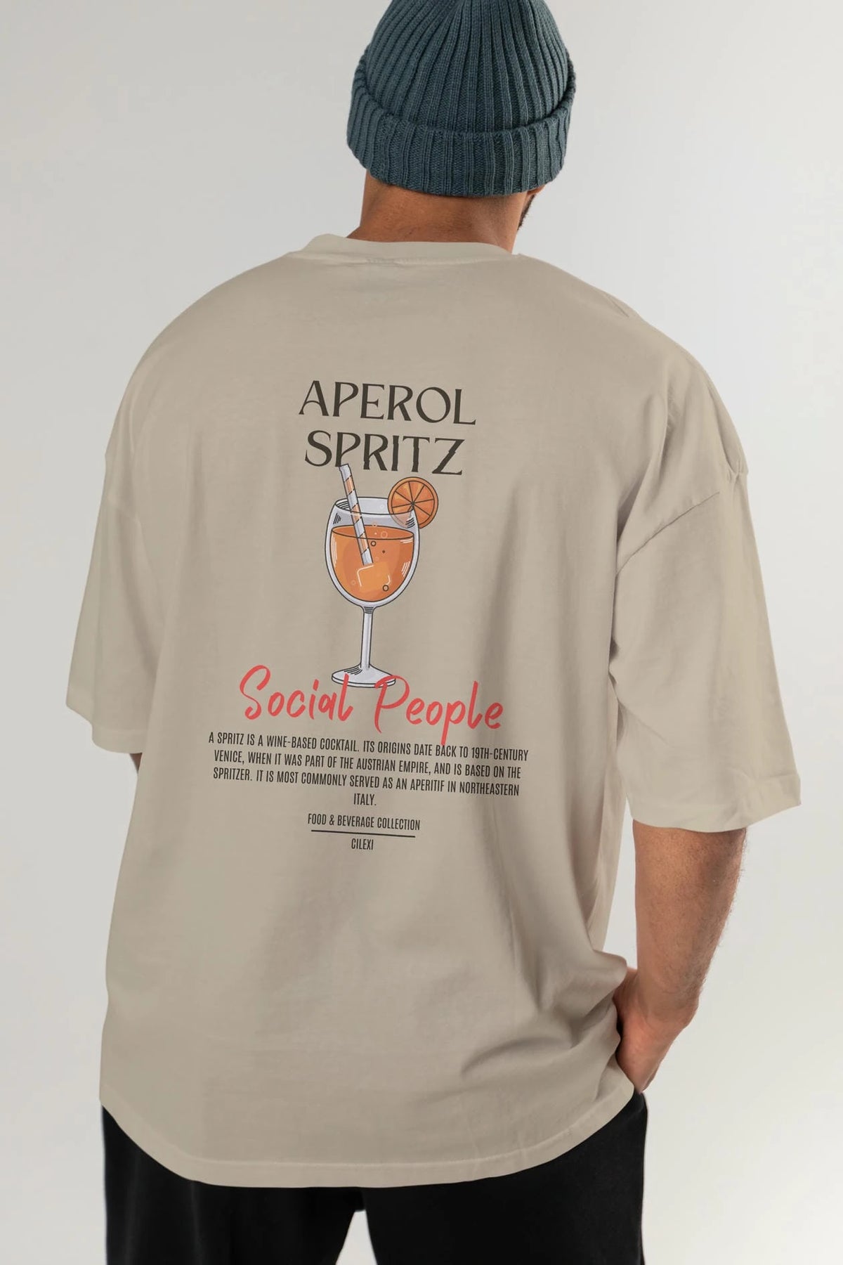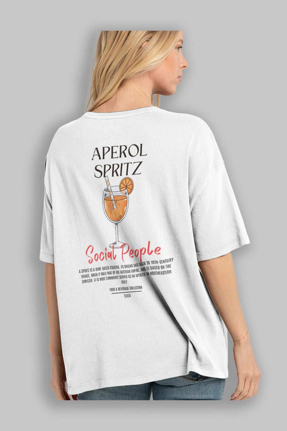 Aperol Sprıtz Kokteyl Serisi Baskılı Oversize t-shirt Erkek Kadın Unisex %100 Pamuk Bisiklet Yaka tişort