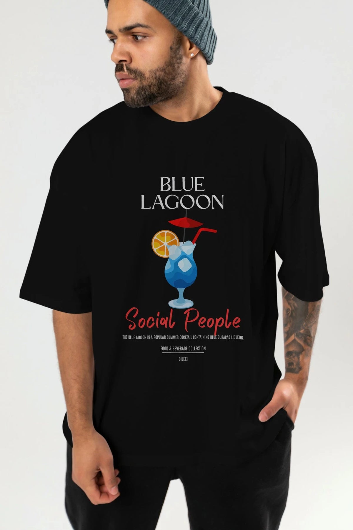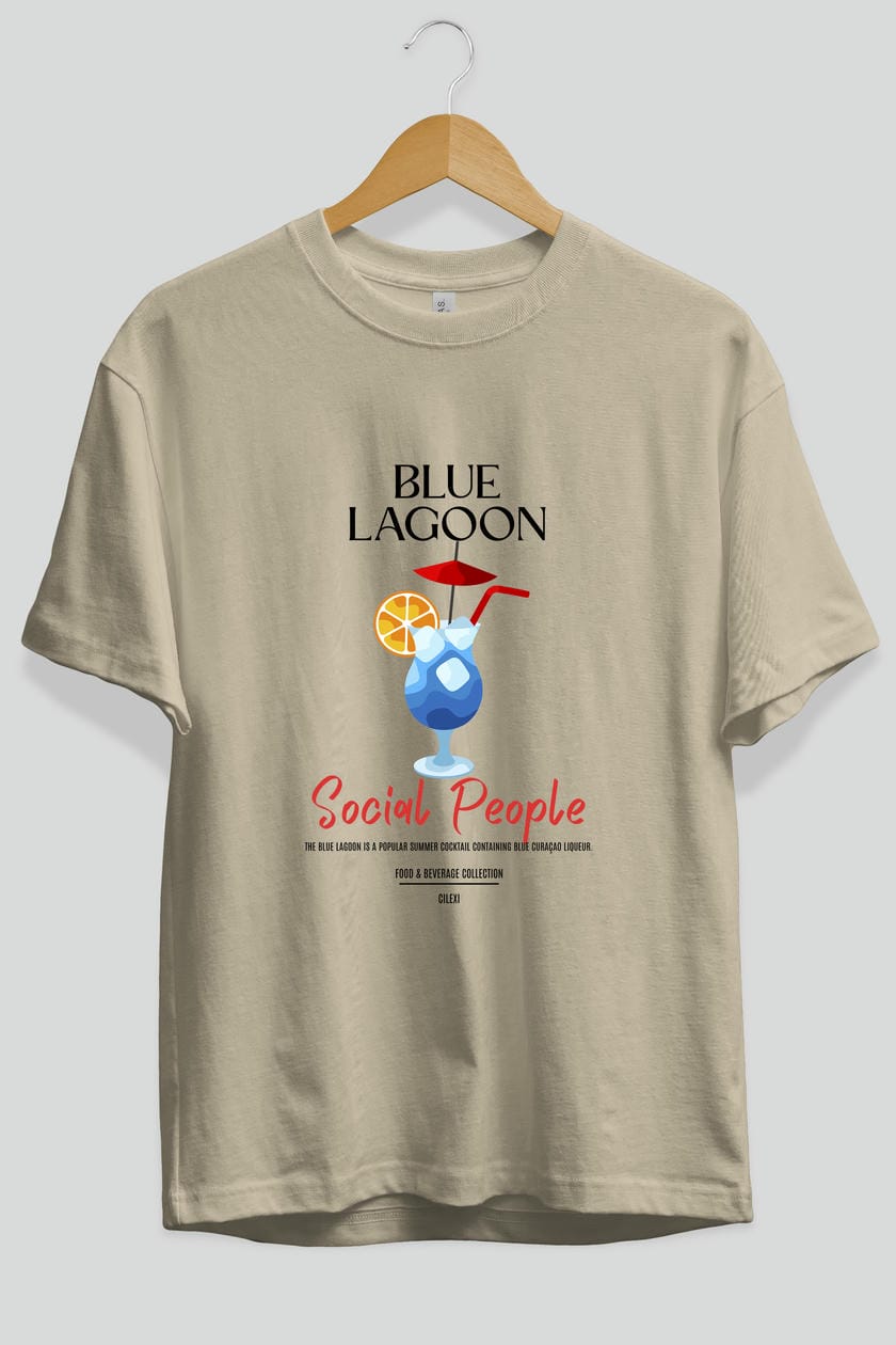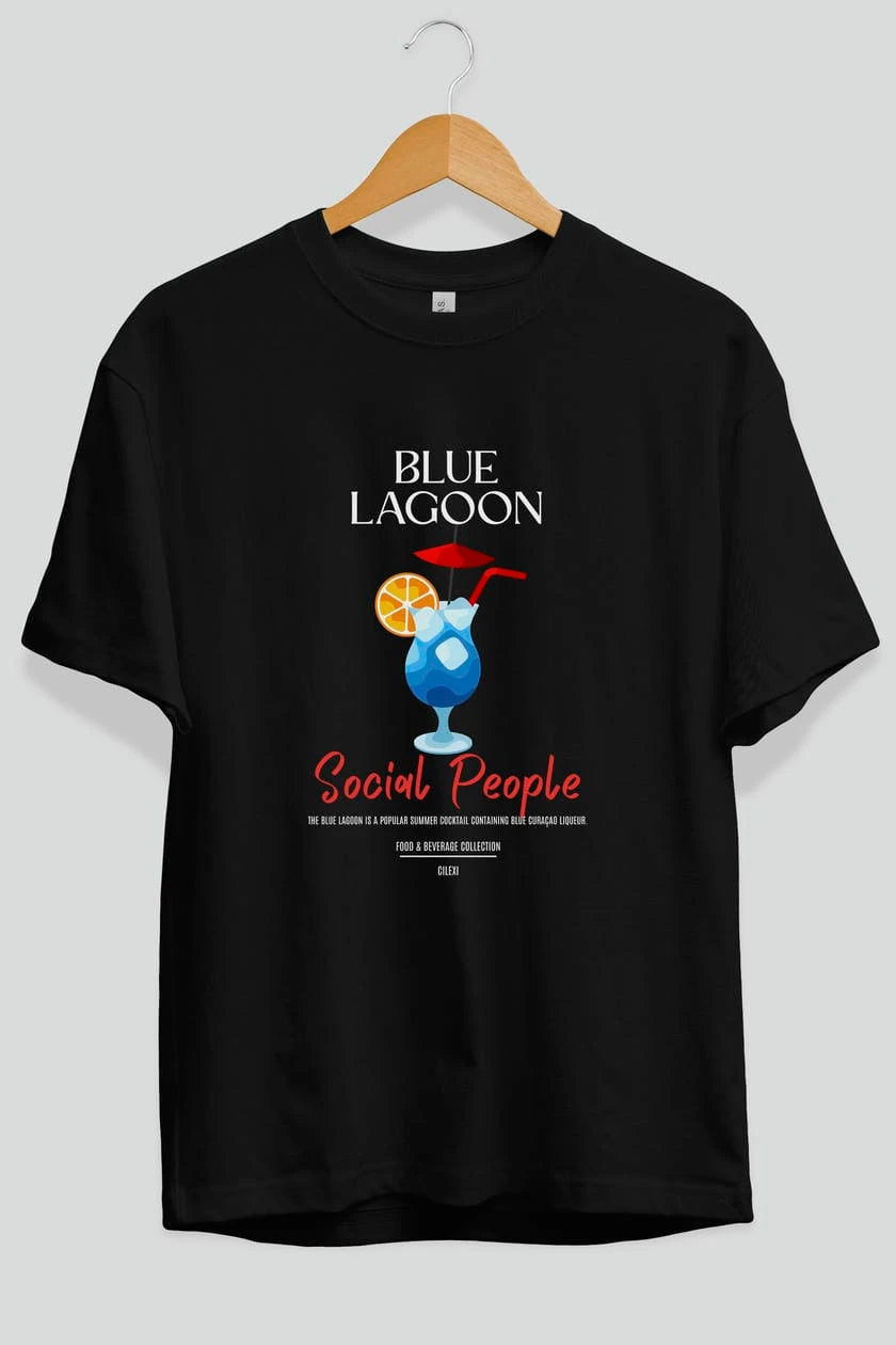 Blue Lagoon Kokteyl Serisi ön Baskılı Oversize t-shirt Erkek Kadın %100 Pamuk Bisiklet Yaka tişort