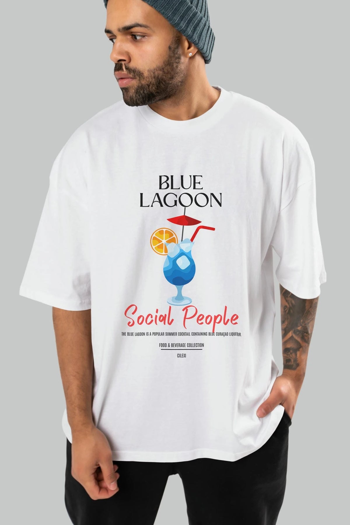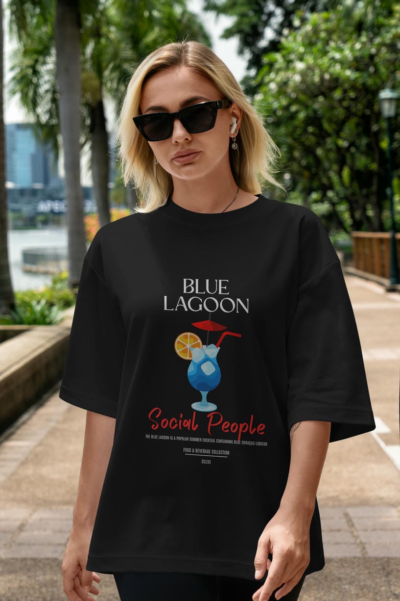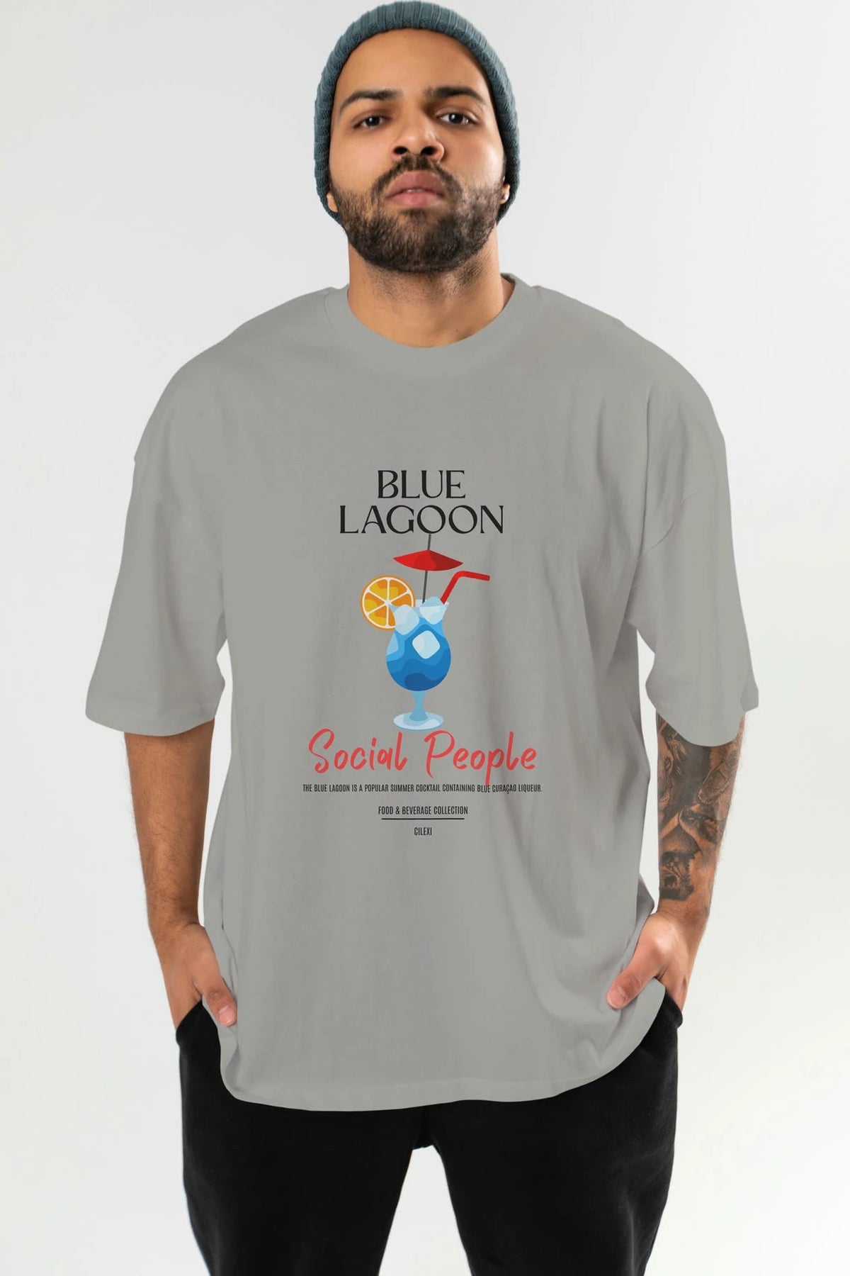 Blue Lagoon Kokteyl Serisi ön Baskılı Oversize t-shirt Erkek Kadın %100 Pamuk Bisiklet Yaka tişort