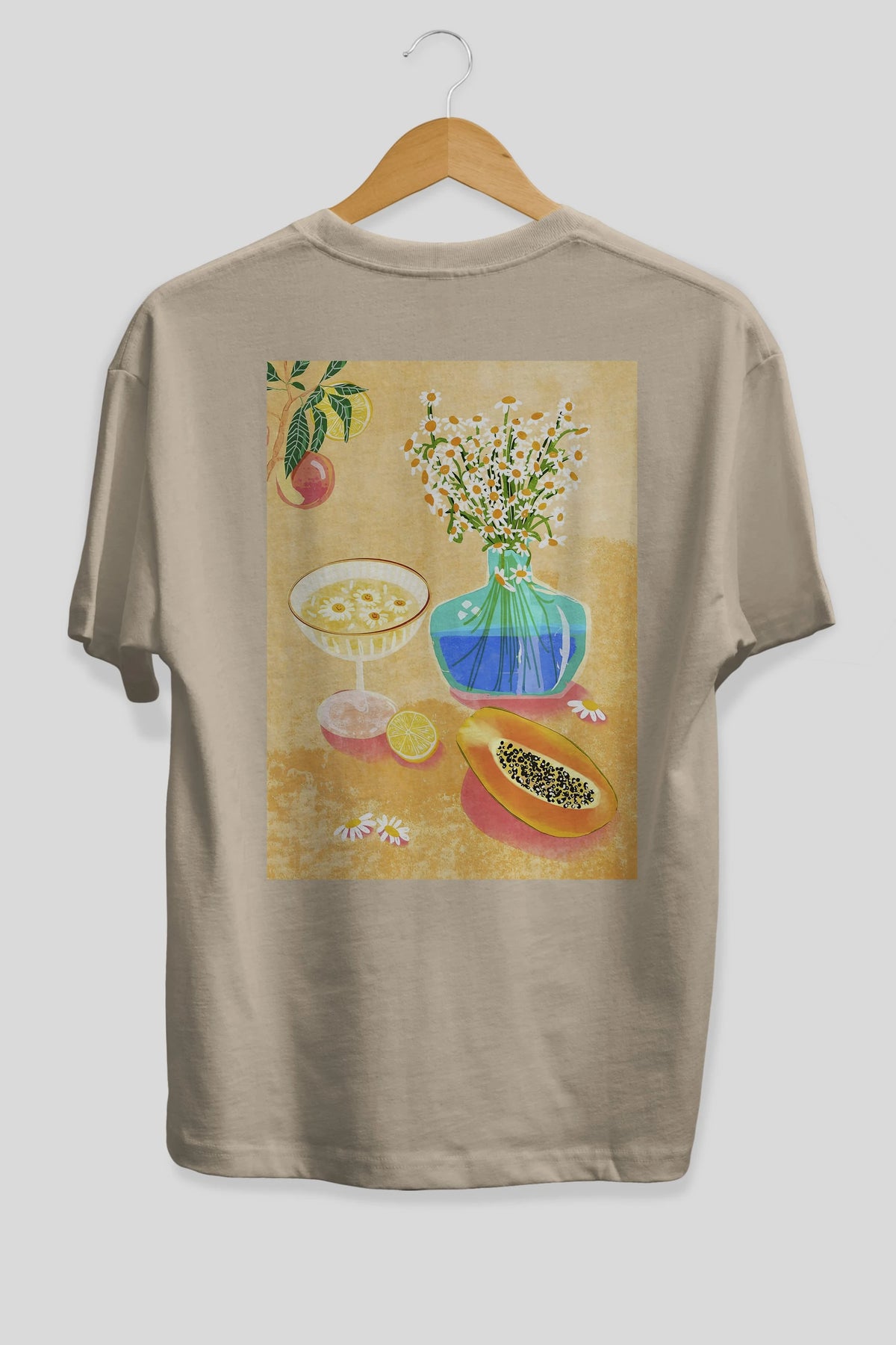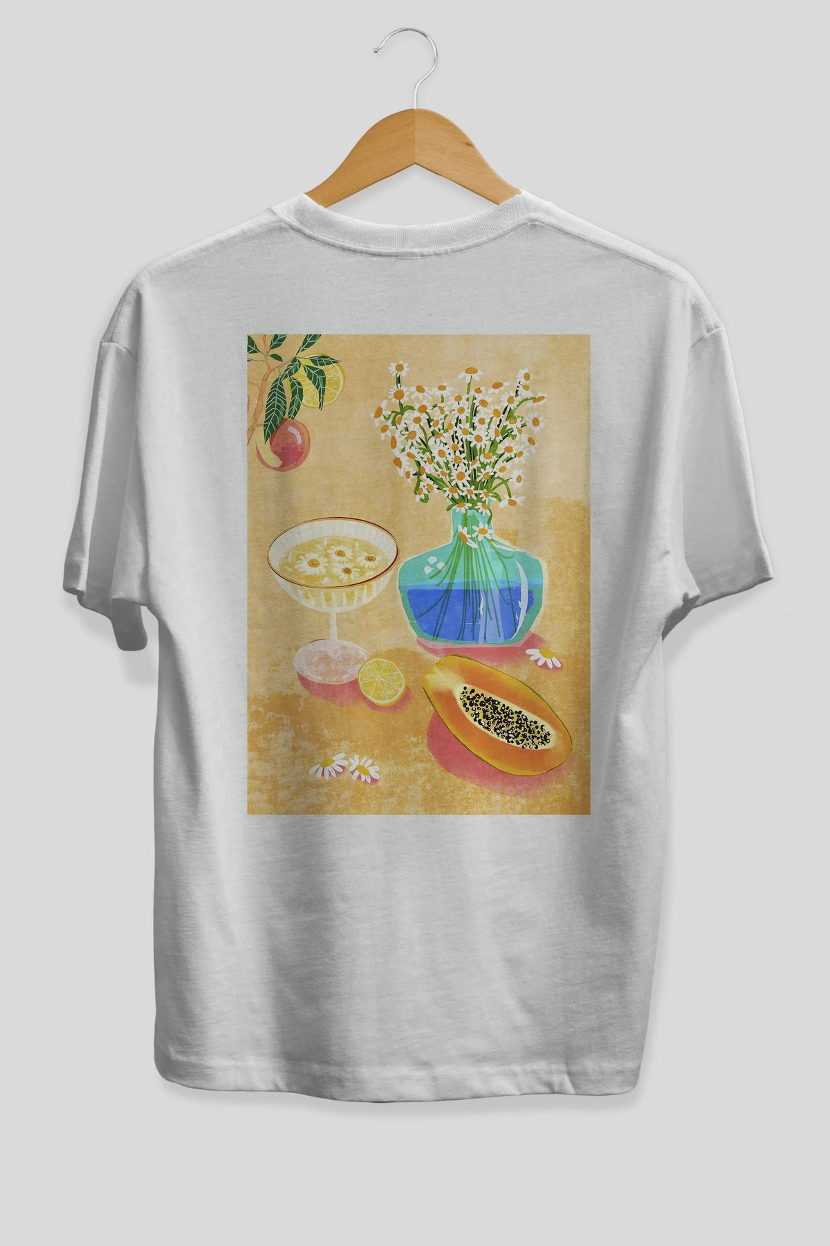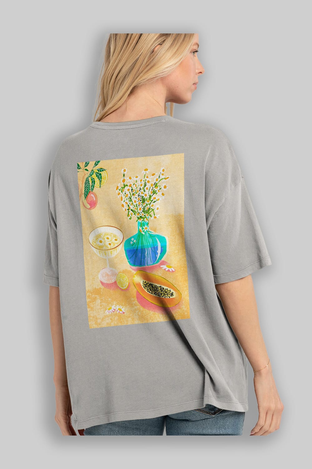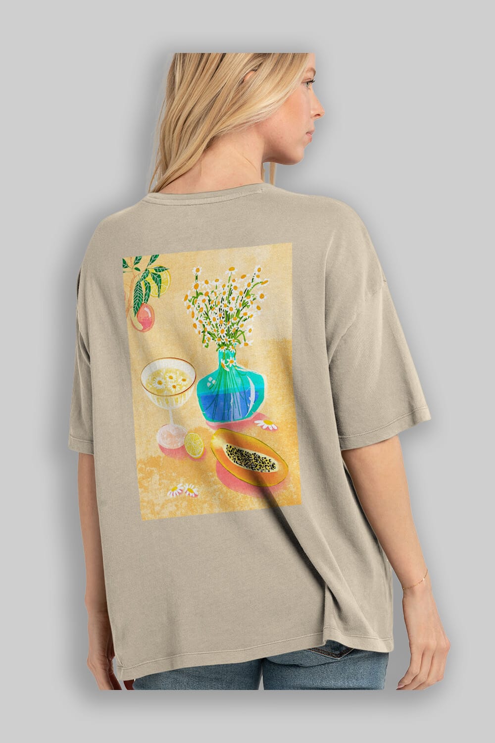 Hem erkekler hem de kadınlar için uygun, taze, modern bir baskıya sahip baskılı oversize t-shirt.