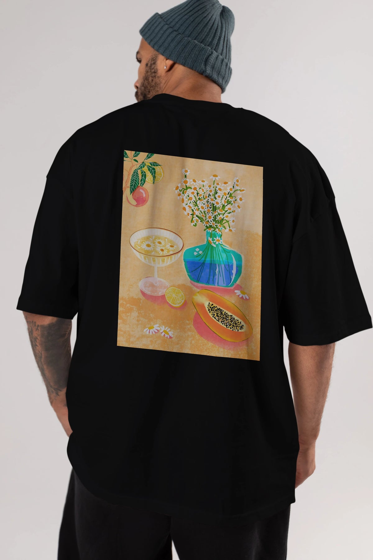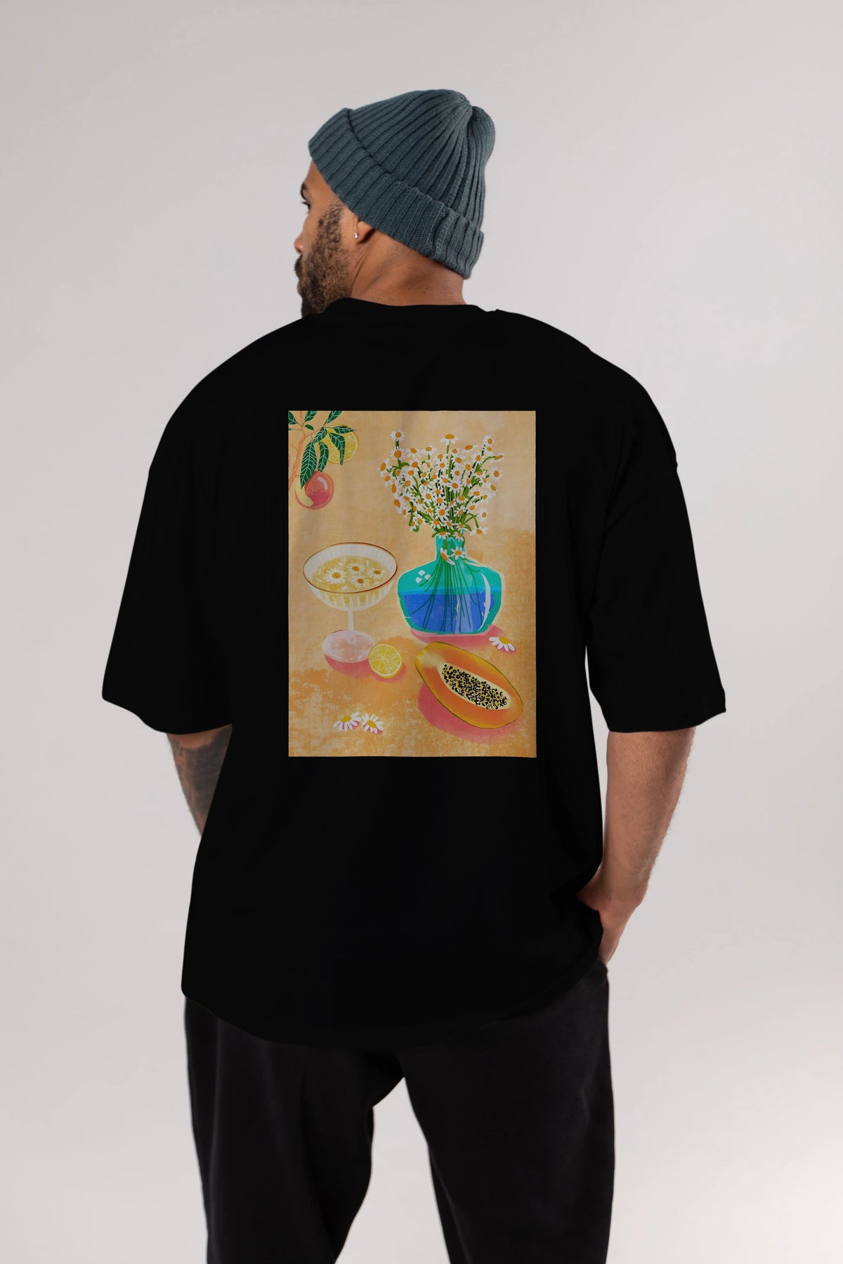 Unisex Baskılı Oversize t-shirt, gardırobunuza mükemmel bir ektir. Yumuşak ve hafif kumaştan üretilen bu şık tişort, kısa kollu ve Oversize uyumu ile tamamlanan klasik bir tasarımına sahiptir. Canlı baskılı grafikler, kalabalığın arasından şık bir şekilde sıyrılmanızı sağlayacaktır. Günlük giyim veya özel günler için mükemmel olan bu çok yönlü tişört, kısa sürede favorilerinizden biri haline gelecektir.