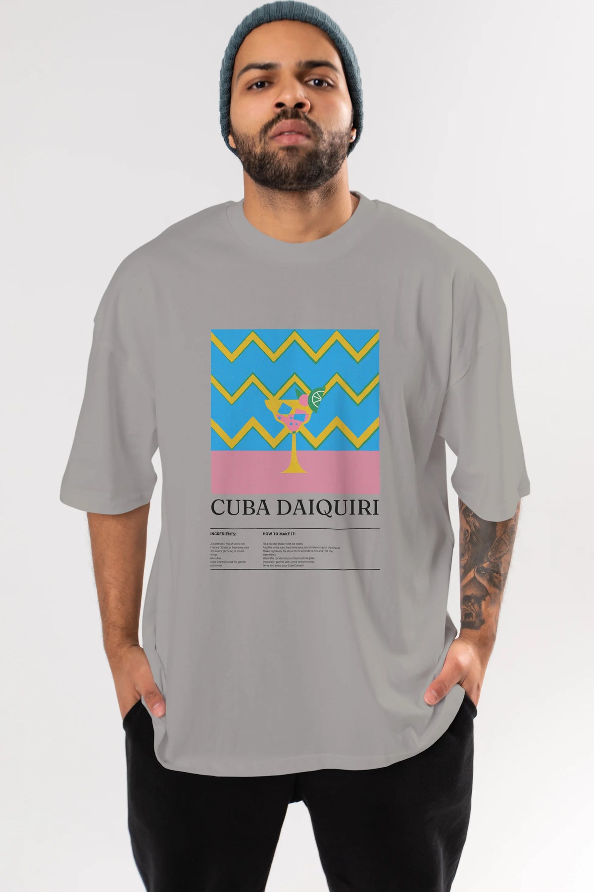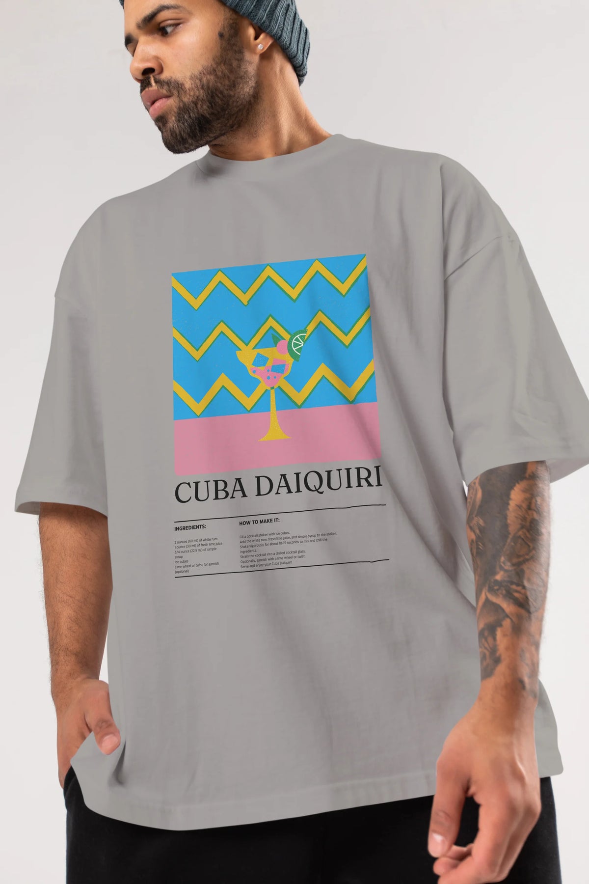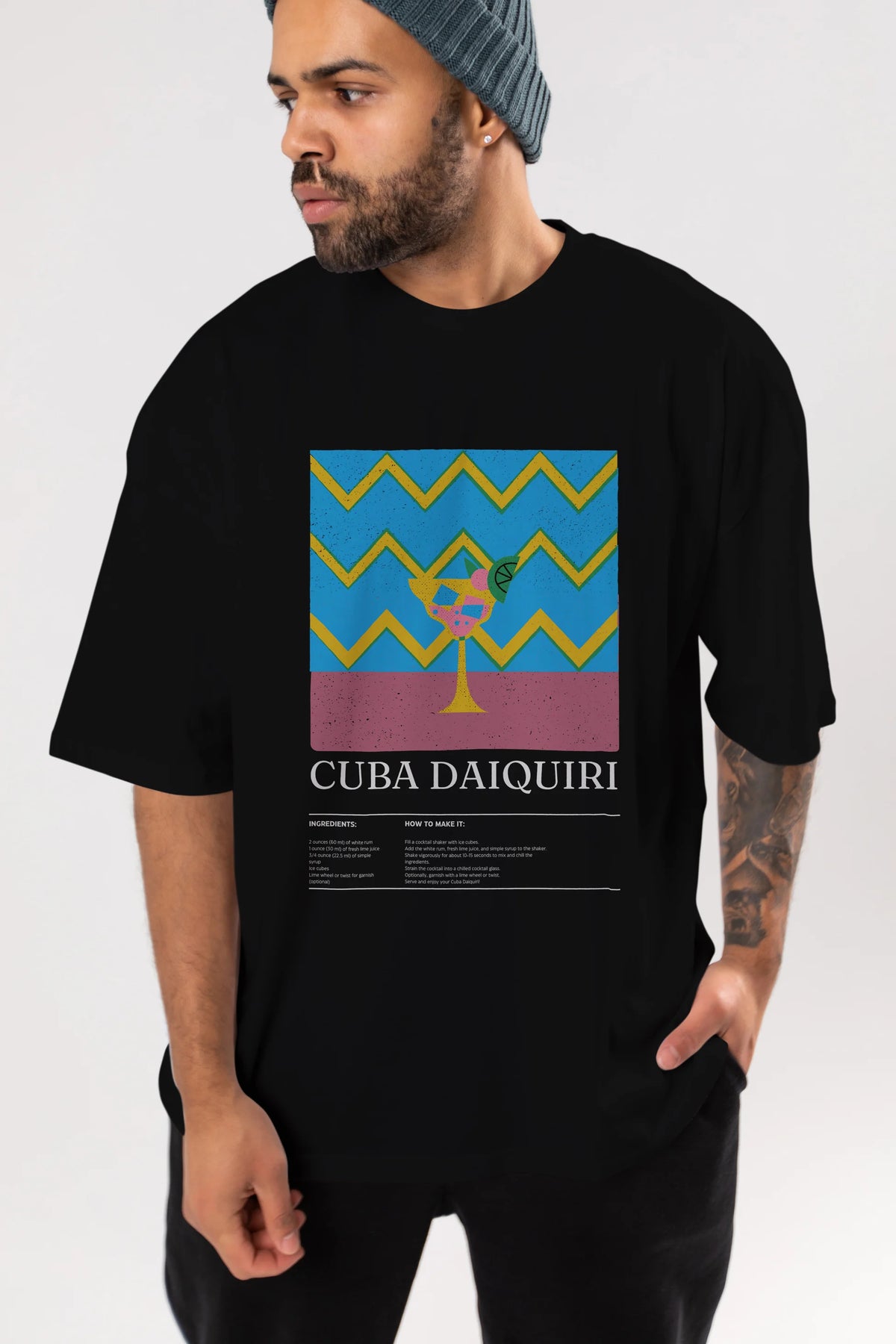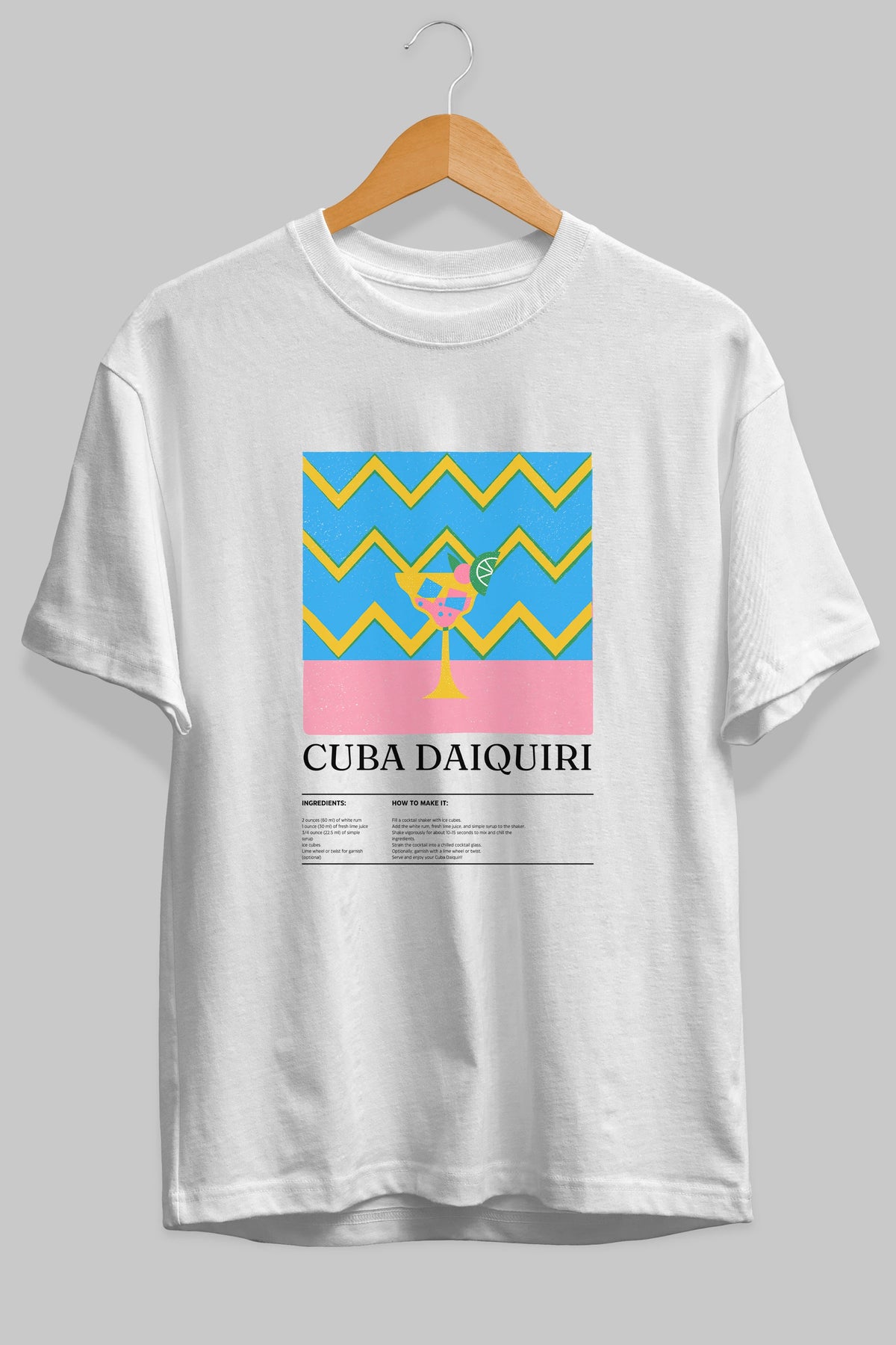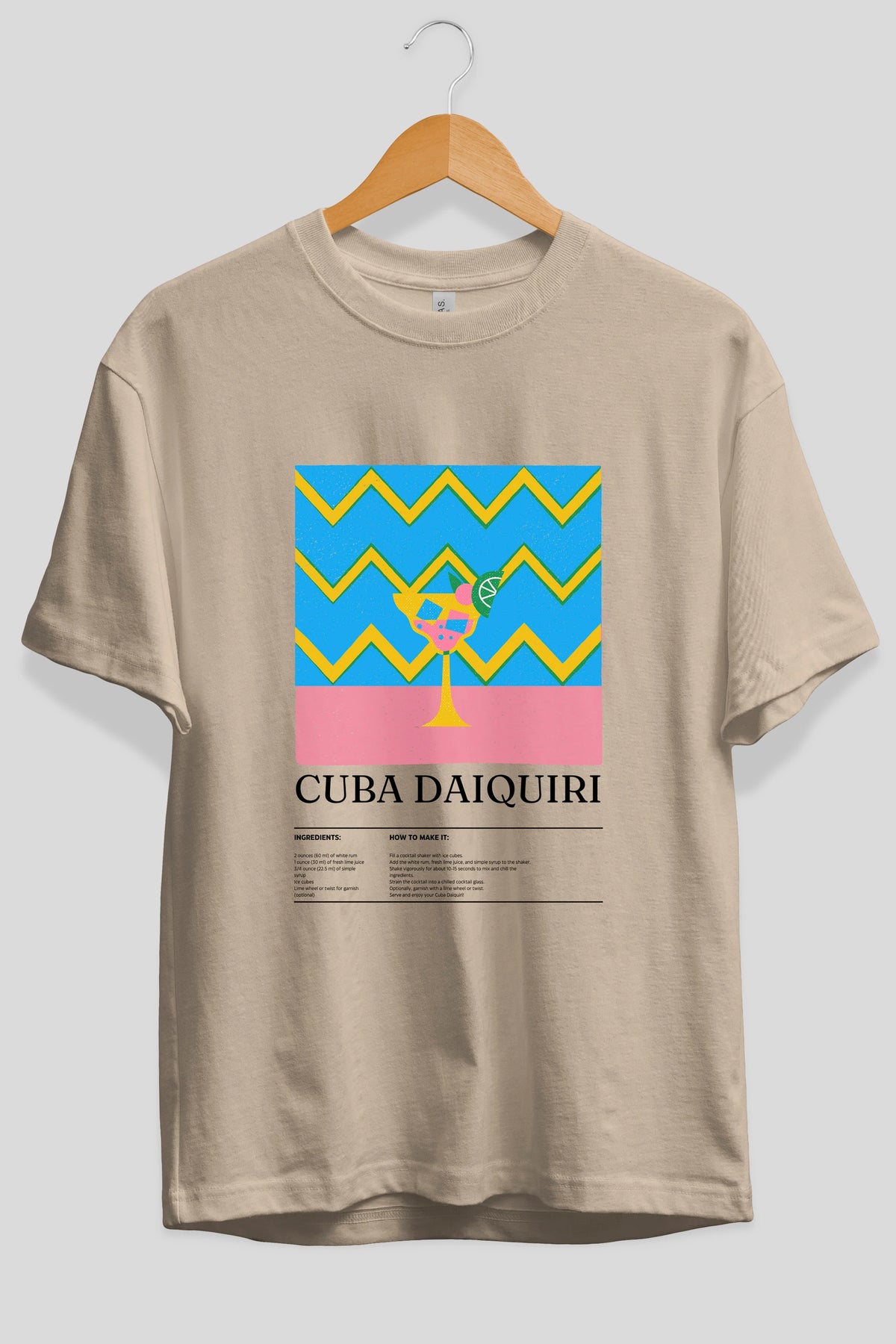 Cuba Daiquiri Kokteyl Ön Baskılı Oversize t-shirt Erkek Kadın %100 Pamuk Bisiklet Yaka tişort
