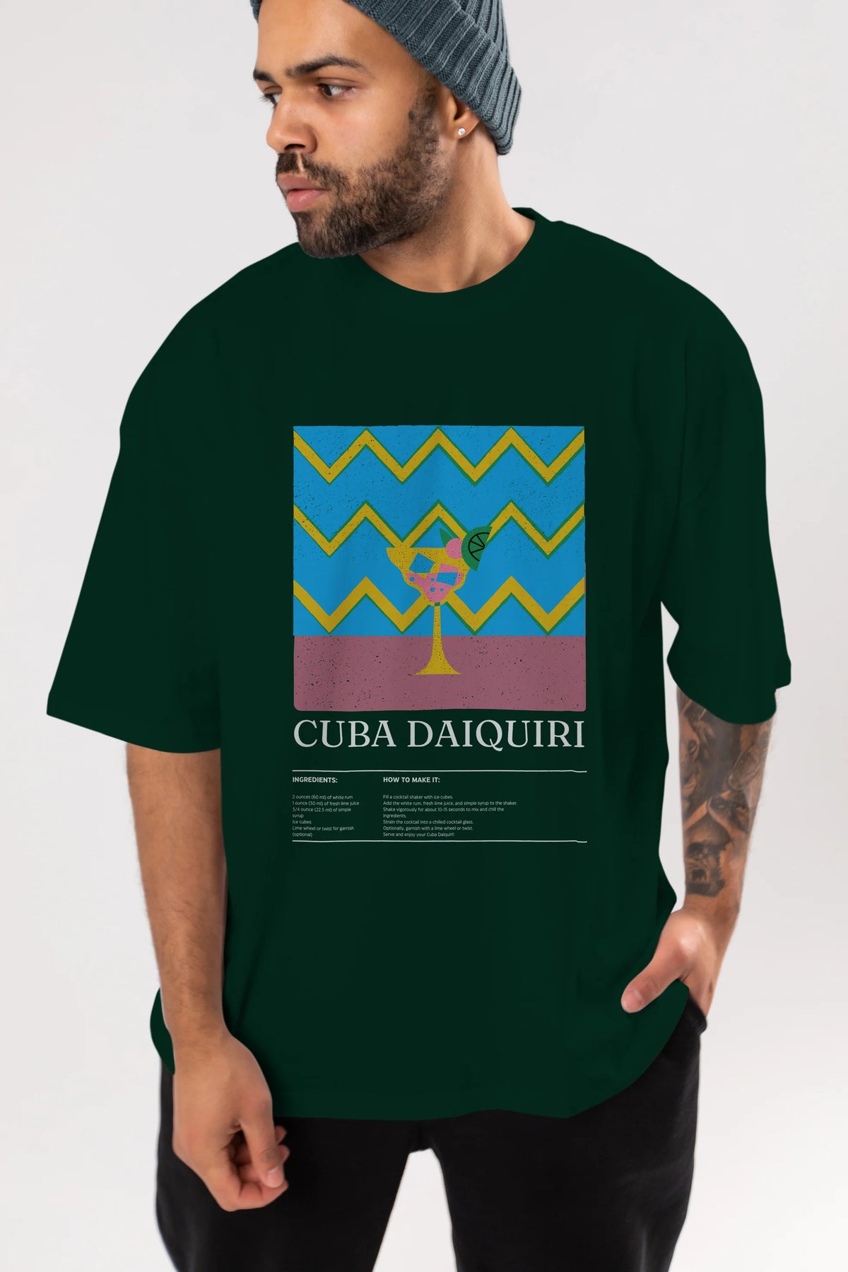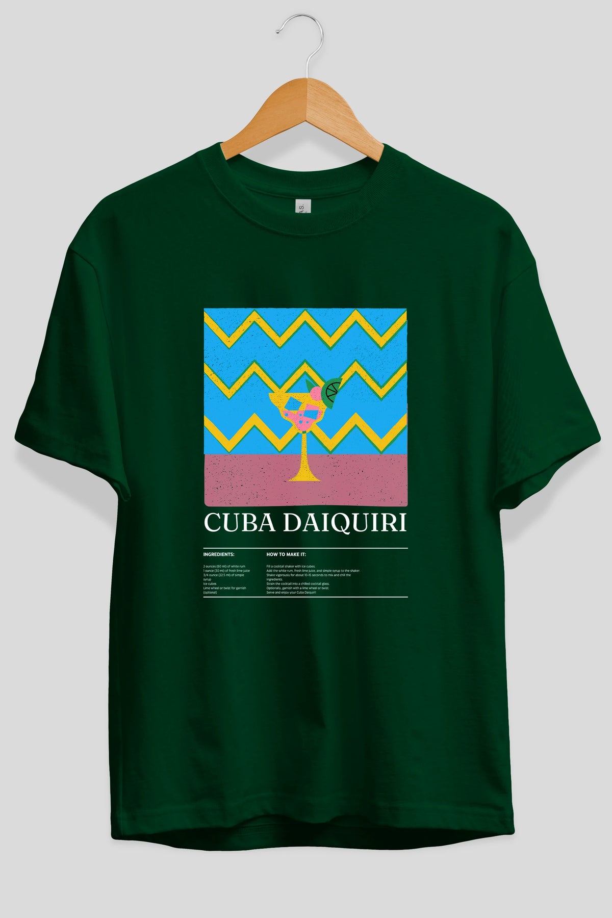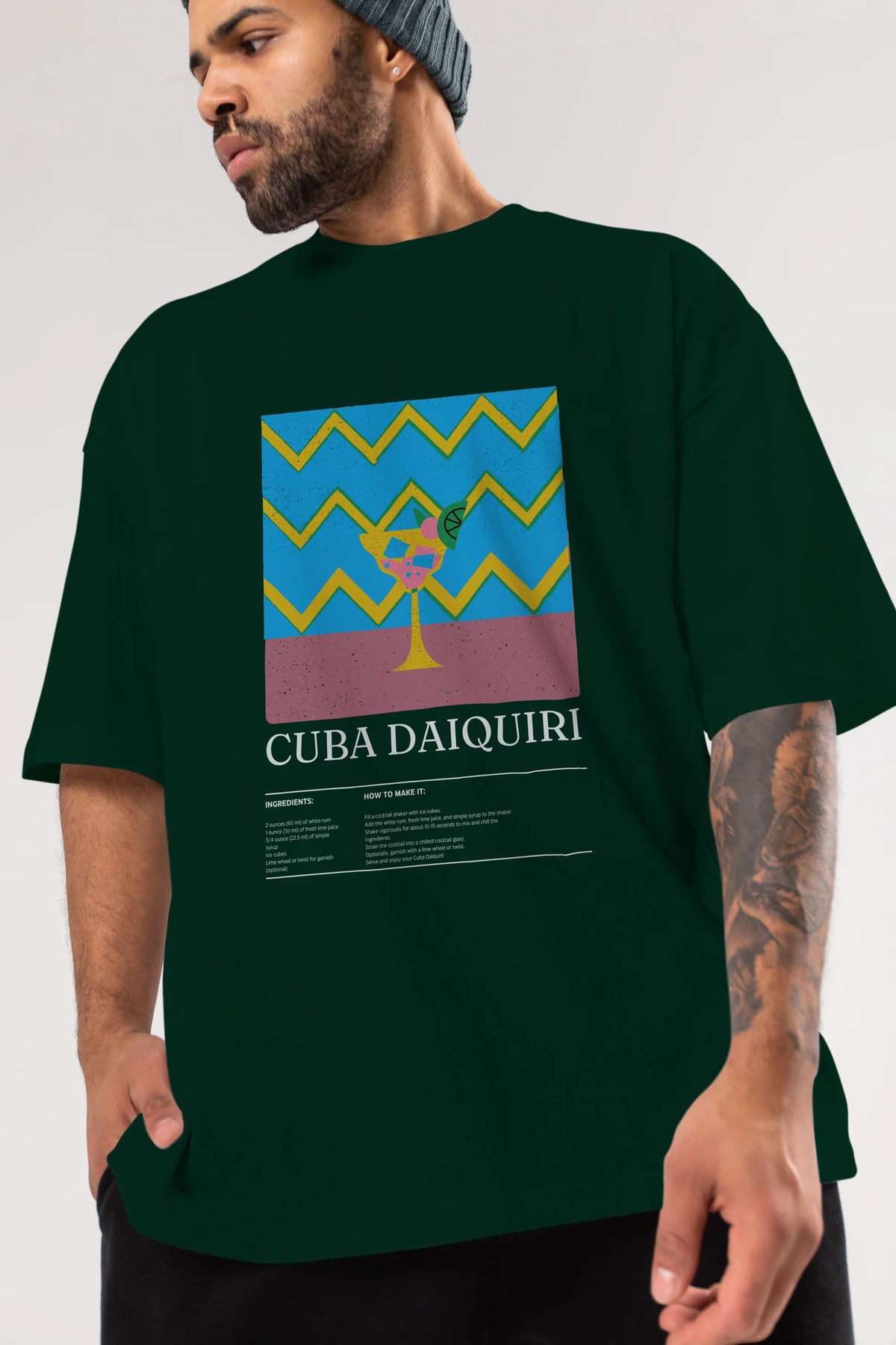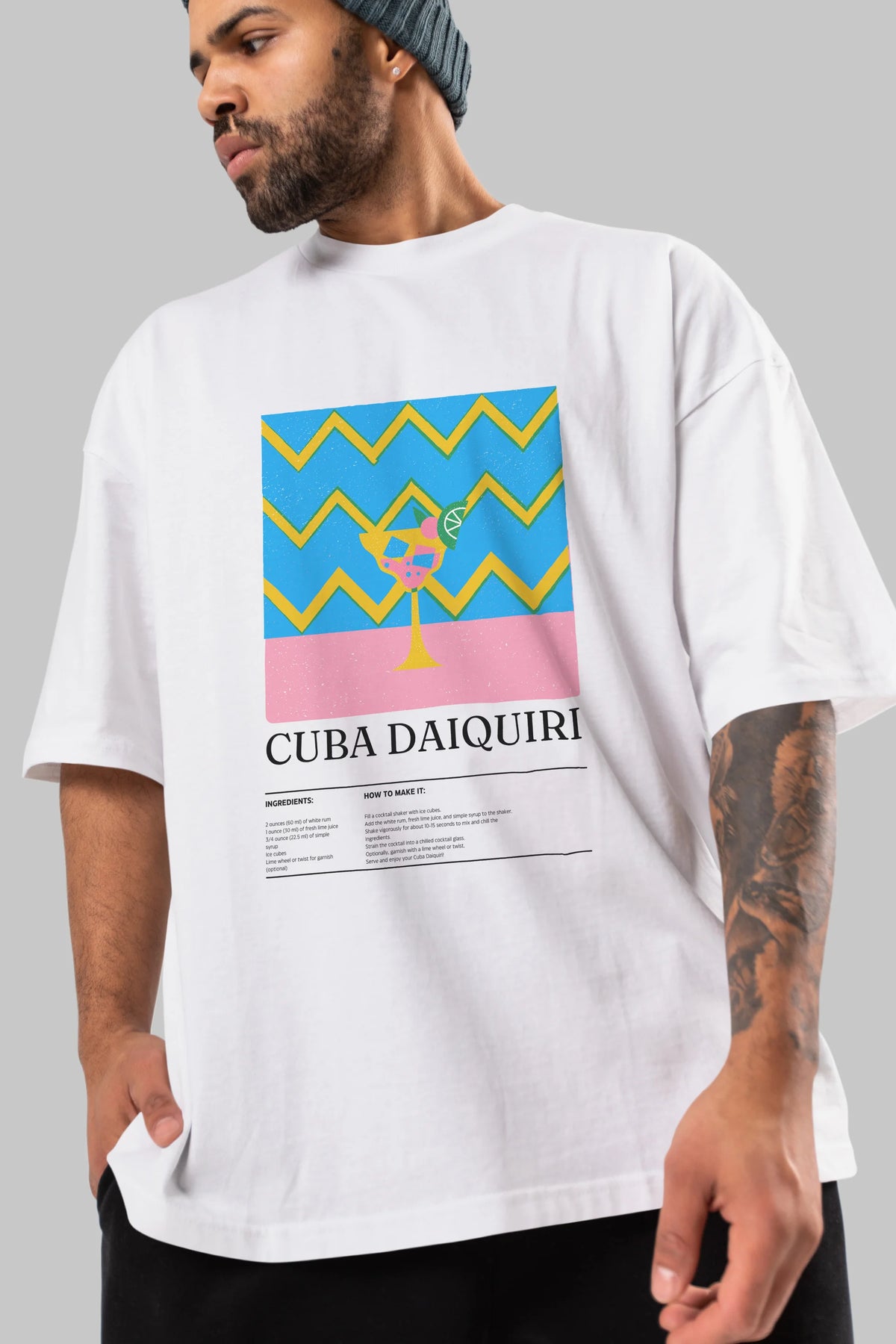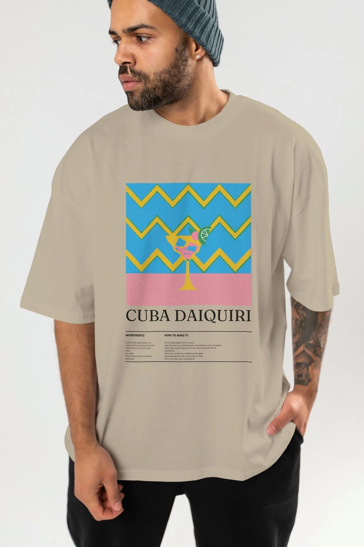 Cuba Daiquiri Kokteyl Ön Baskılı Oversize t-shirt Erkek Kadın %100 Pamuk Bisiklet Yaka tişort