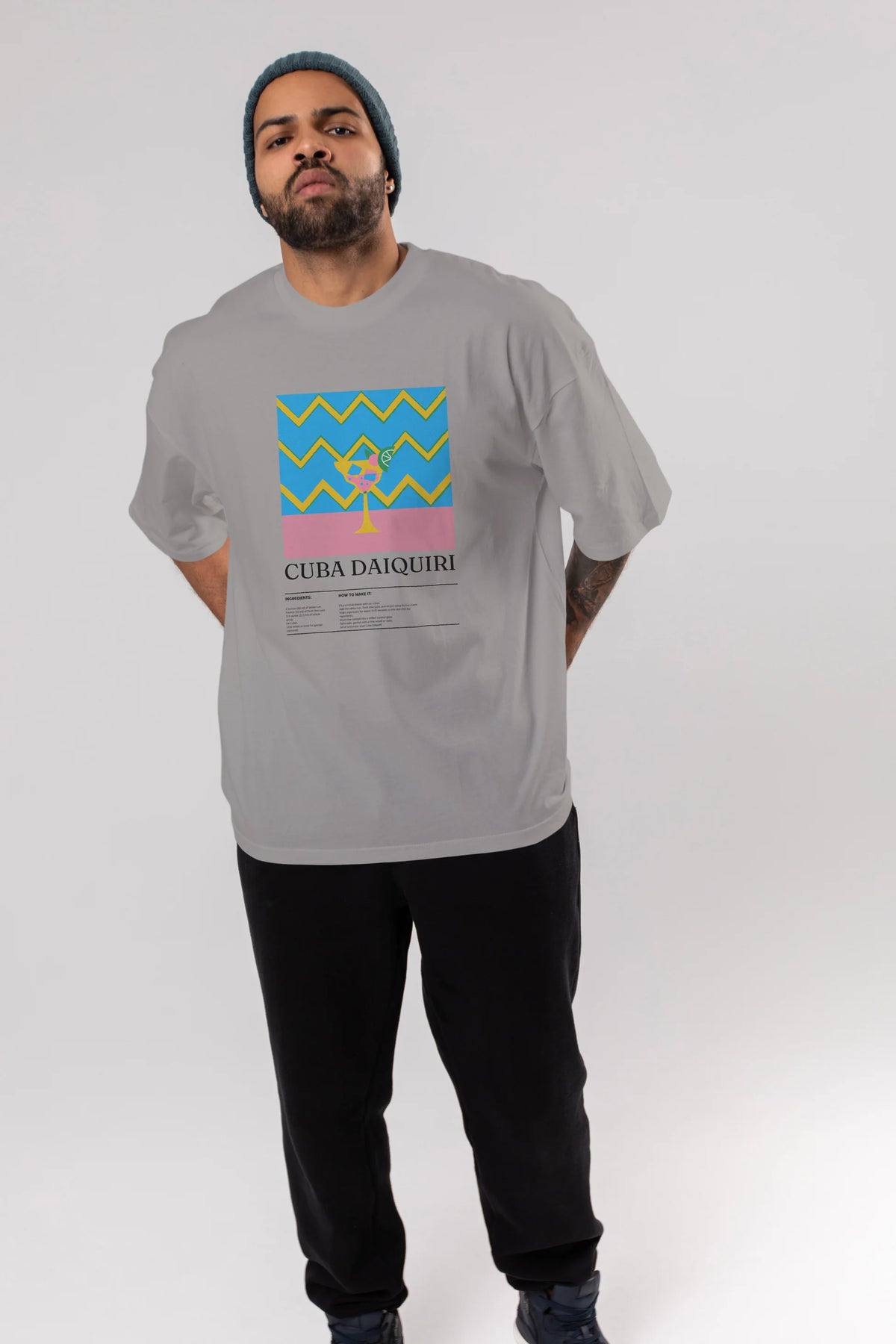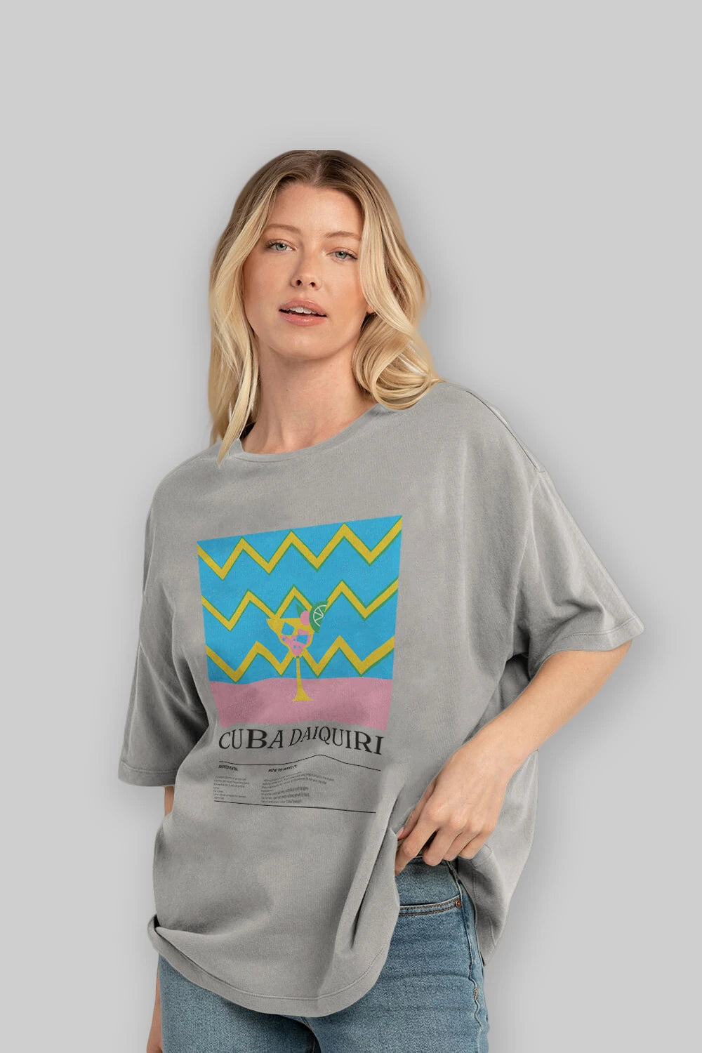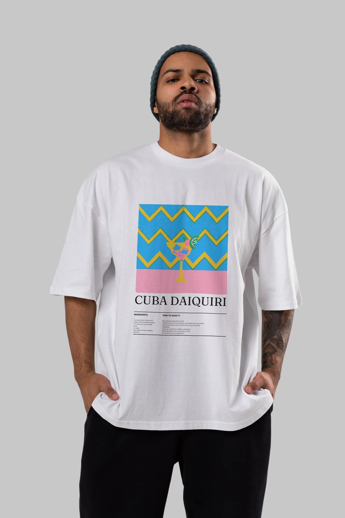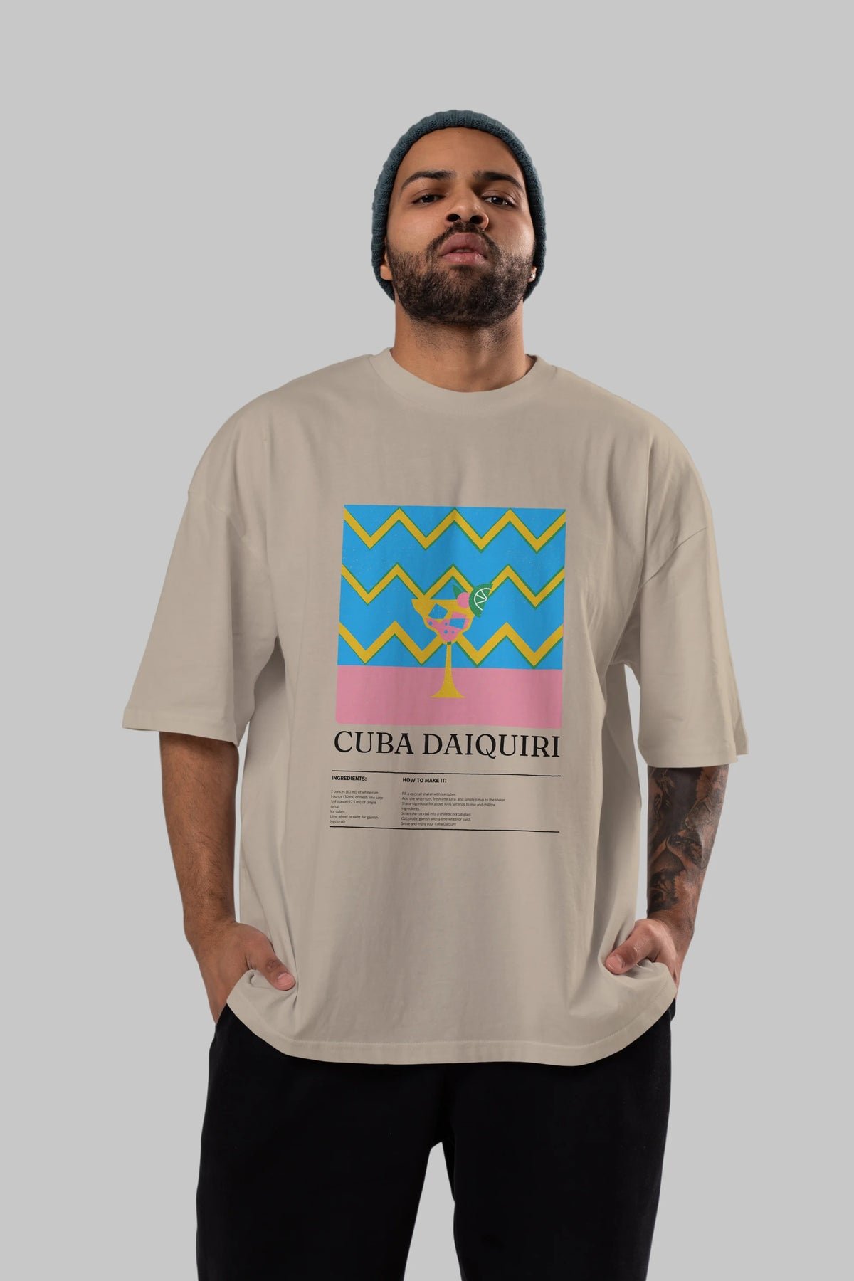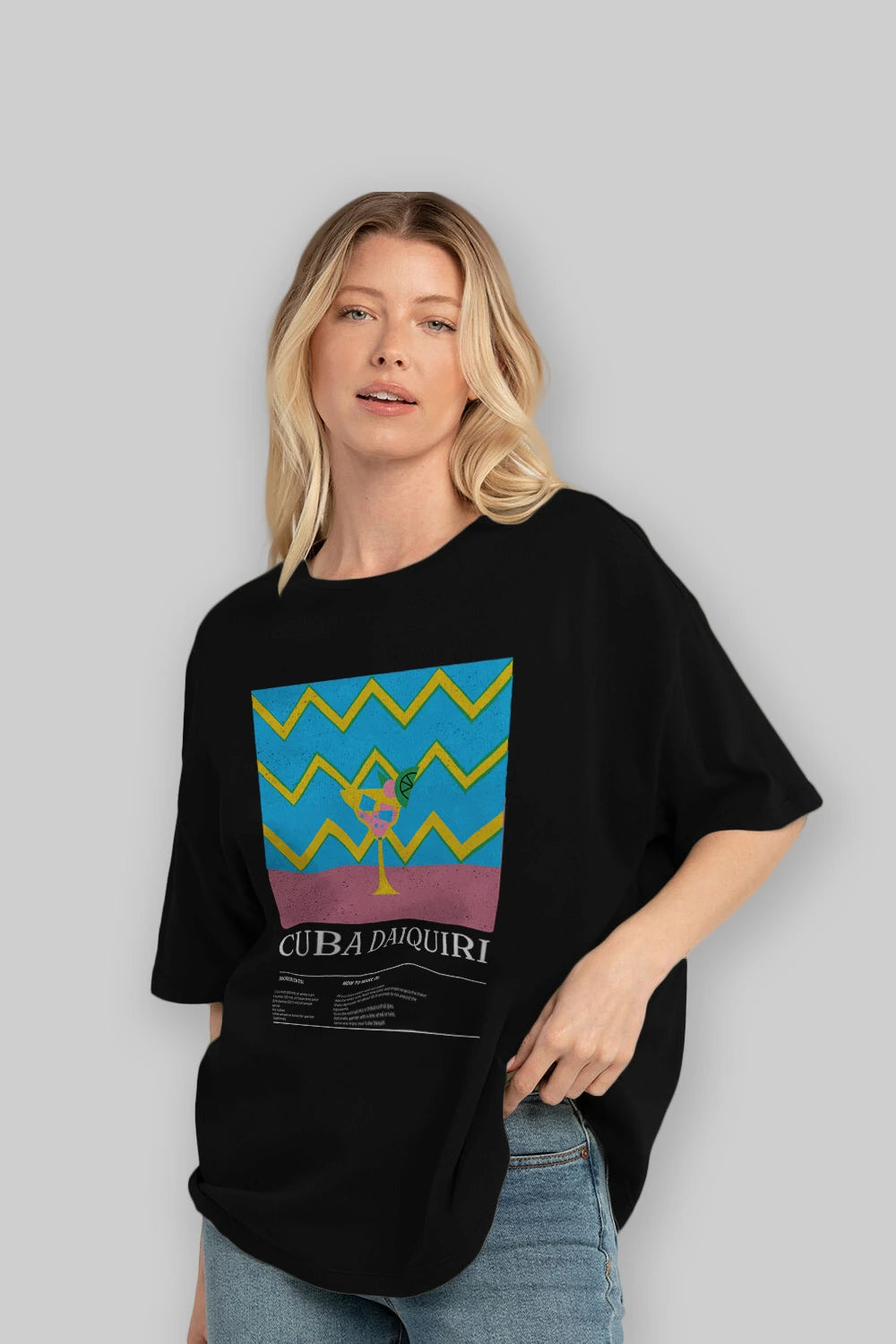 Cuba Daiquiri Kokteyl Ön Baskılı Oversize t-shirt Erkek Kadın %100 Pamuk Bisiklet Yaka tişort