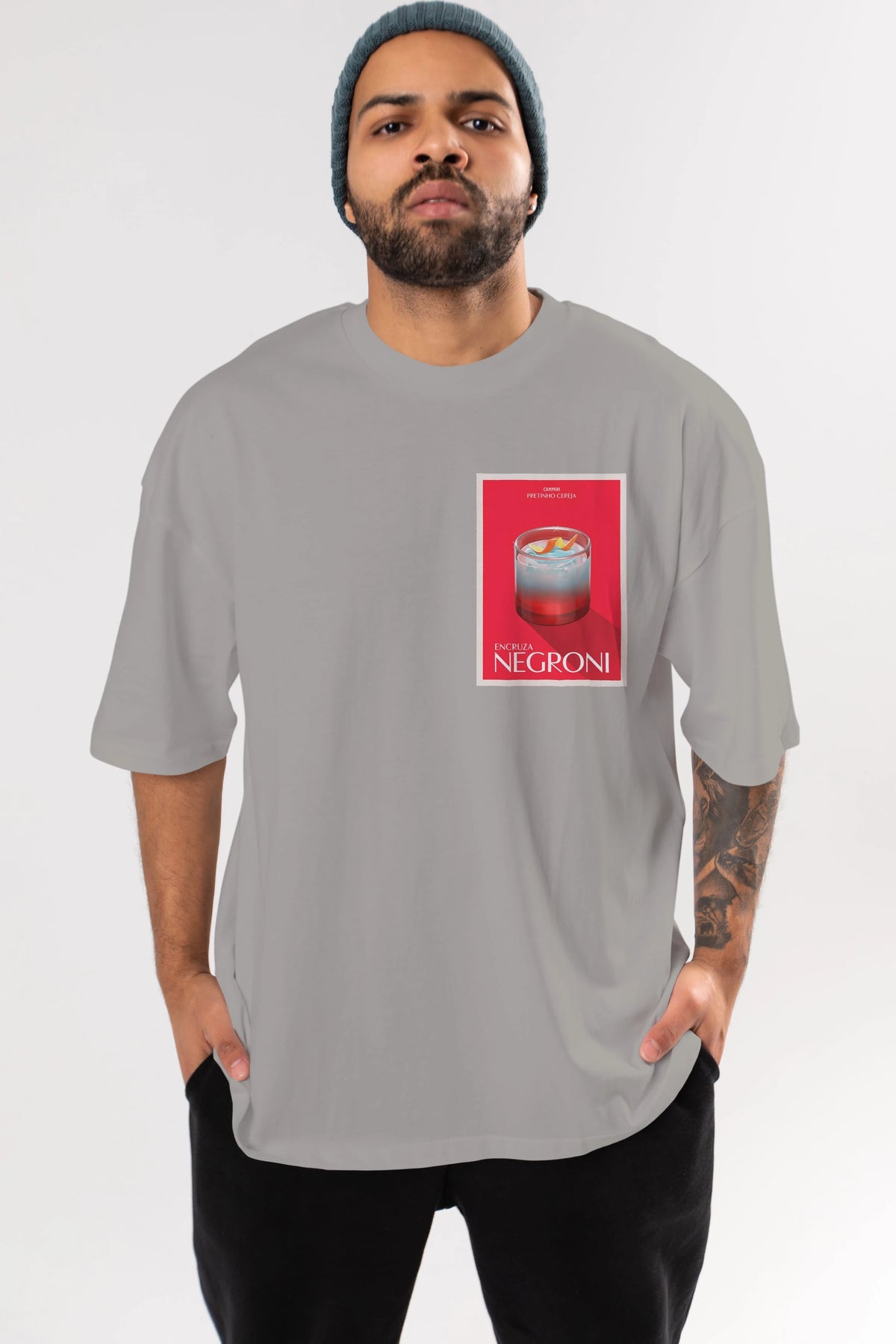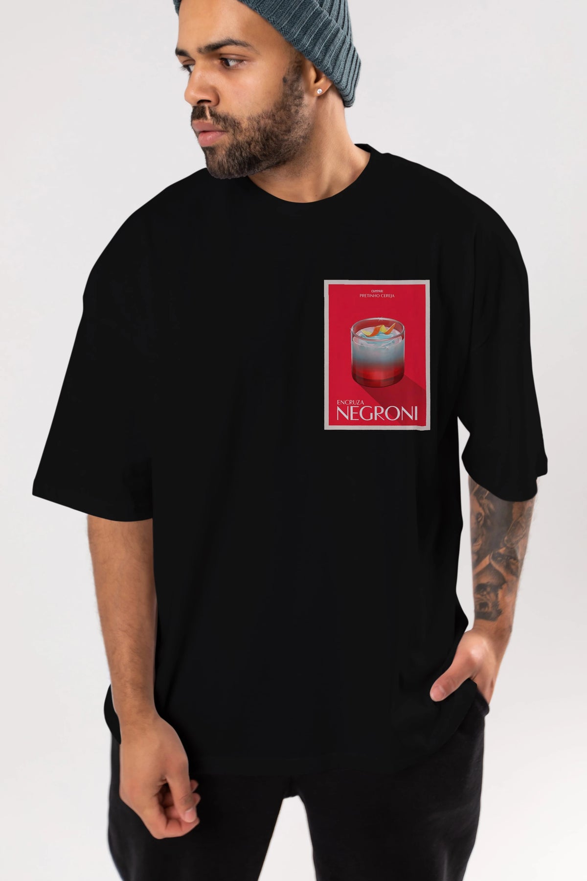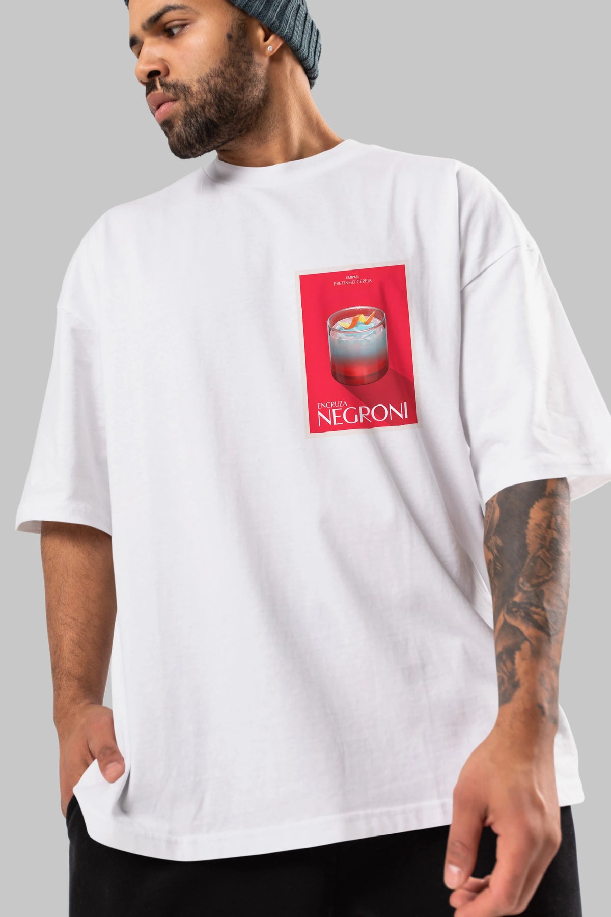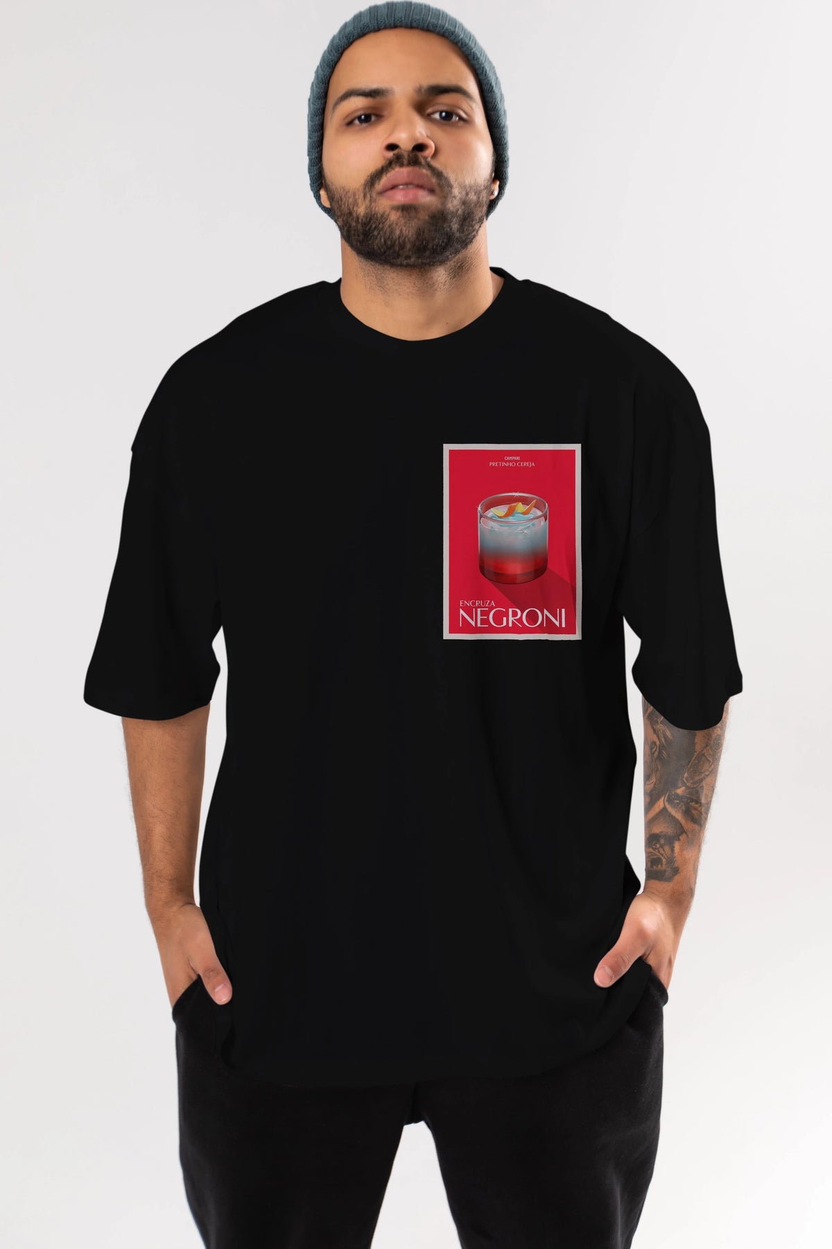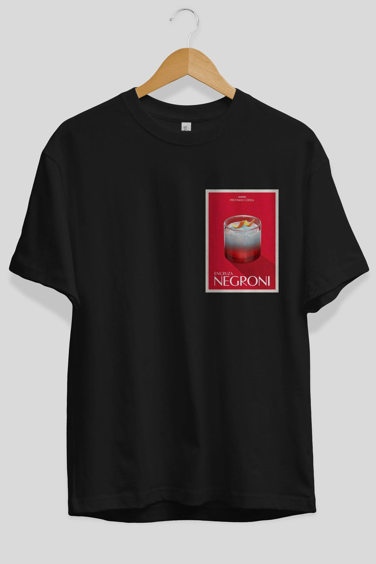 Encruza Negroni Ön Sol Baskılı Oversize t-shirt Erkek Kadın Unisex %100 Pamuk Bisiklet Yaka tişort