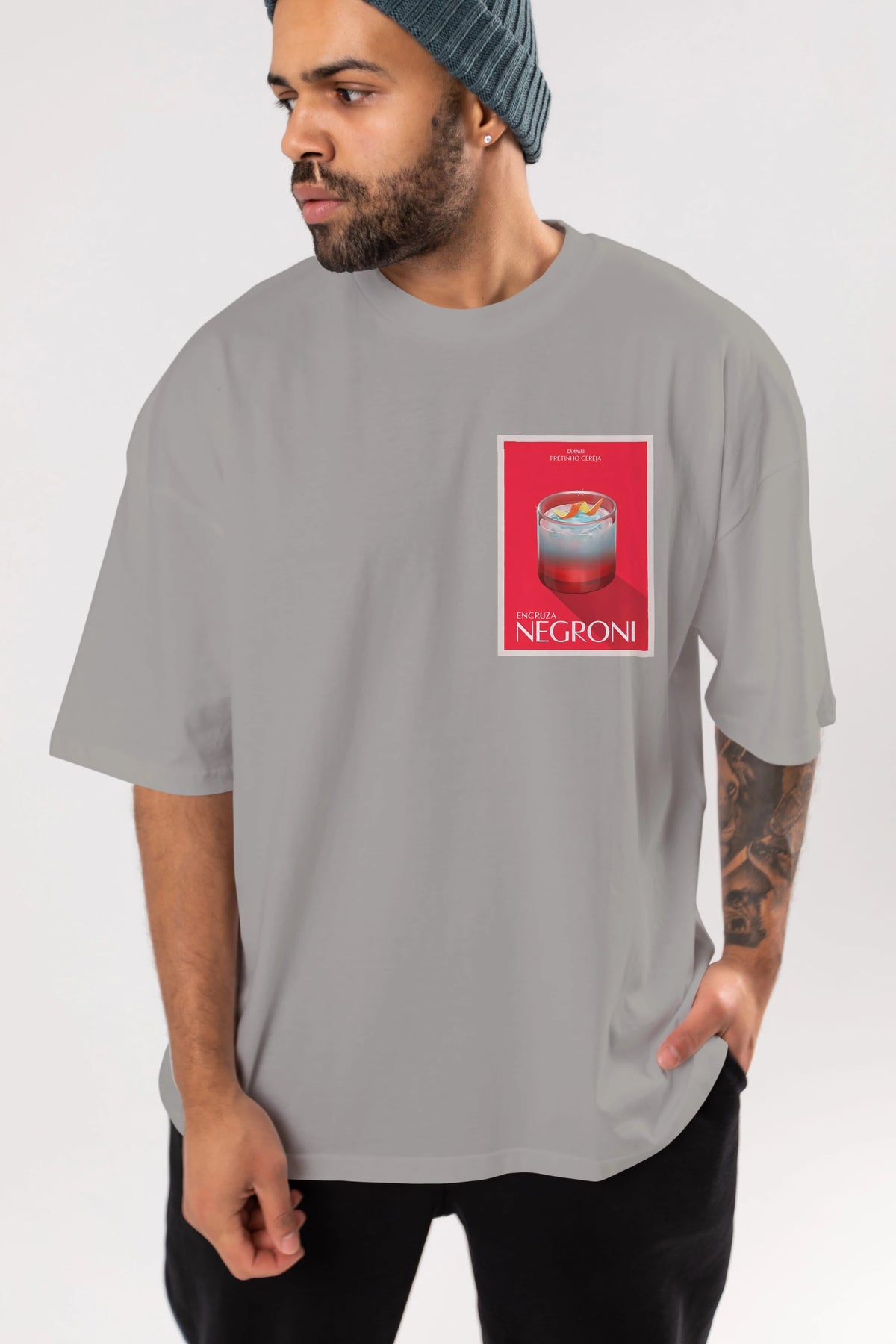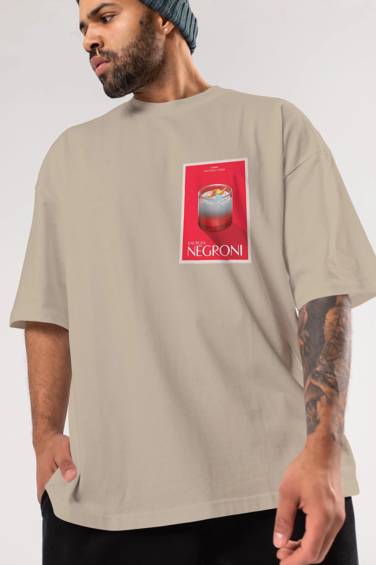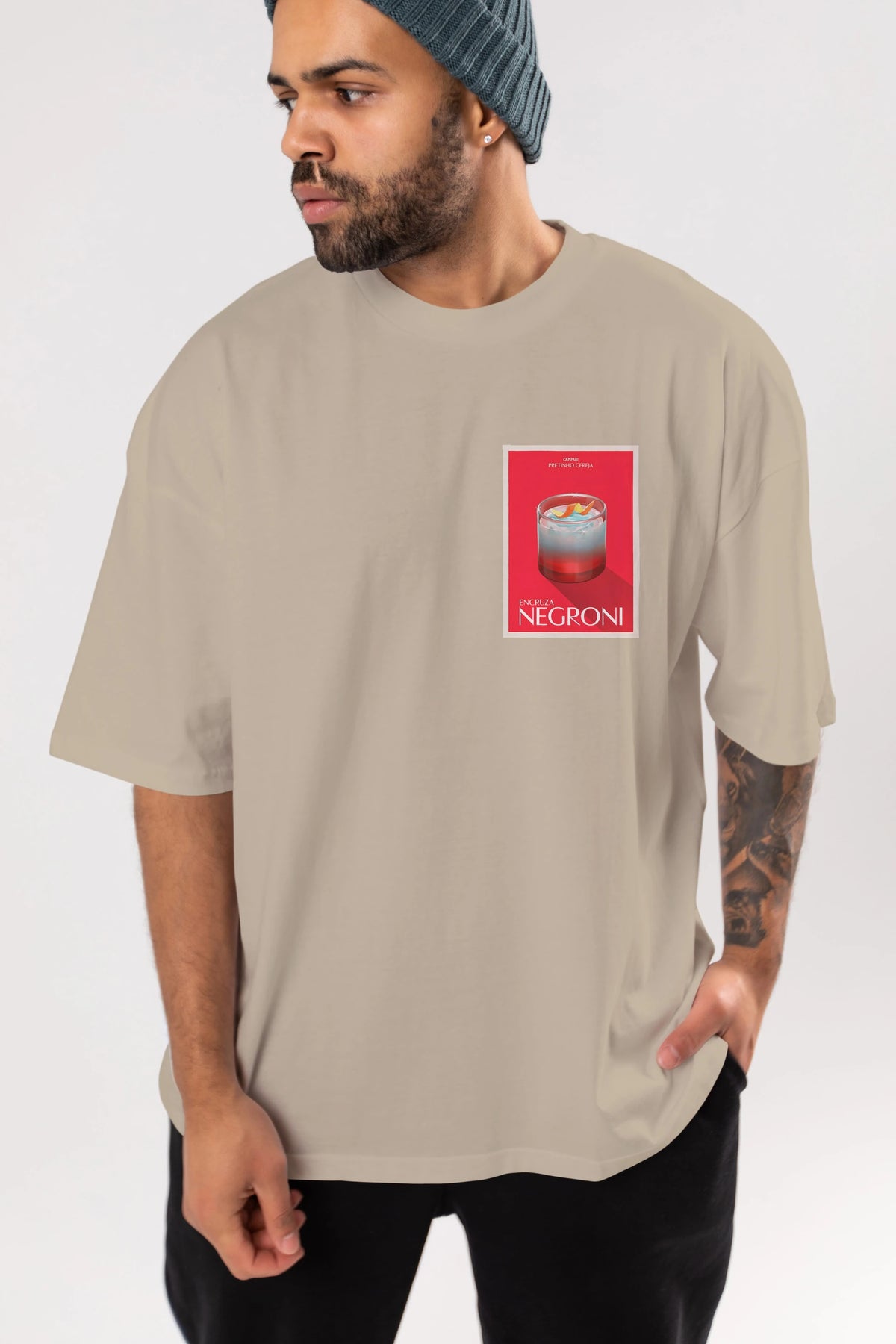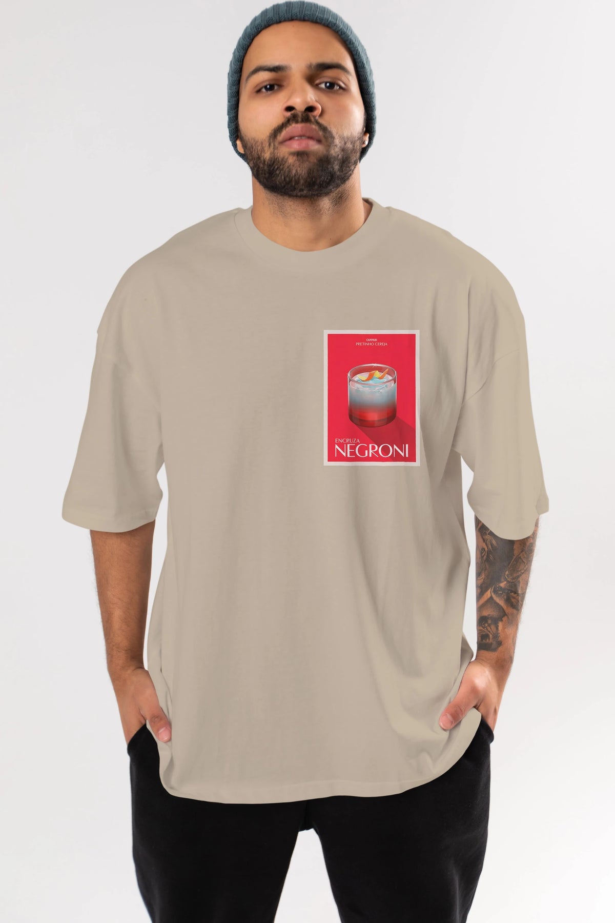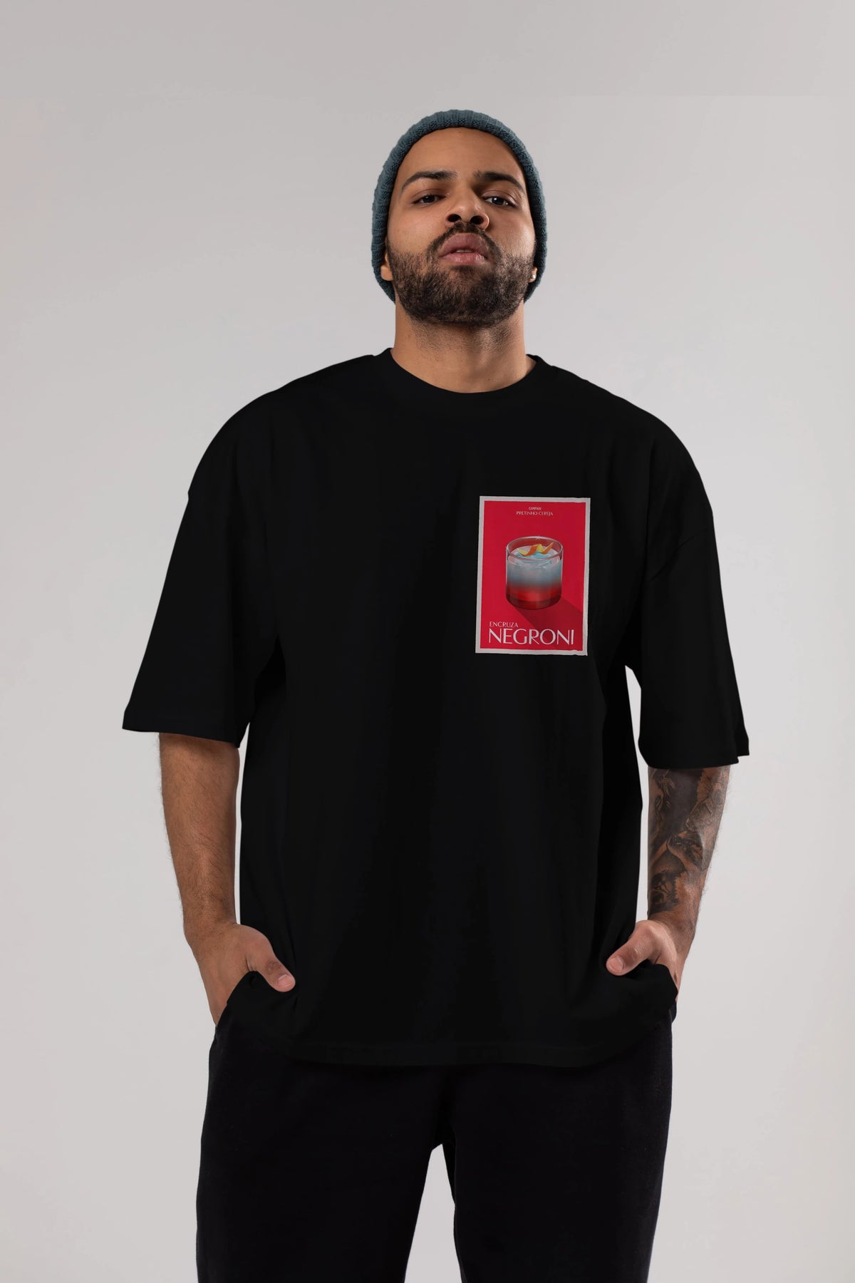 Encruza Negroni Ön Sol Baskılı Oversize t-shirt Erkek Kadın Unisex %100 Pamuk Bisiklet Yaka tişort