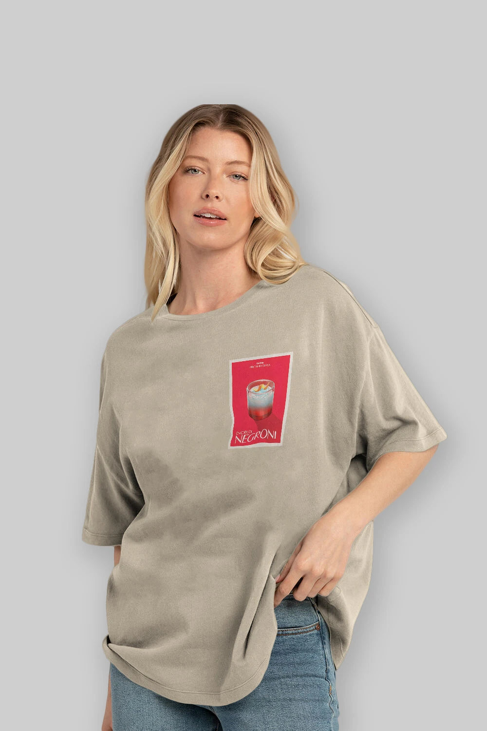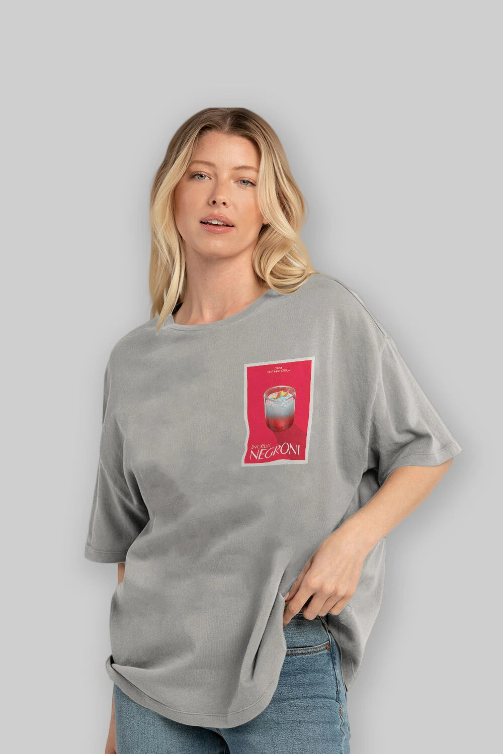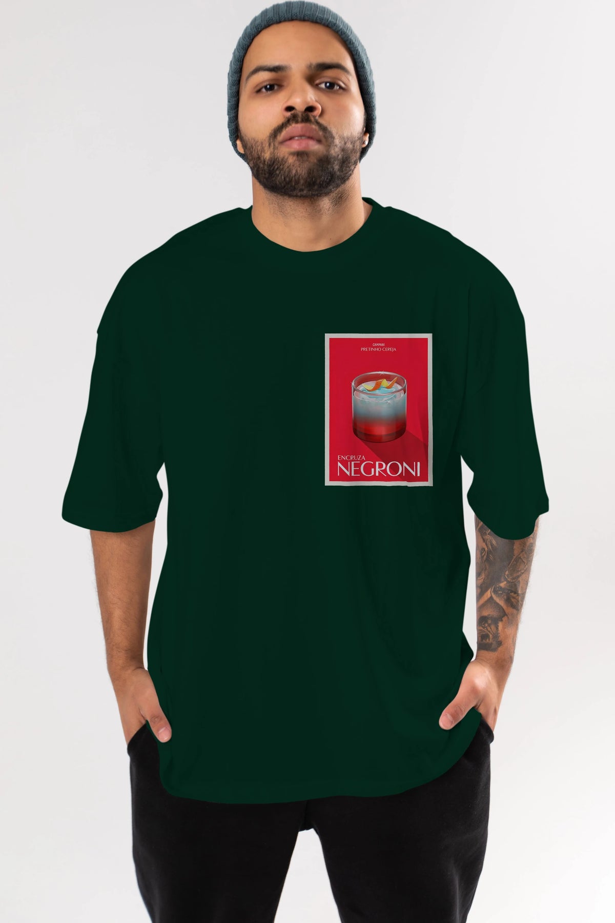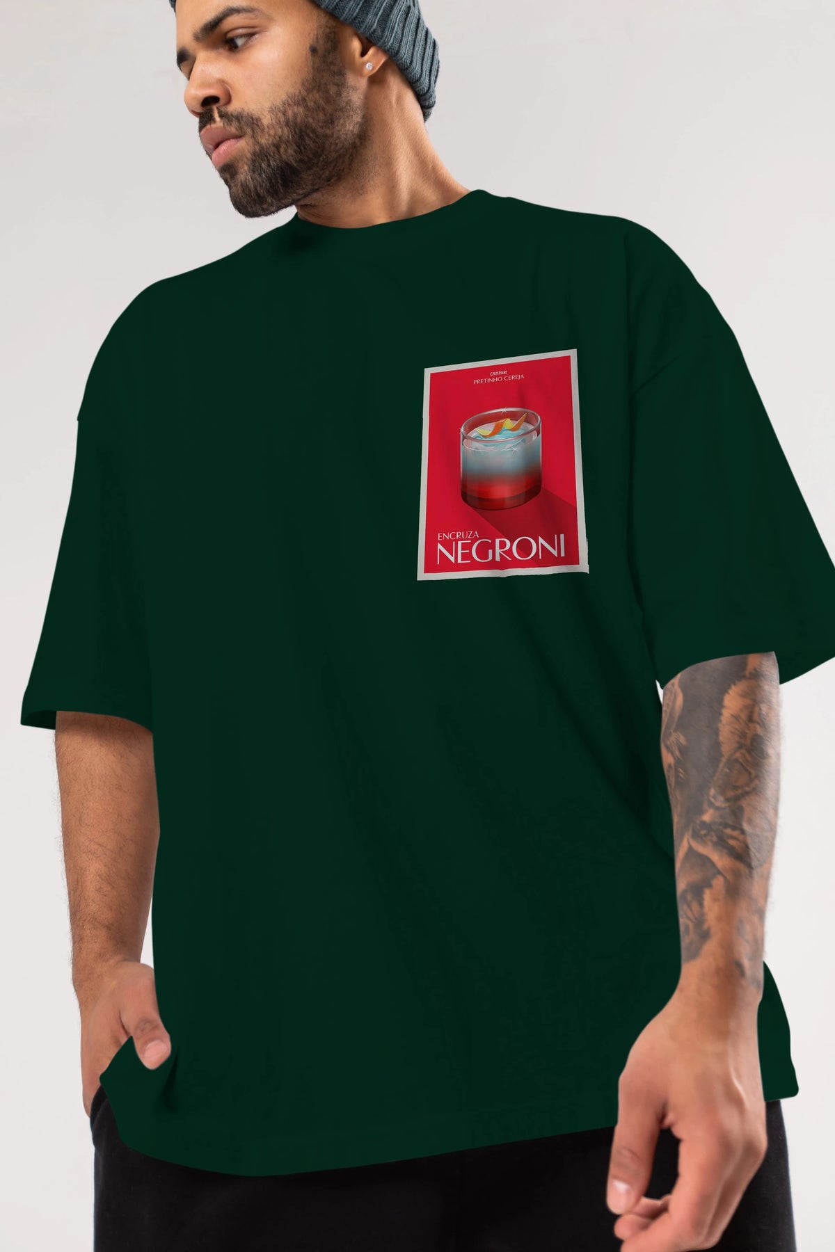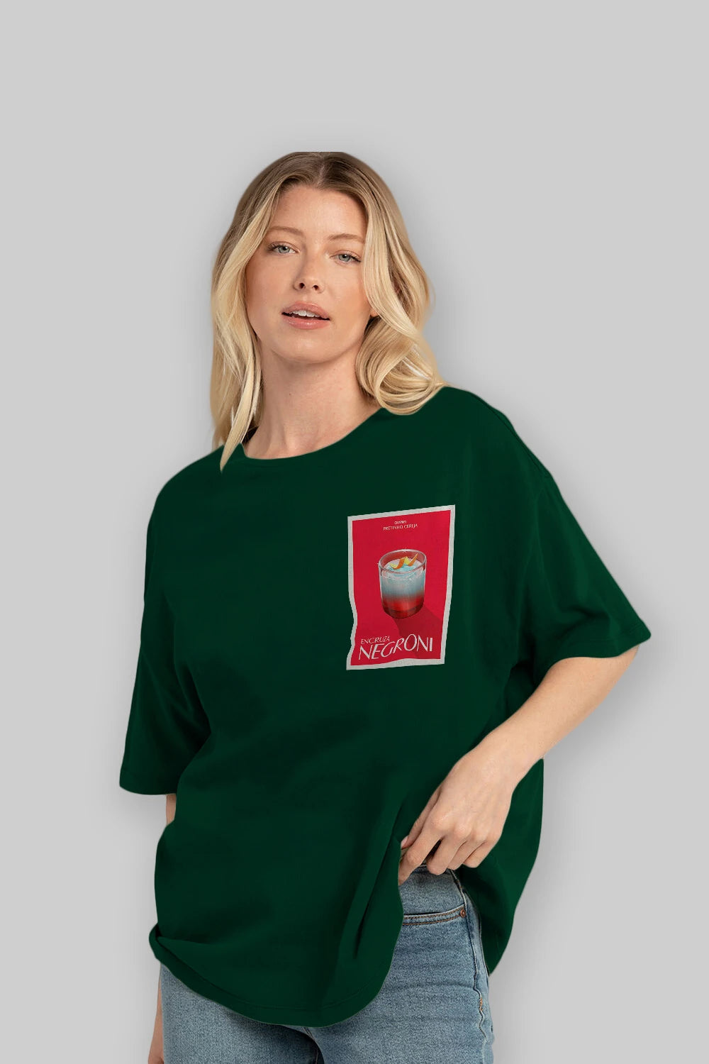 Encruza Negroni Ön Sol Baskılı Oversize t-shirt Erkek Kadın Unisex %100 Pamuk Bisiklet Yaka tişort