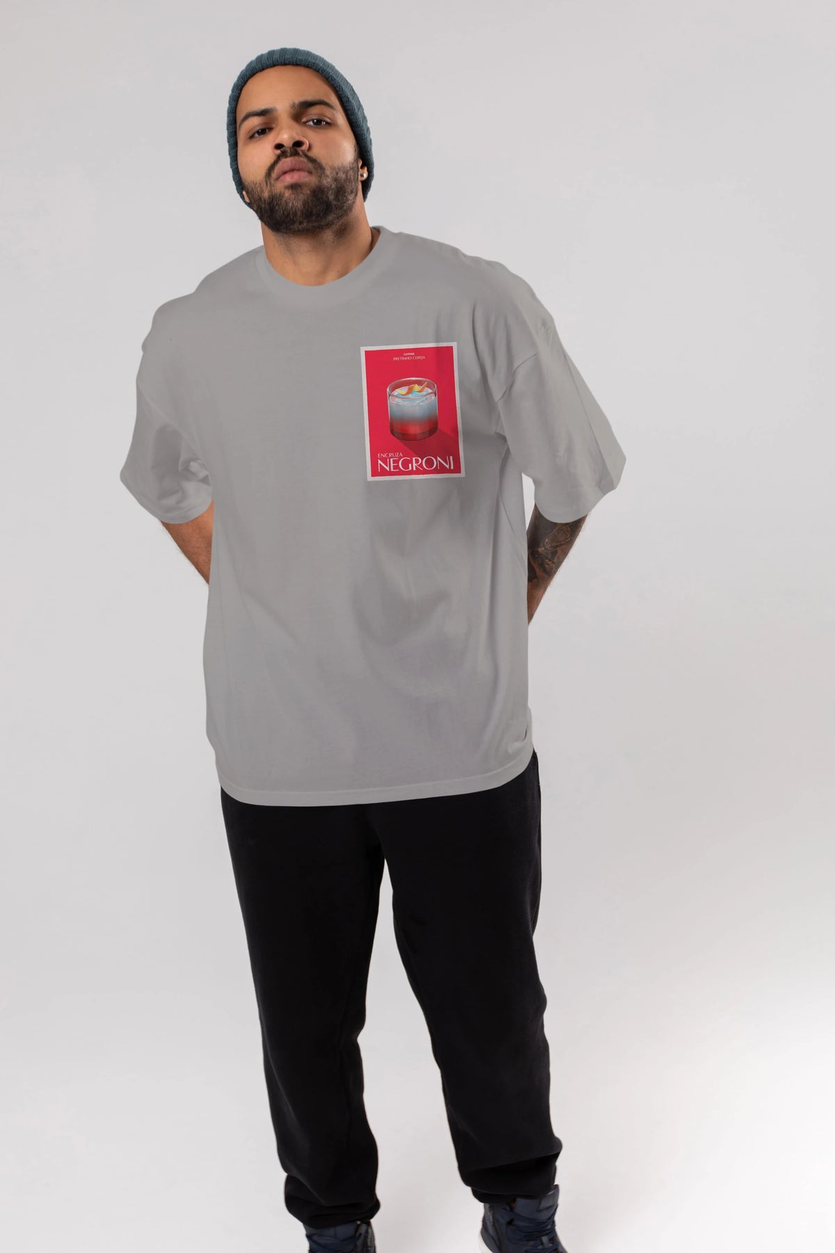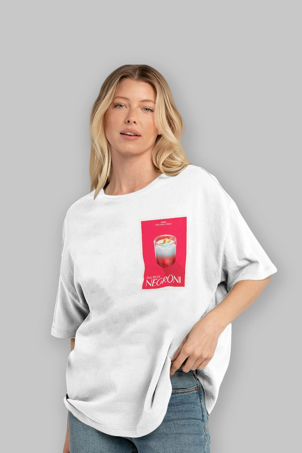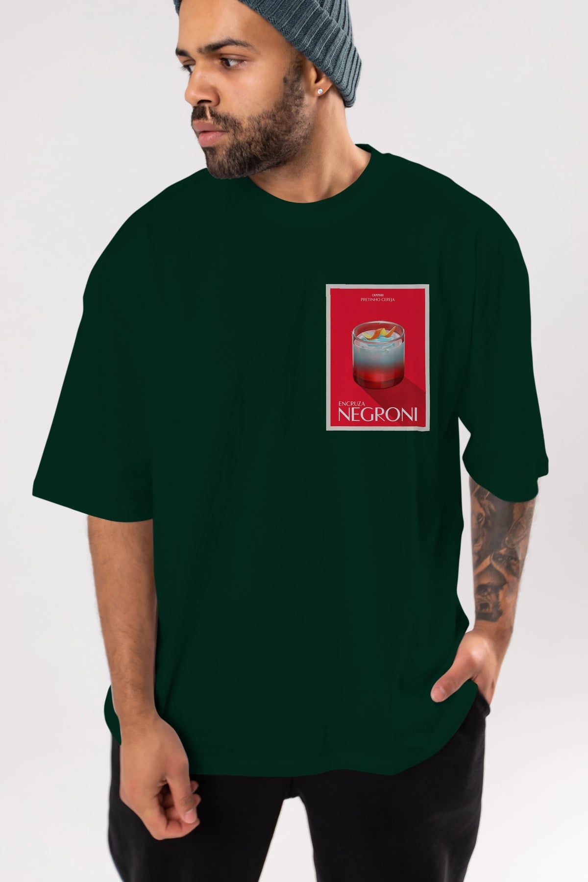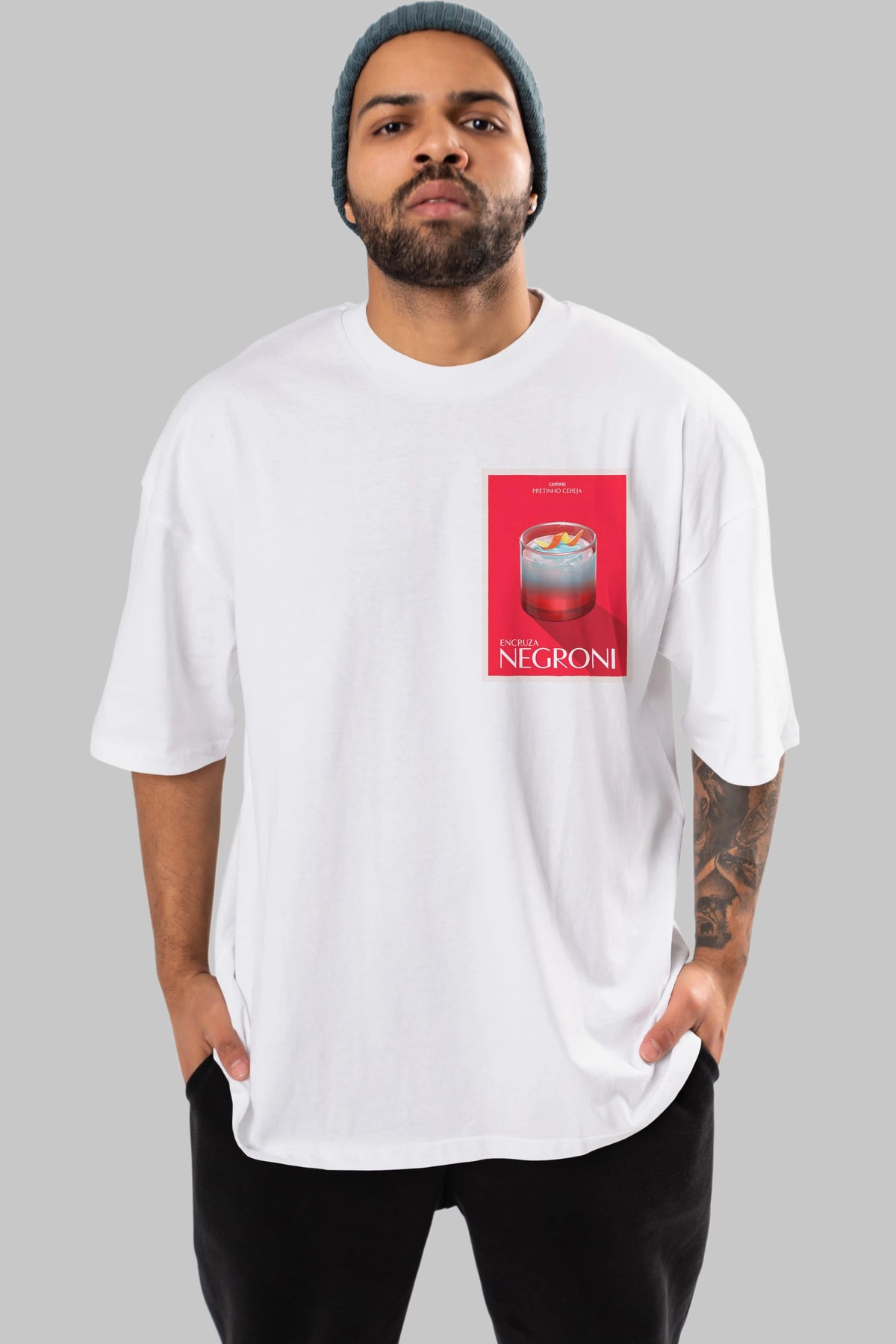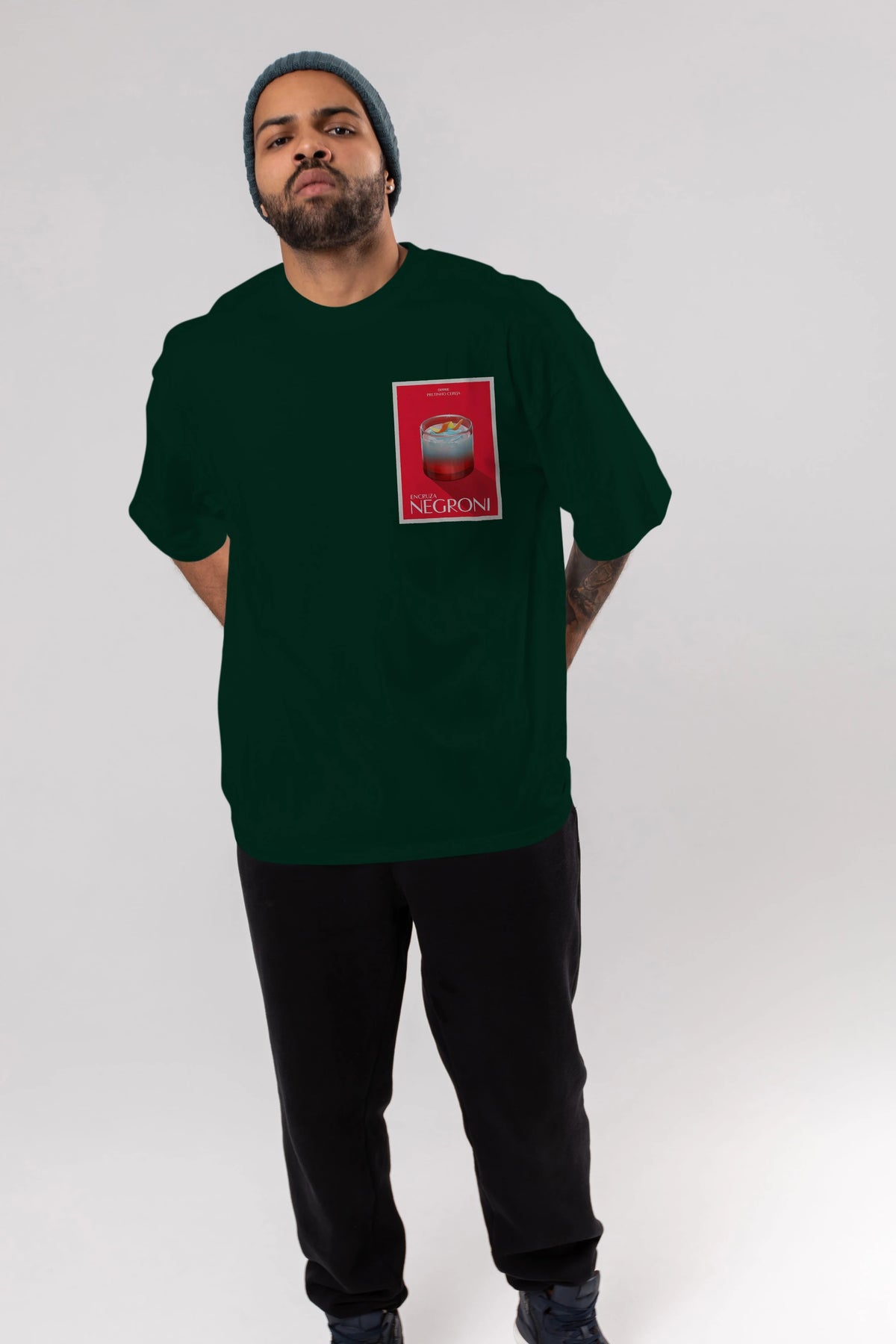 Encruza Negroni Ön Sol Baskılı Oversize t-shirt Erkek Kadın Unisex %100 Pamuk Bisiklet Yaka tişort