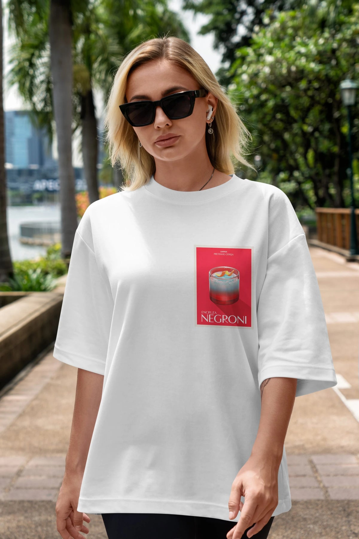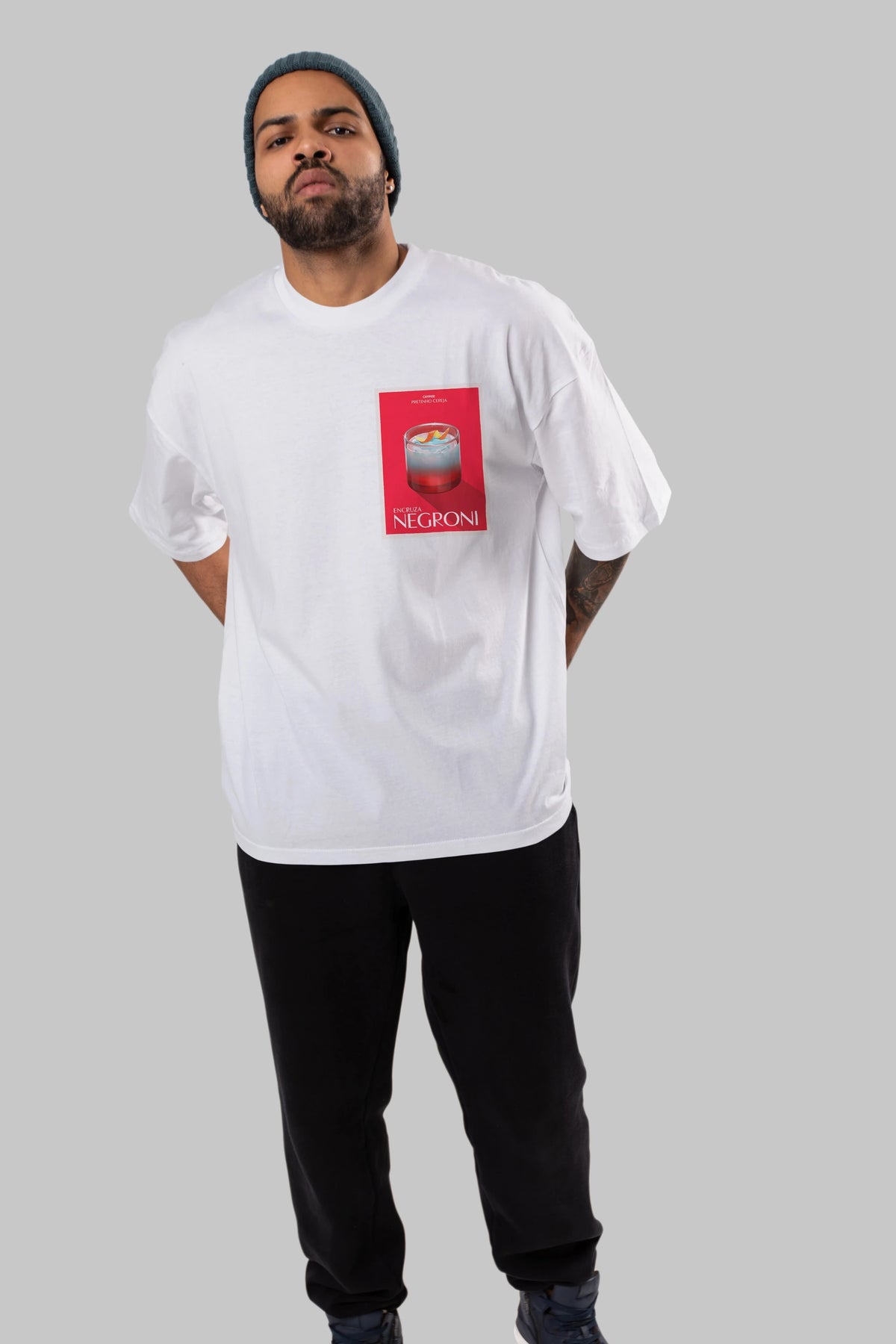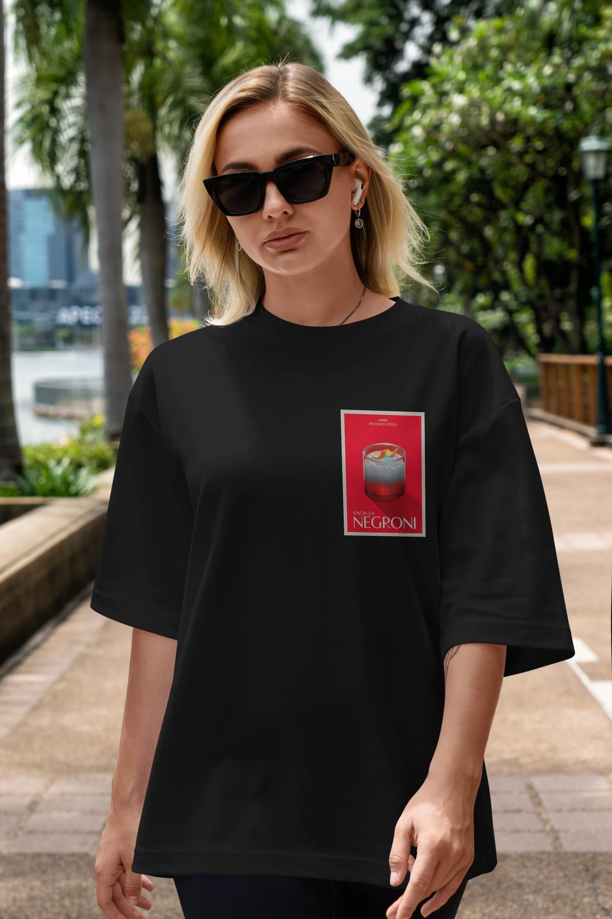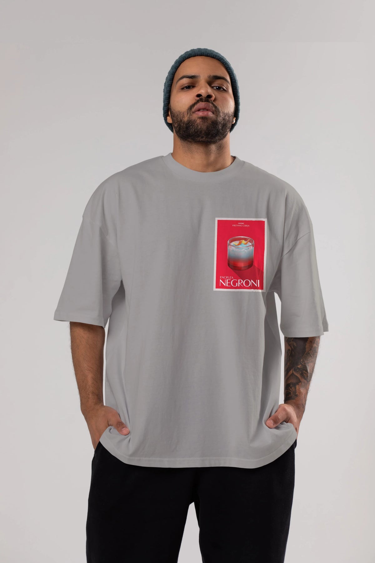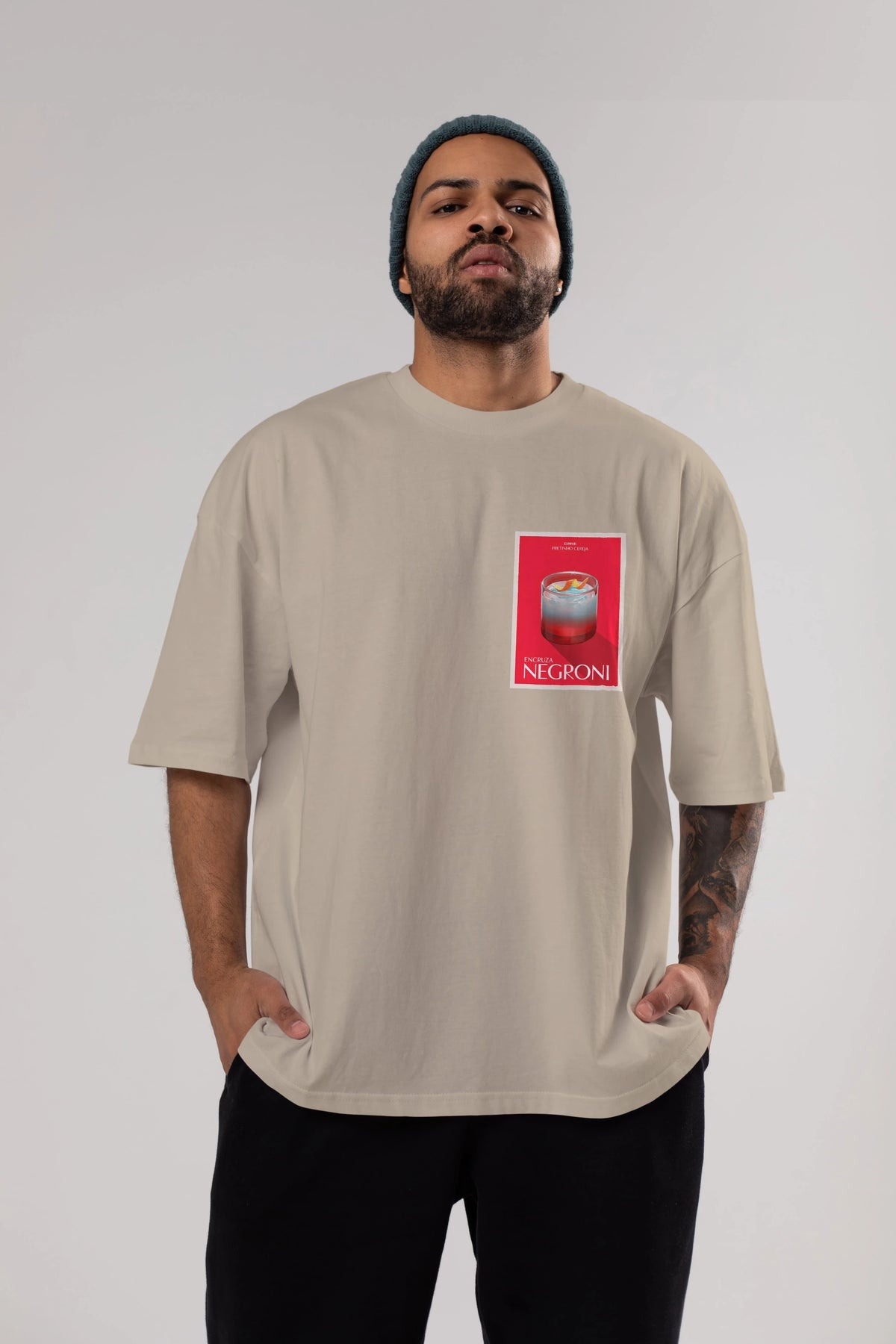 Encruza Negroni Ön Sol Baskılı Oversize t-shirt Erkek Kadın Unisex %100 Pamuk Bisiklet Yaka tişort