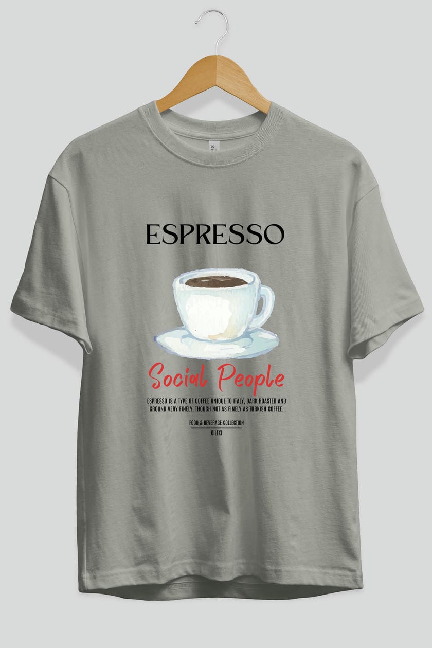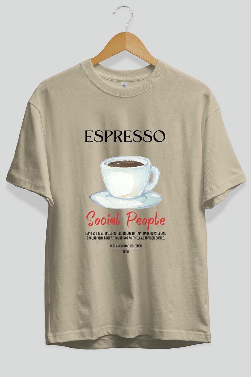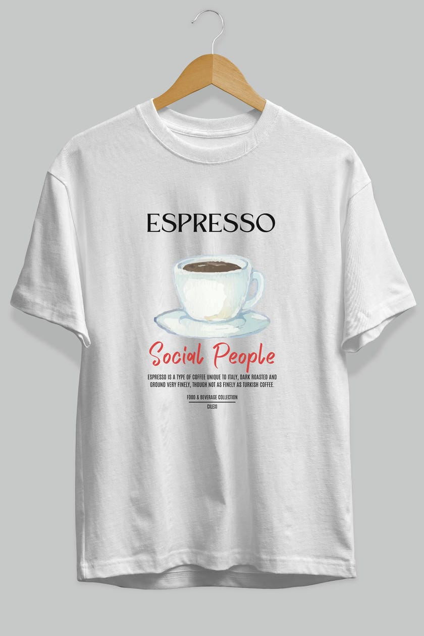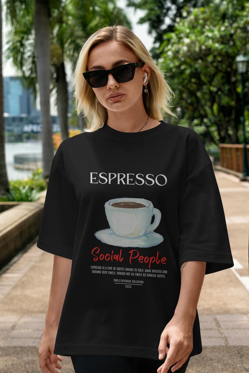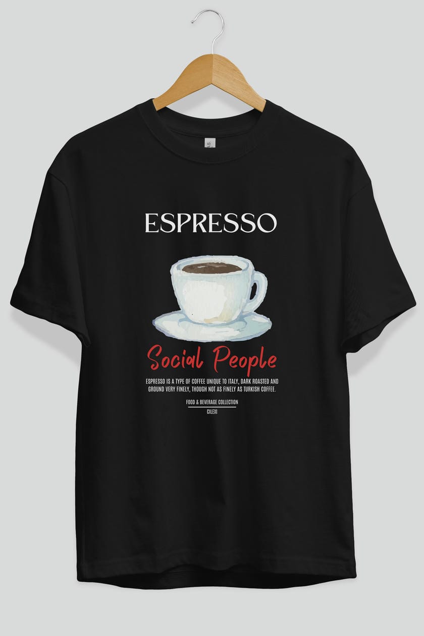 Espresso Kokteyl Serisi ön Baskılı Oversize t-shirt Erkek Kadın %100 Pamuk Bisiklet Yaka tişort