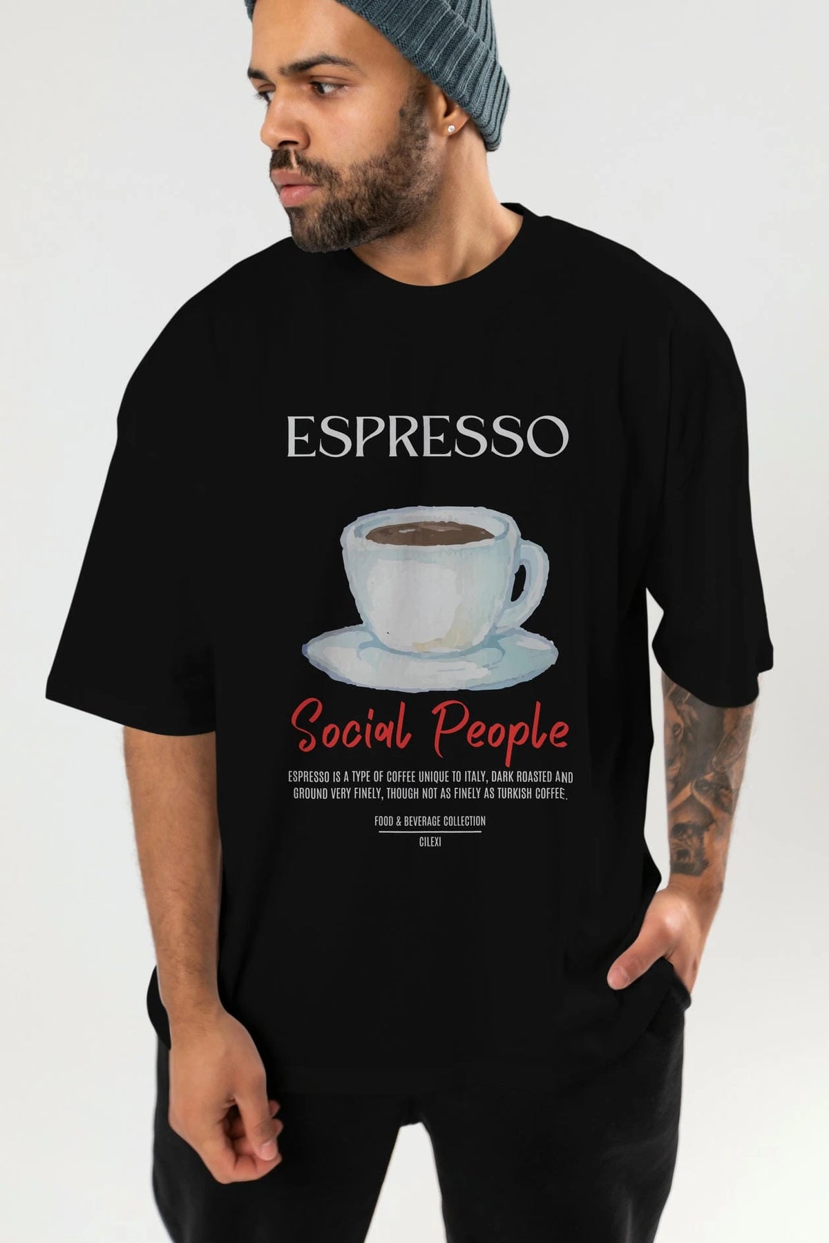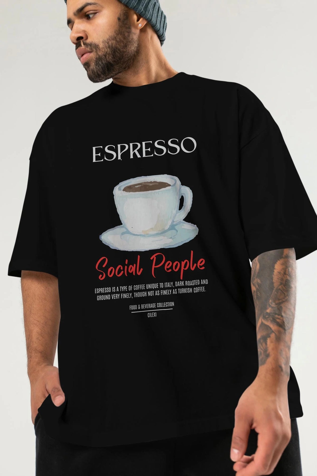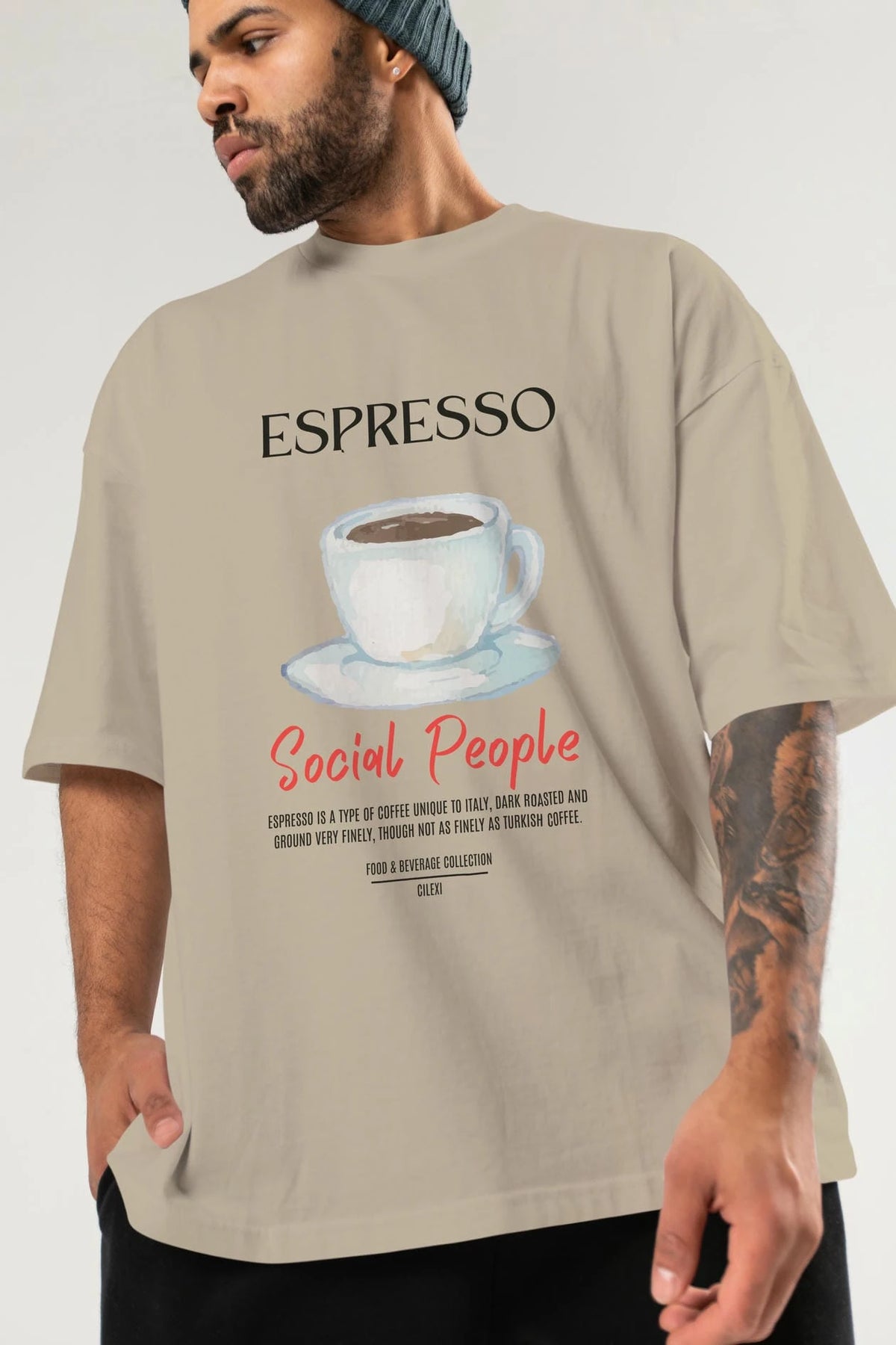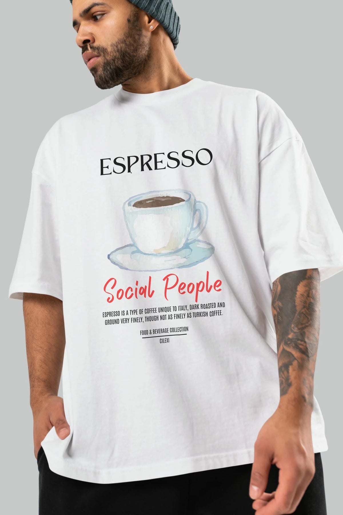 Espresso Kokteyl Serisi ön Baskılı Oversize t-shirt Erkek Kadın %100 Pamuk Bisiklet Yaka tişort