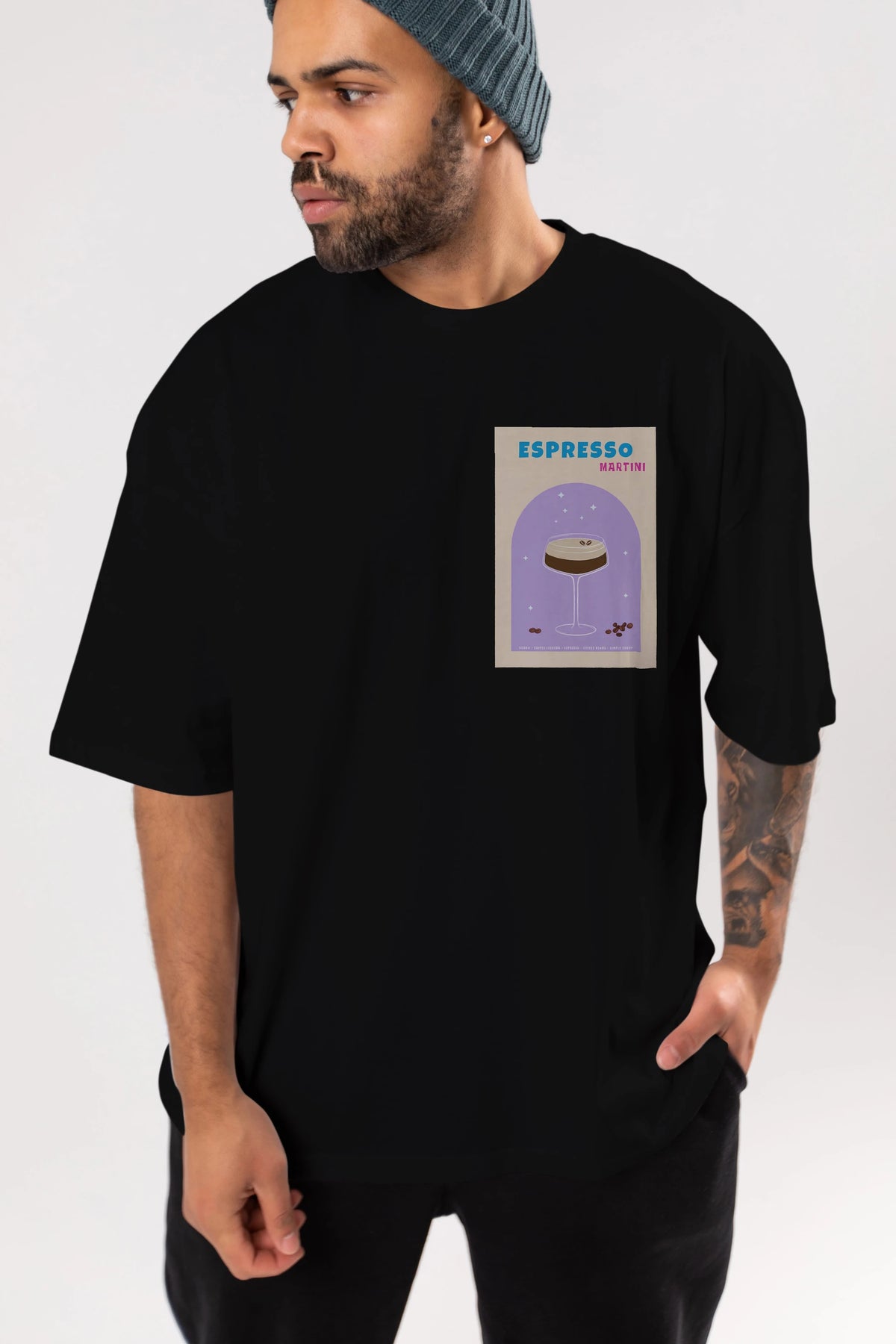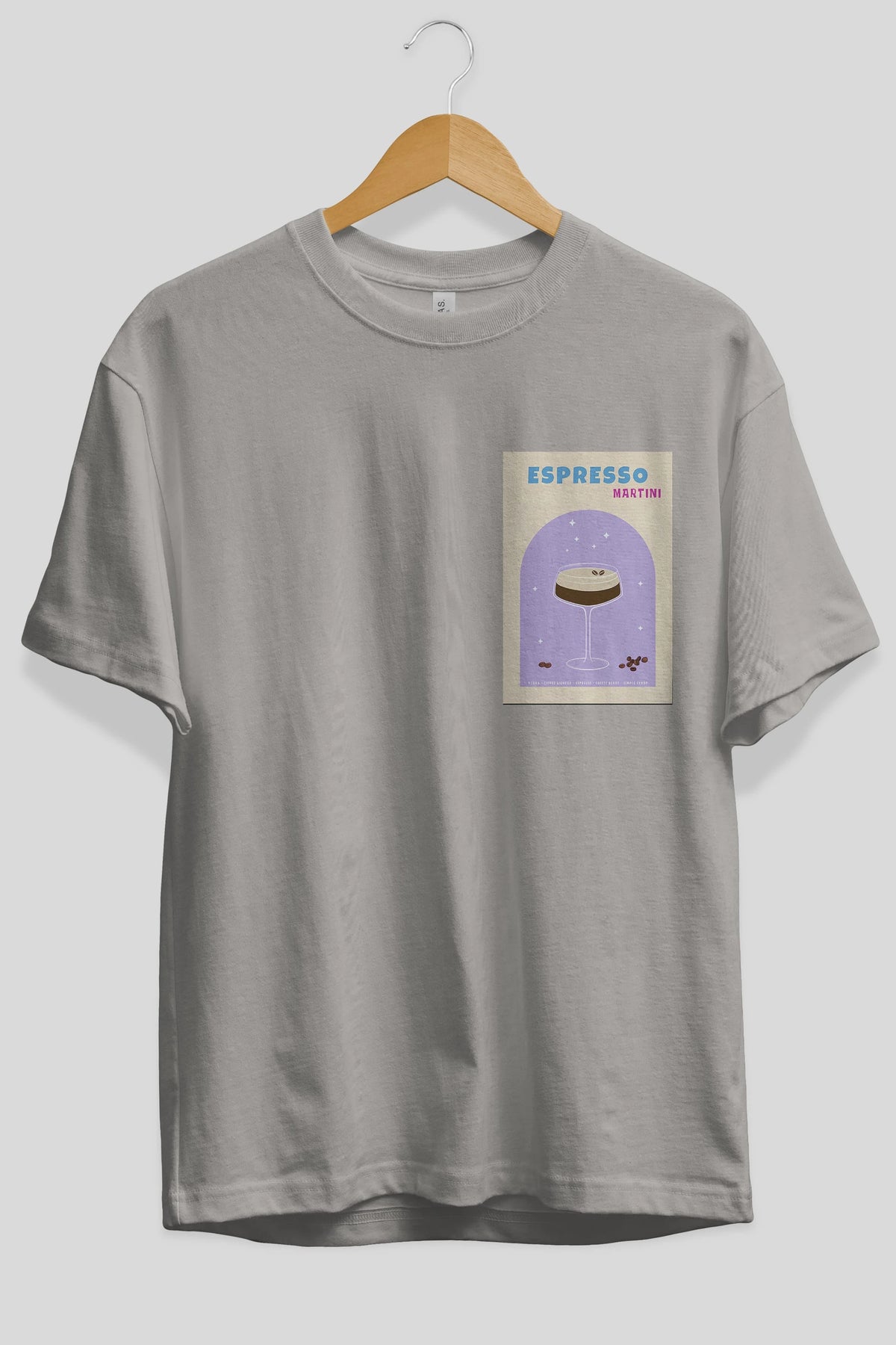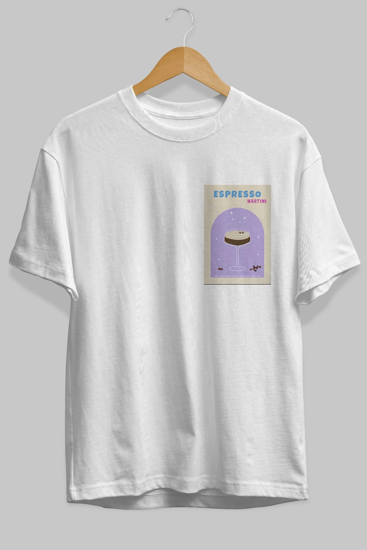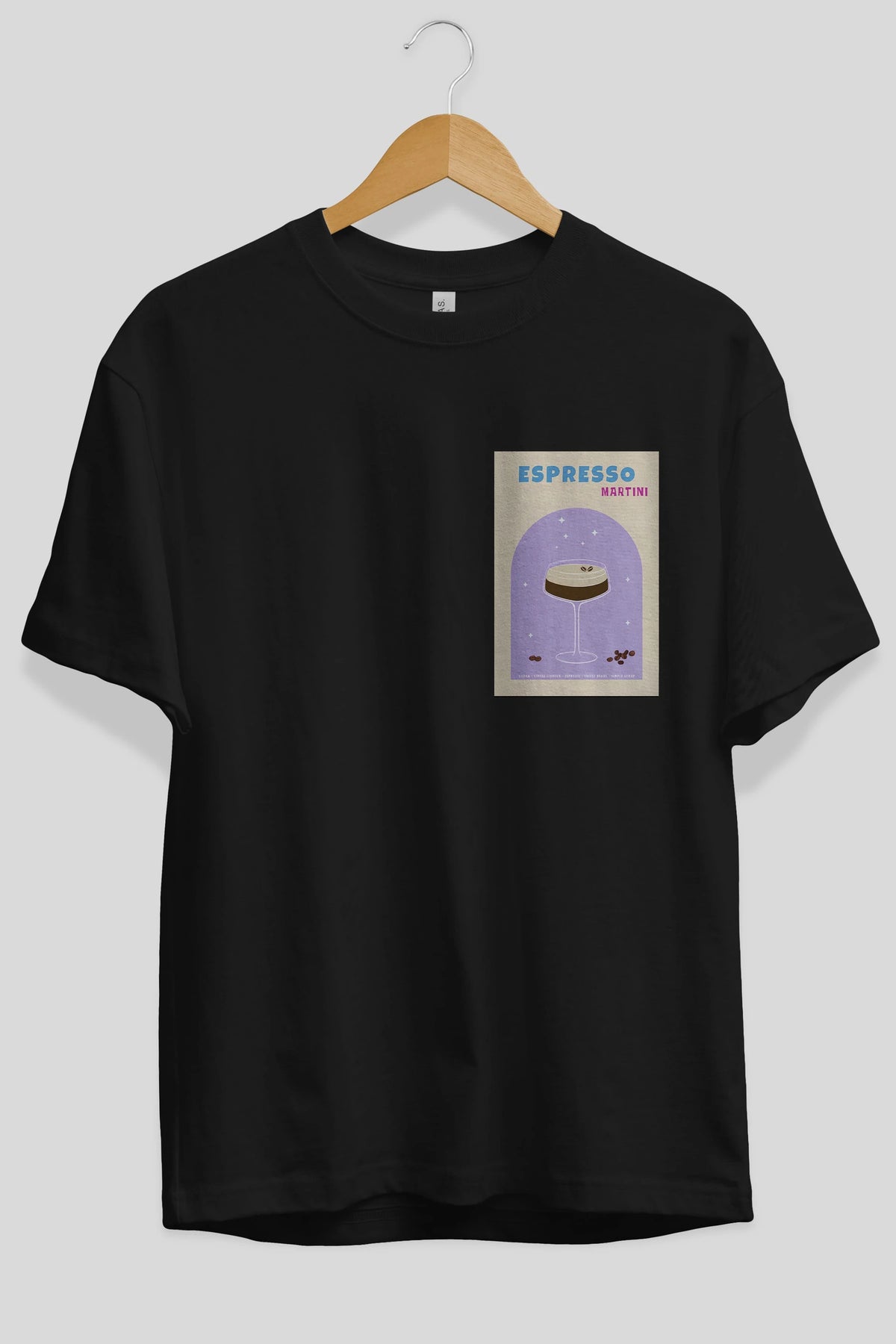 Espresso Martini 5 Ön Sol Baskılı Oversize t-shirt Erkek Kadın Unisex %100 Pamuk Bisiklet Yaka tişort