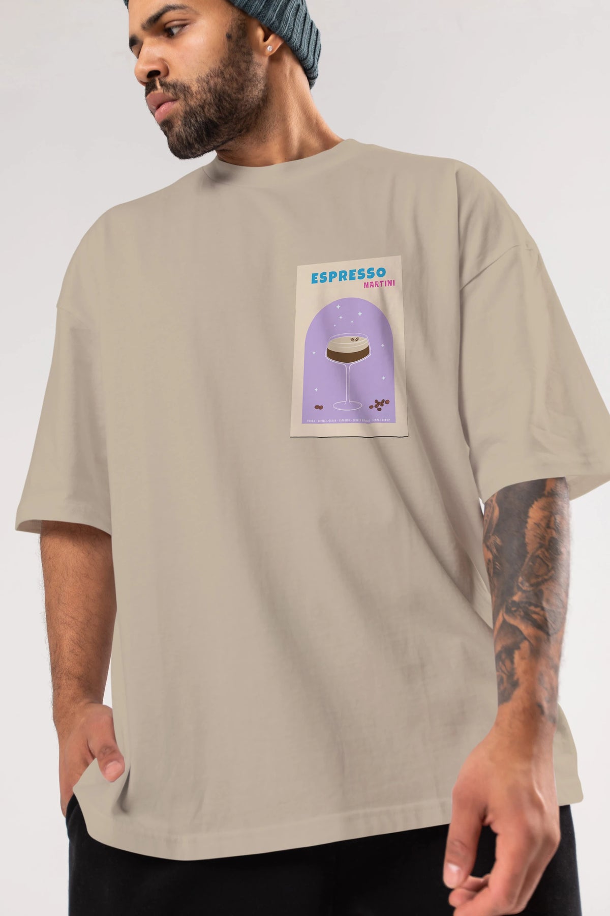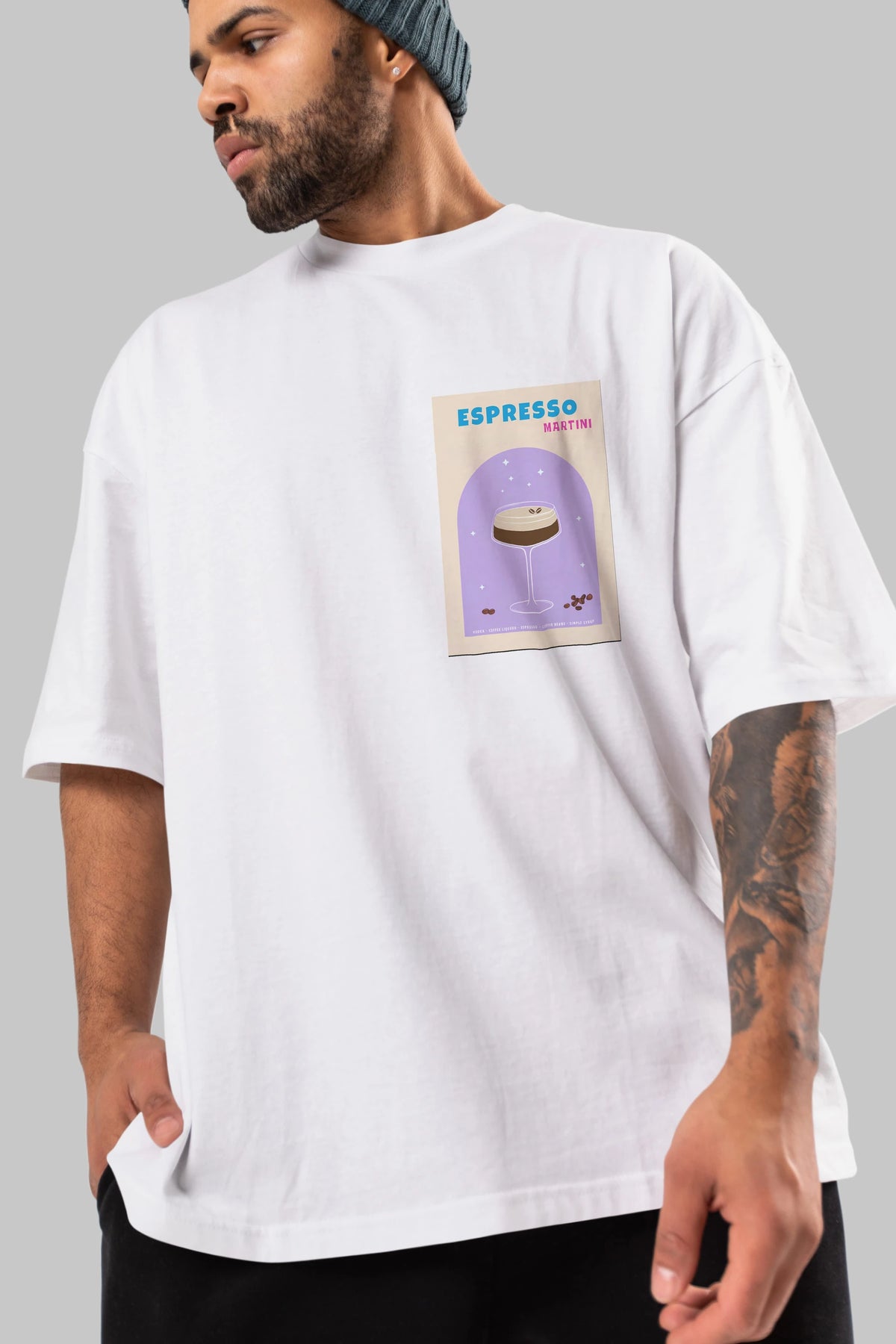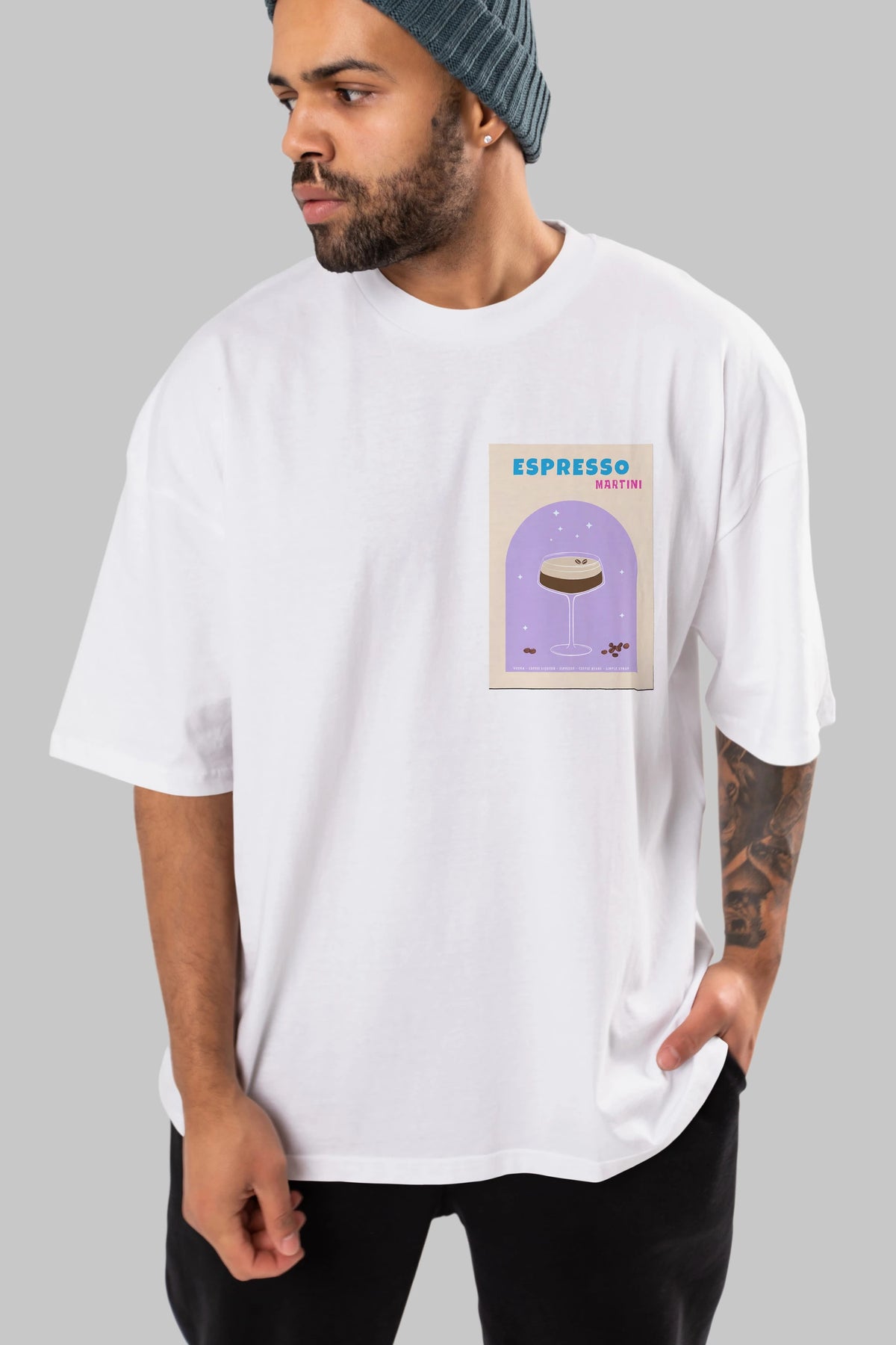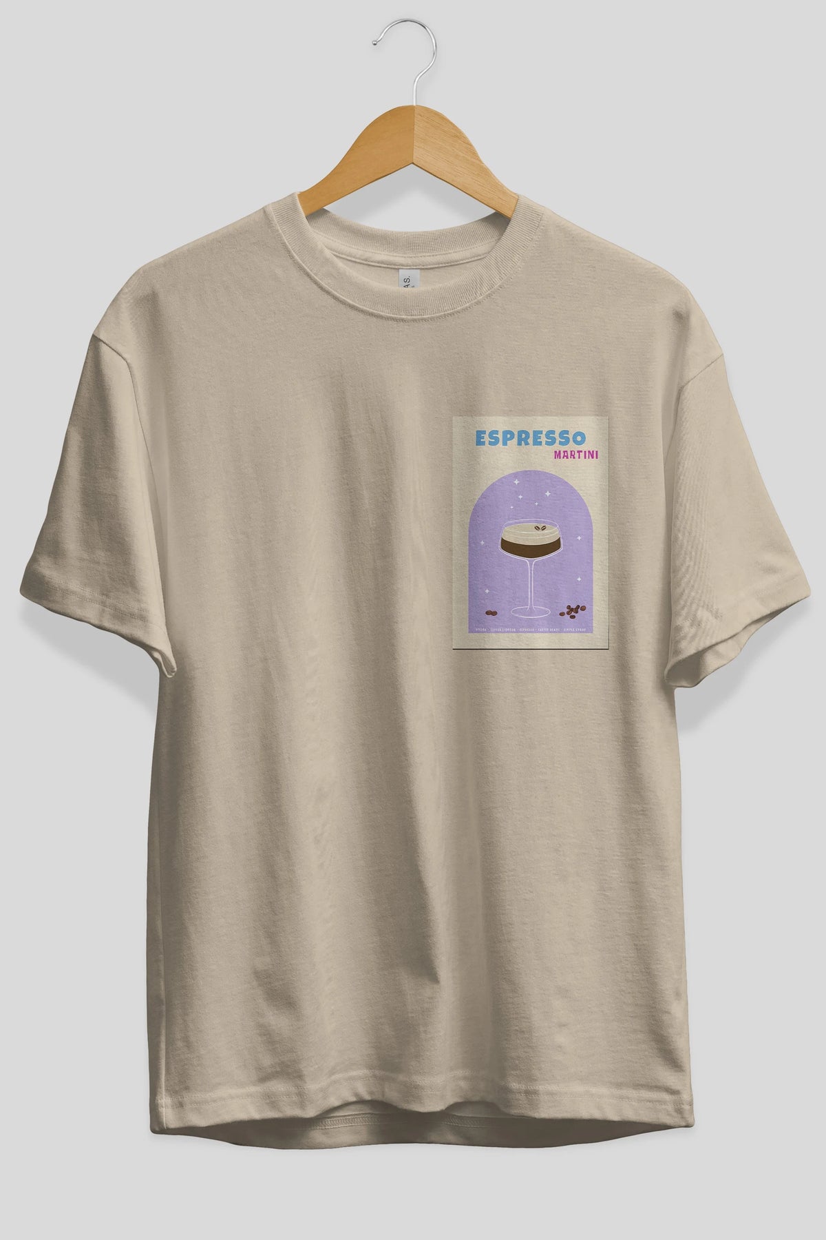 Espresso Martini 5 Ön Sol Baskılı Oversize t-shirt Erkek Kadın Unisex %100 Pamuk Bisiklet Yaka tişort