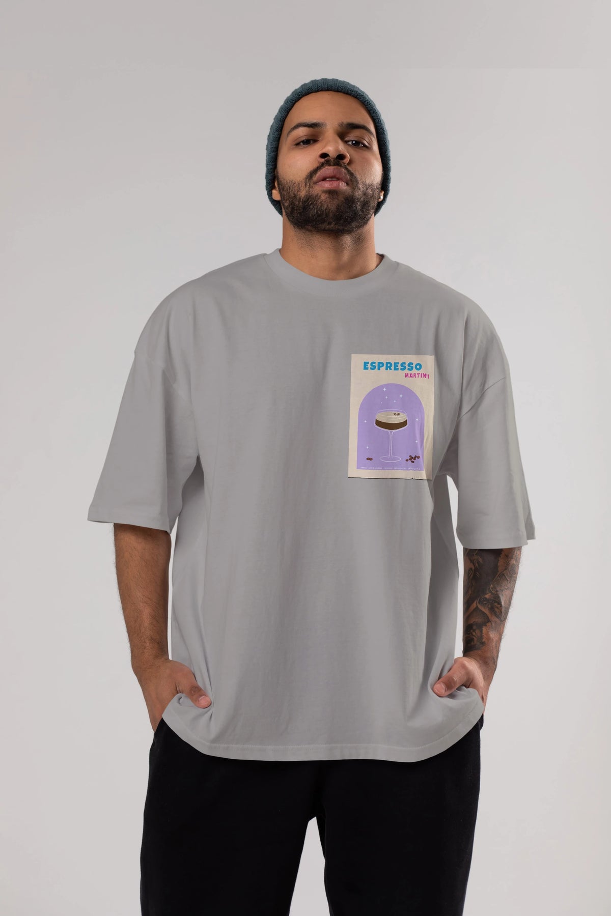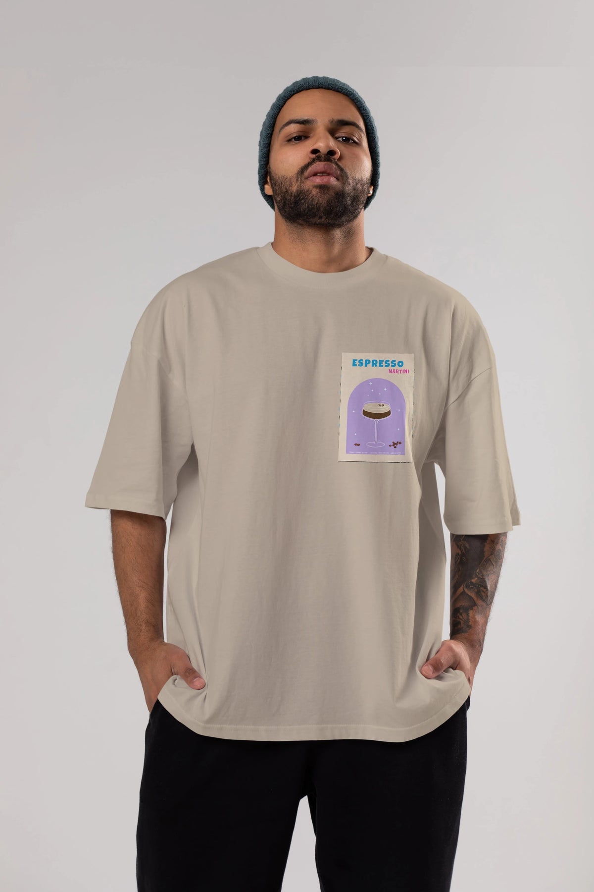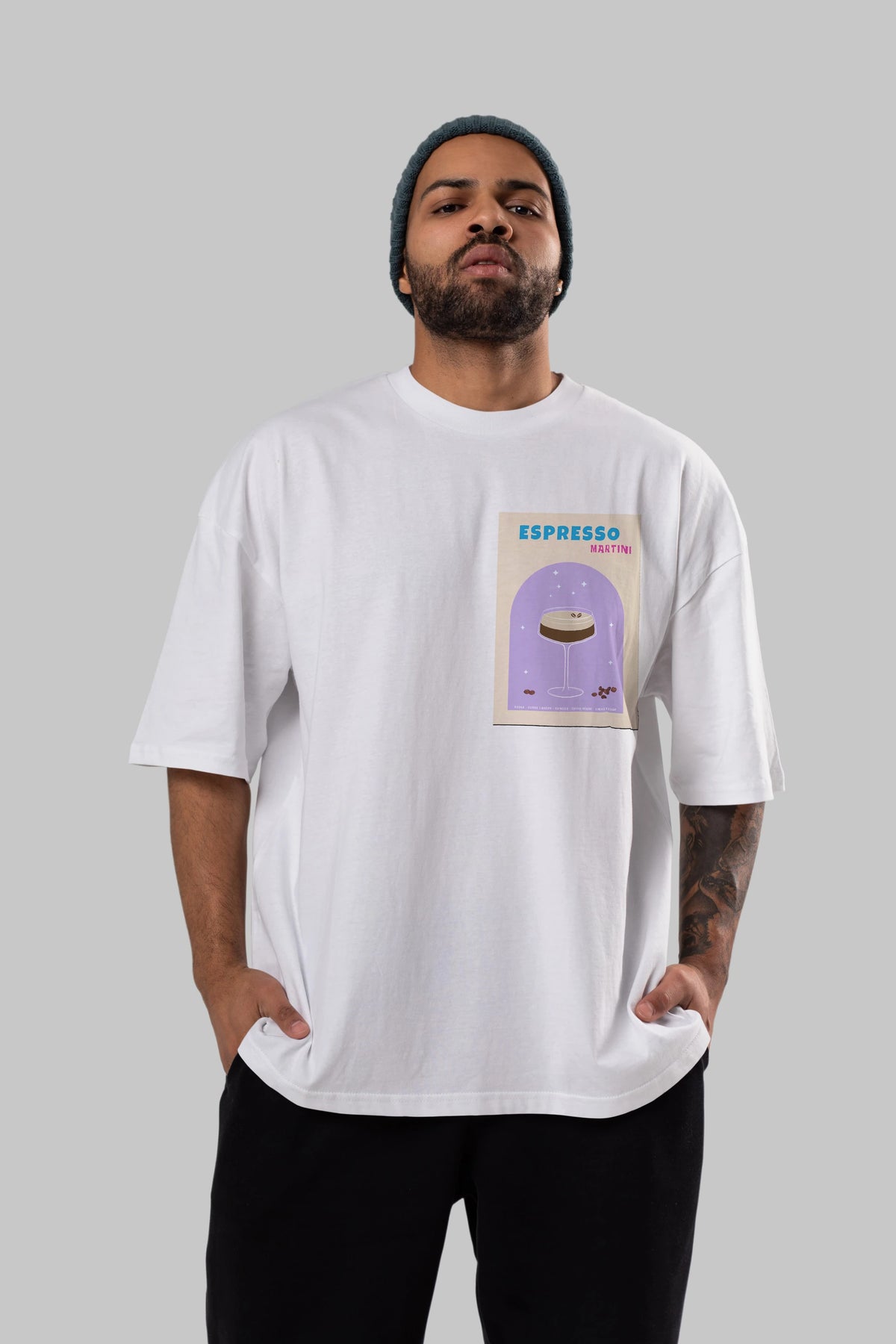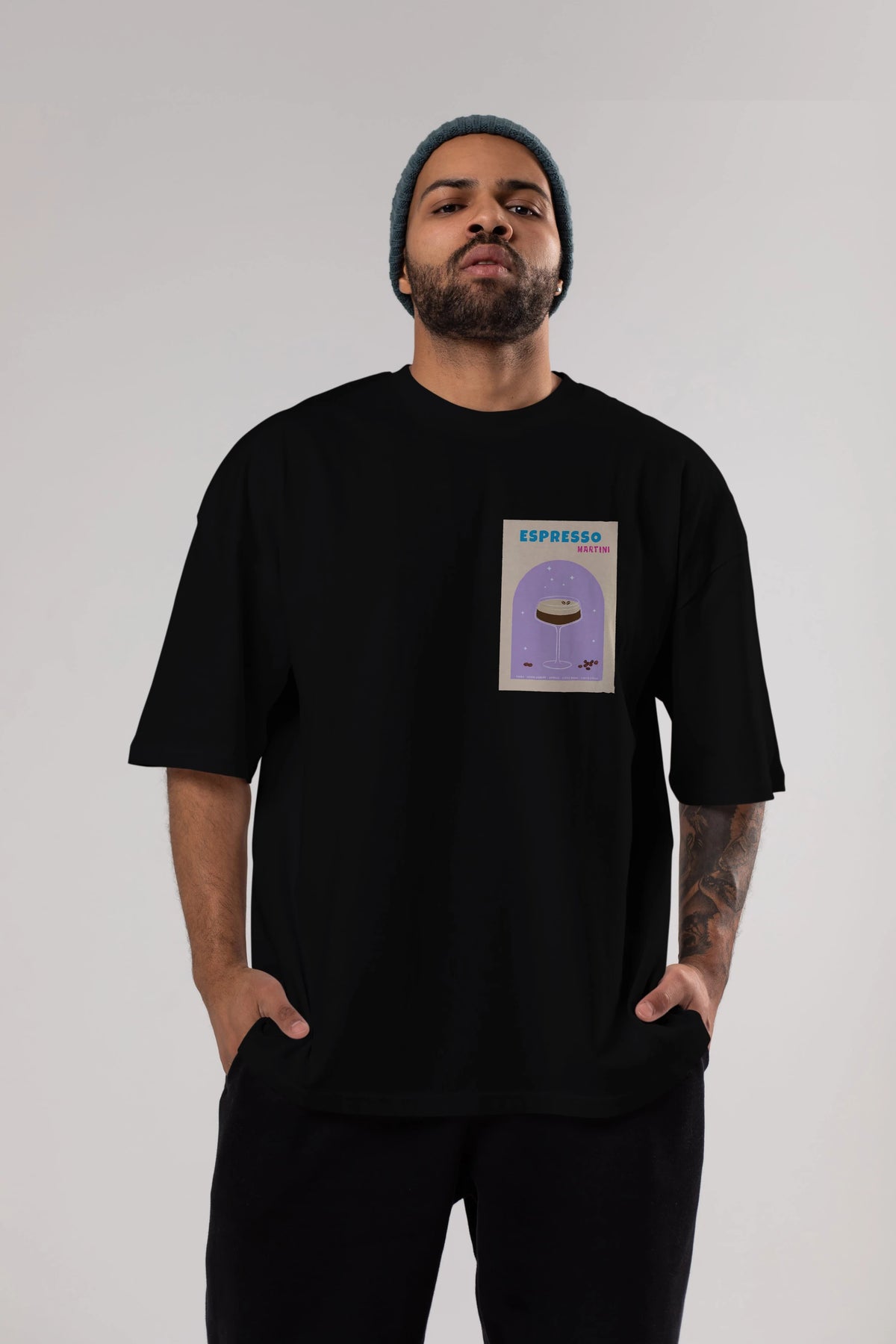 Espresso Martini 5 Ön Sol Baskılı Oversize t-shirt Erkek Kadın Unisex %100 Pamuk Bisiklet Yaka tişort