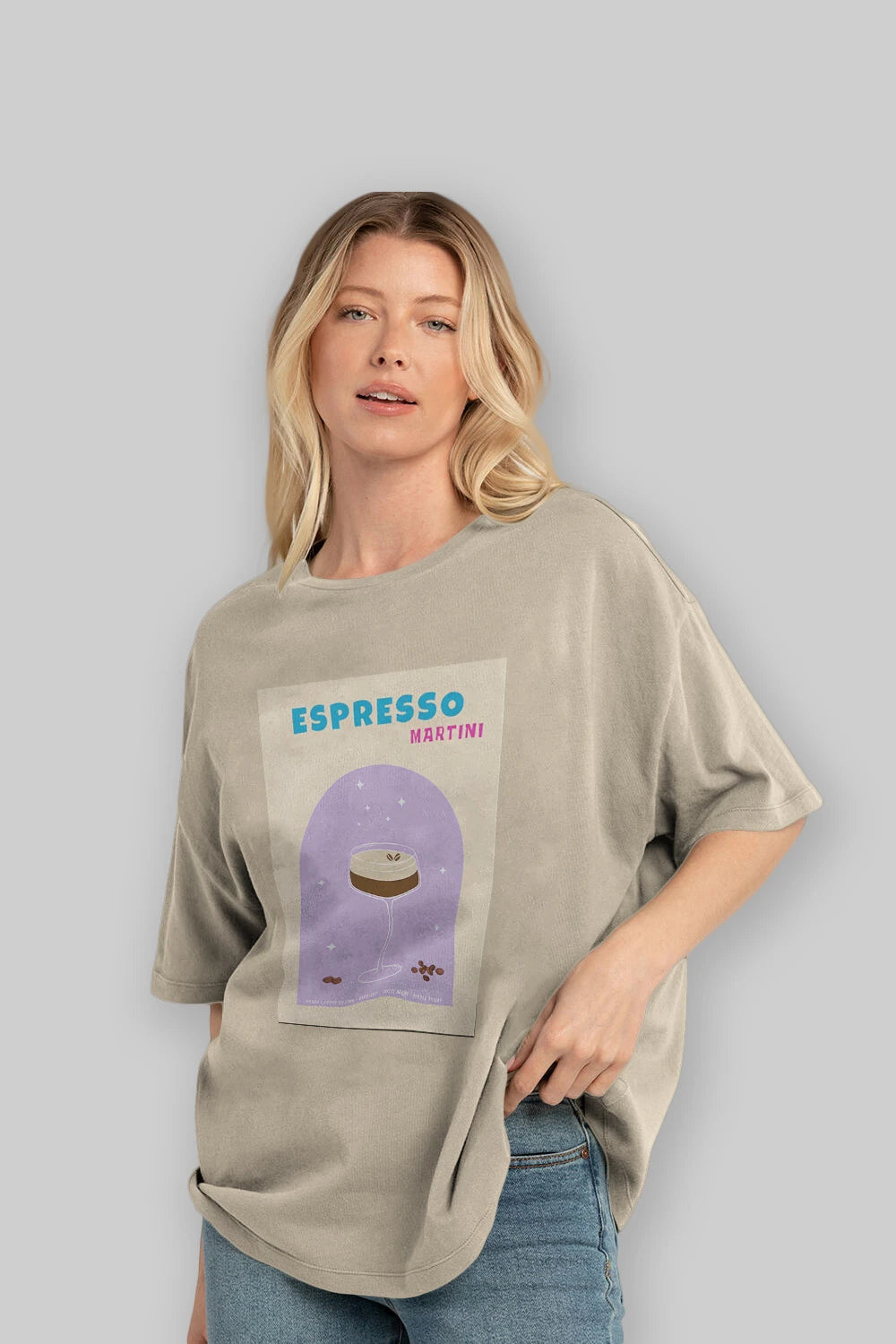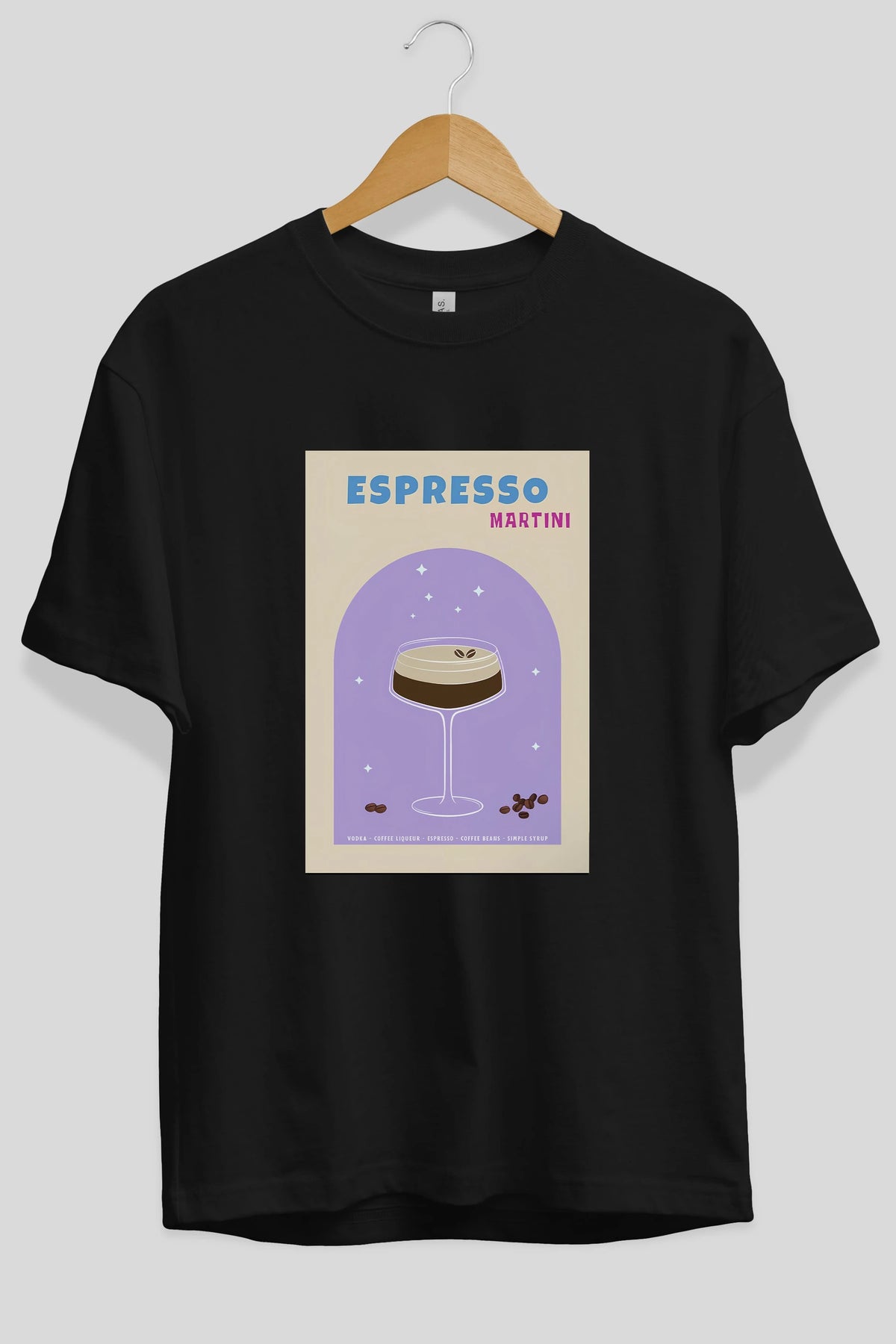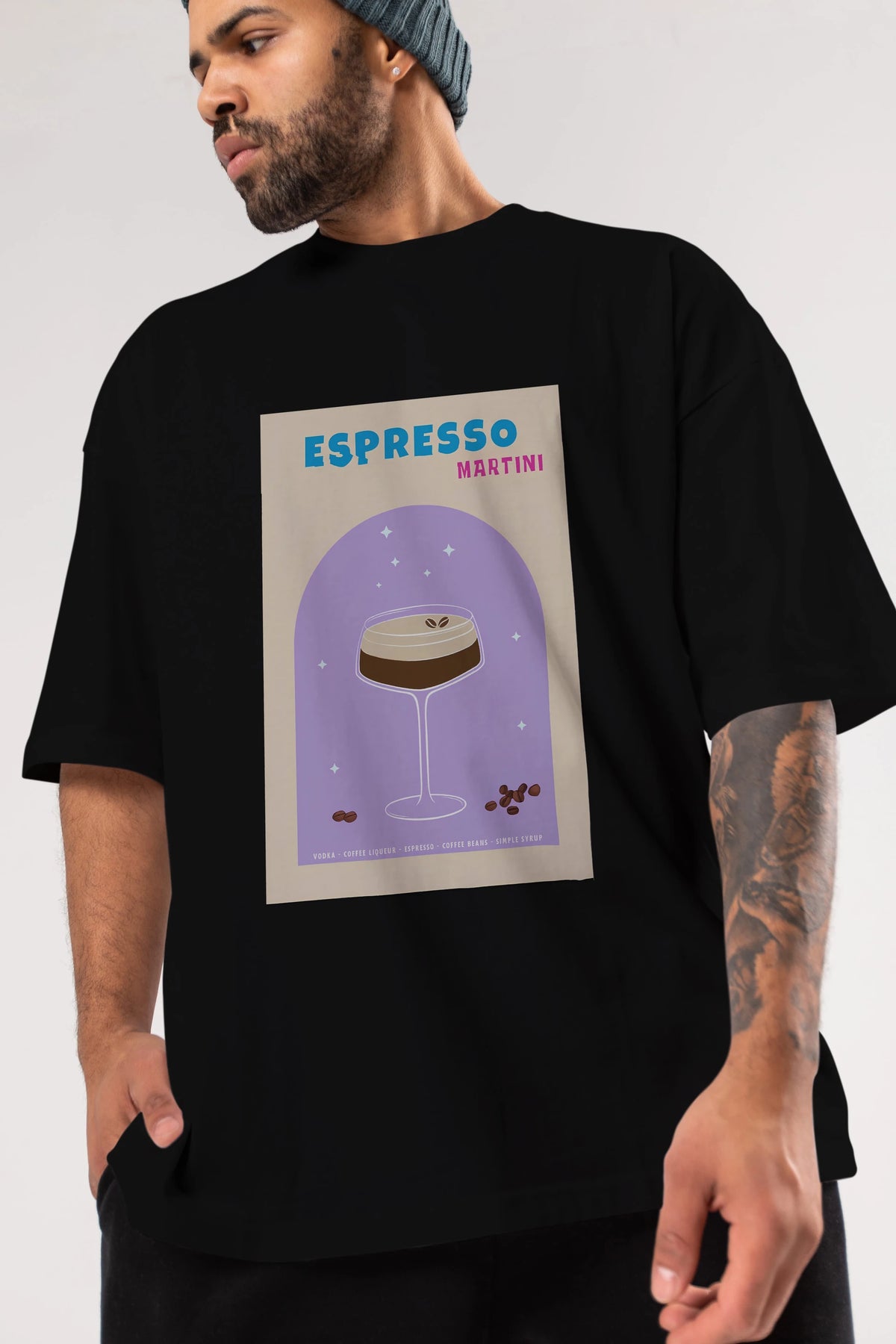 Espresso Martini 5 Ön Baskılı Oversize t-shirt Erkek Kadın Unisex %100 Pamuk Bisiklet Yaka tişort