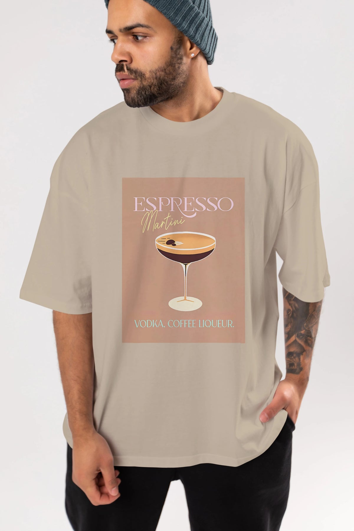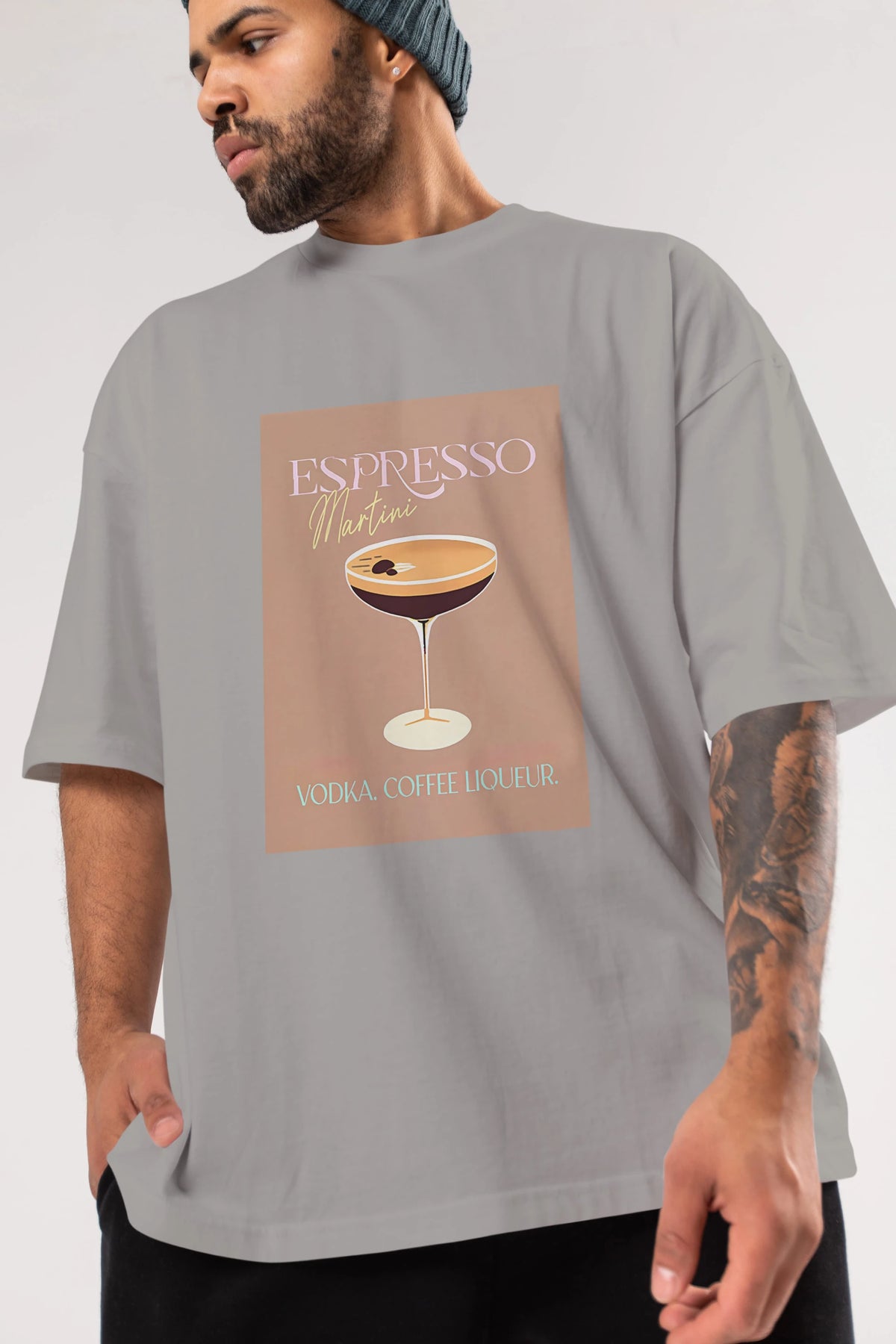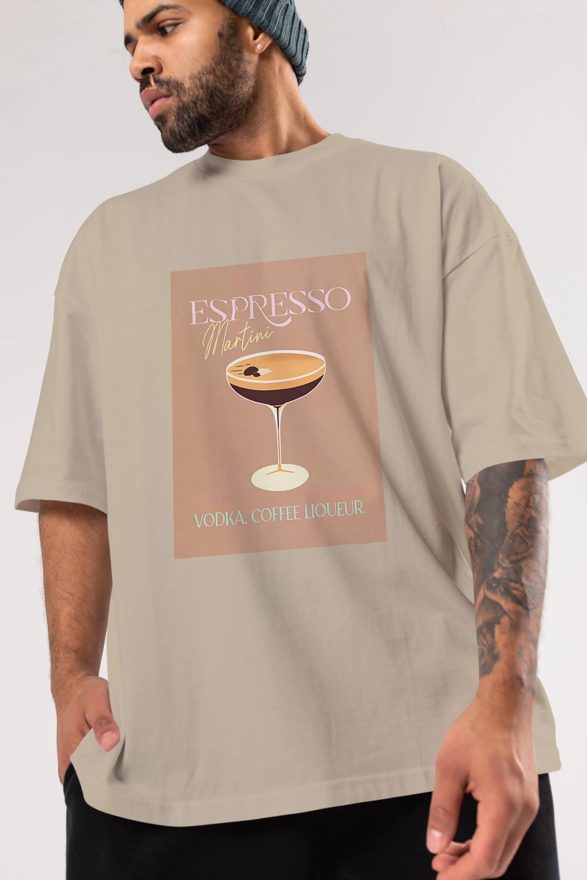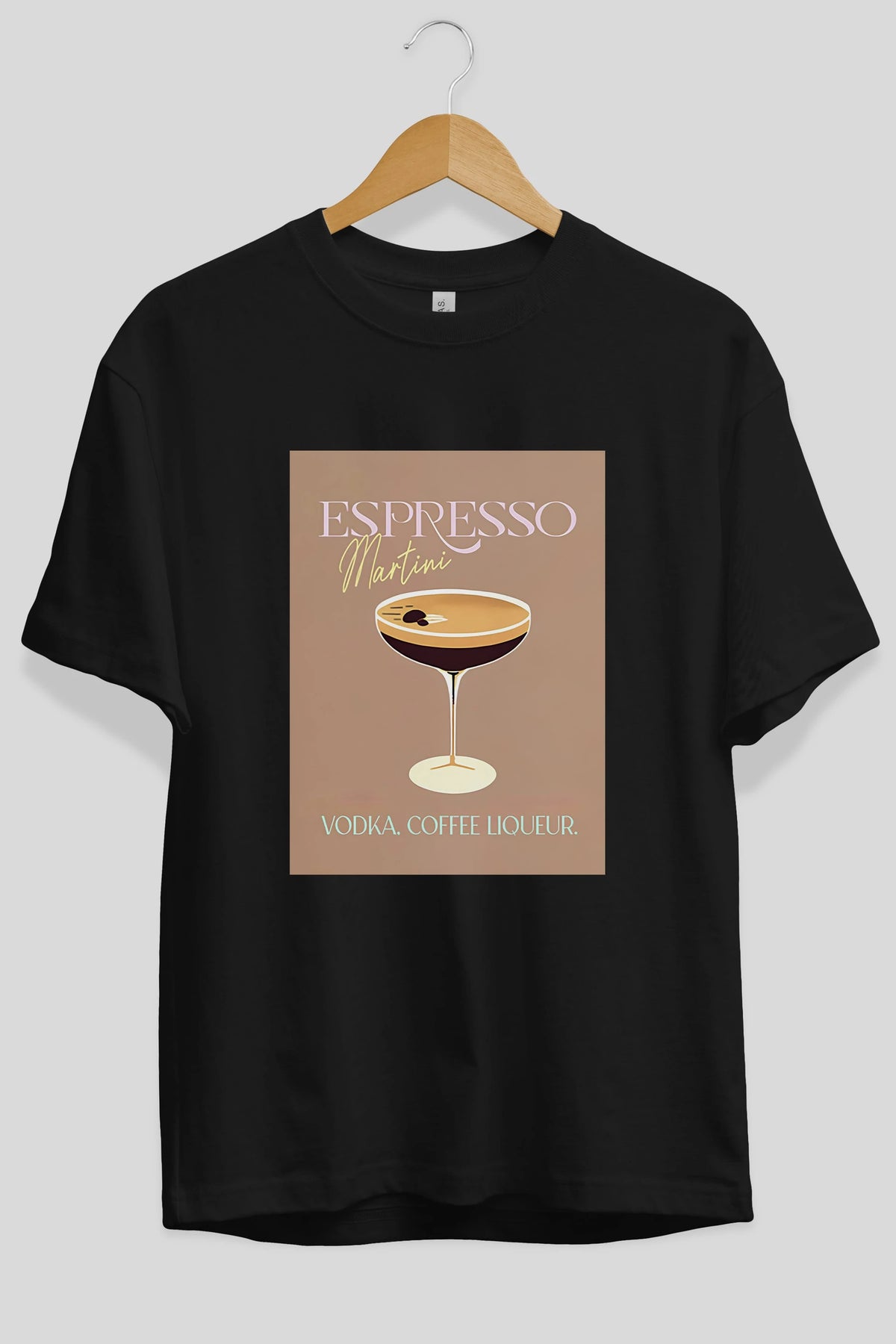 Espresso Martini Cocktail Ön Baskılı Oversize t-shirt Erkek Kadın Unisex %100 Pamuk Bisiklet Yaka tişort