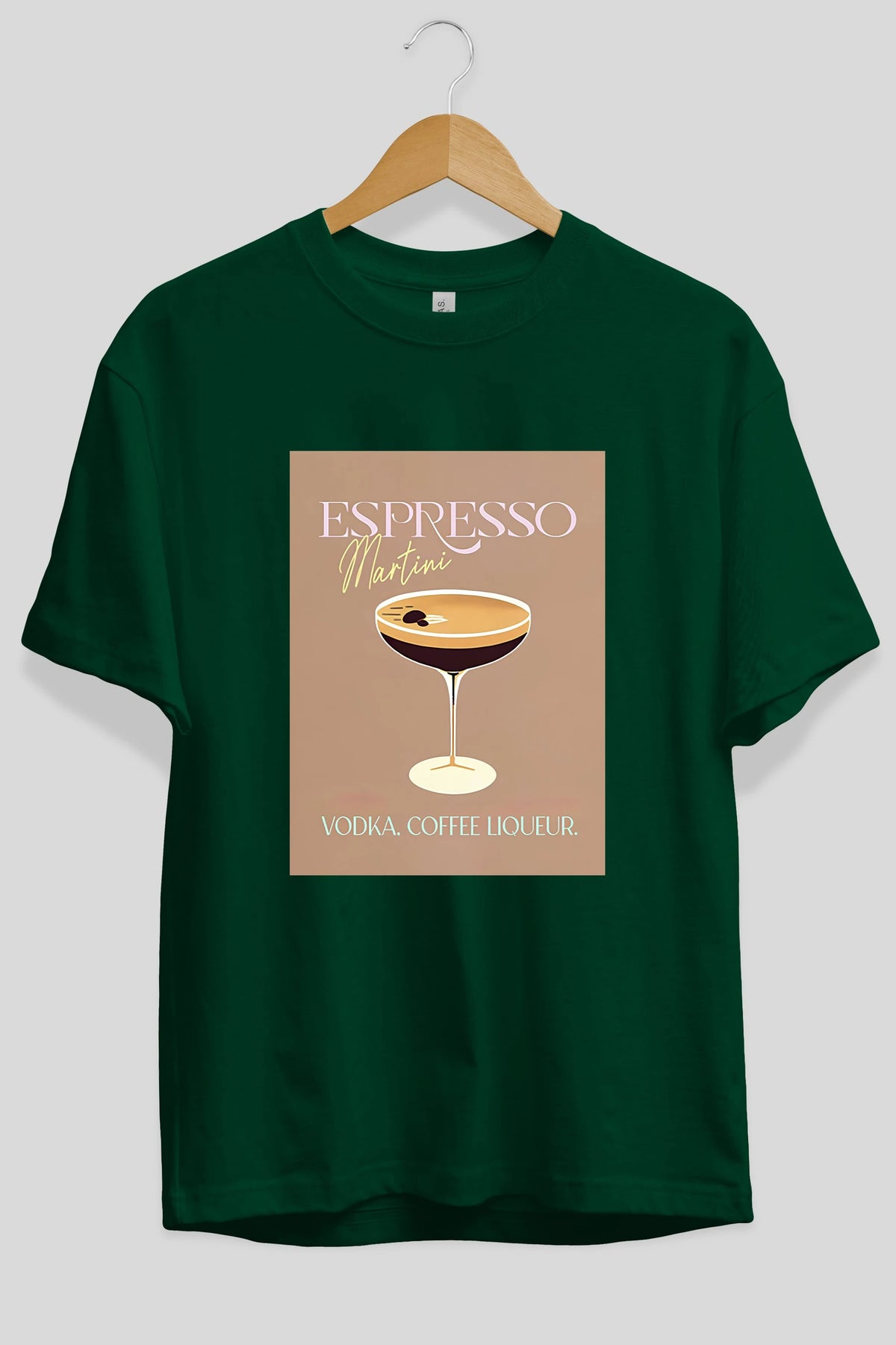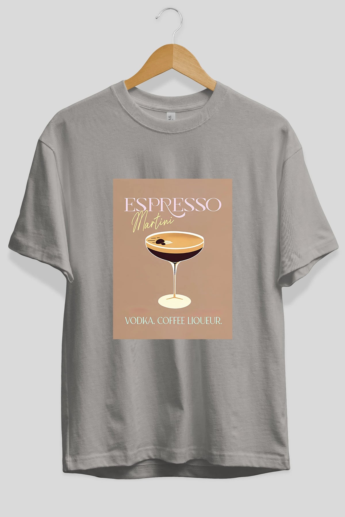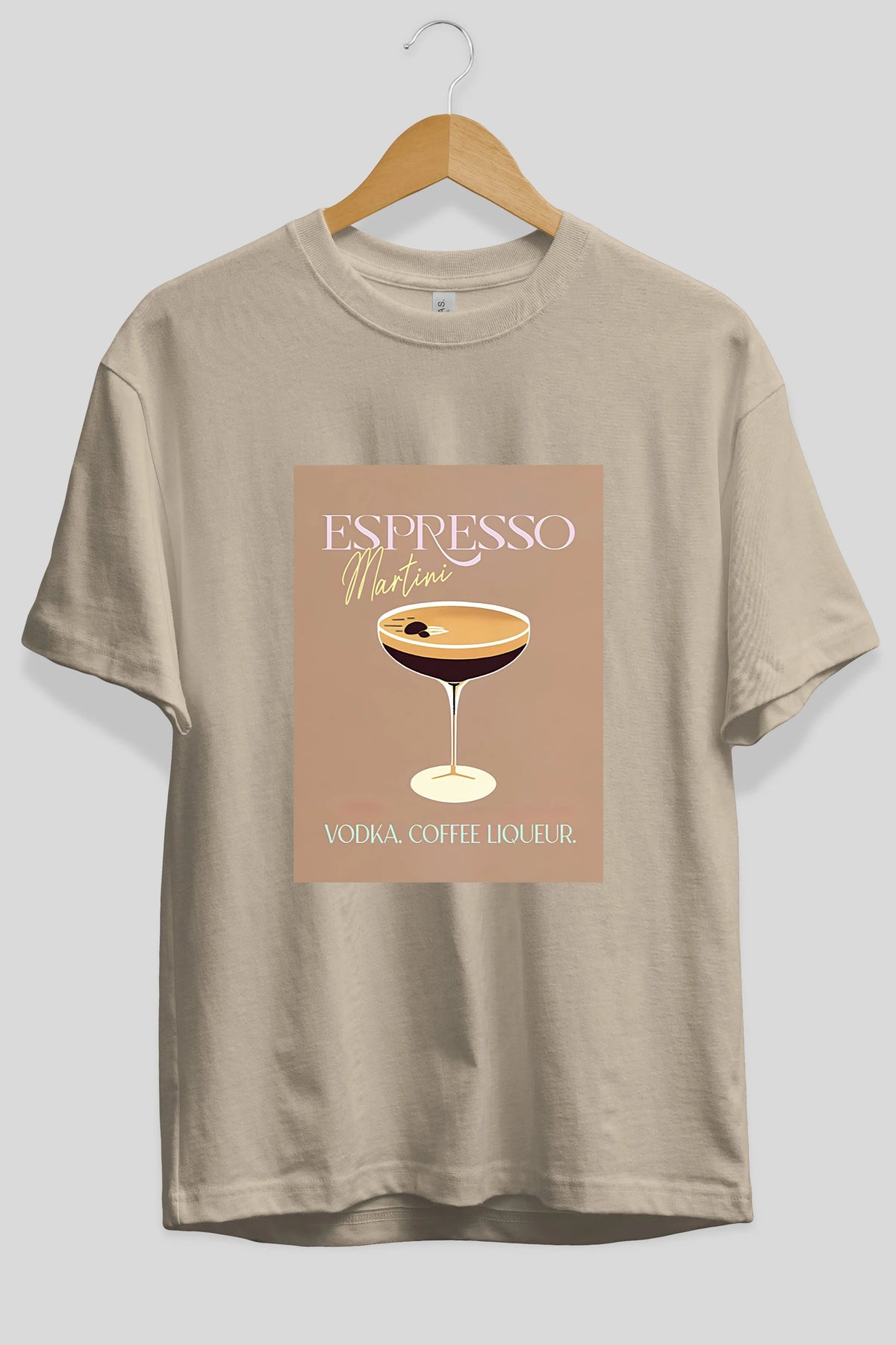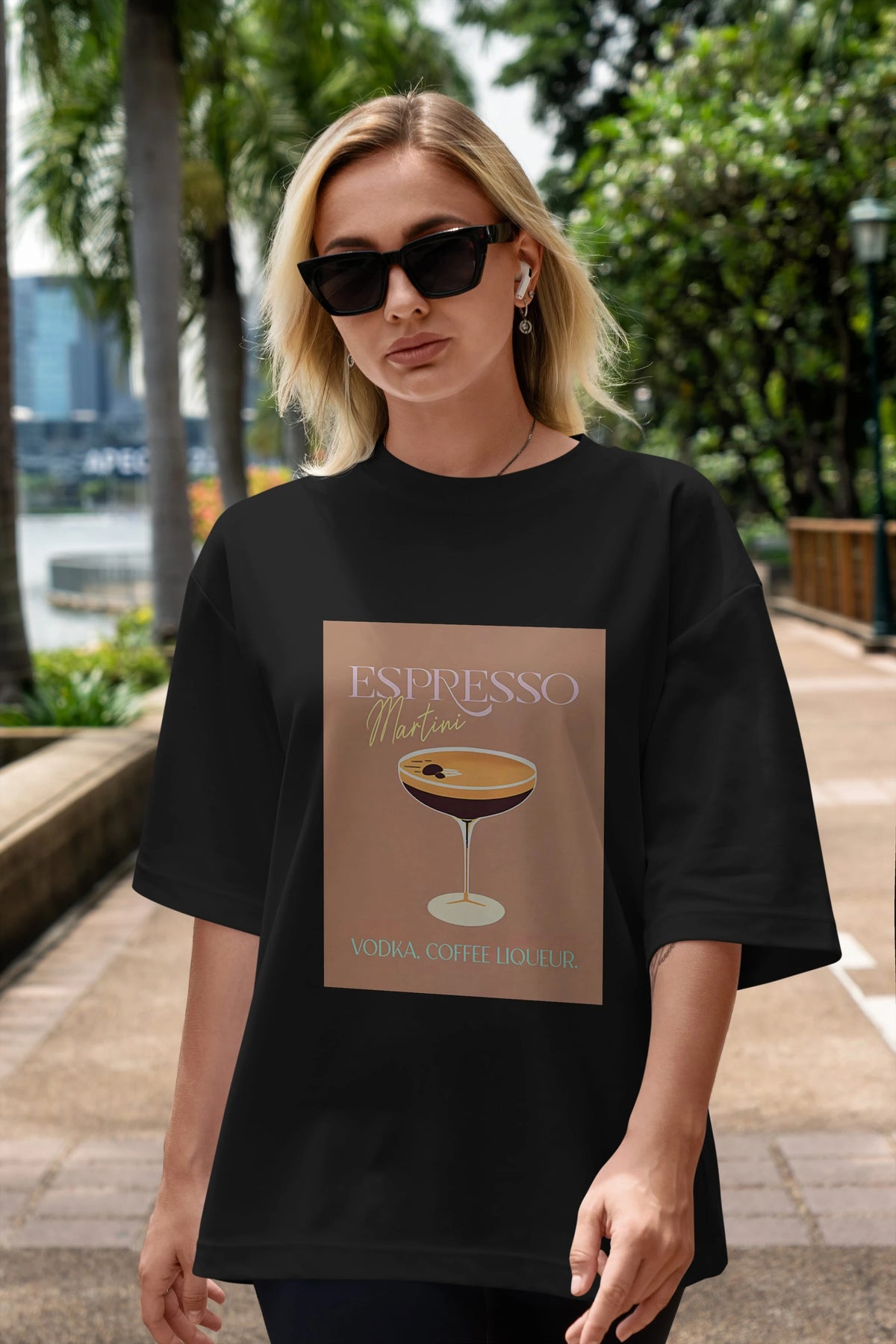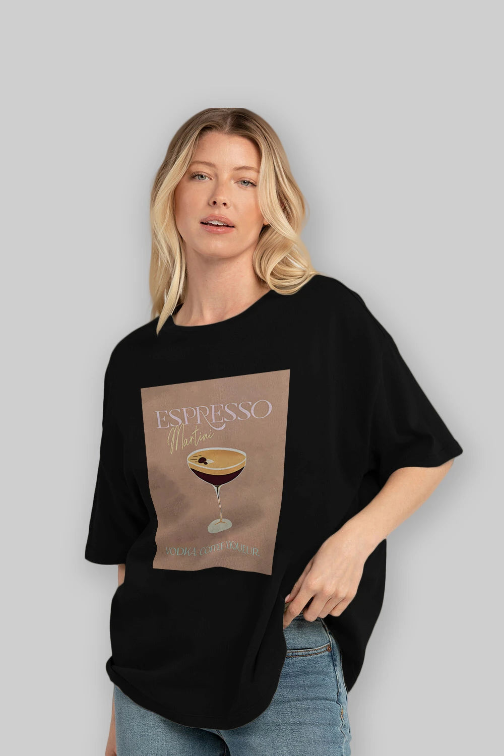 Espresso Martini Cocktail Ön Baskılı Oversize t-shirt Erkek Kadın Unisex %100 Pamuk Bisiklet Yaka tişort
