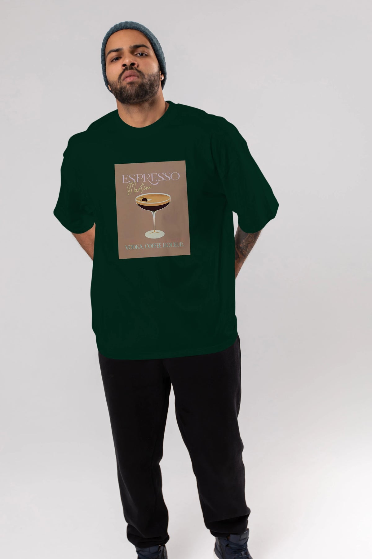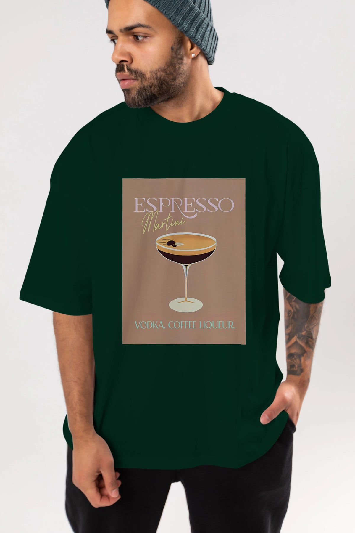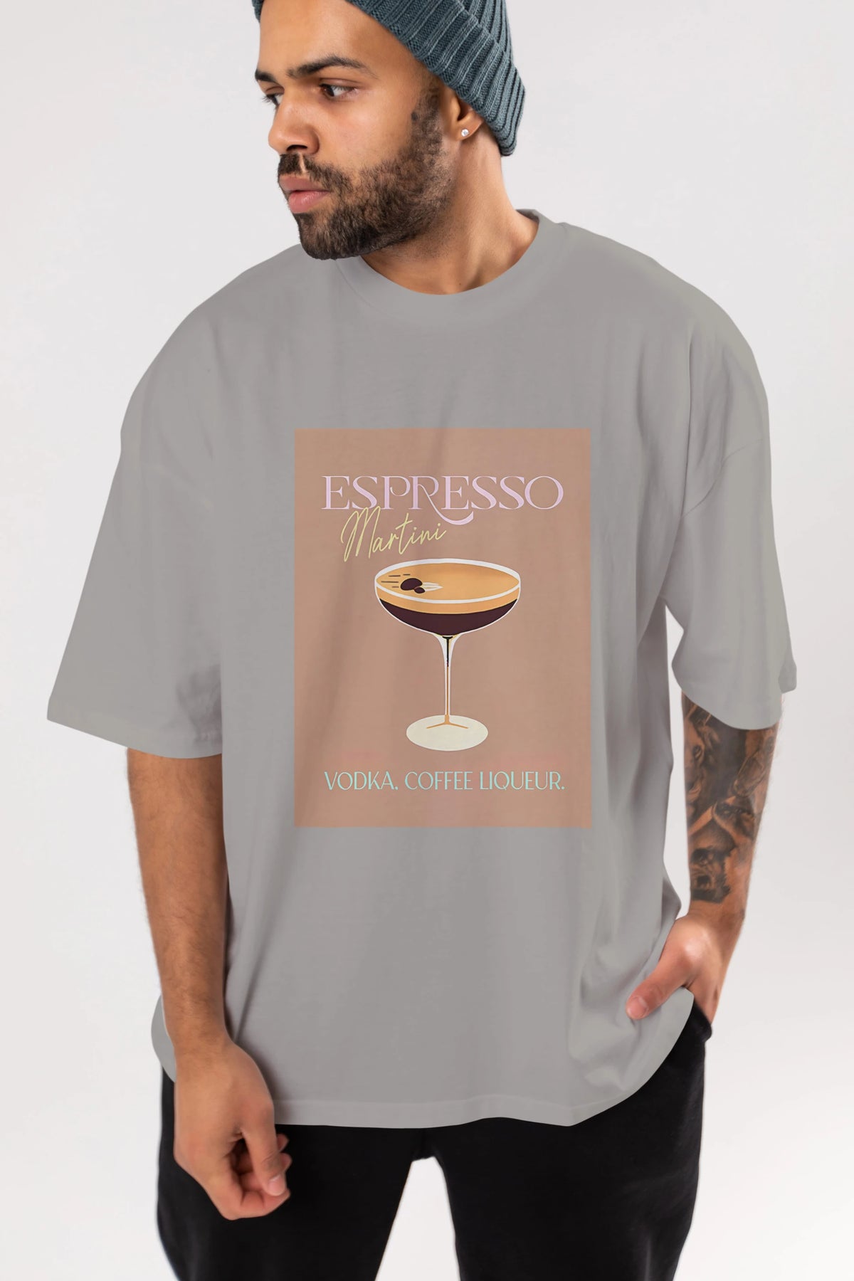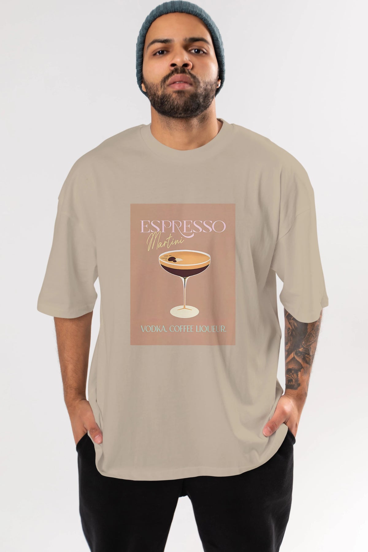 Espresso Martini Cocktail Ön Baskılı Oversize t-shirt Erkek Kadın Unisex %100 Pamuk Bisiklet Yaka tişort