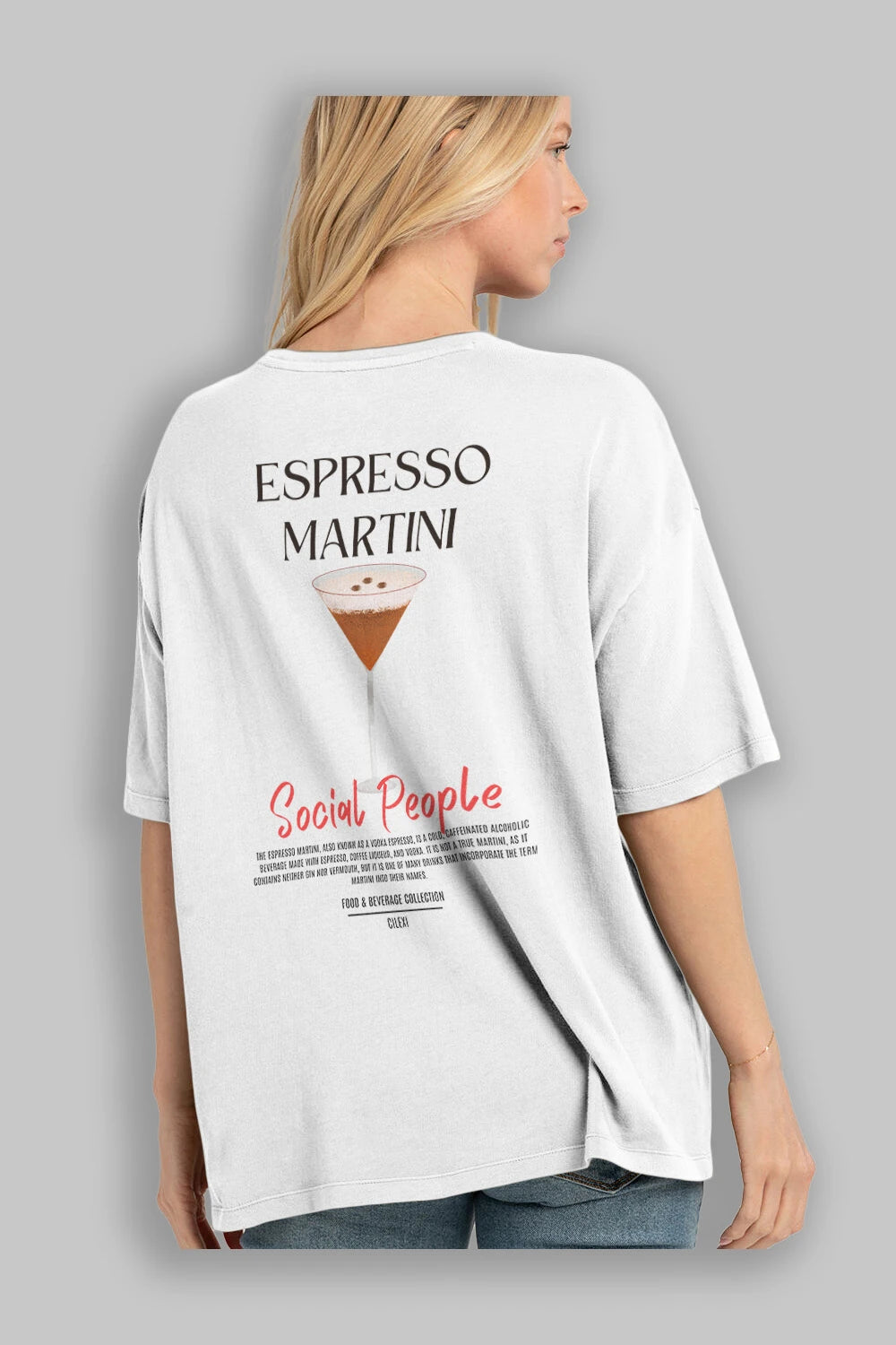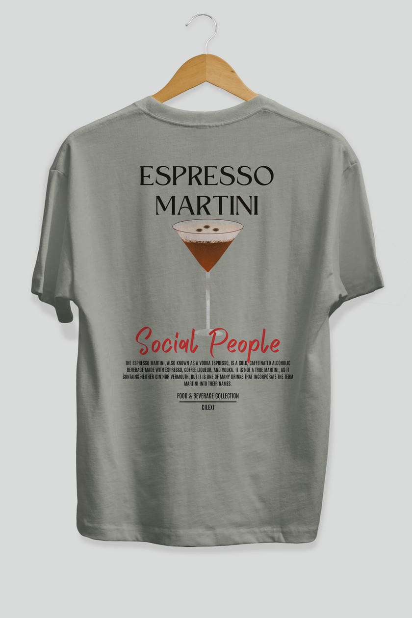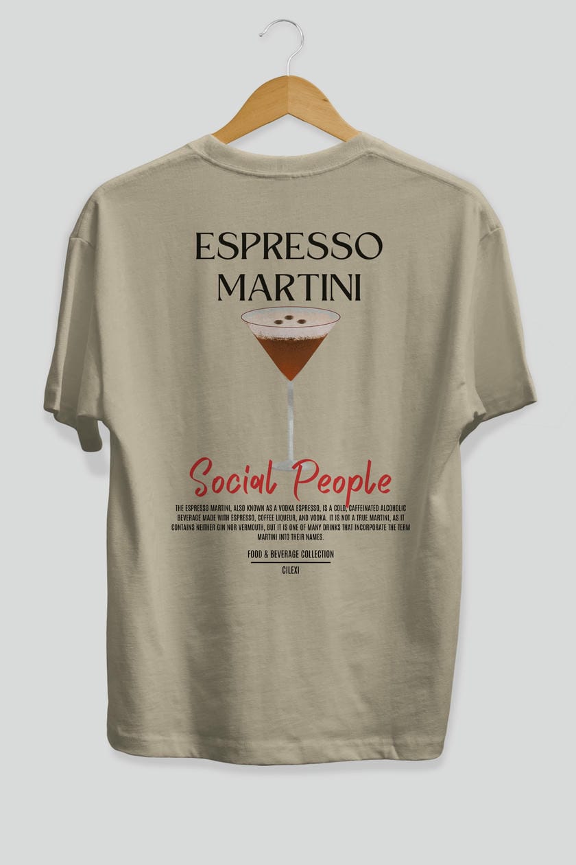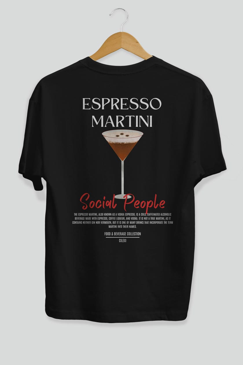 Espresso Martını Kokteyl Serisi Baskılı Oversize t-shirt Erkek Kadın Unisex %100 Pamuk Bisiklet Yaka tişort