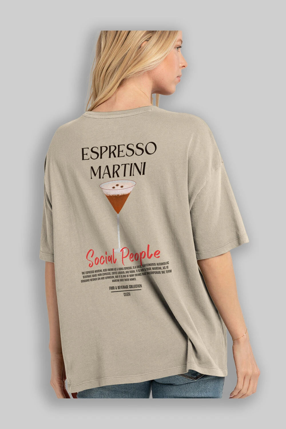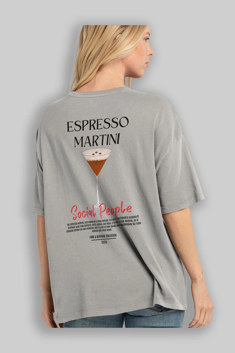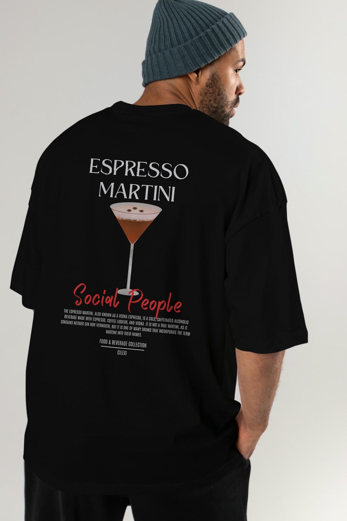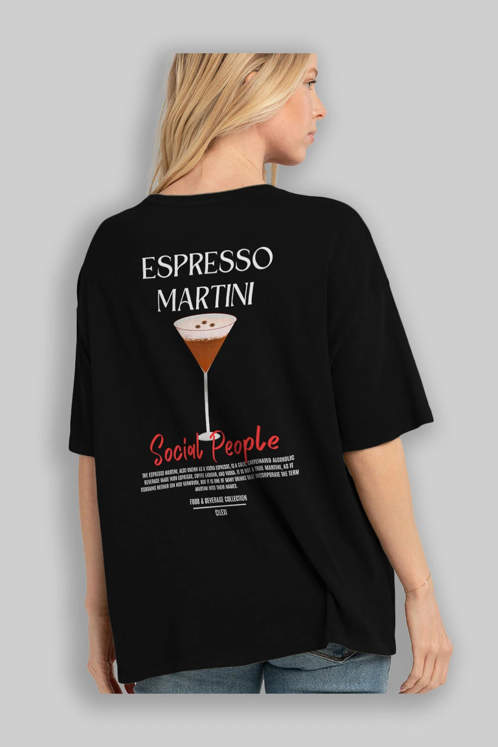 Espresso Martını Kokteyl Serisi Baskılı Oversize t-shirt Erkek Kadın Unisex %100 Pamuk Bisiklet Yaka tişort