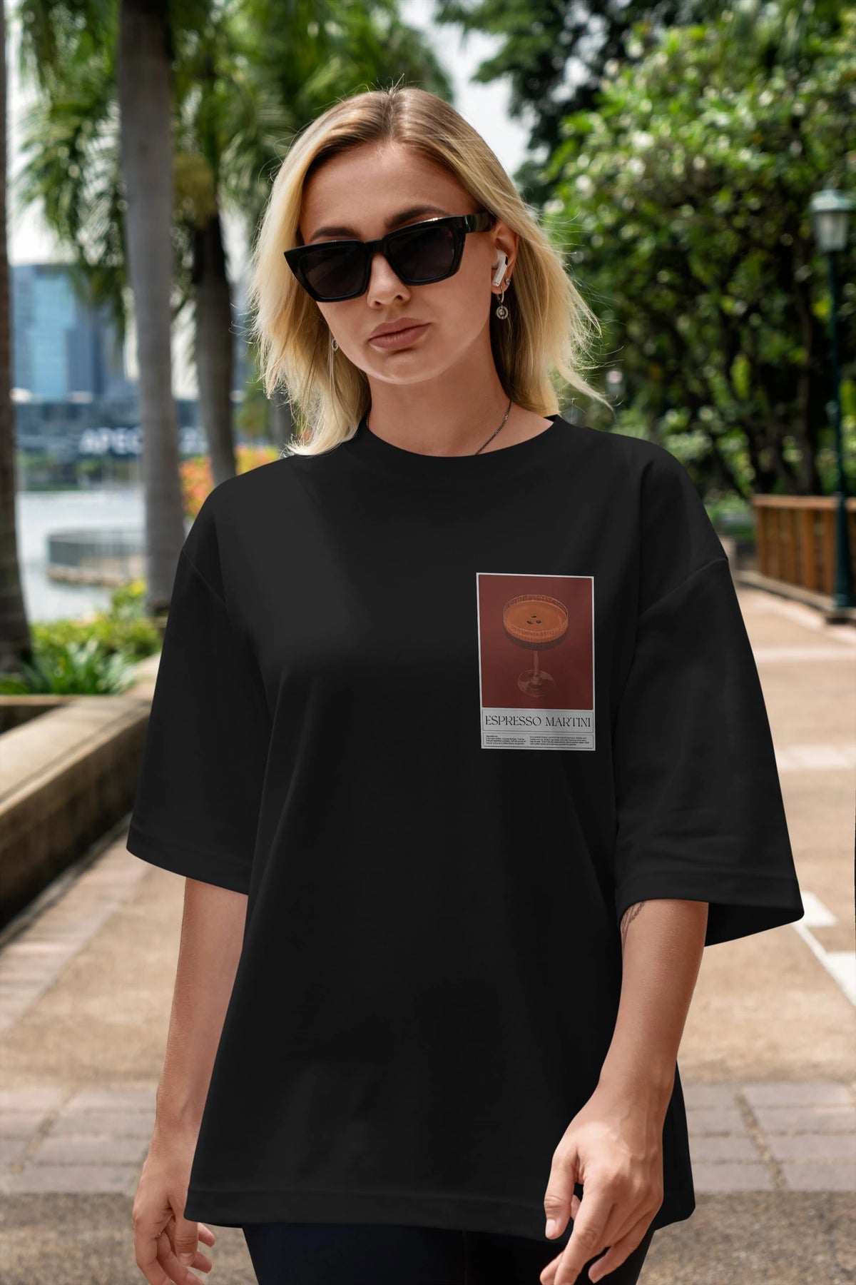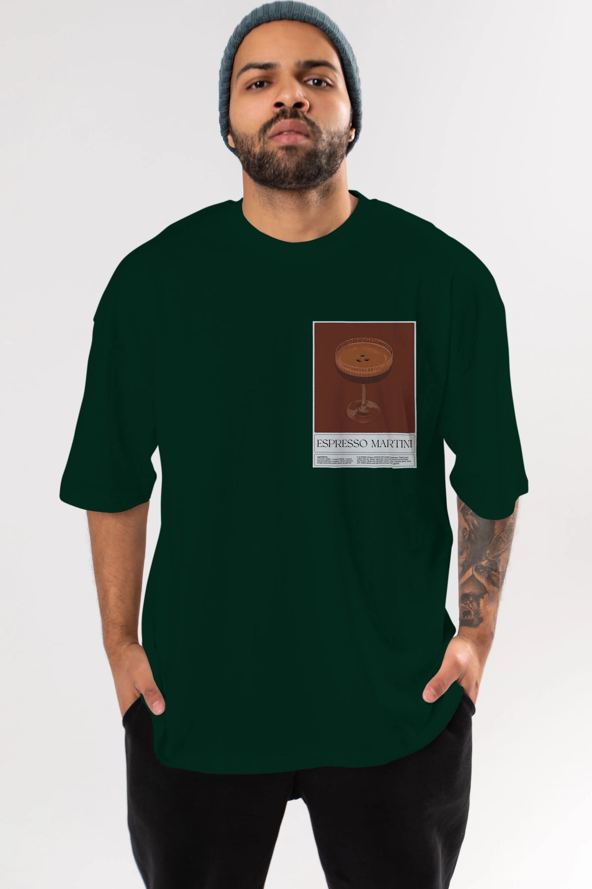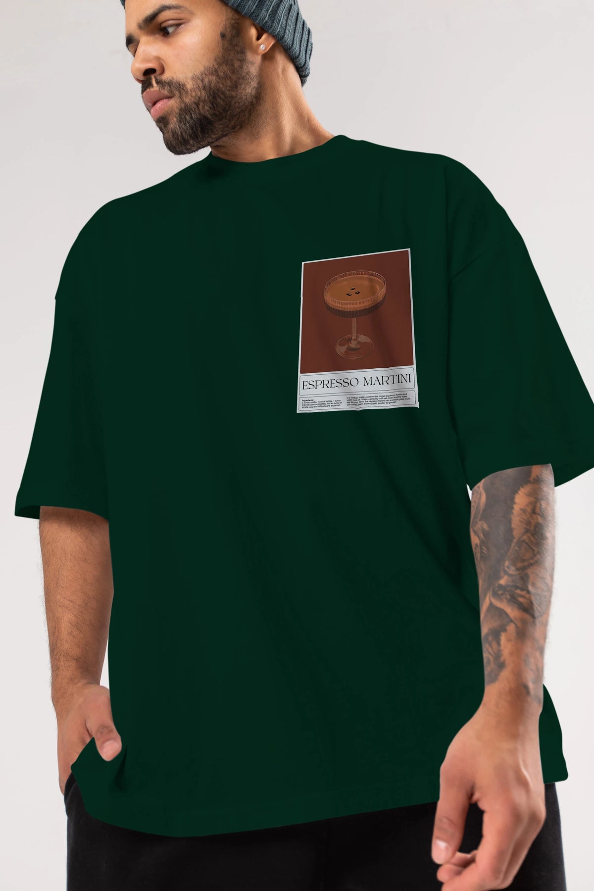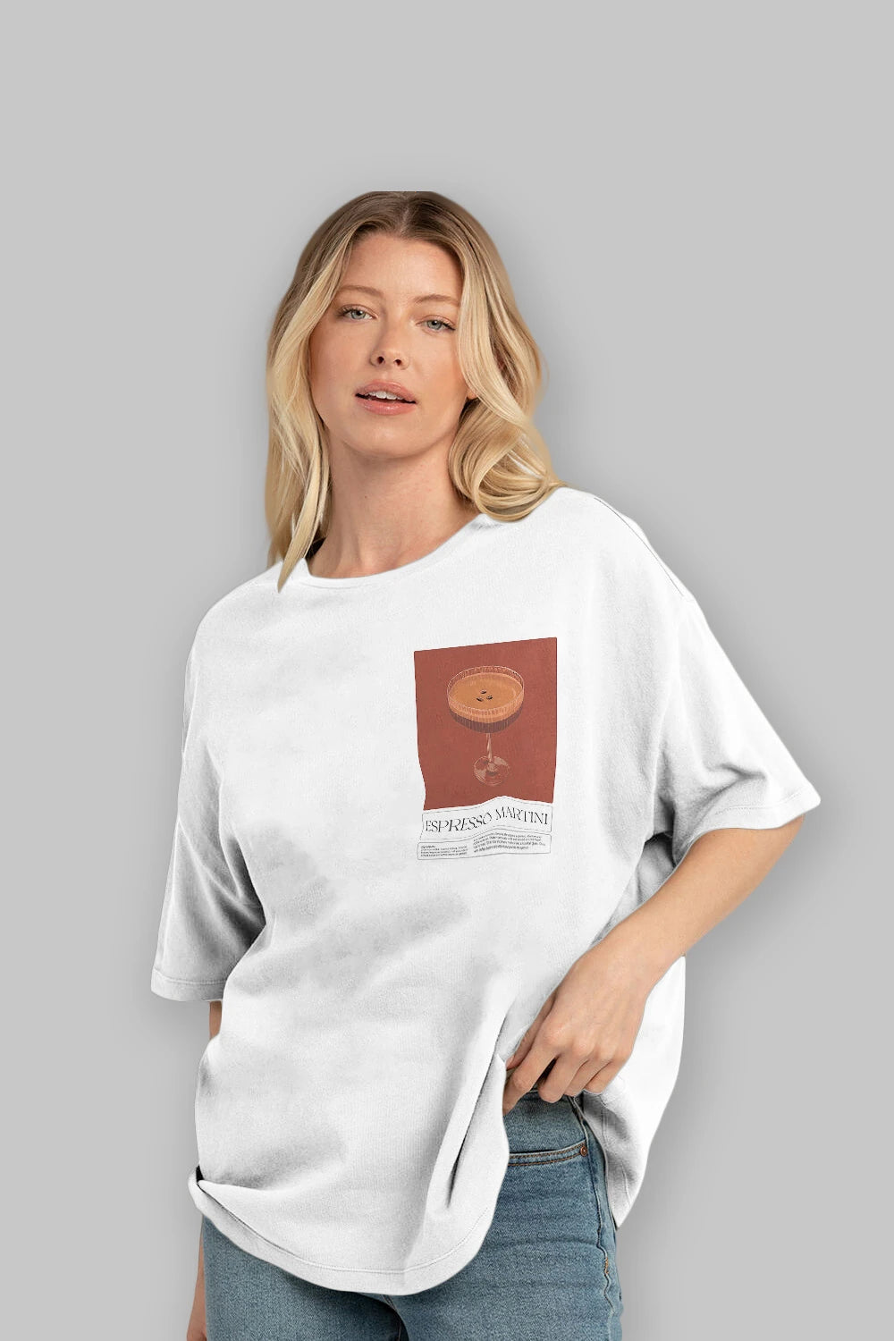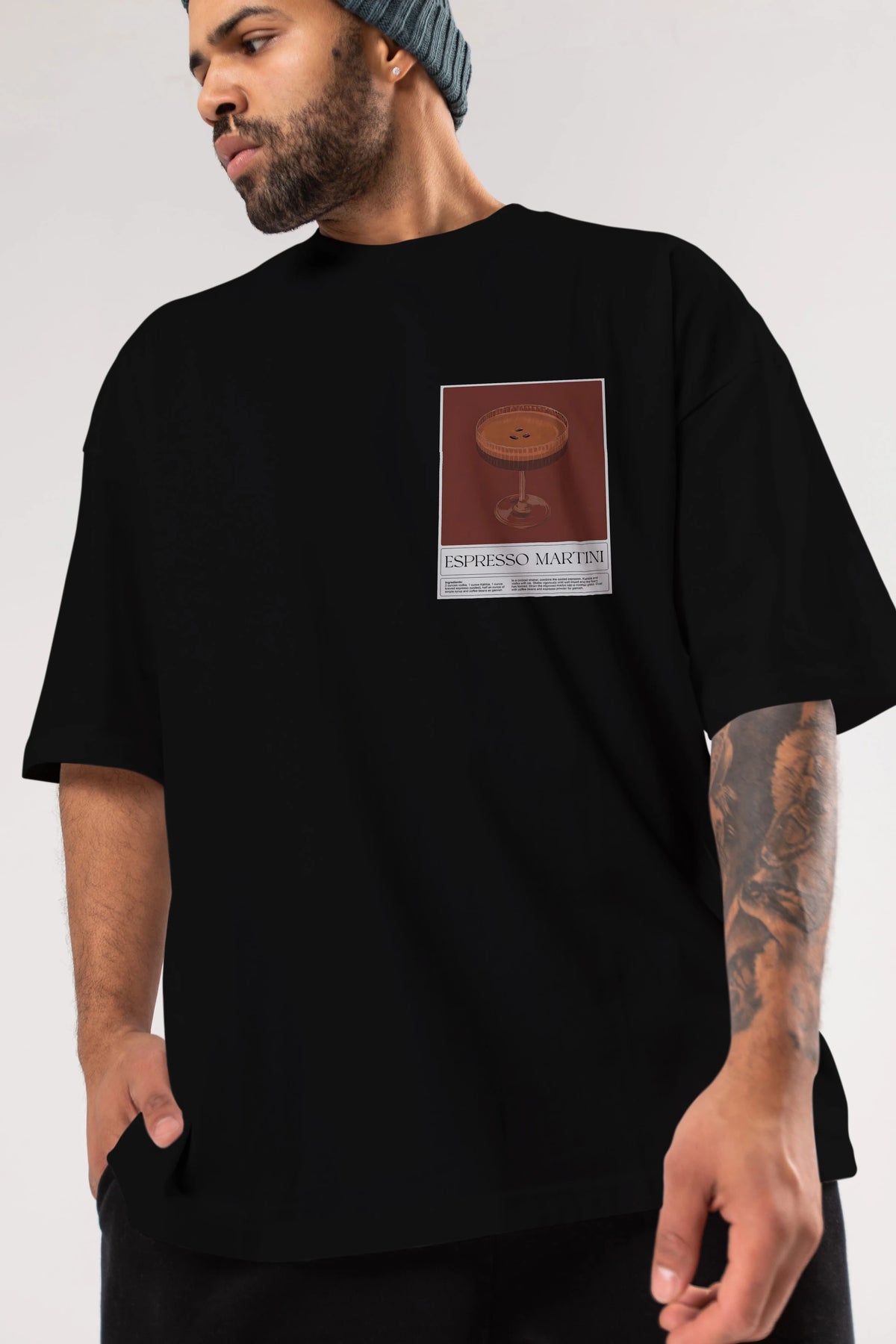 Espresso Martini Ön Sol Baskılı Oversize t-shirt Erkek Kadın Unisex %100 Pamuk Bisiklet Yaka tişort