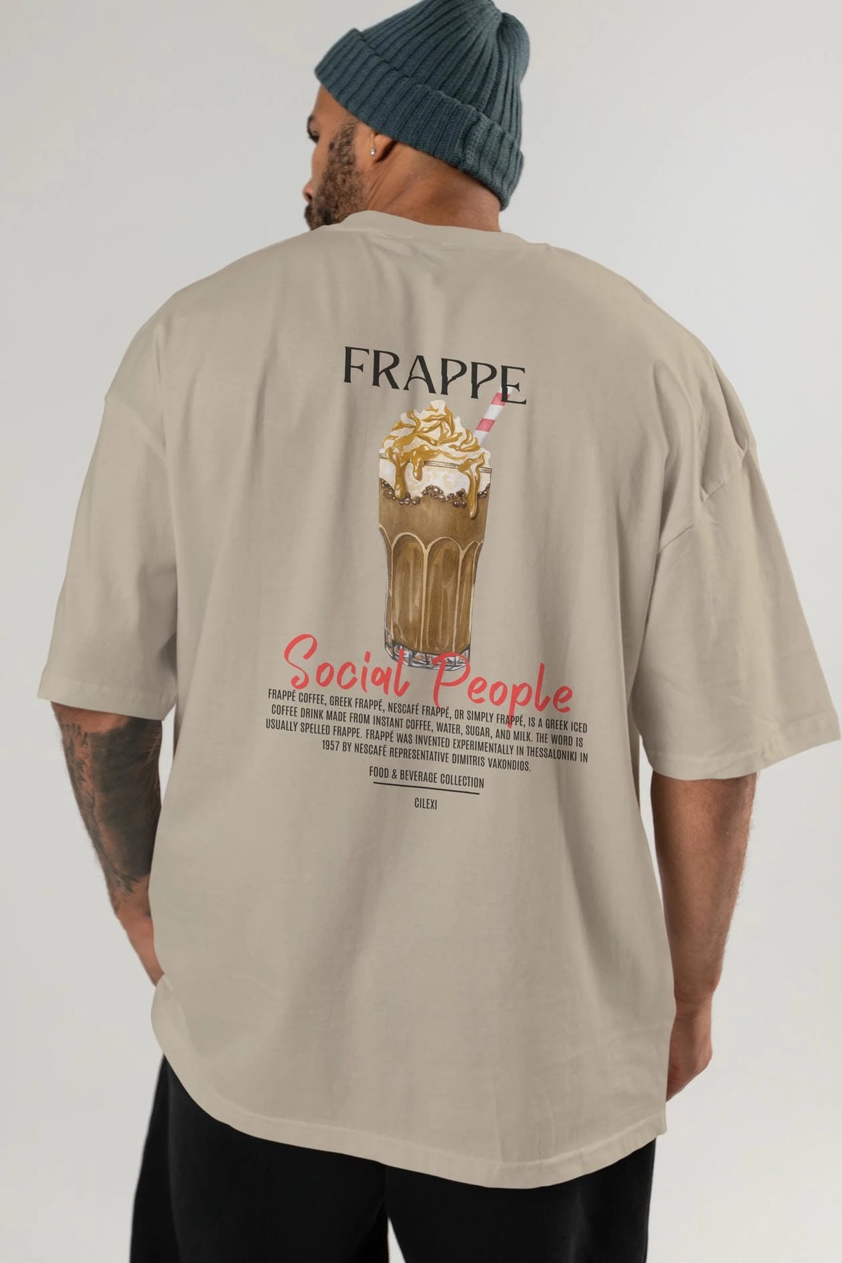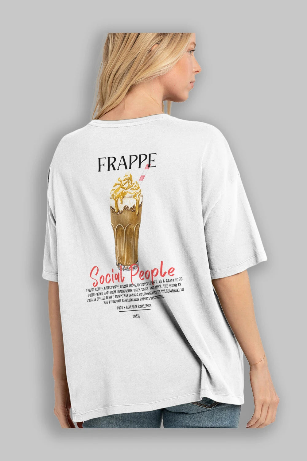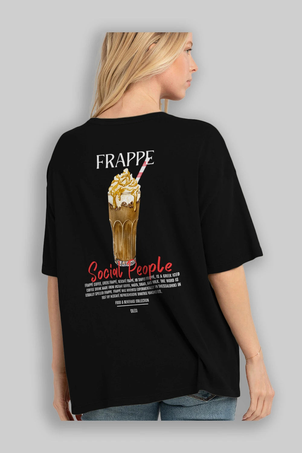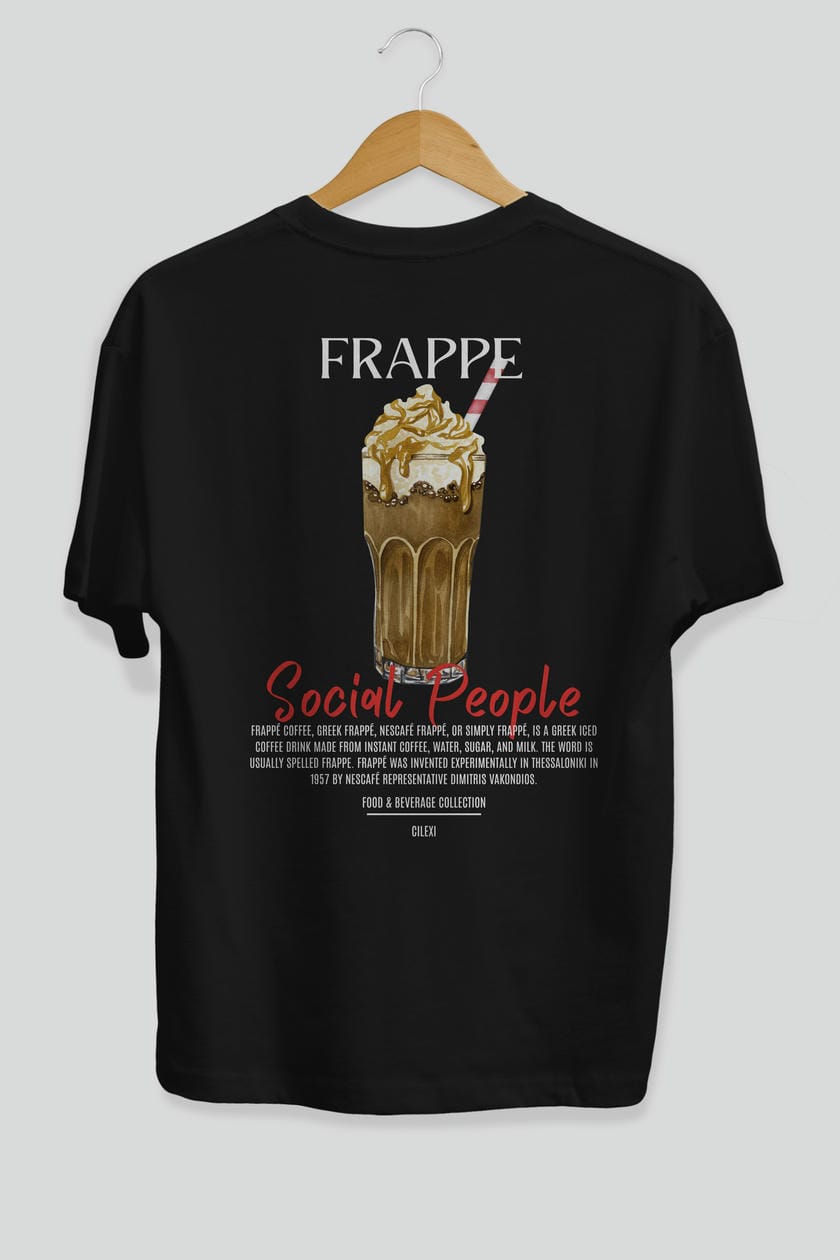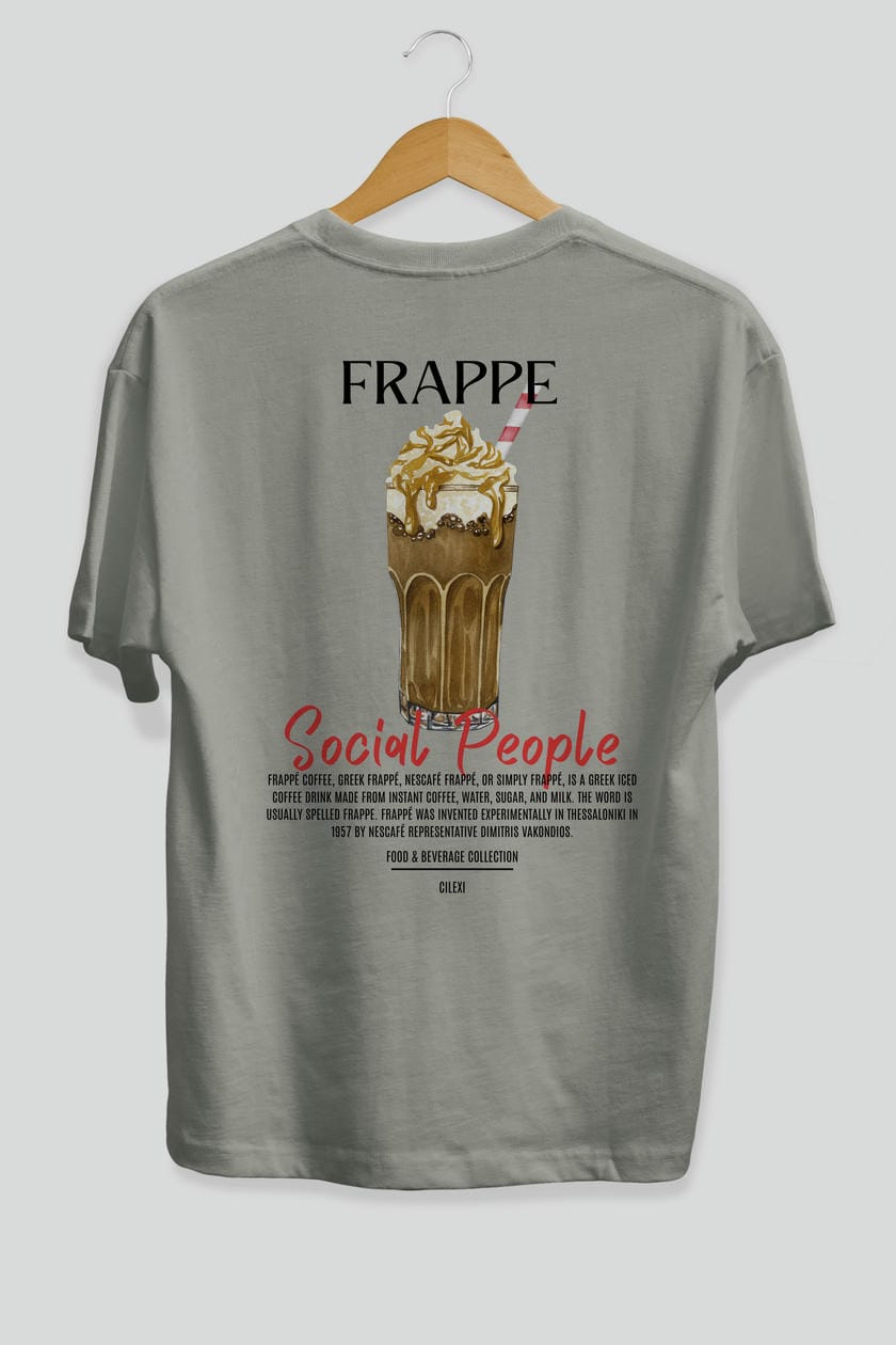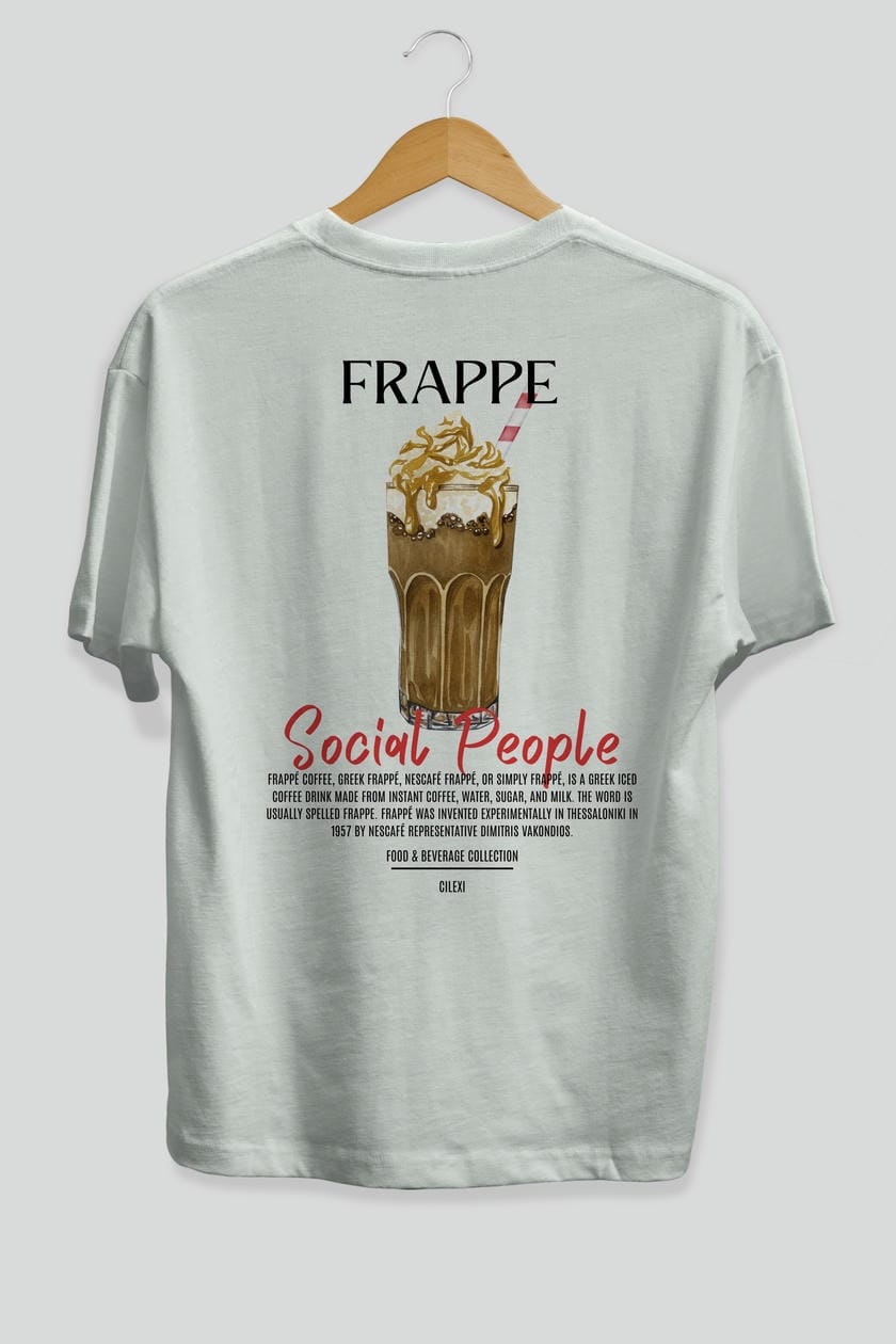 Frappe Kokteyl Serisi Baskılı Oversize t-shirt Erkek Kadın Unisex %100 Pamuk Bisiklet Yaka tişort
