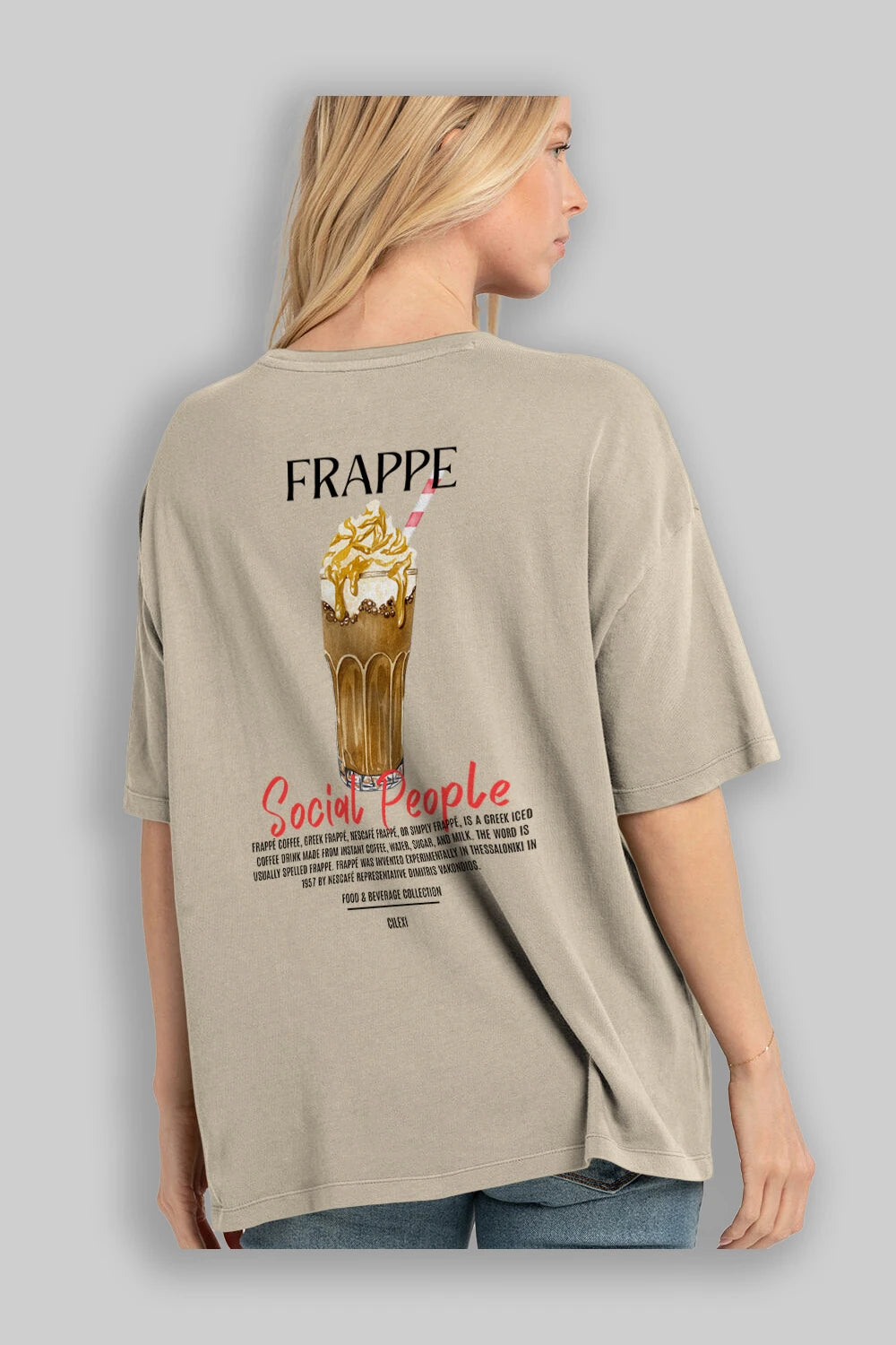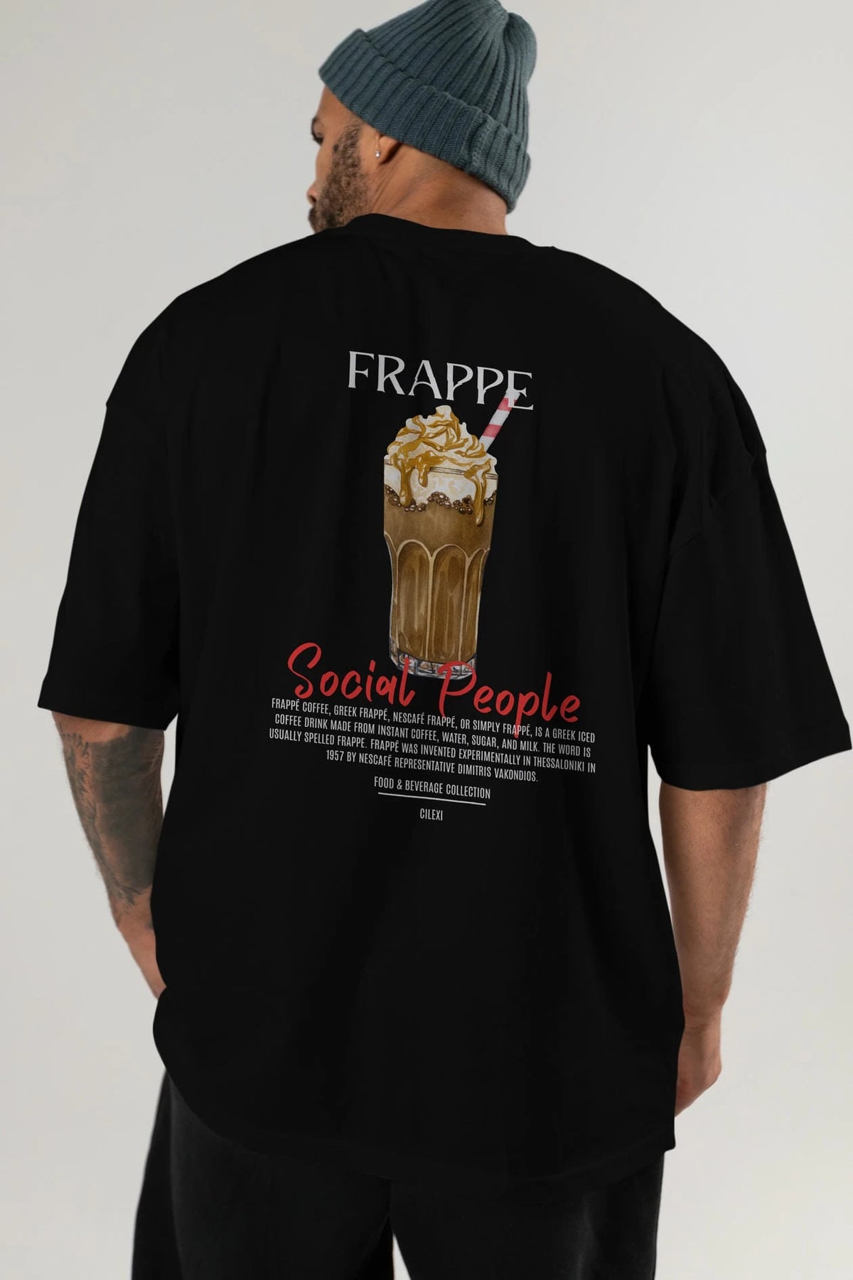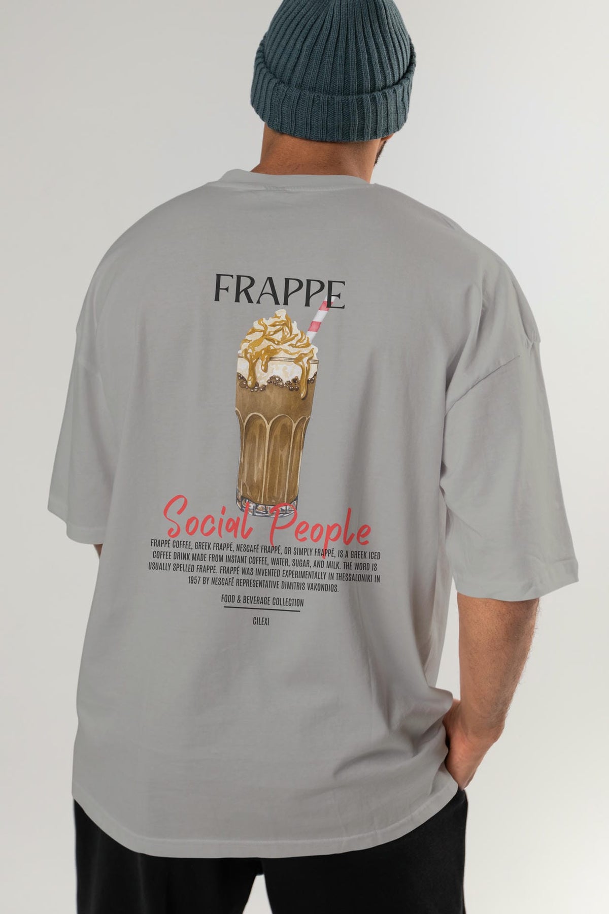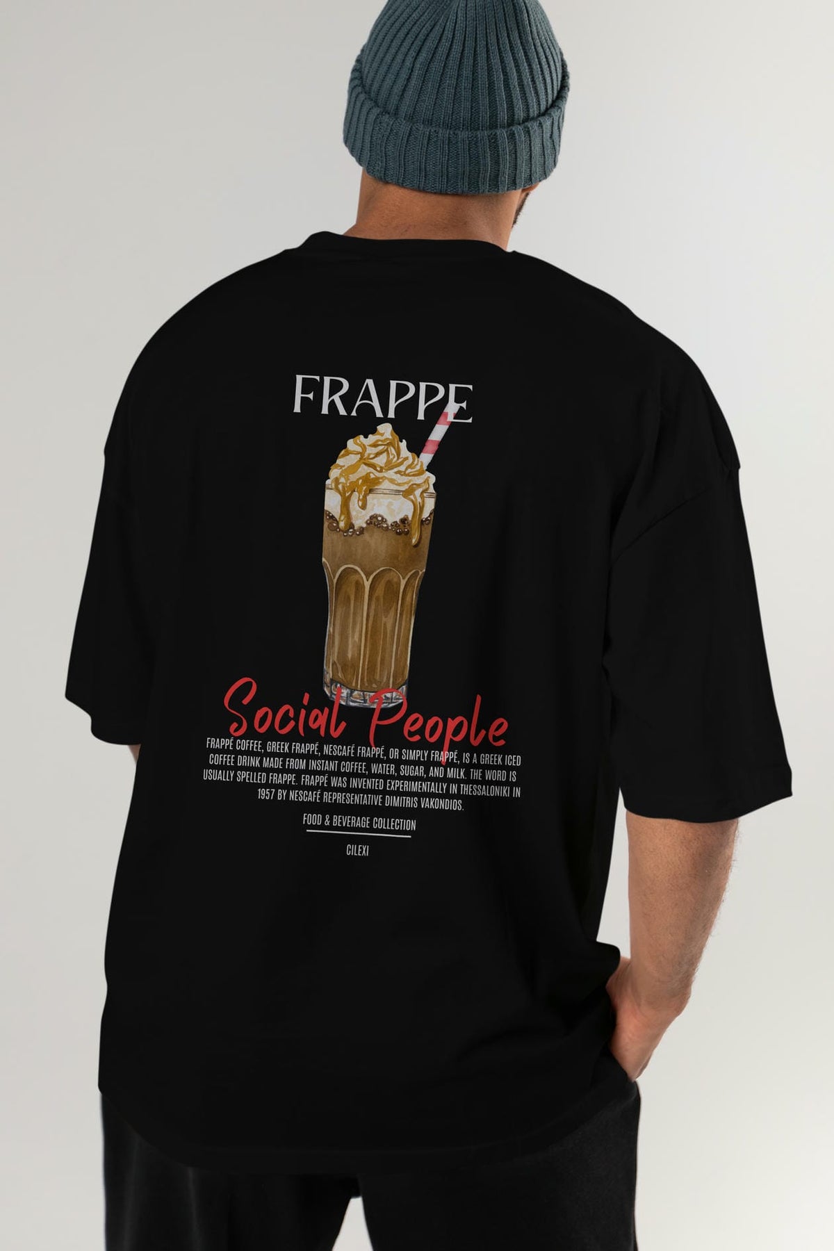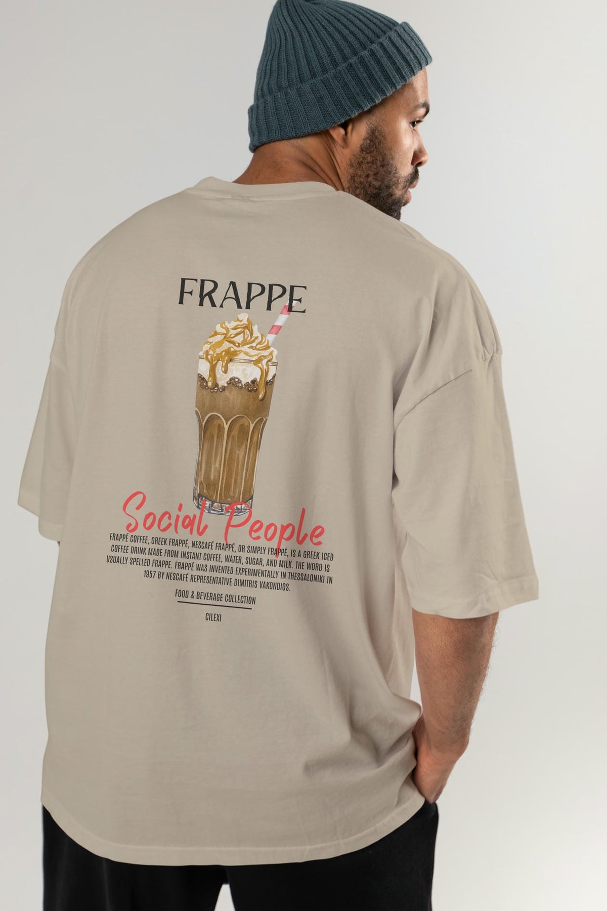 Frappe Kokteyl Serisi Baskılı Oversize t-shirt Erkek Kadın Unisex %100 Pamuk Bisiklet Yaka tişort