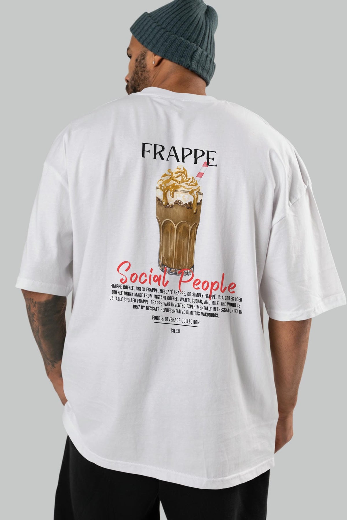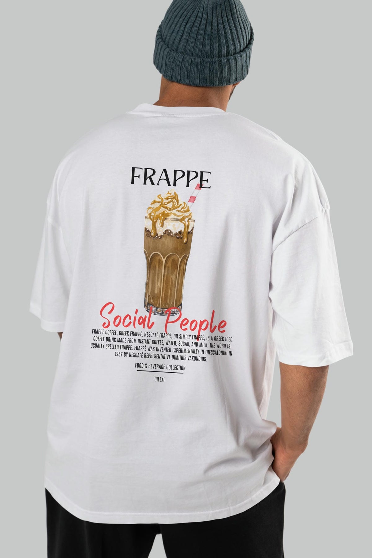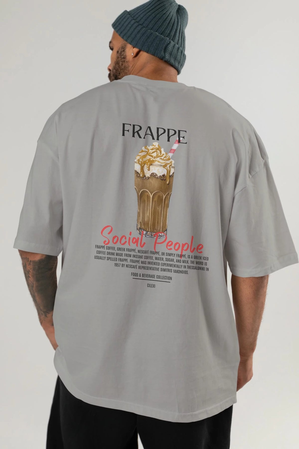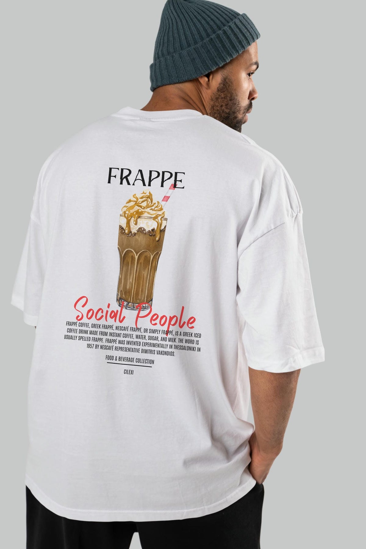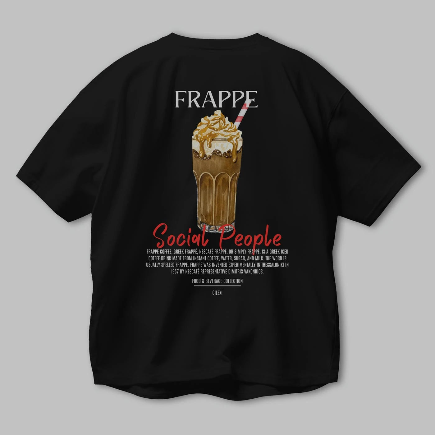 Frappe Kokteyl Serisi Baskılı Oversize t-shirt Erkek Kadın Unisex %100 Pamuk Bisiklet Yaka tişort