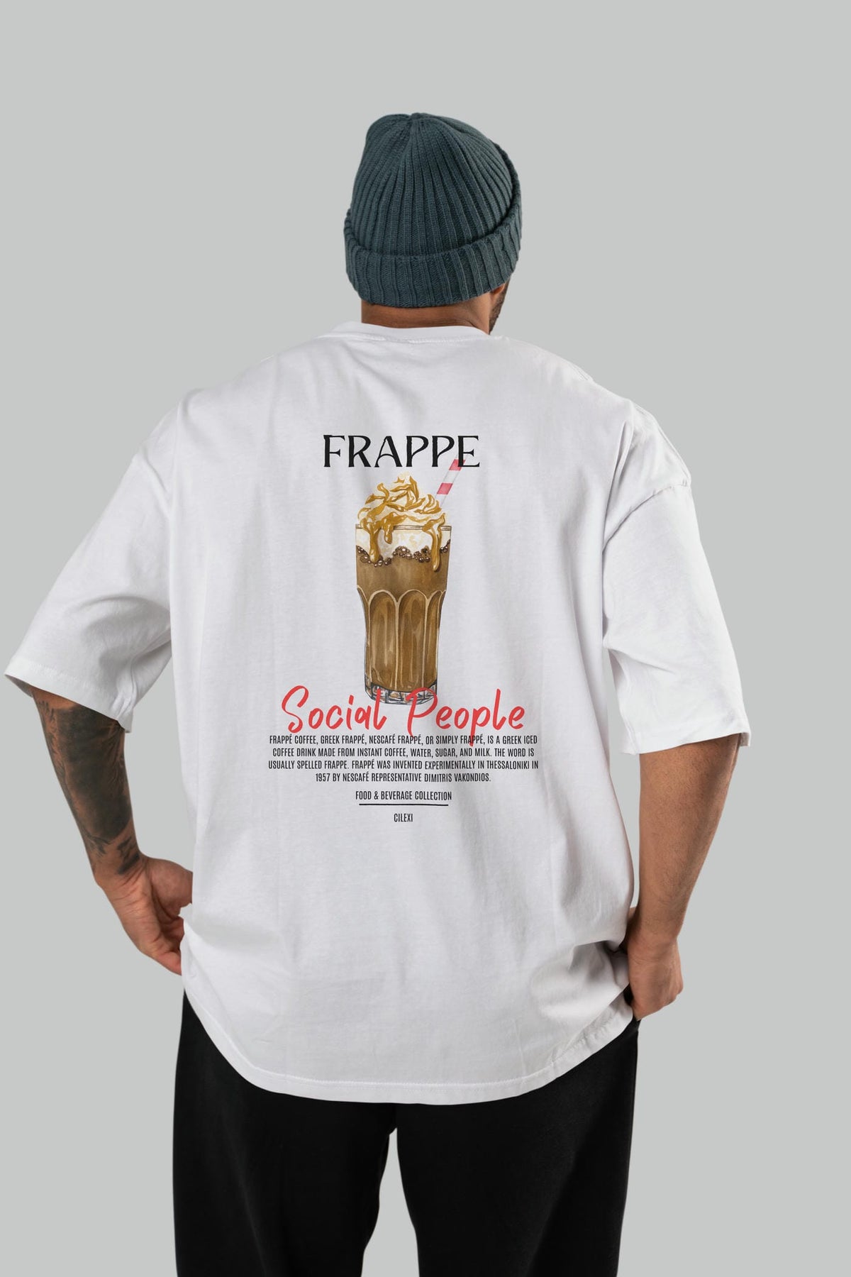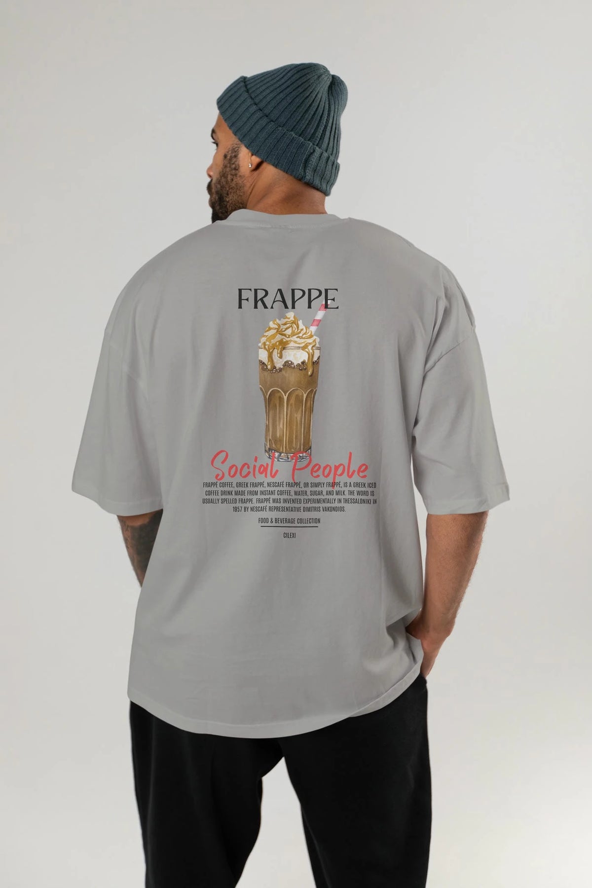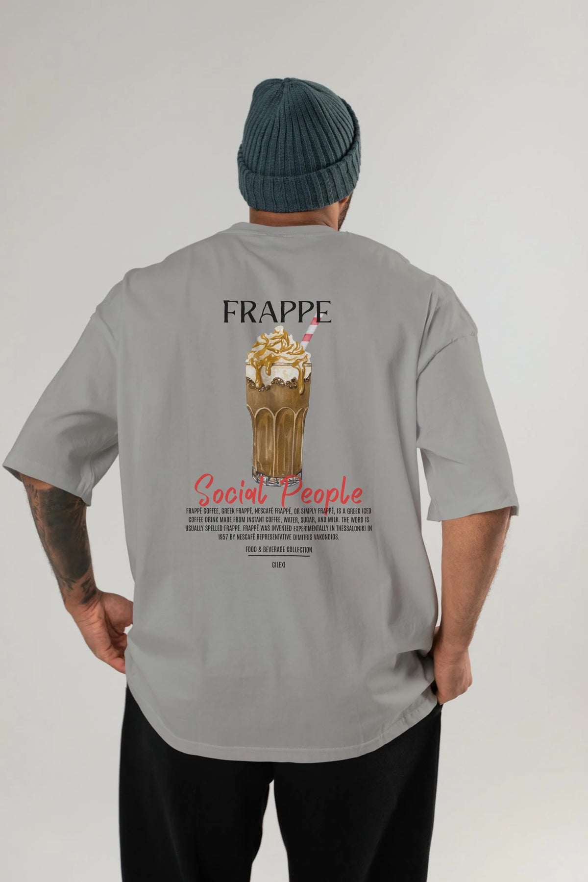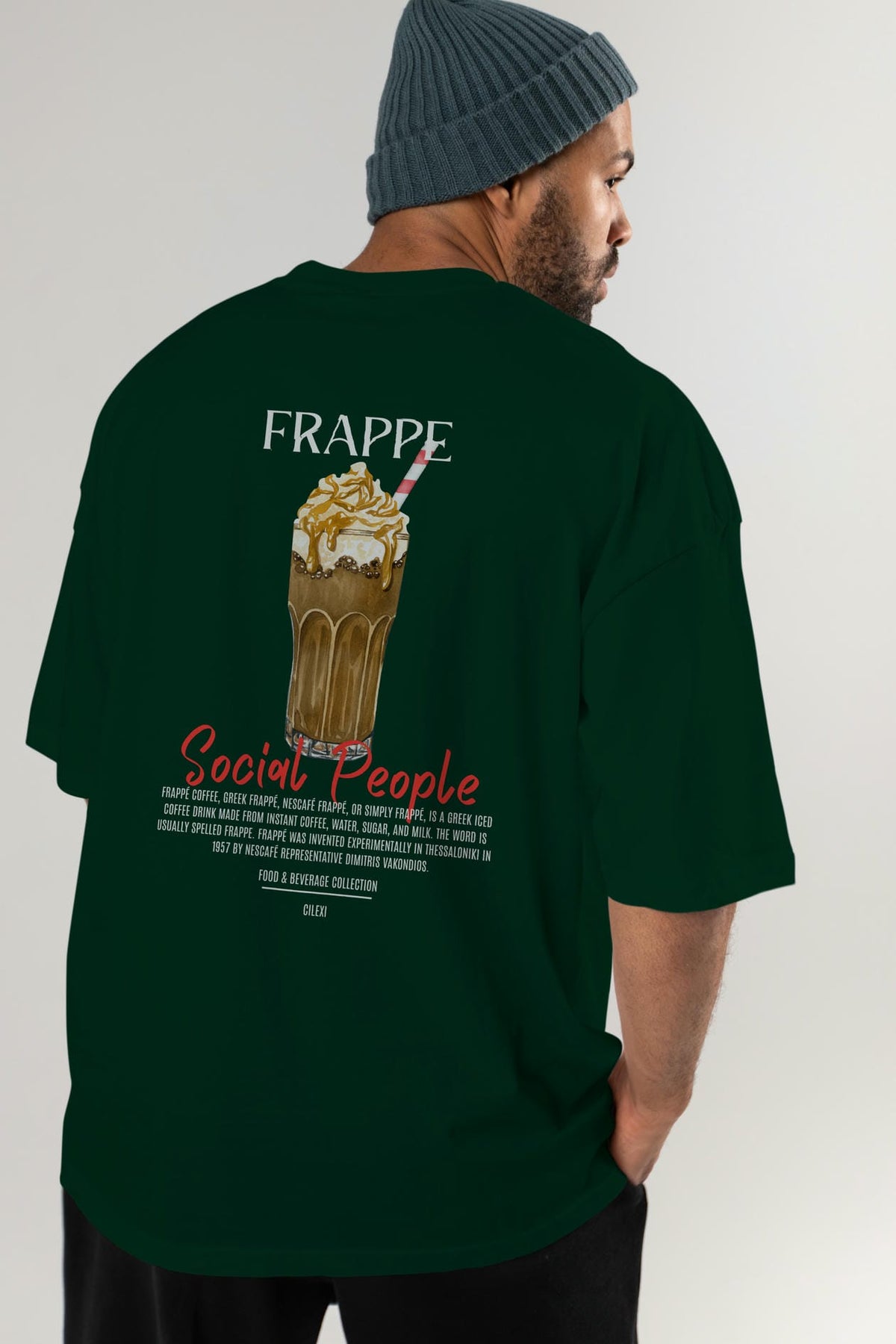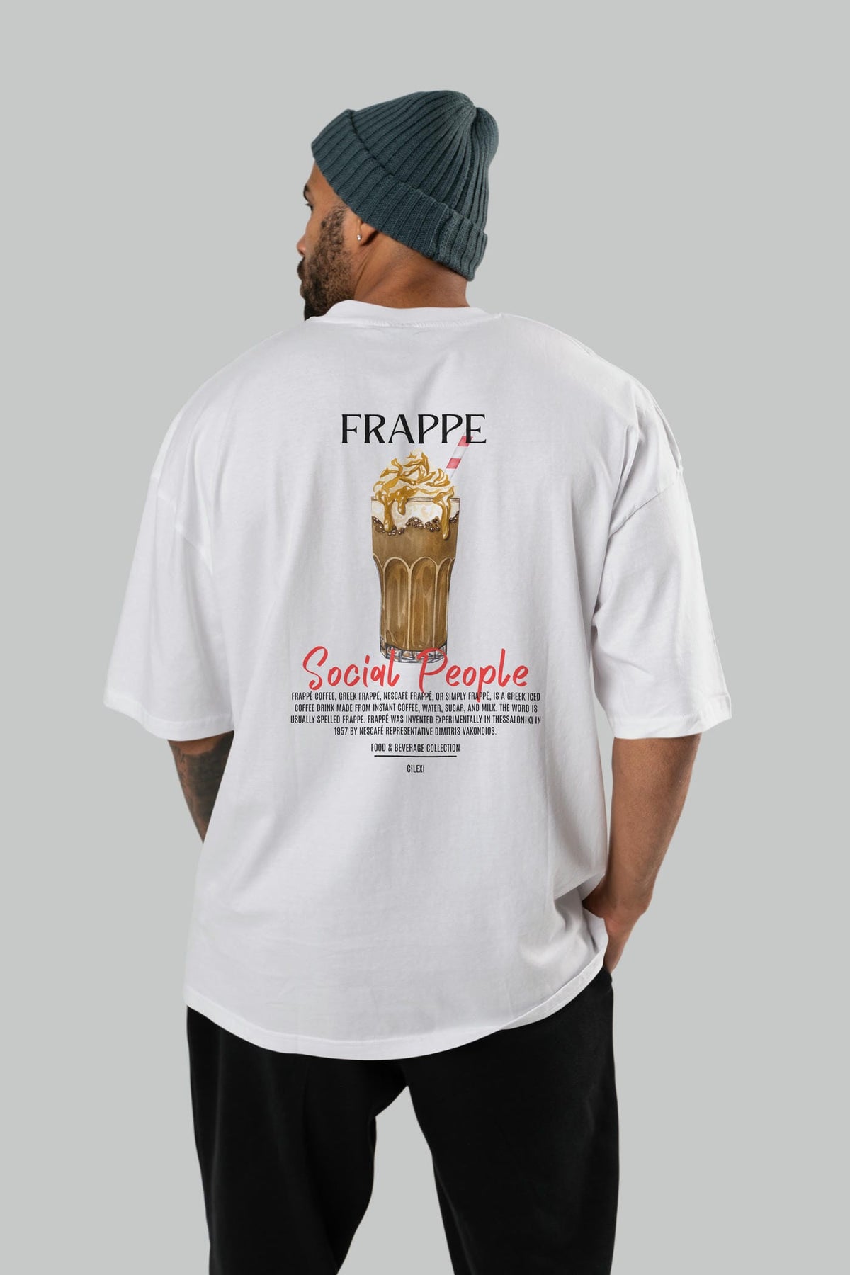 Frappe Kokteyl Serisi Baskılı Oversize t-shirt Erkek Kadın Unisex %100 Pamuk Bisiklet Yaka tişort