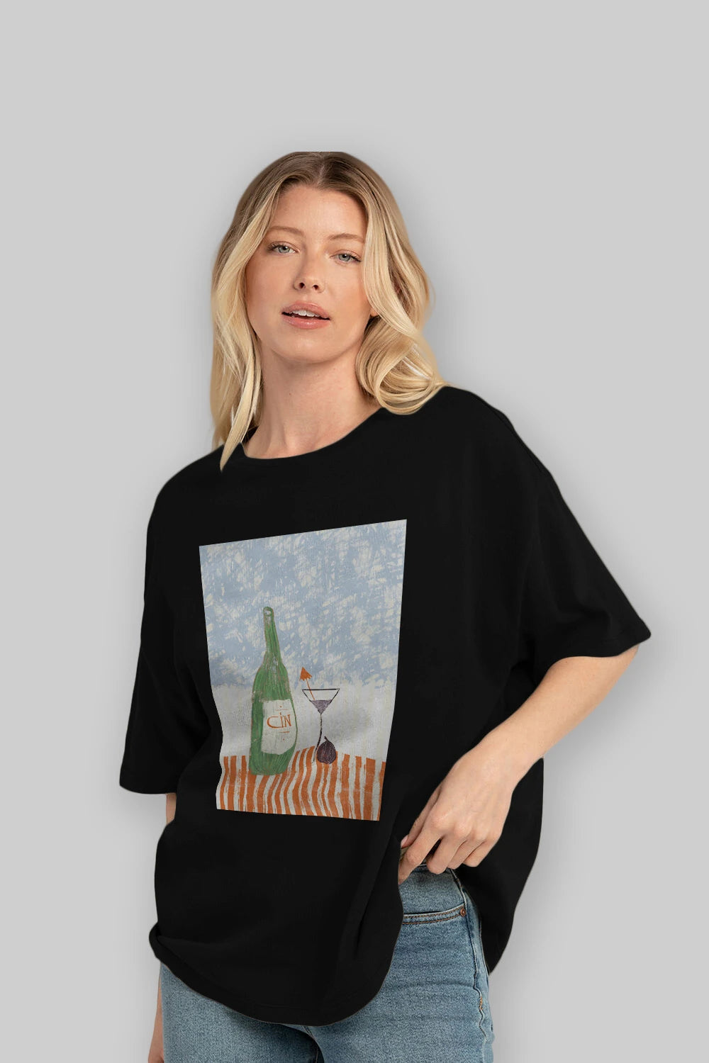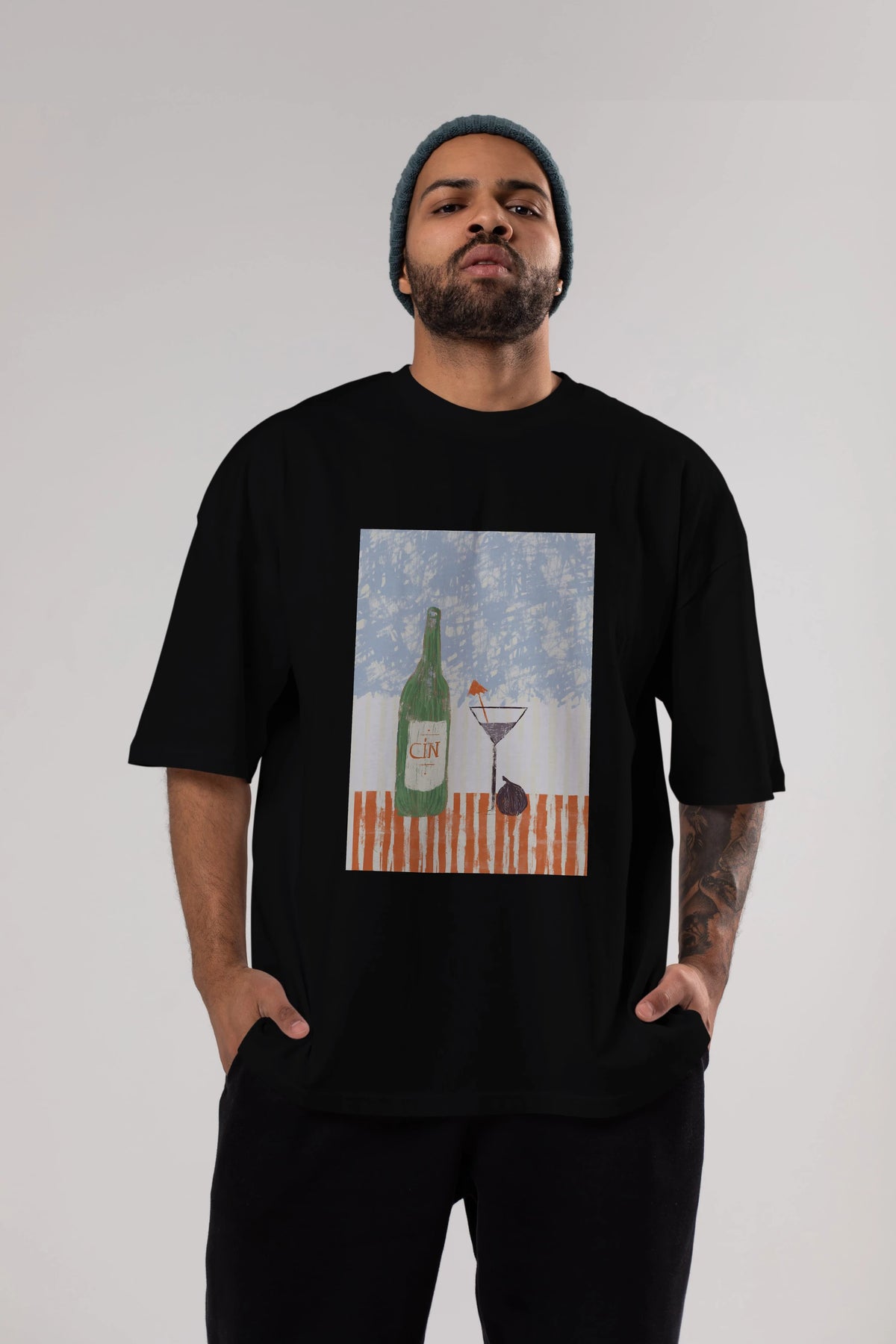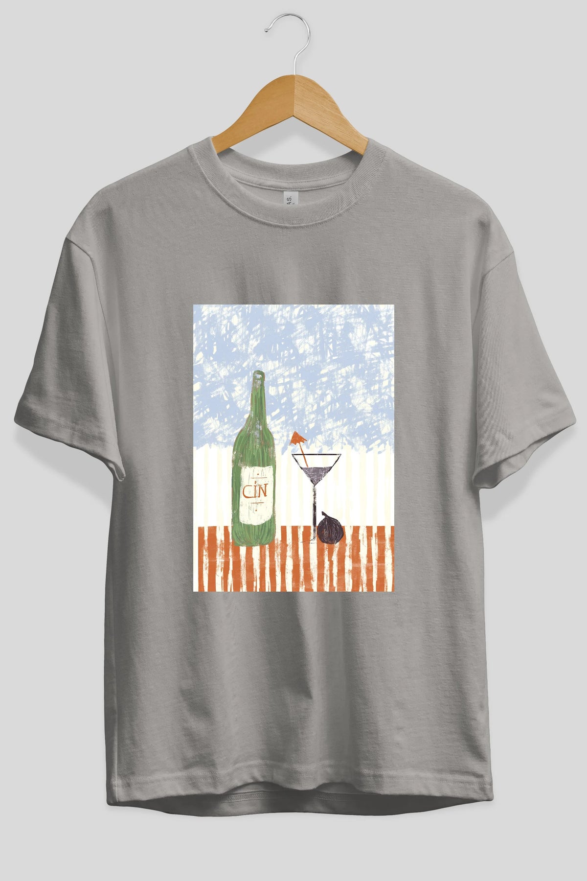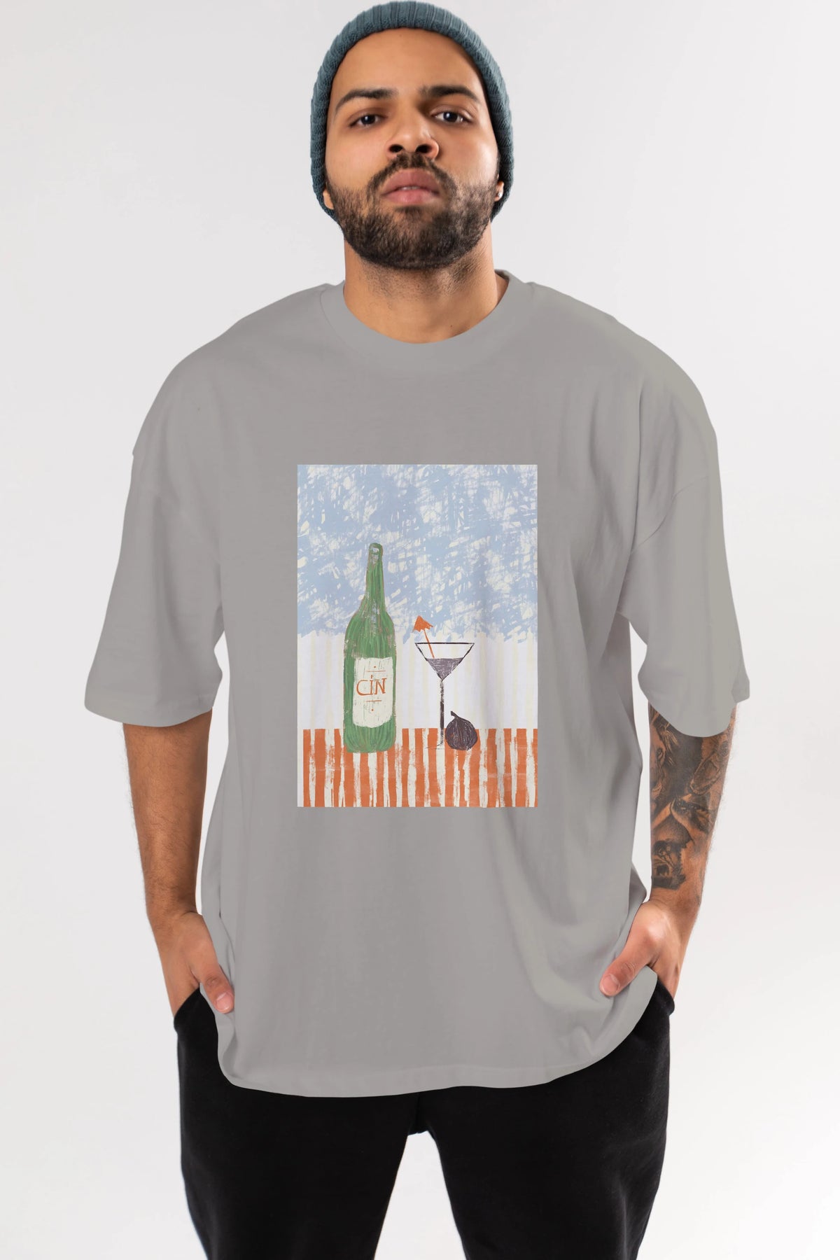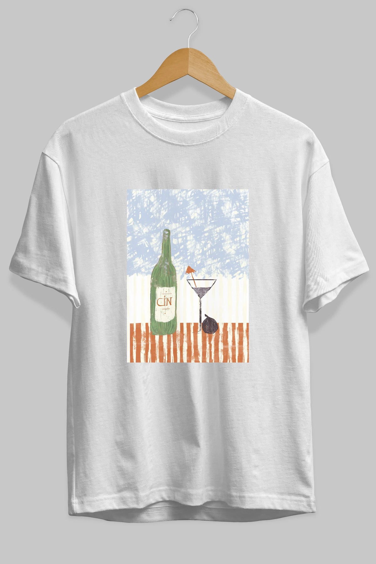 Gin Ön Baskılı Oversize t-shirt Erkek Kadın Unisex %100 Pamuk Bisiklet Yaka tişort