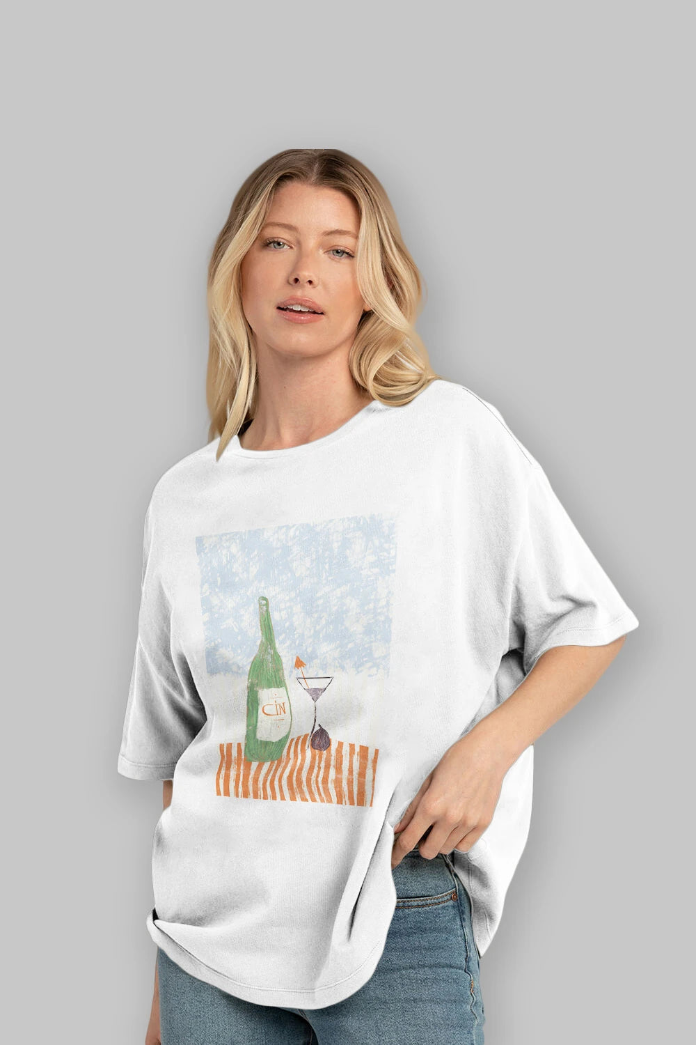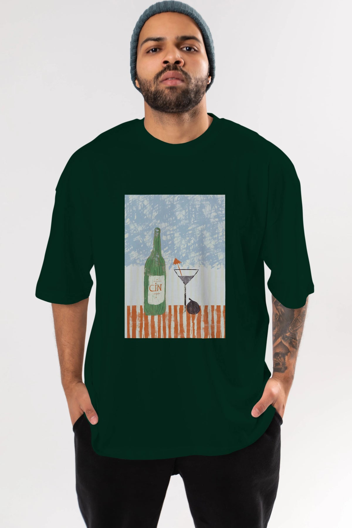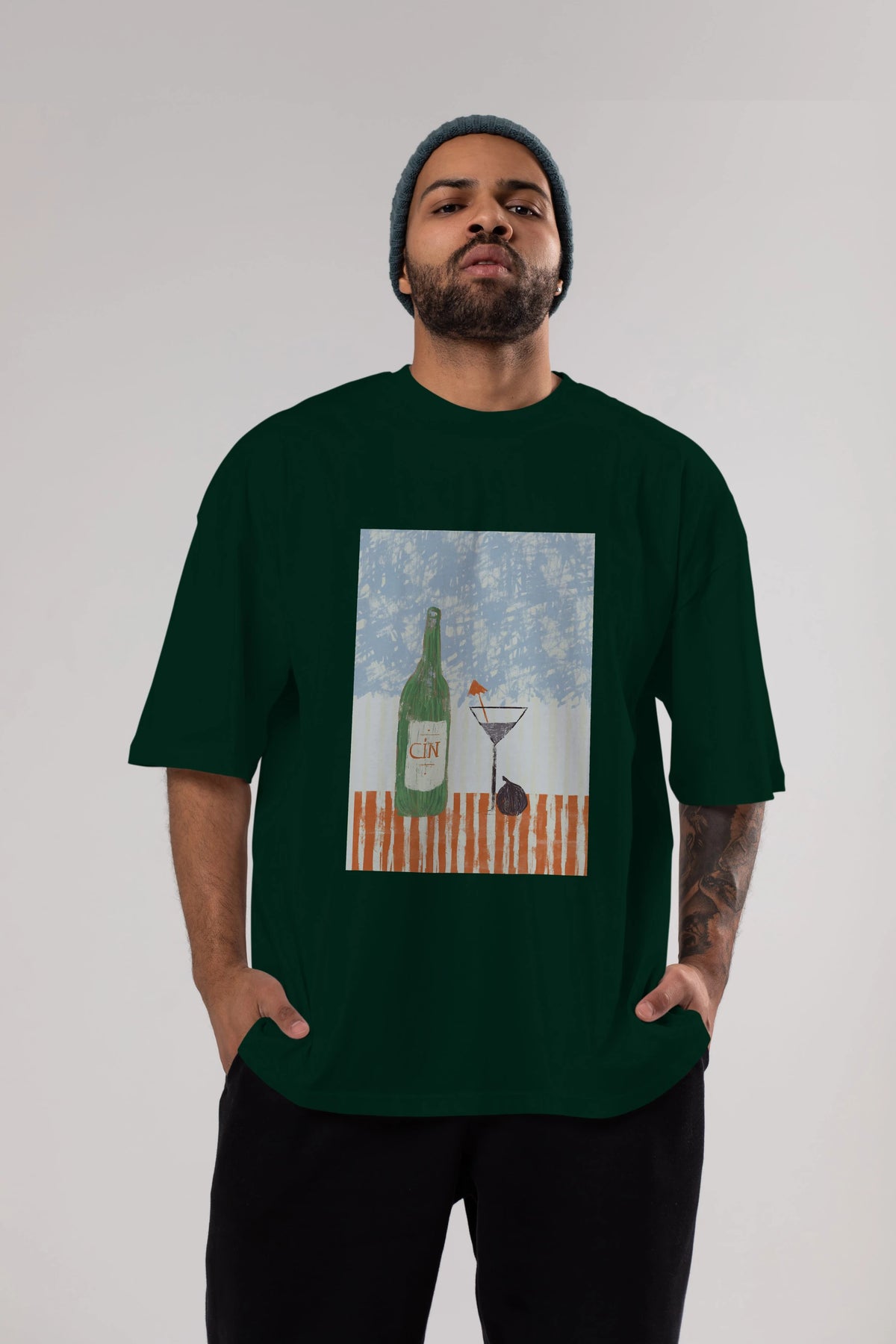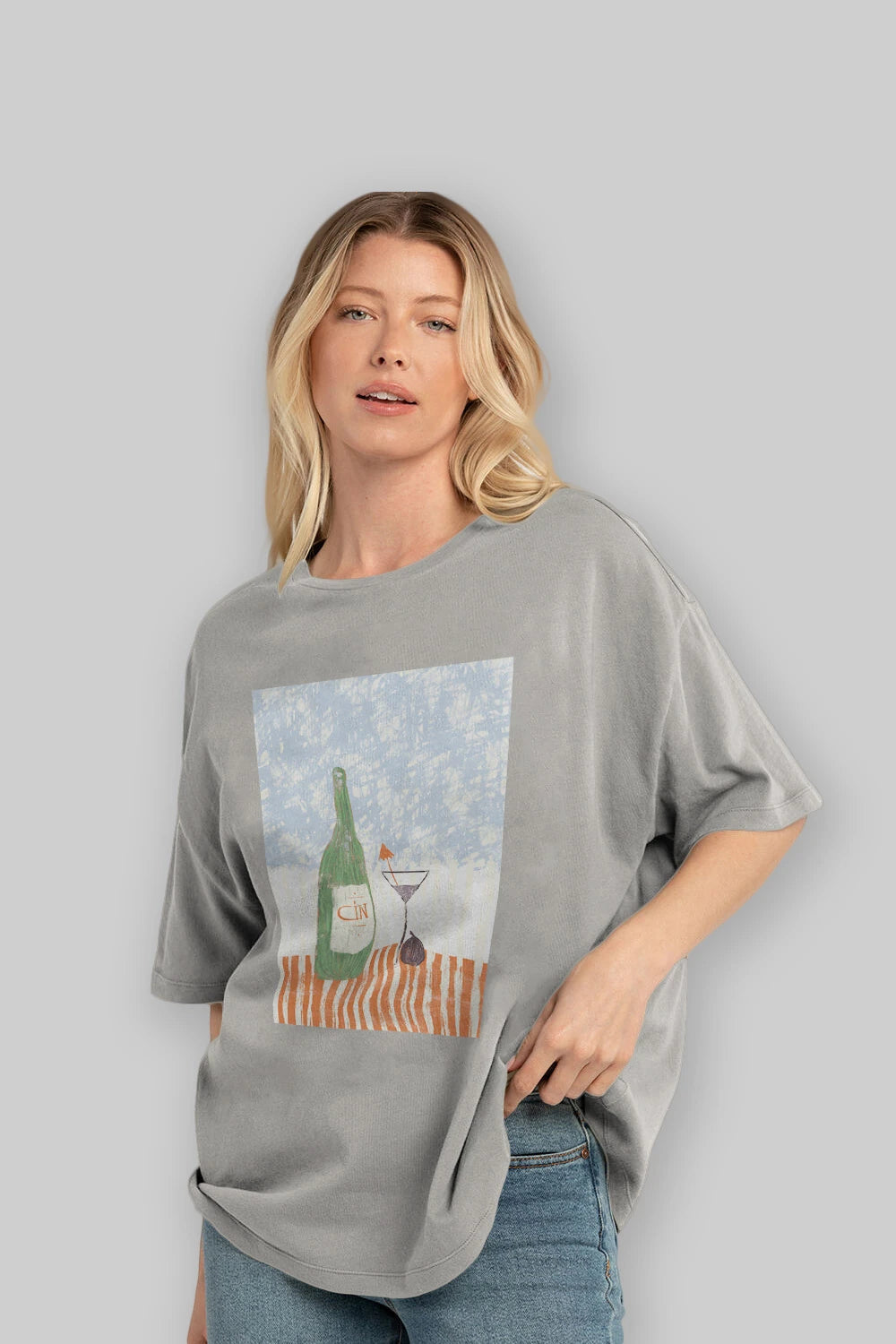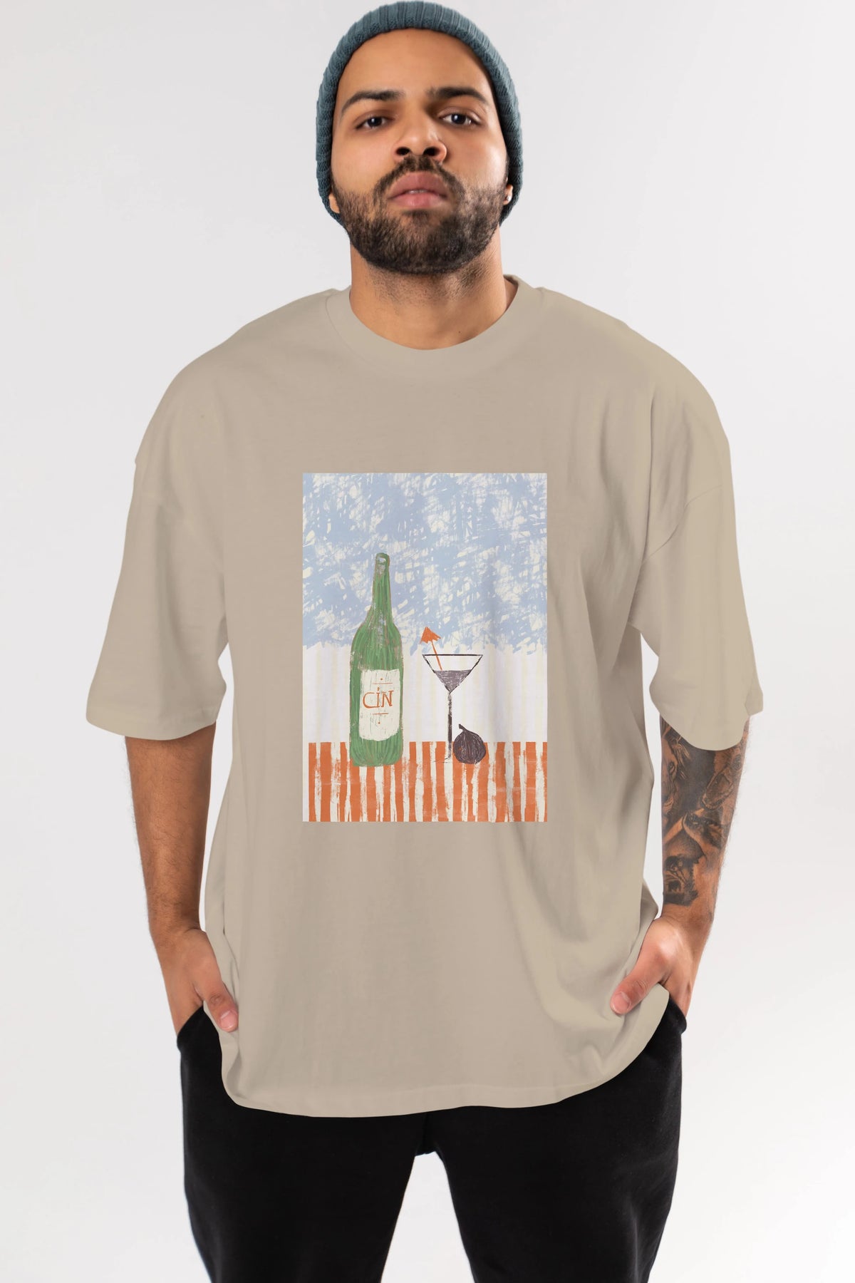 Gin Ön Baskılı Oversize t-shirt Erkek Kadın Unisex %100 Pamuk Bisiklet Yaka tişort