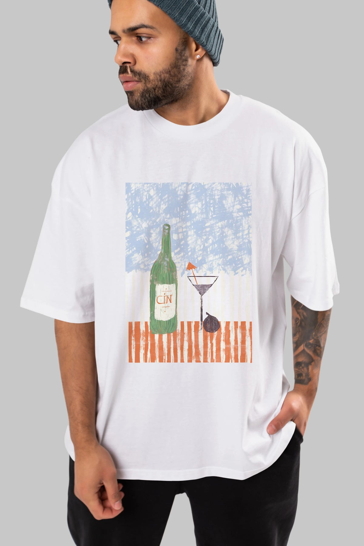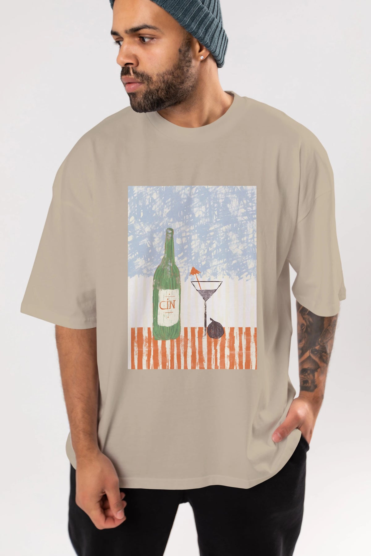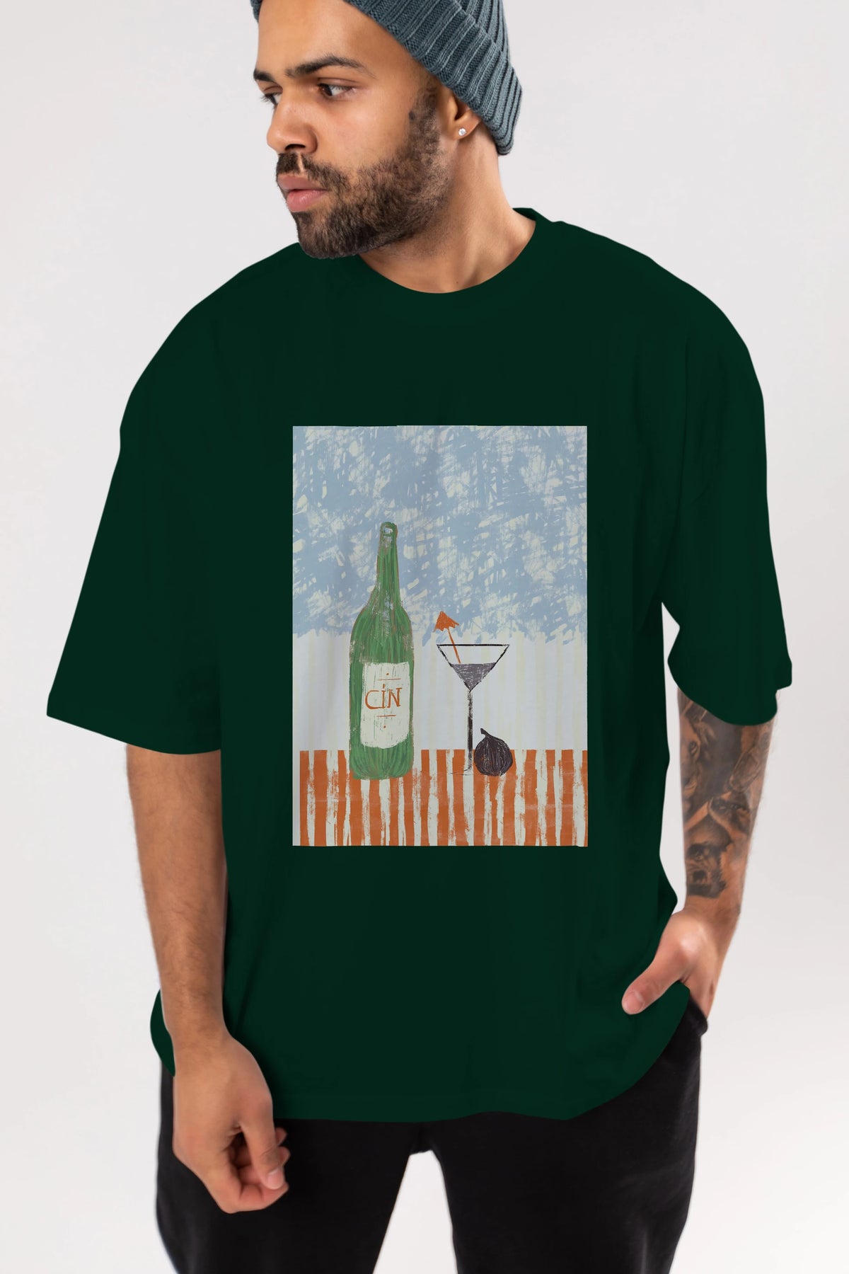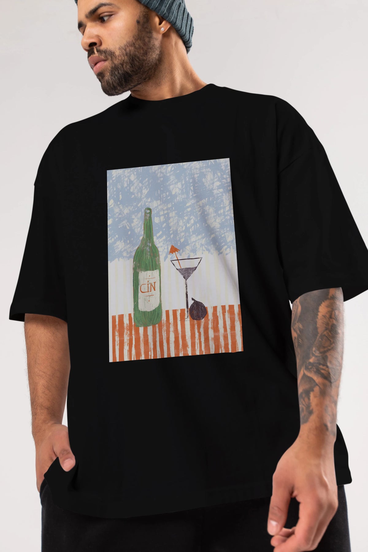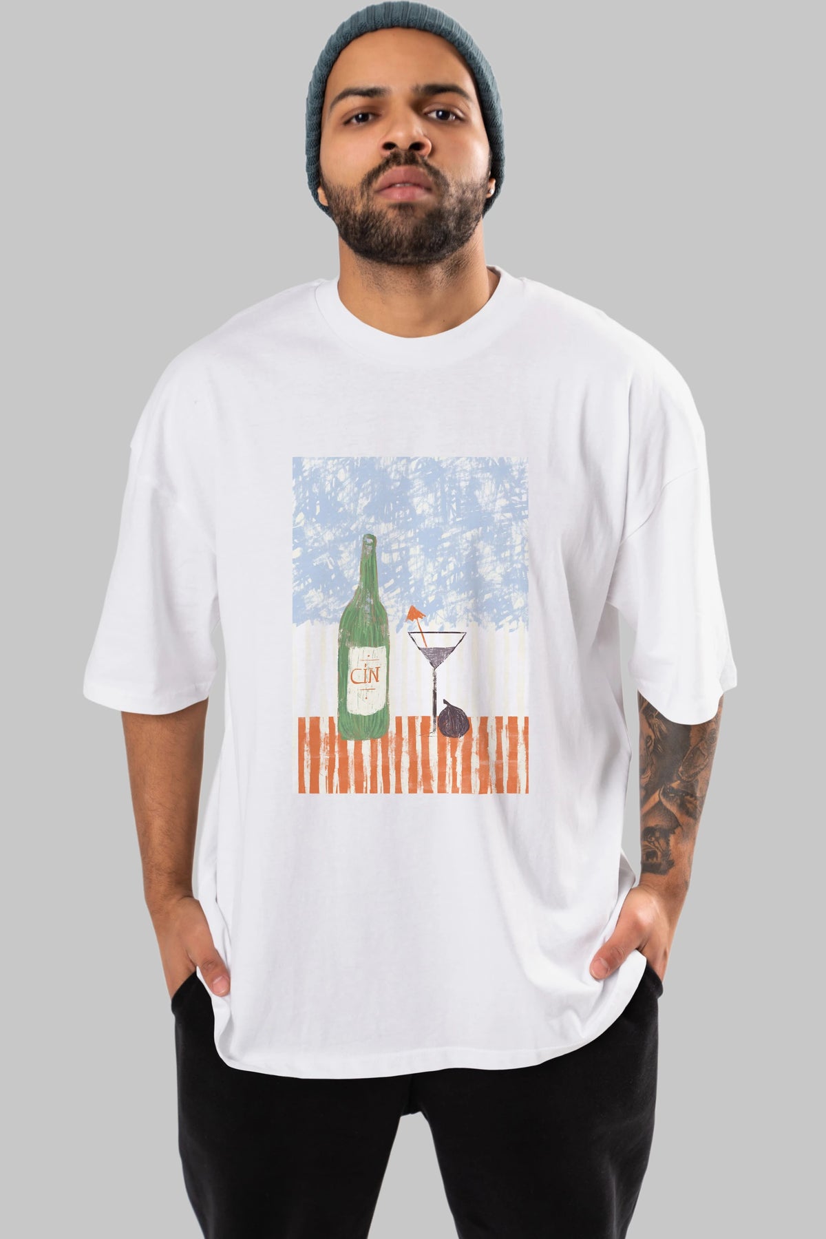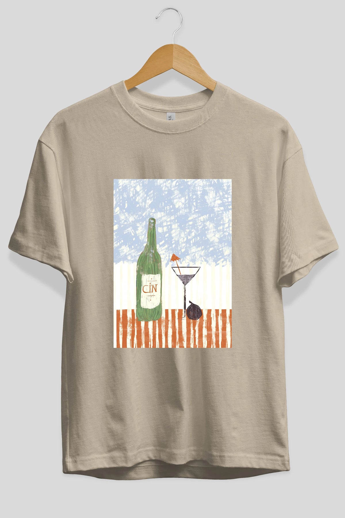 Gin Ön Baskılı Oversize t-shirt Erkek Kadın Unisex %100 Pamuk Bisiklet Yaka tişort